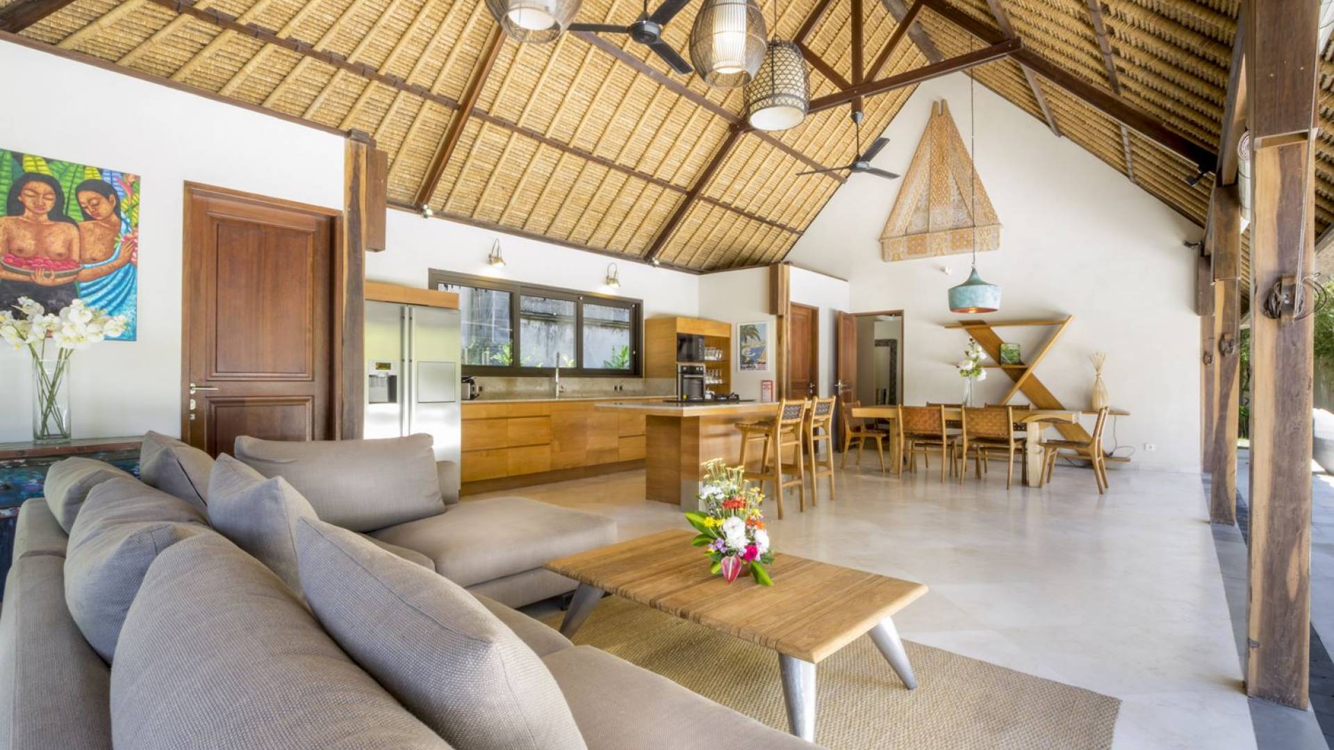 Tradizionali tetti di paglia, piscine ispirate alla laguna, lussuosi lettini da giorno, ristoranti all'aperto e climatizzati, le cose buone non finiscono! Ogni villa dispone di soggiorno e sala da pranzo privati, cucina e giardino con piscina. Ciò significa, molti posti per rilassarsi insieme ma anche spazio più che sufficiente per godersi un po' di pace e tranquillità. Con 5 piscine di cui 2 hanno un'area poco profonda per far divertire i bambini in acqua, ce n'è per tutti i gusti. Tutti i soggiorni, ad eccezione della Villa Khajuraho completamente climatizzata, sono dotati di spazi abitativi a concetto aperto con alti tetti "alang alang". Le cucine sono dotate di elettrodomestici di qualità di marchi leader e ogni villa dispone di comodi divani su cui rilassarsi, TV per l'intrattenimento e tavoli da pranzo da 6 a 12 persone. Ogni villa ha il proprio router wifi per la migliore connessione internet in ogni stanza. Villa Khajuraho vanta un'ampia terrazza all'aperto con barbecue, perfetta per feste in giardino. C'è anche un tavolo da biliardo e uno spazio ufficio per il tuo utilizzo.