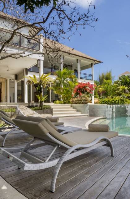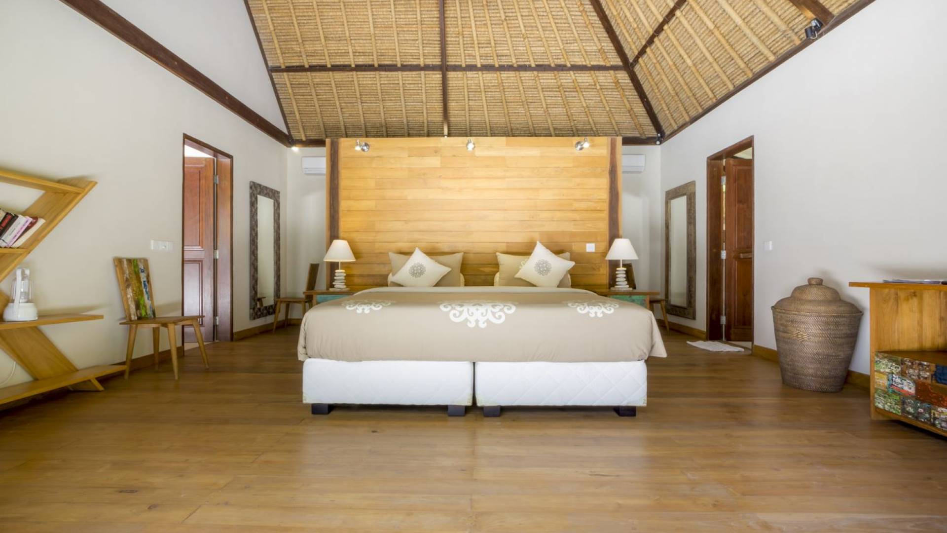 Cerchi una gigantesca villa di lusso per trascorrere un'indimenticabile vacanza sull'isola? Questa tenuta per le vacanze di 5 ville è come un paradiso tropicale privato, lontano da strade trafficate e dalla folla, ma vicino a bellissime spiagge di sabbia bianca, templi in cima a una scogliera e bar e non troppo lontano dall'aeroporto internazionale di Bali. Akila Estate è proprio quello che stavi cercando! Progettato da un team di designer francesi di grande talento, la miscela di elementi tradizionali balinesi e raffinatezza e comfort europei è semplicemente perfetta! La villa più grande della tenuta è Villa Khajuraho, caratterizzata da una casa a due piani con aria condizionata e 4 camere da letto. Poi, ci sono le ville con 3 camere da letto Villa Markisa e Villa Kayu Merah e le ville con 2 camere da letto Villa Kabutera e Villa Lalita. In totale, Akilea Estate ospita 14 suite da letto, perfette per grandi vacanze in famiglia, feste speciali, eventi e ritiri. Le ville sono circondate da splendidi giardini e sentieri, che ospitano alberi di mango, anacardi, alberi di jackfruit e una vegetazione tropicale più lussureggiante e piante da fiore, come un giardino privato dell'Eden dove puoi girovagare per ore, immergendoti nell'atmosfera tranquilla .