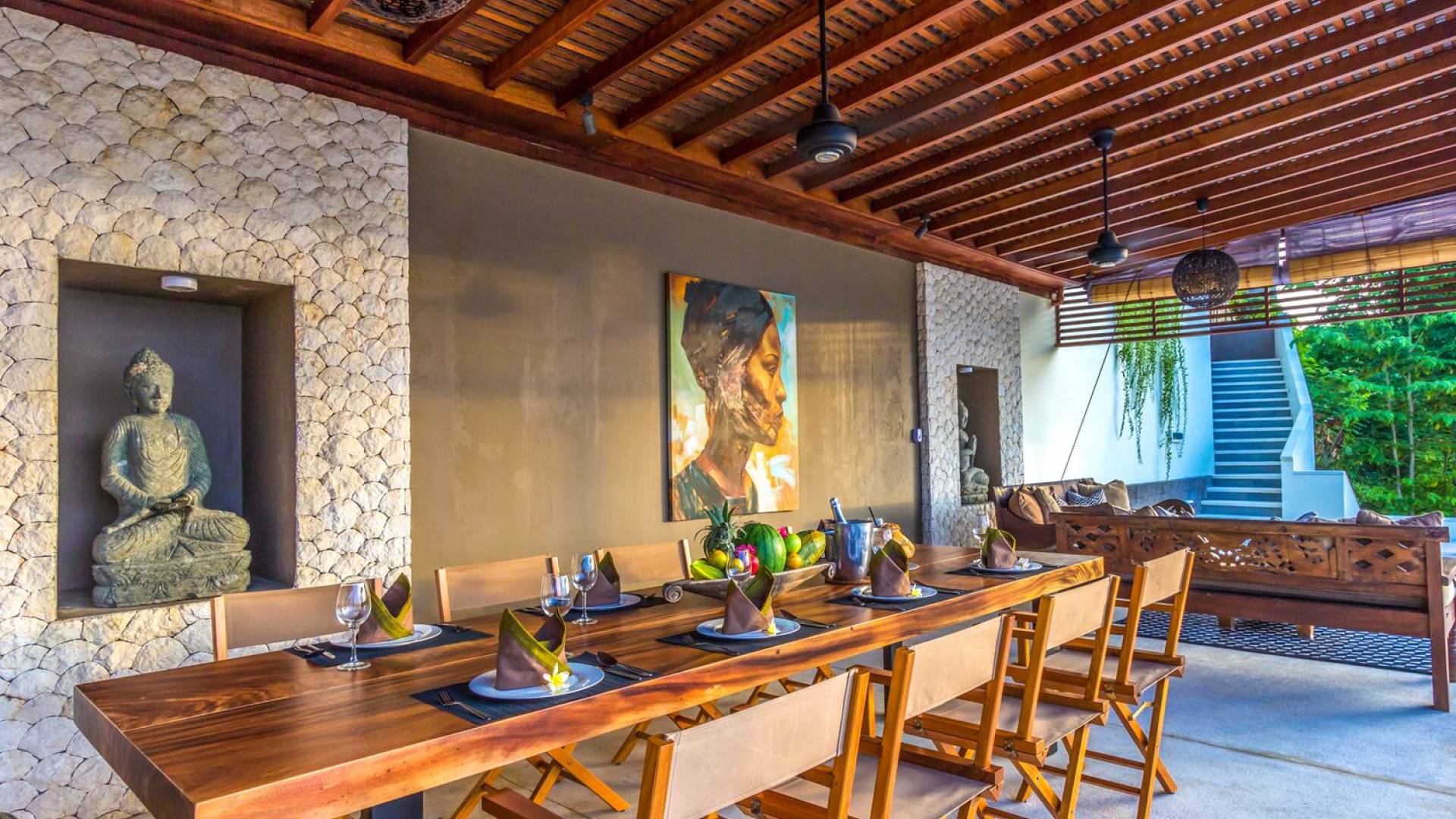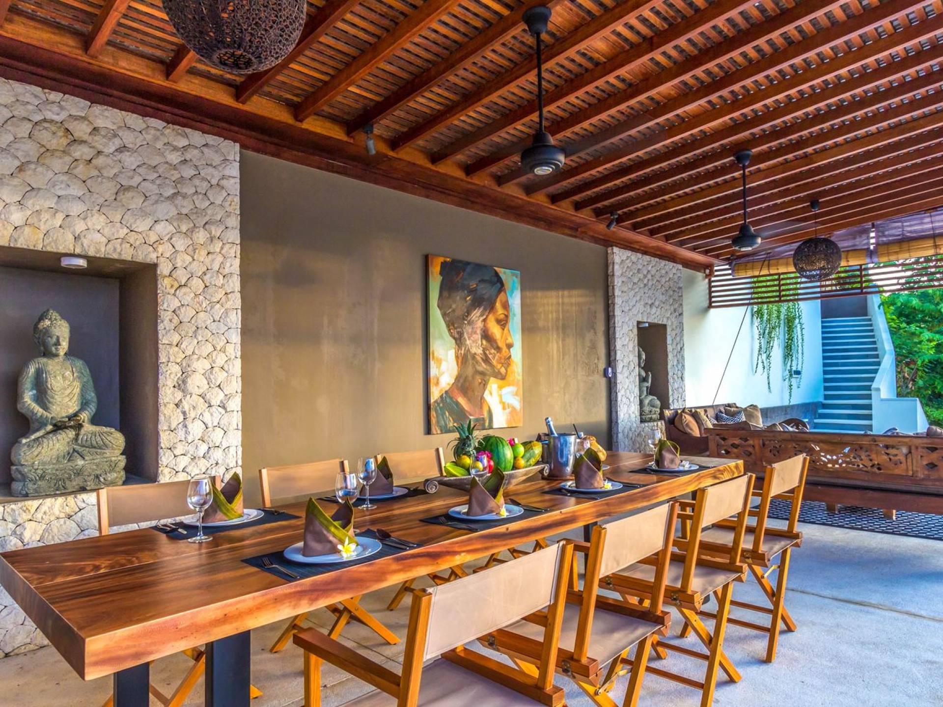 La villa è stata progettata per combinare l'architettura tradizionale balinese, con gli alti soffitti con tetto in erba, i pilastri di cocco e le balle da piscina che caratterizzano questa bellissima tradizione senza tempo, con i tocchi più moderni che ti aspetteresti da una villa di questo tipo calibro.