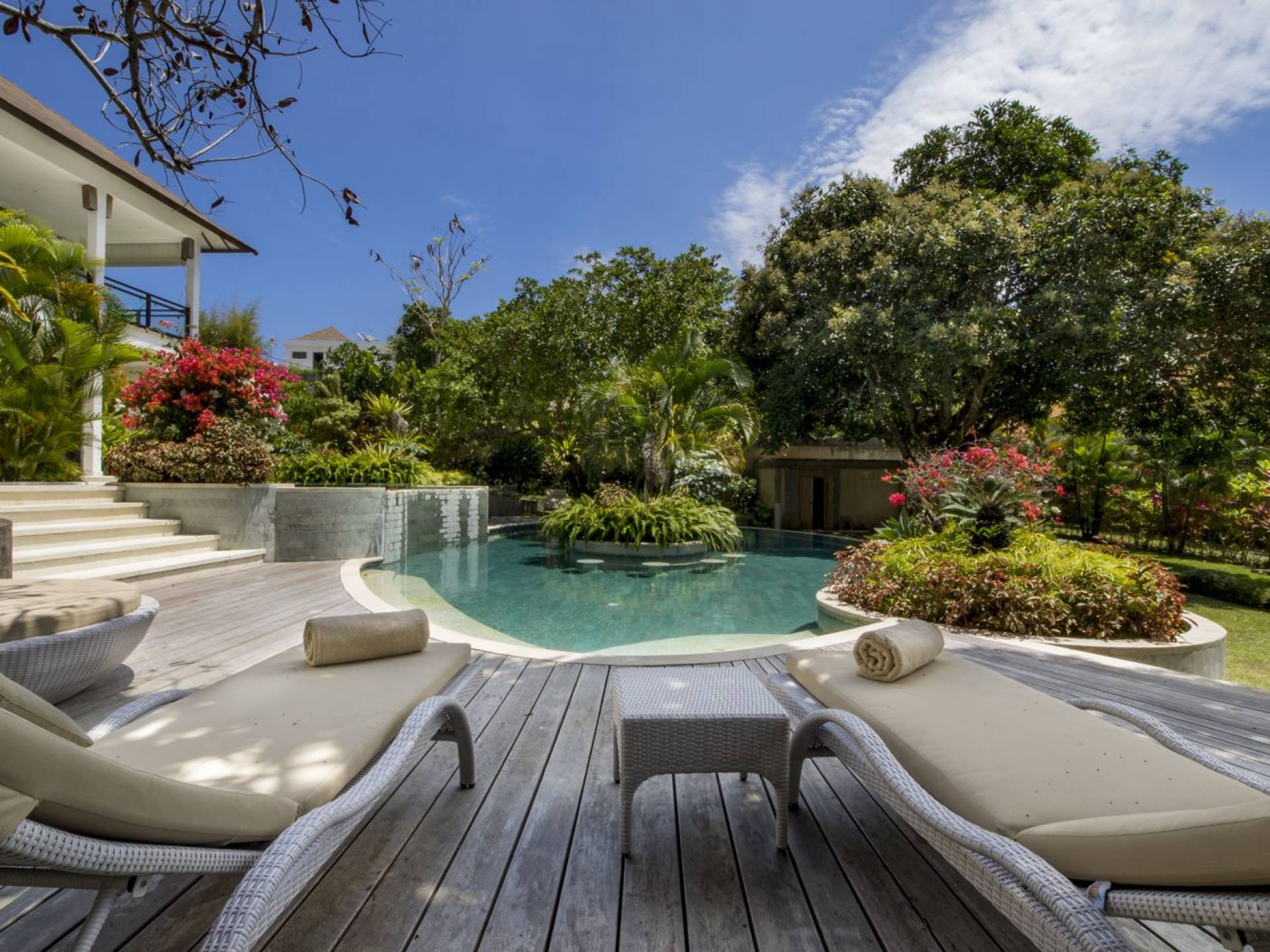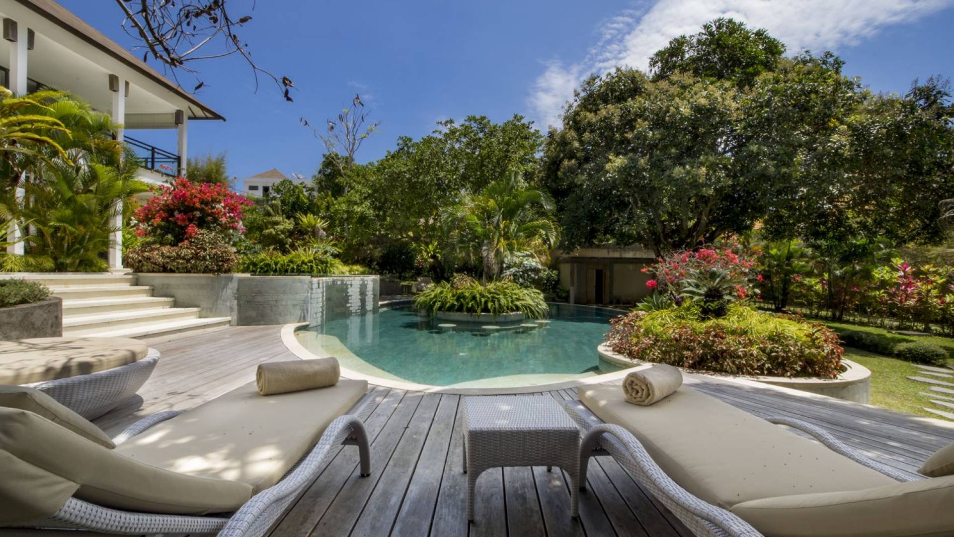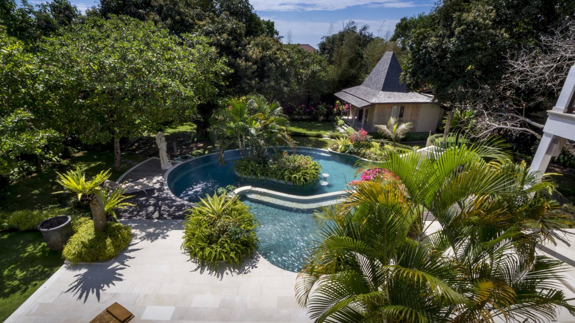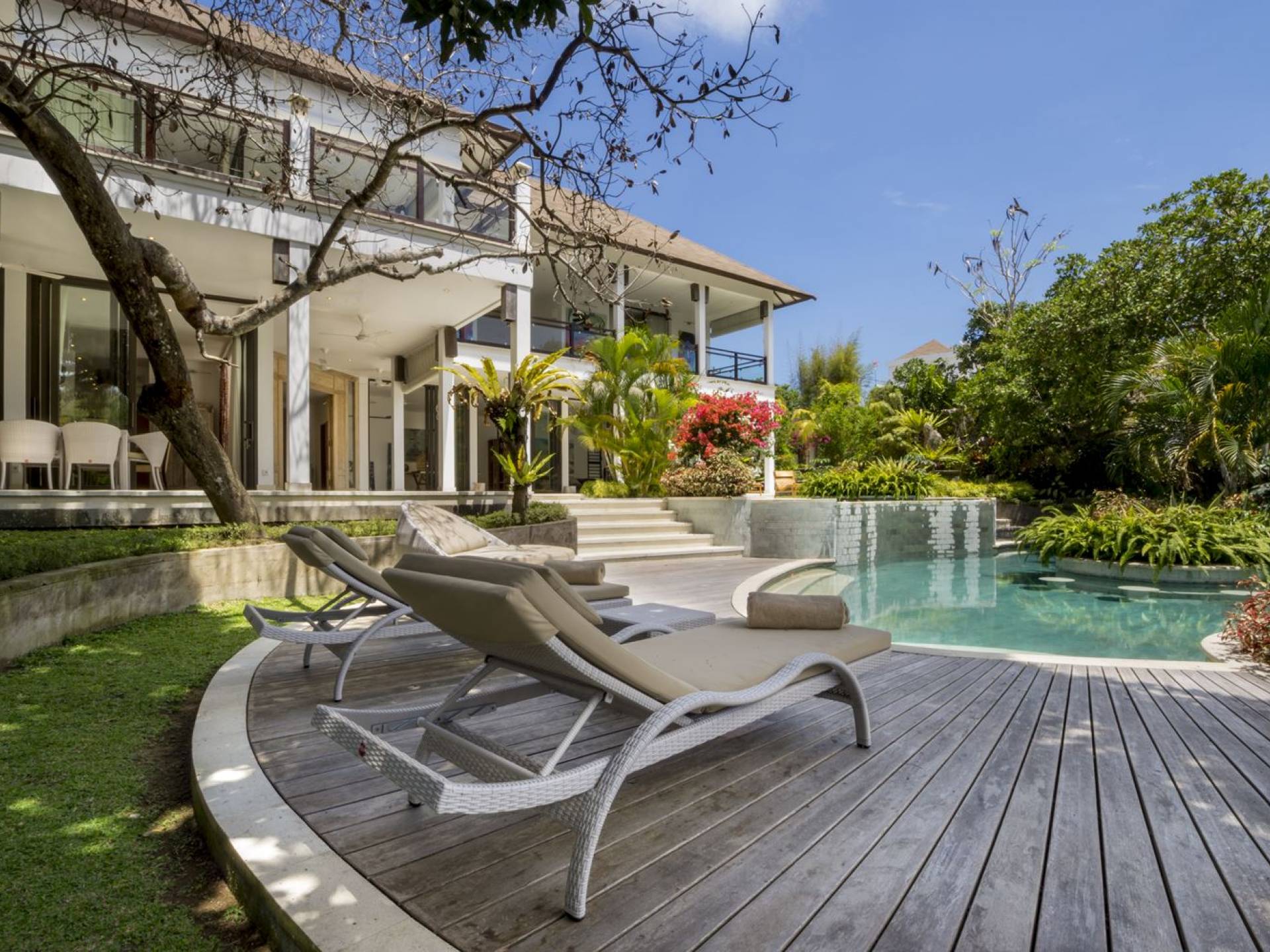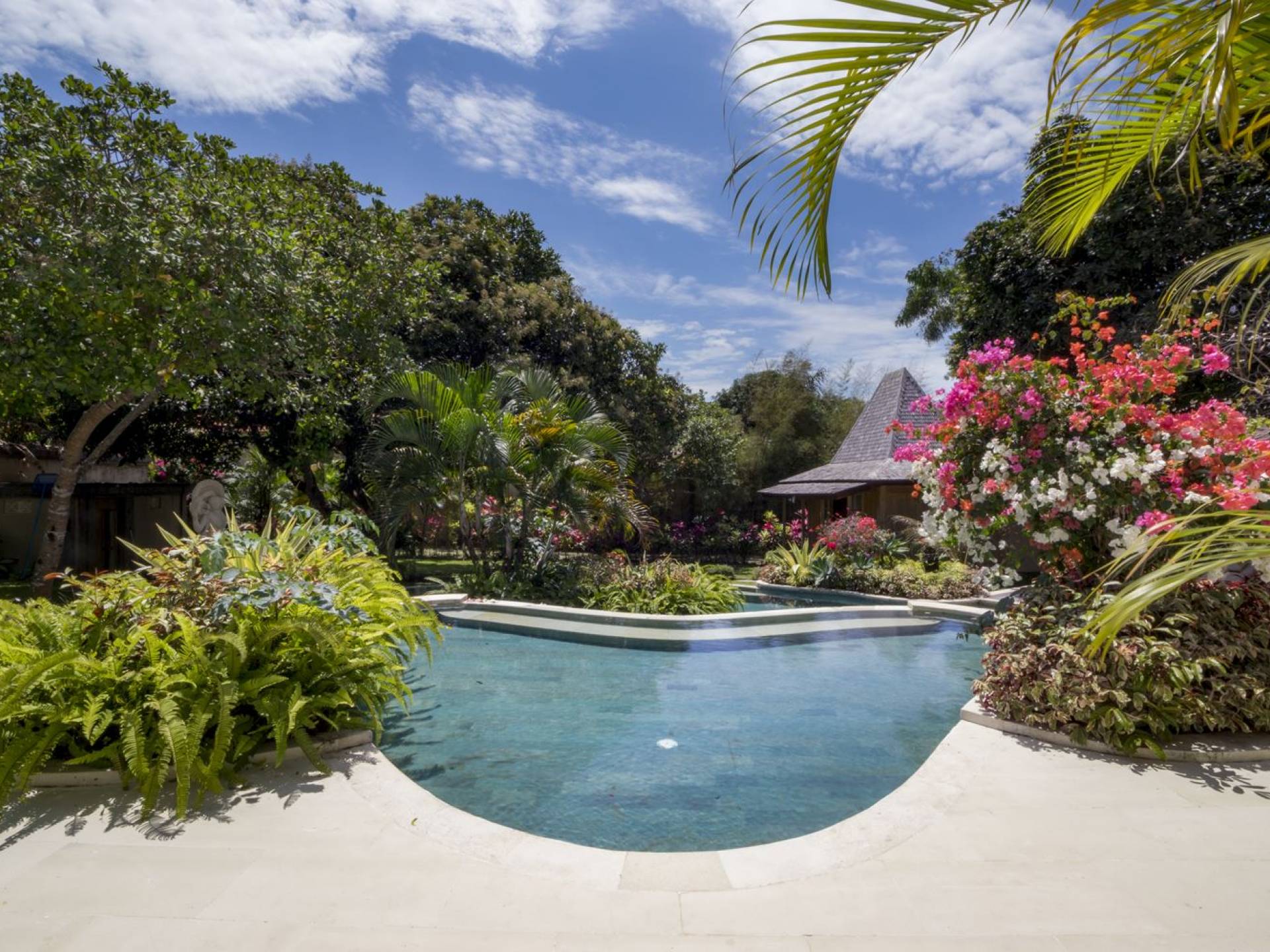 Questo rifugio di lusso è stato progettato per combinare un ambiente paradisiaco con lussi moderni. Potrai godere di comfort con aria condizionata, Wi-Fi veloce e moderne strutture di intrattenimento come TV, lettori DVD, tavoli da biliardo e altro ancora. Il meglio di entrambi i mondi! Il giardino dispone di una splendida piscina a forma di laguna con isole tropicali nel mezzo e una piscina separata poco profonda per i bambini. Ci sono stagni con fontane e prati erbosi dove i bambini possono correre o giocare all'ombra di alberi tropicali maturi. La piscina è fiancheggiata da una terrazza solarium in legno arredata con lussuose sedie lunghe in rattan bianco e lettini da giorno. Segui le scalette per trovare un solarium in pietra con sedie ancora più reclinabili dove puoi prendere il sole con vista sul giardino e sulla piscina. Questo solarium si affaccia sulla piscina per bambini che trabocca nella piscina principale, perfetta per i genitori che vogliono rilassarsi e prendere il sole tenendo d'occhio i bambini.