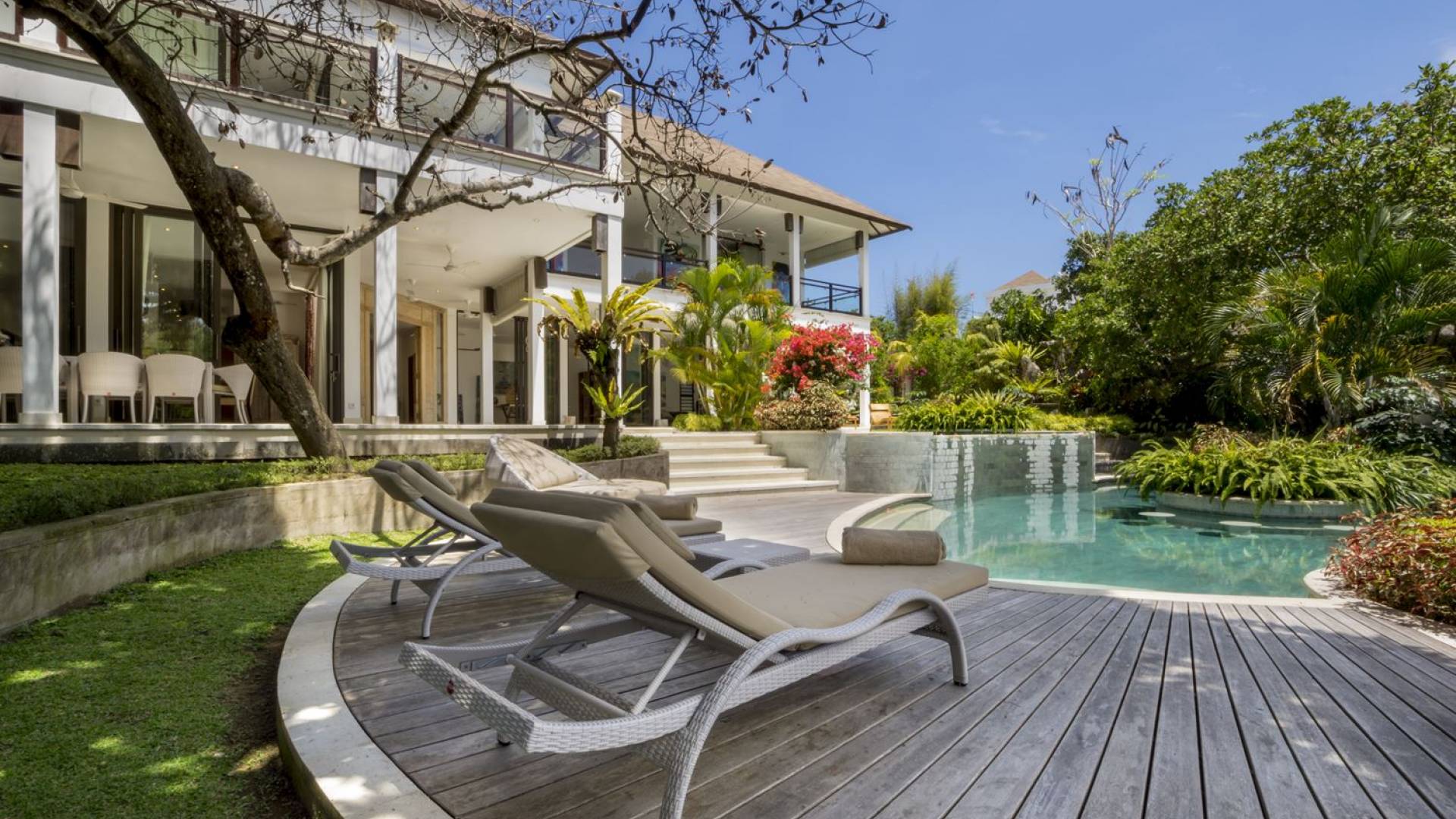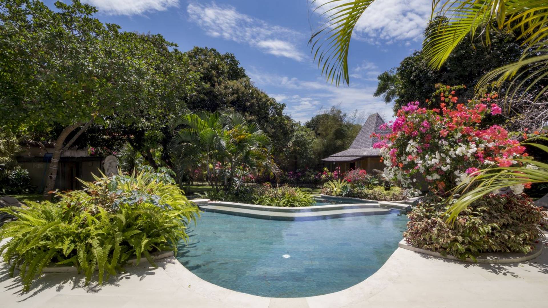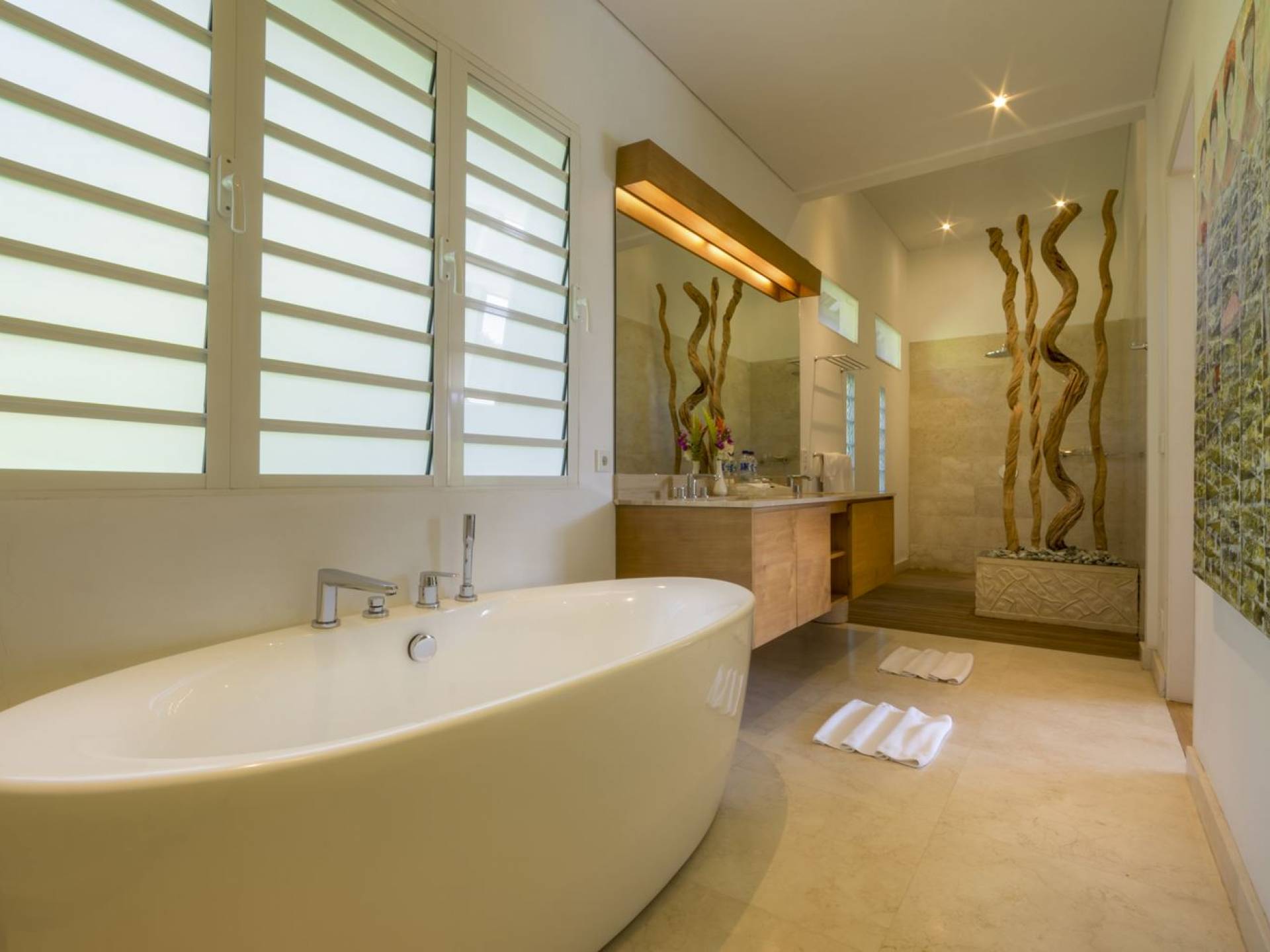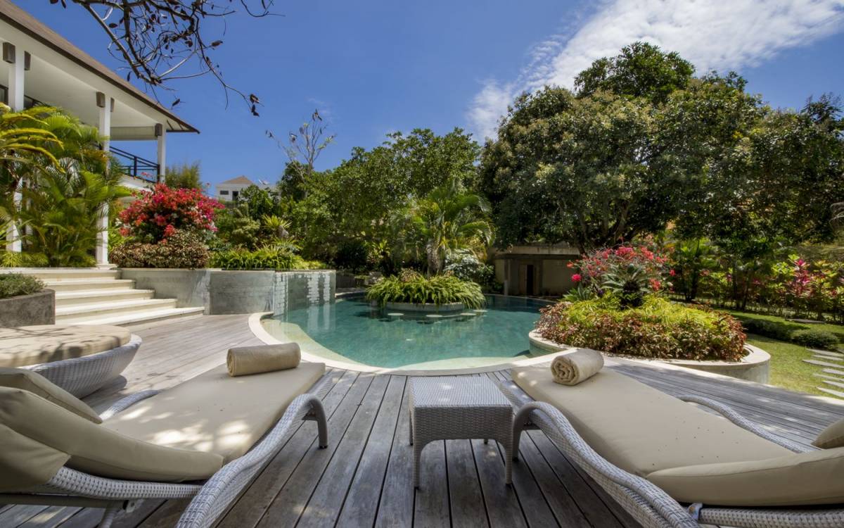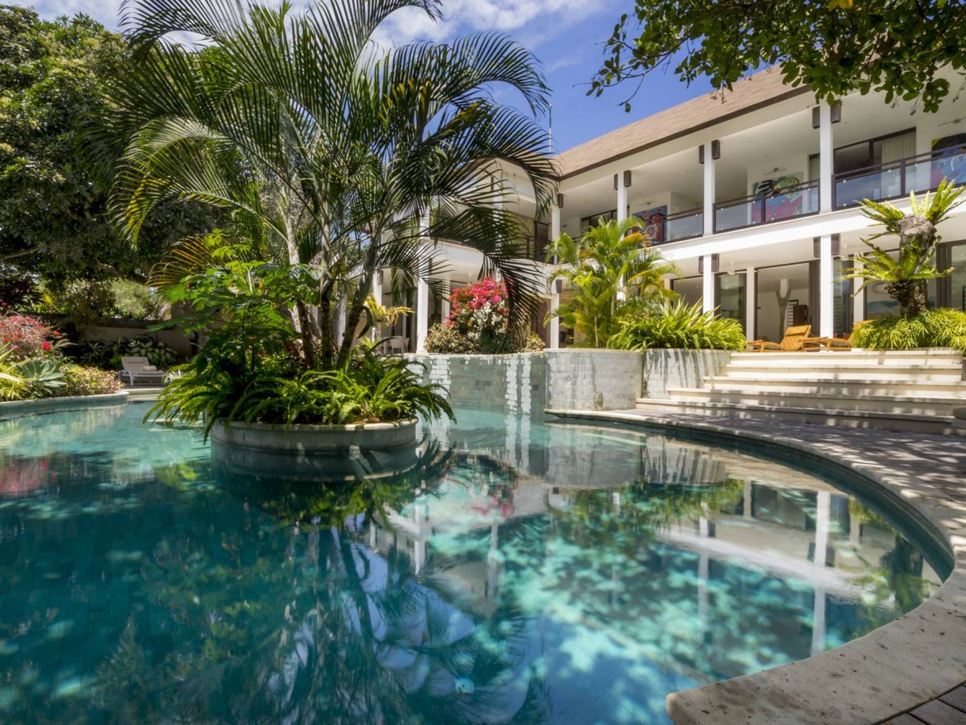 Questo rifugio di lusso è stato progettato per combinare un ambiente paradisiaco con lussi moderni. Potrai godere di comfort con aria condizionata, Wi-Fi veloce e moderne strutture di intrattenimento come TV, lettori DVD, tavoli da biliardo e altro ancora. Il meglio di entrambi i mondi! Il giardino dispone di una splendida piscina a forma di laguna con isole tropicali nel mezzo e una piscina separata poco profonda per i bambini. Ci sono stagni con fontane e prati erbosi dove i bambini possono correre o giocare all'ombra di alberi tropicali maturi. La piscina è fiancheggiata da una terrazza solarium in legno arredata con lussuose sedie lunghe in rattan bianco e lettini da giorno. Segui le scalette per trovare un solarium in pietra con sedie ancora più reclinabili dove puoi prendere il sole con vista sul giardino e sulla piscina. Questo solarium si affaccia sulla piscina per bambini che trabocca nella piscina principale, perfetta per i genitori che vogliono rilassarsi e prendere il sole tenendo d'occhio i bambini.