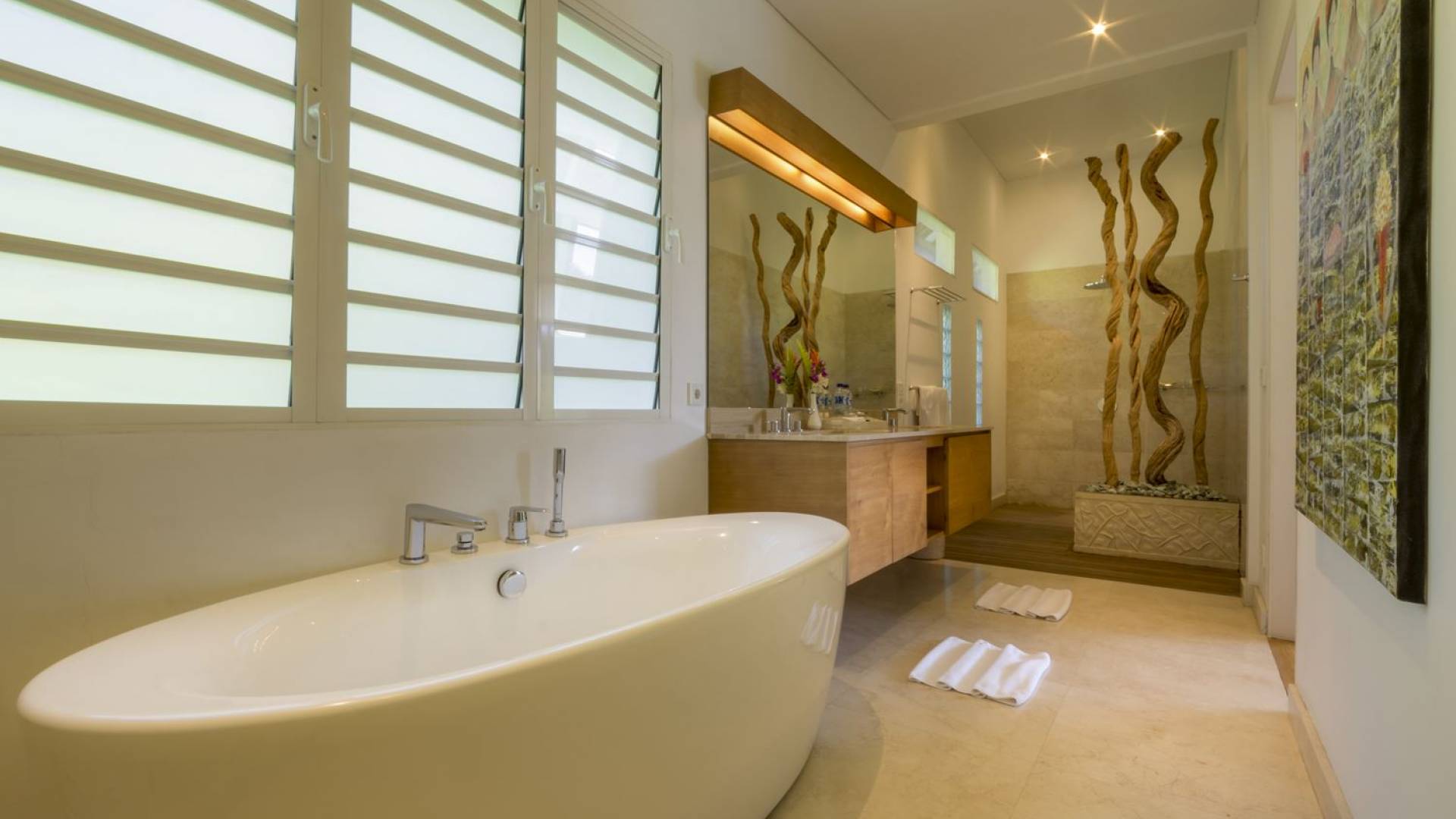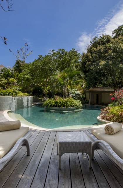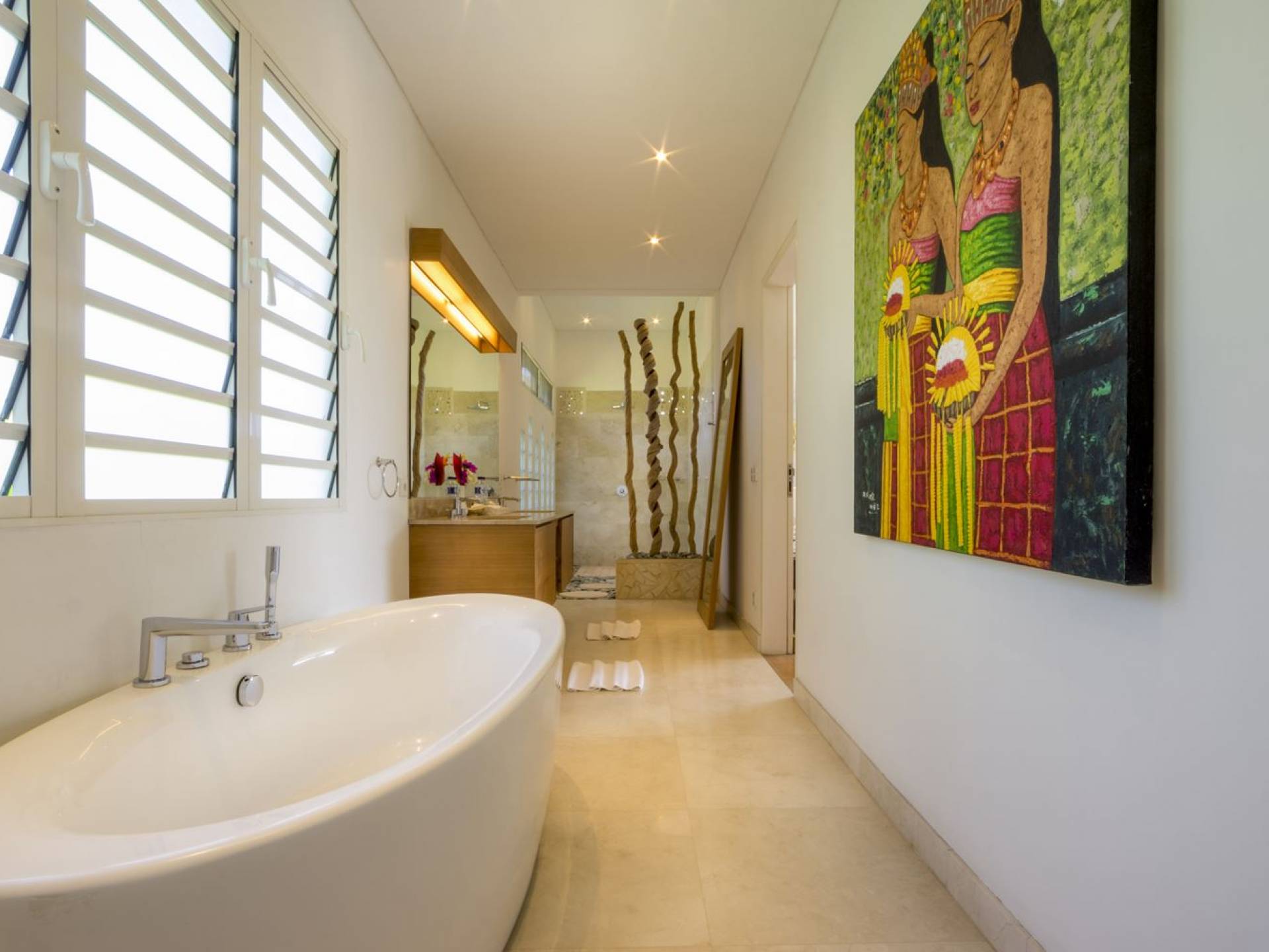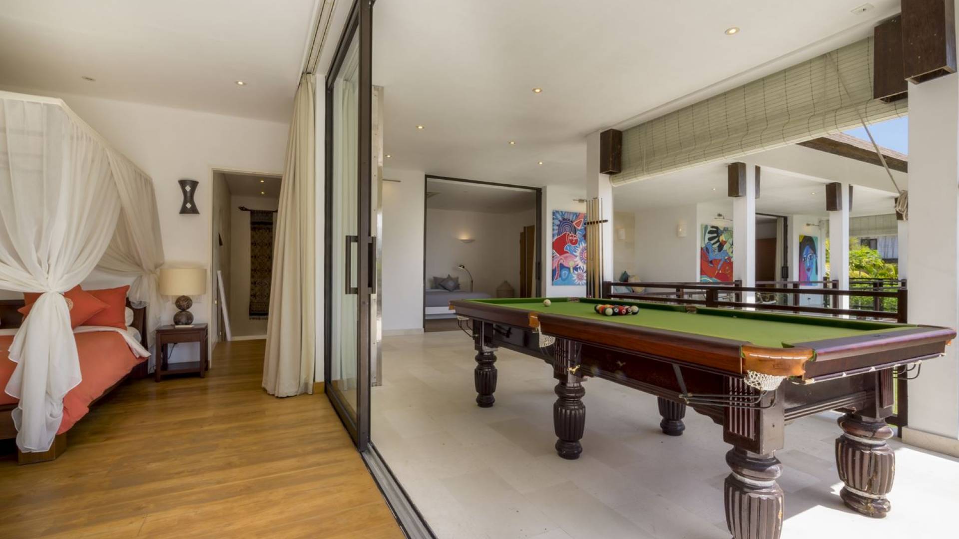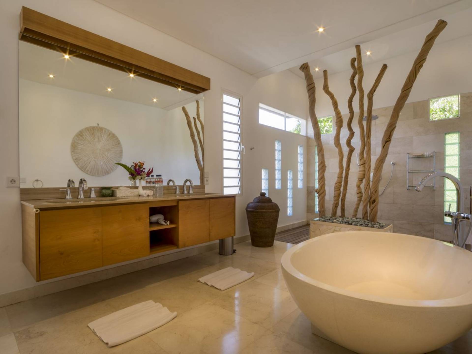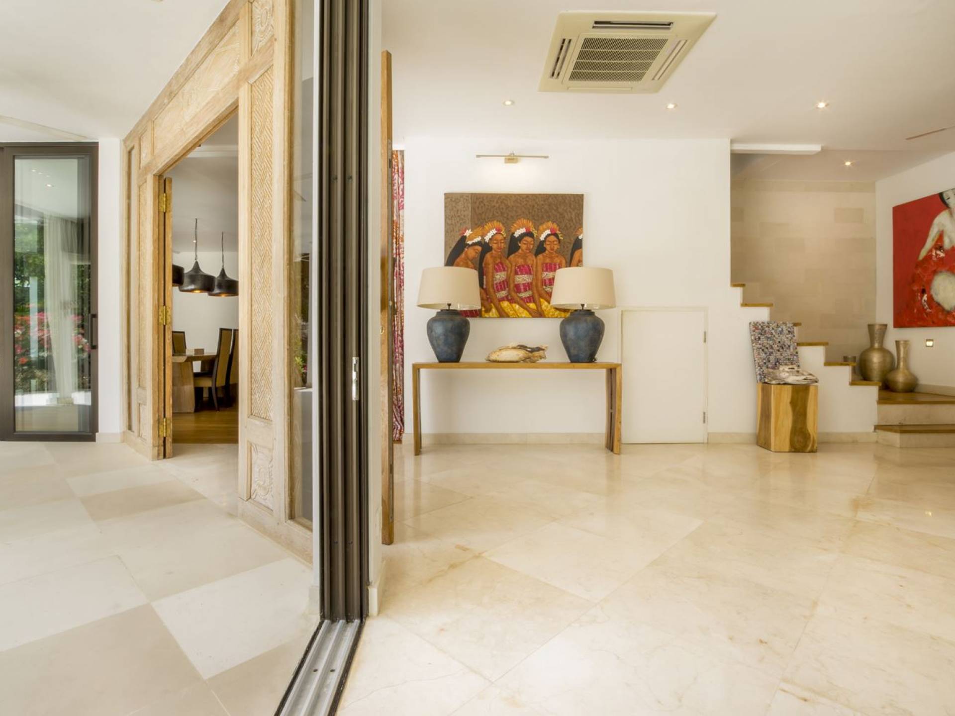 Questo rifugio di lusso è stato progettato per combinare un ambiente paradisiaco con lussi moderni. Potrai godere di comfort con aria condizionata, Wi-Fi veloce e moderne strutture di intrattenimento come TV, lettori DVD, tavoli da biliardo e altro ancora. Il meglio di entrambi i mondi! Il giardino dispone di una splendida piscina a forma di laguna con isole tropicali nel mezzo e una piscina separata poco profonda per i bambini. Ci sono stagni con fontane e prati erbosi dove i bambini possono correre o giocare all'ombra di alberi tropicali maturi. La piscina è fiancheggiata da una terrazza solarium in legno arredata con lussuose sedie lunghe in rattan bianco e lettini da giorno. Segui le scalette per trovare un solarium in pietra con sedie ancora più reclinabili dove puoi prendere il sole con vista sul giardino e sulla piscina. Questo solarium si affaccia sulla piscina per bambini che trabocca nella piscina principale, perfetta per i genitori che vogliono rilassarsi e prendere il sole tenendo d'occhio i bambini.