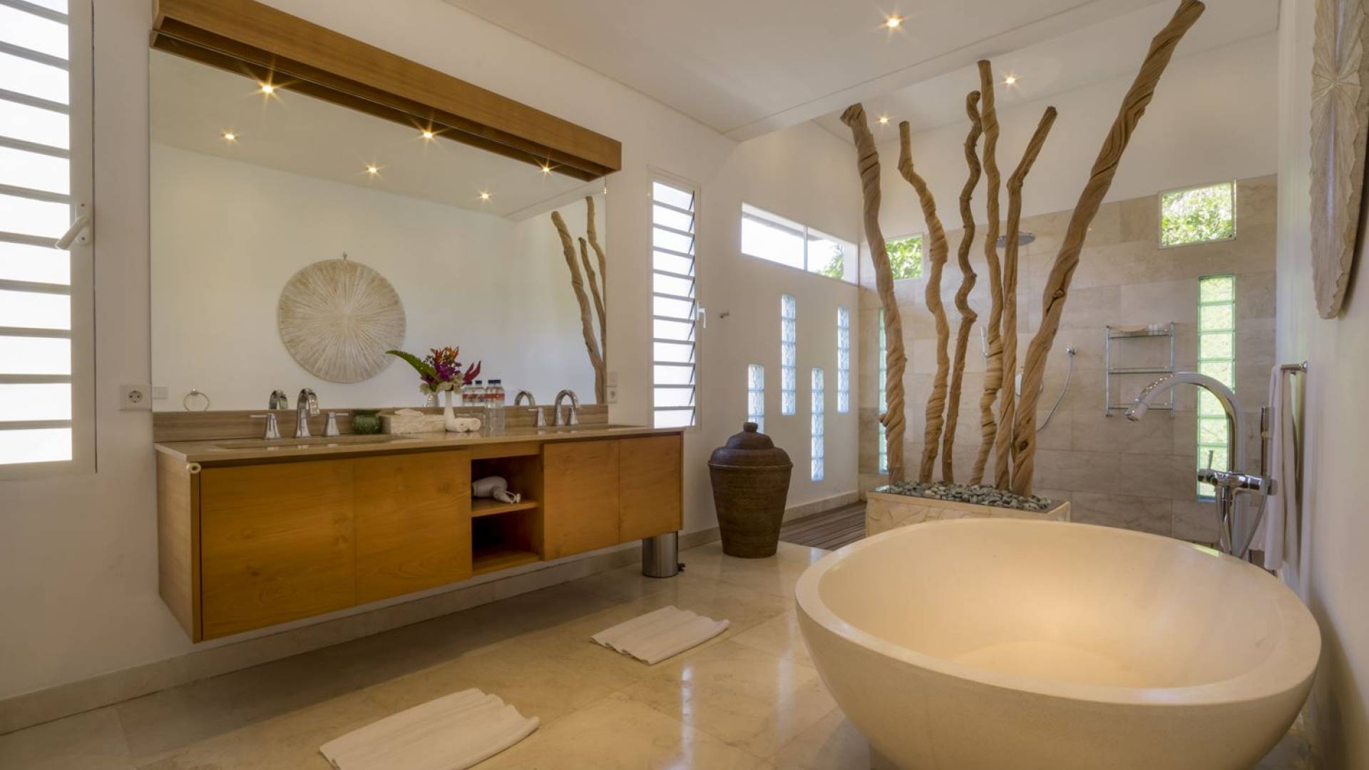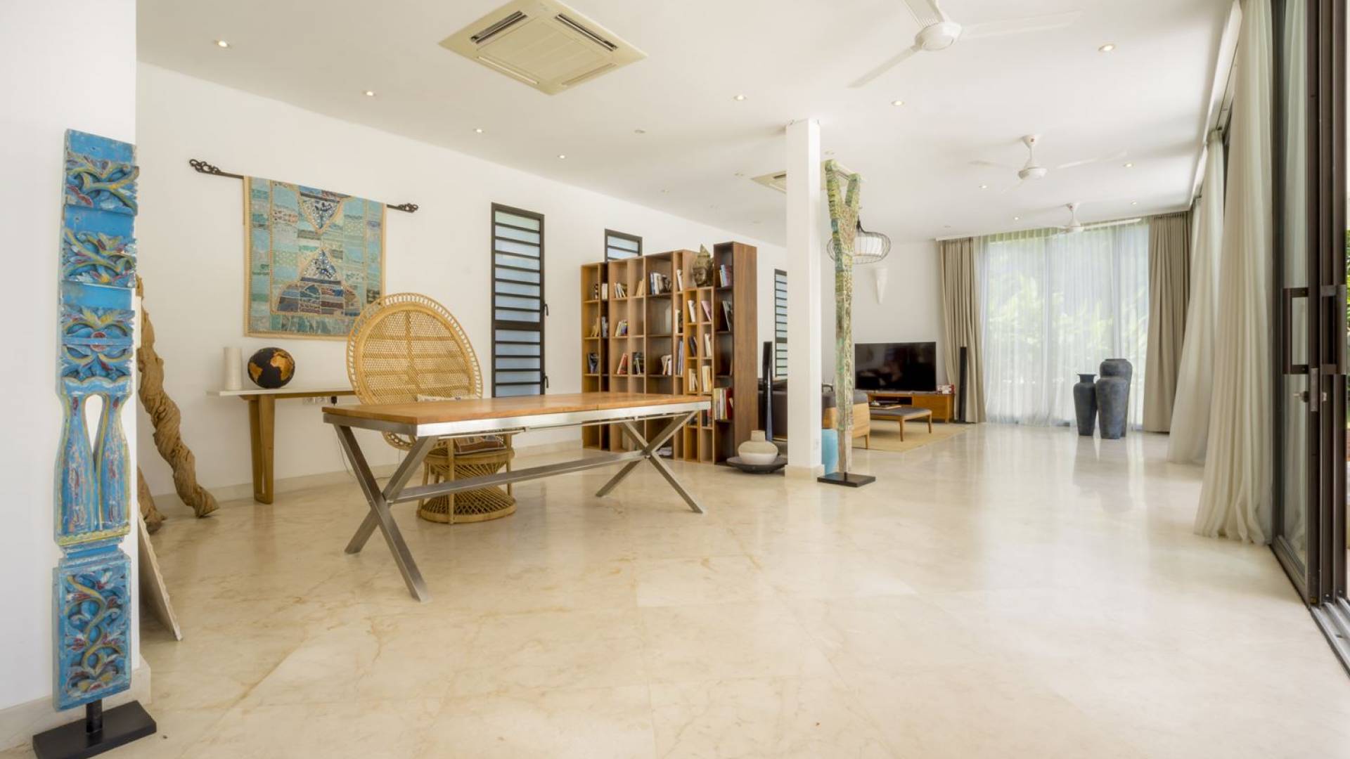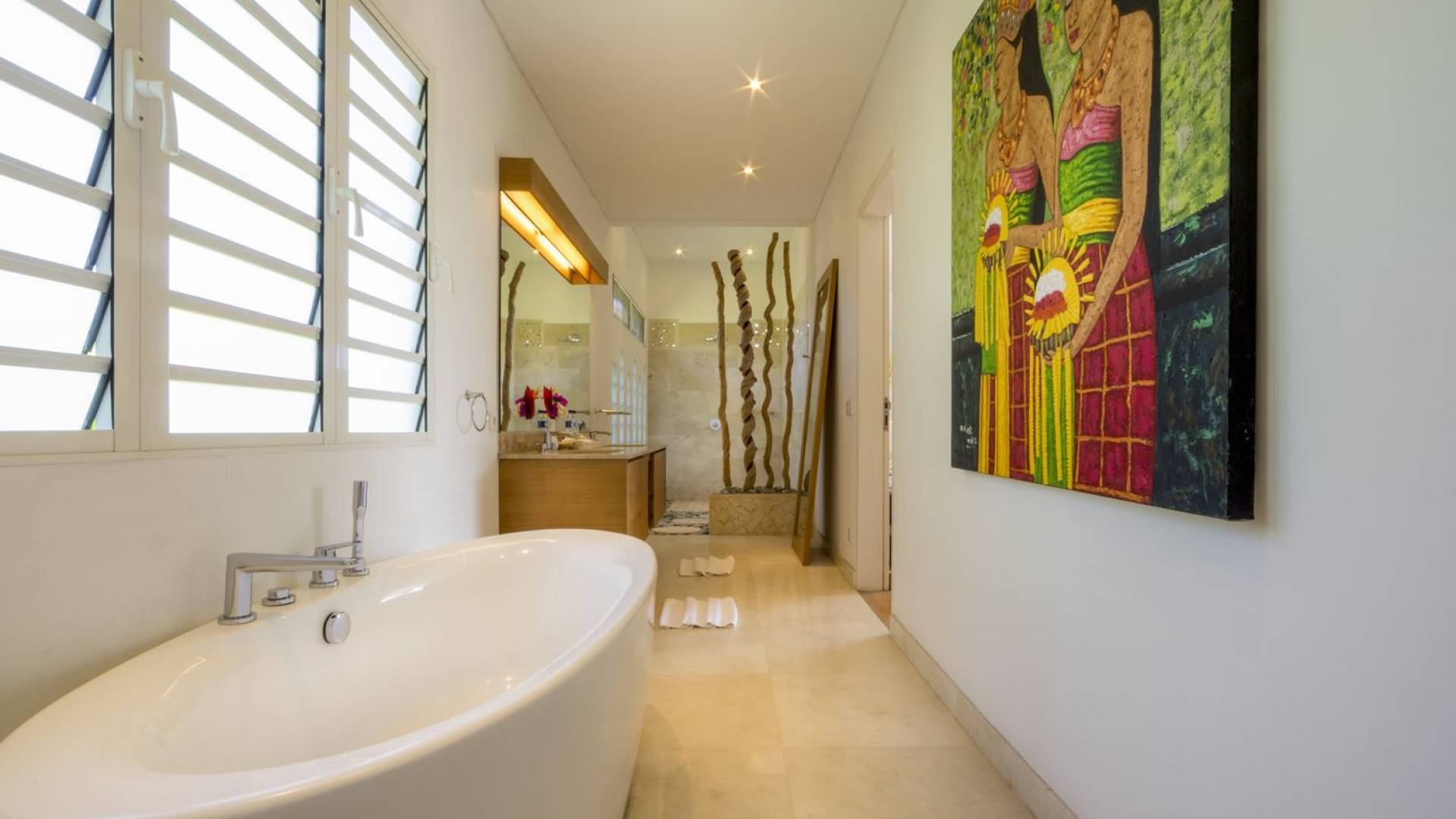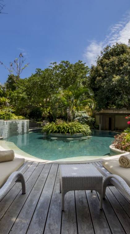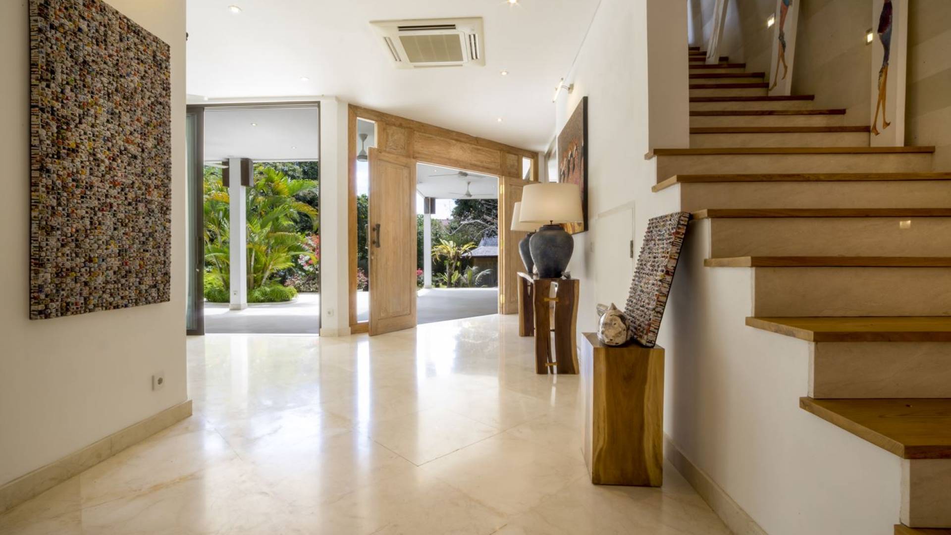 Questo rifugio di lusso è stato progettato per combinare un ambiente paradisiaco con lussi moderni. Potrai godere di comfort con aria condizionata, Wi-Fi veloce e moderne strutture di intrattenimento come TV, lettori DVD, tavoli da biliardo e altro ancora. Il meglio di entrambi i mondi! Il giardino dispone di una splendida piscina a forma di laguna con isole tropicali nel mezzo e una piscina separata poco profonda per i bambini. Ci sono stagni con fontane e prati erbosi dove i bambini possono correre o giocare all'ombra di alberi tropicali maturi. La piscina è fiancheggiata da una terrazza solarium in legno arredata con lussuose sedie lunghe in rattan bianco e lettini da giorno. Segui le scalette per trovare un solarium in pietra con sedie ancora più reclinabili dove puoi prendere il sole con vista sul giardino e sulla piscina. Questo solarium si affaccia sulla piscina per bambini che trabocca nella piscina principale, perfetta per i genitori che vogliono rilassarsi e prendere il sole tenendo d'occhio i bambini.