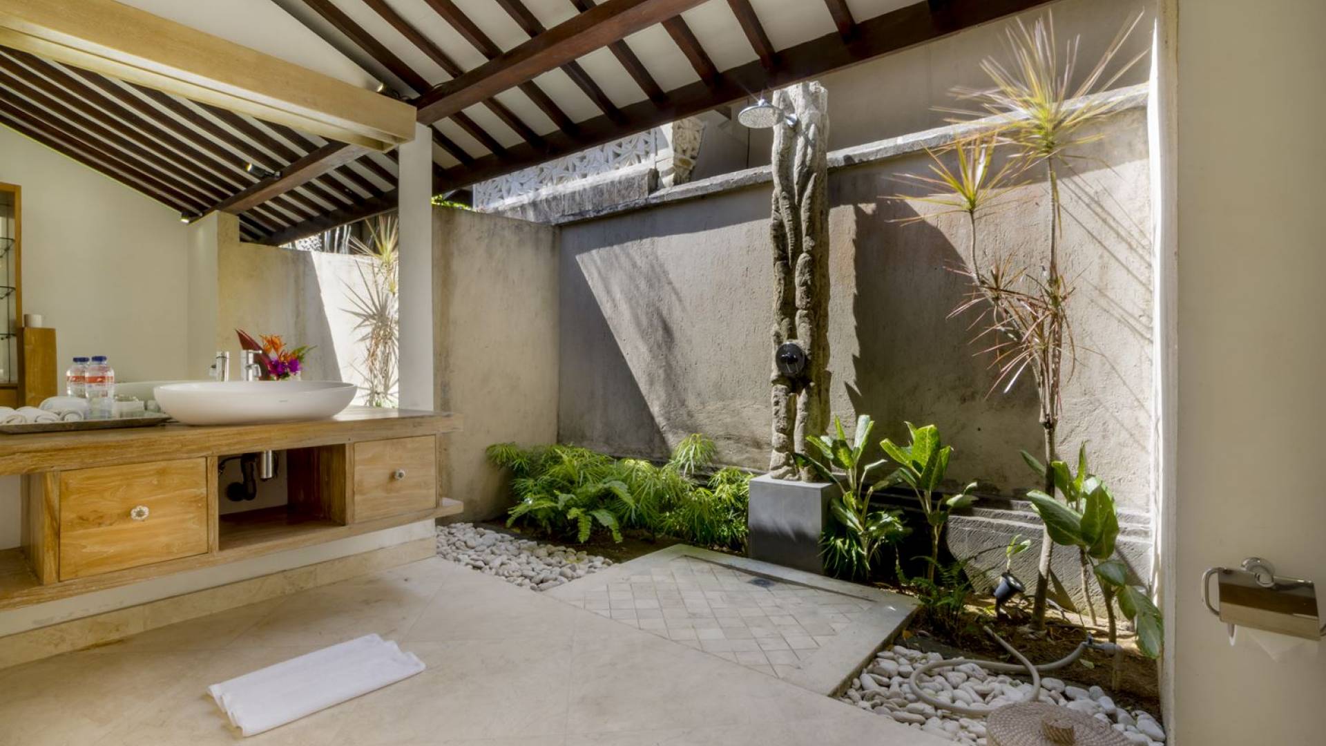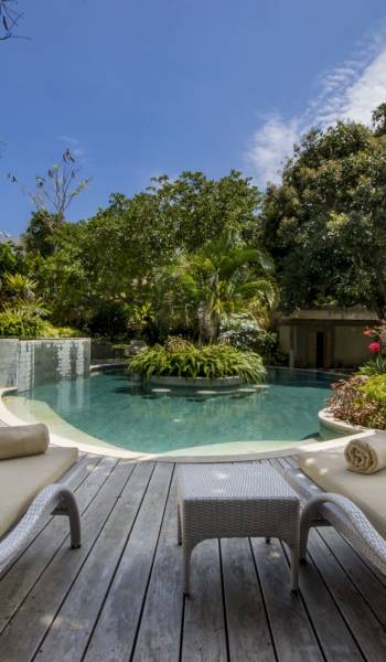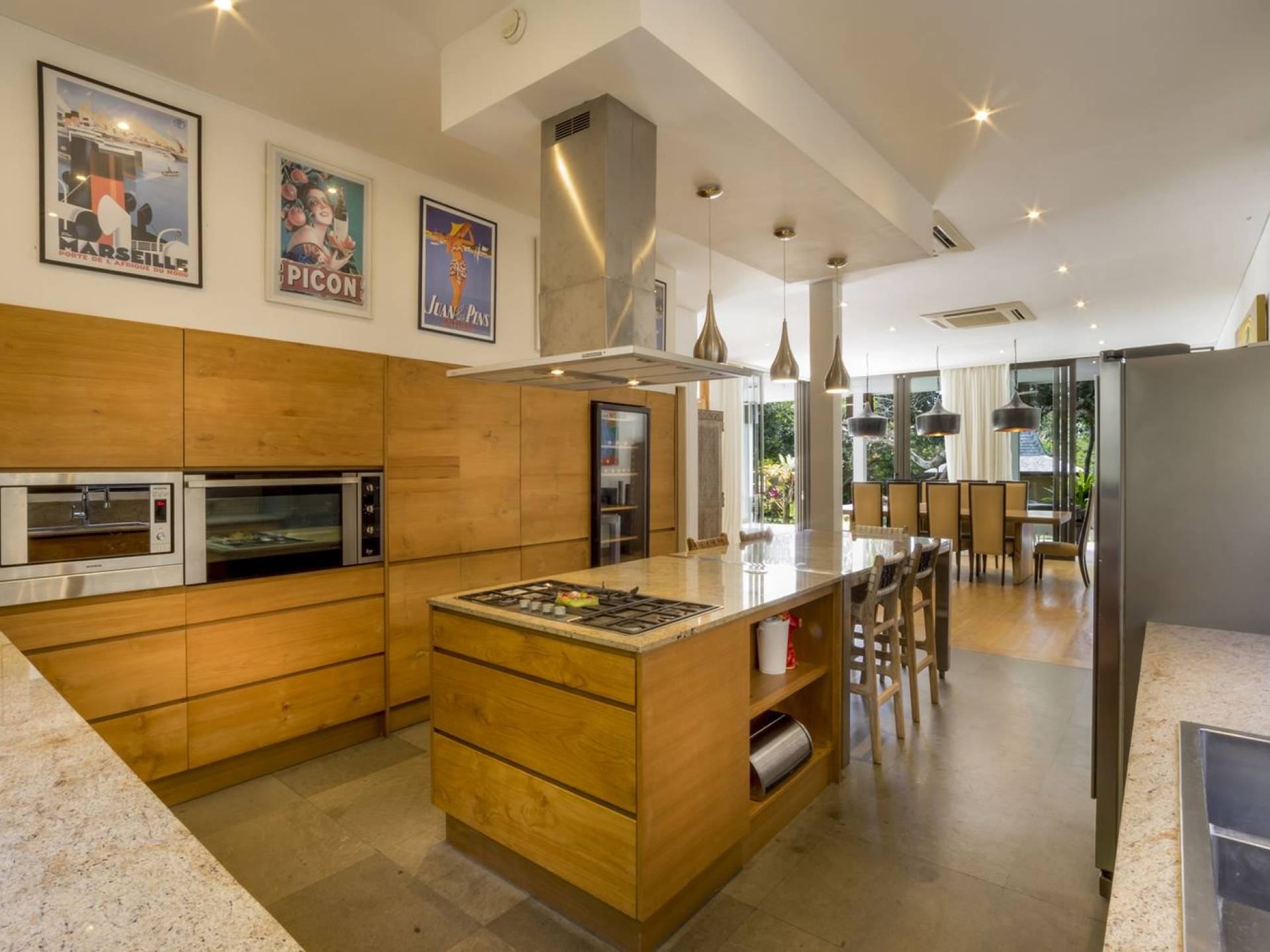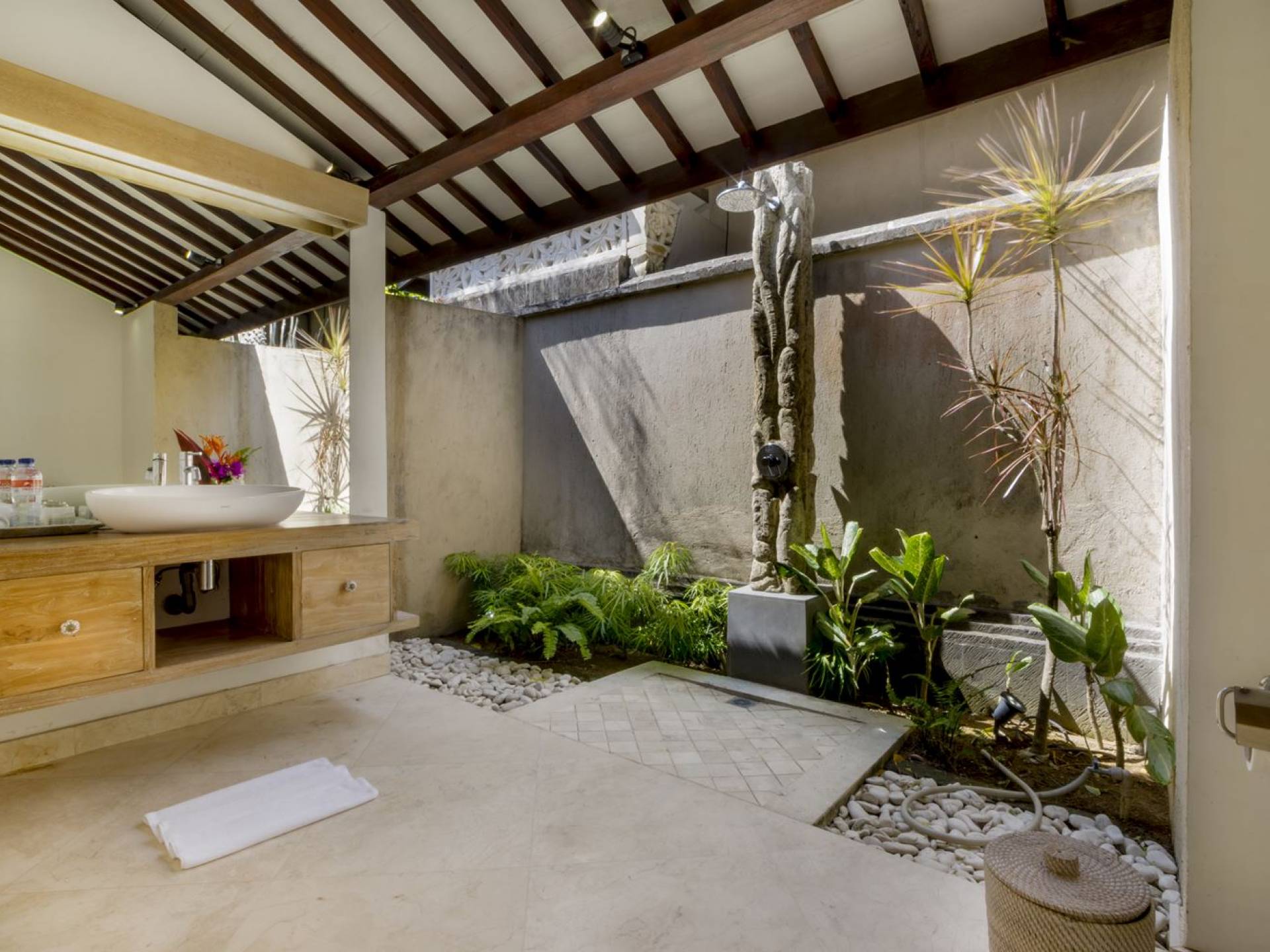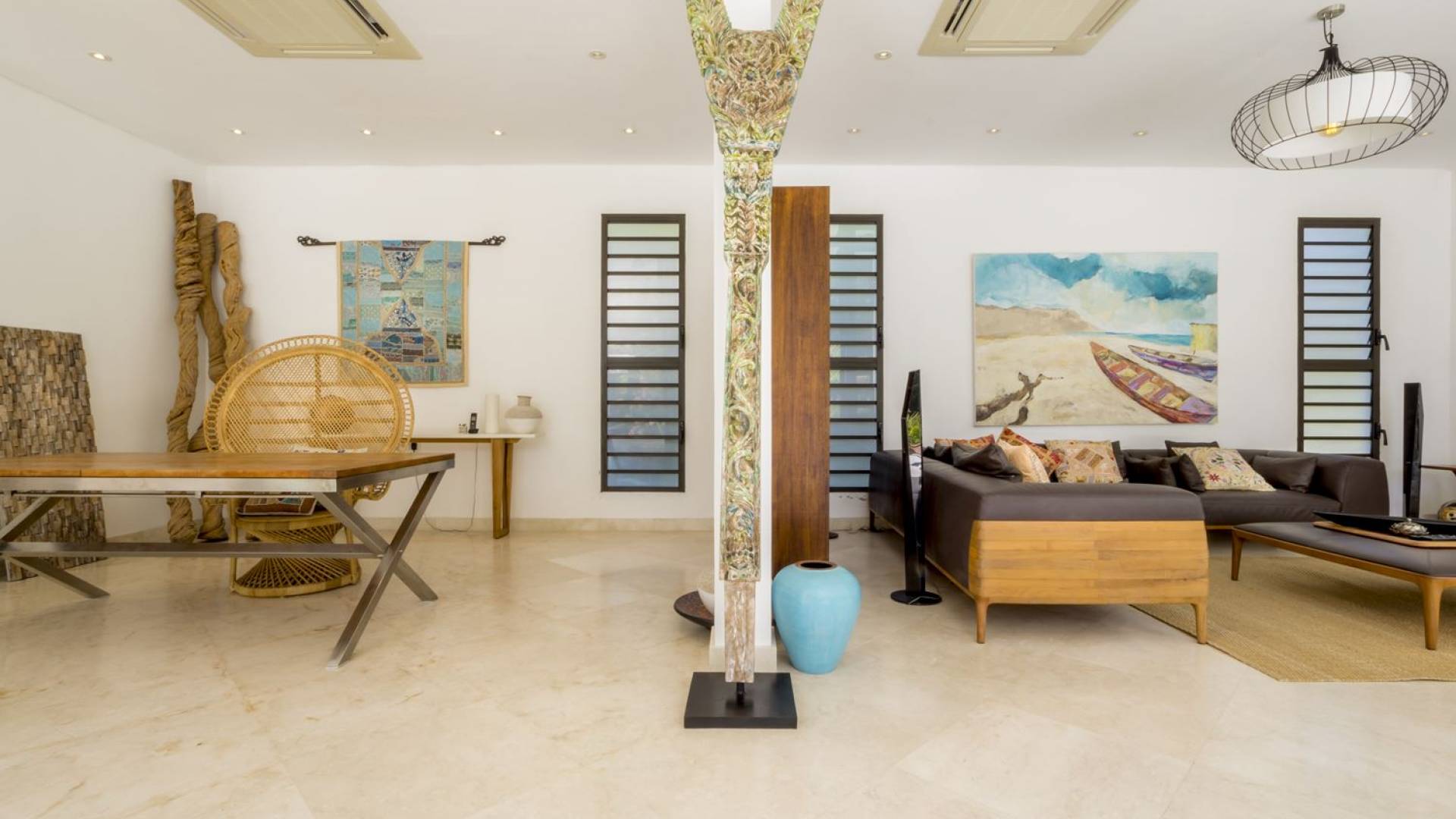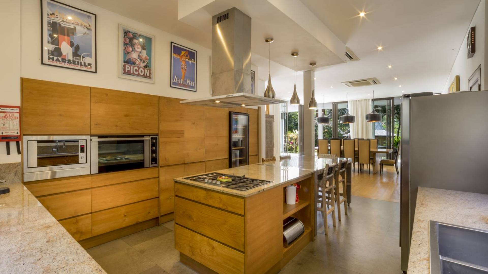 Questo rifugio di lusso è stato progettato per combinare un ambiente paradisiaco con lussi moderni. Potrai godere di comfort con aria condizionata, Wi-Fi veloce e moderne strutture di intrattenimento come TV, lettori DVD, tavoli da biliardo e altro ancora. Il meglio di entrambi i mondi! Il giardino dispone di una splendida piscina a forma di laguna con isole tropicali nel mezzo e una piscina separata poco profonda per i bambini. Ci sono stagni con fontane e prati erbosi dove i bambini possono correre o giocare all'ombra di alberi tropicali maturi. La piscina è fiancheggiata da una terrazza solarium in legno arredata con lussuose sedie lunghe in rattan bianco e lettini da giorno. Segui le scalette per trovare un solarium in pietra con sedie ancora più reclinabili dove puoi prendere il sole con vista sul giardino e sulla piscina. Questo solarium si affaccia sulla piscina per bambini che trabocca nella piscina principale, perfetta per i genitori che vogliono rilassarsi e prendere il sole tenendo d'occhio i bambini.
