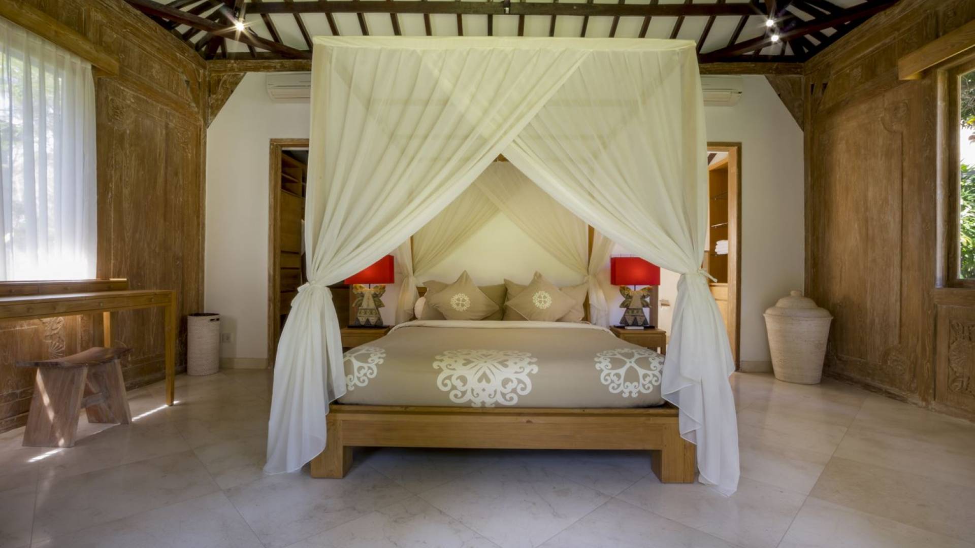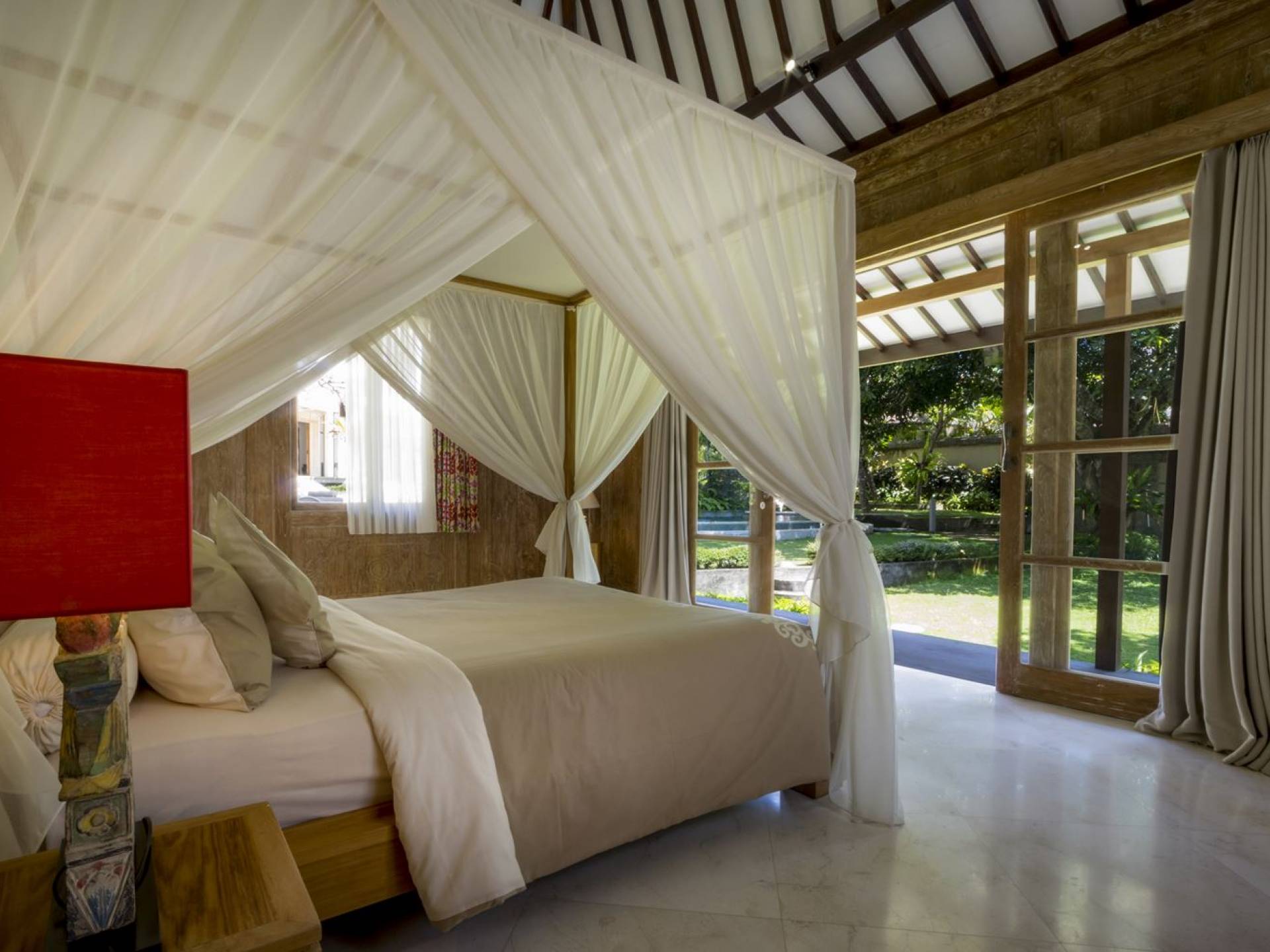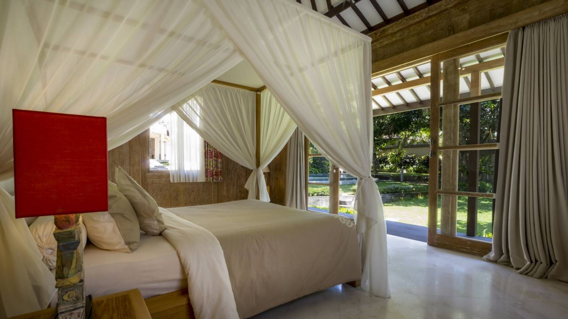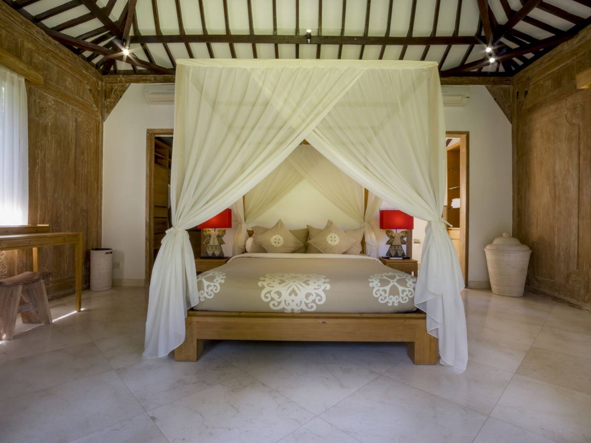 Villa Khajuraho ospita 4 suite di ville decadenti. La camera da letto principale e 2 delle camere degli ospiti si trovano al primo piano dell'edificio principale, con vista mozzafiato sul giardino. La terza camera degli ospiti è nascosta in un padiglione da giardino separato: una tradizionale casa giavanese in legno di teak con un tetto alto e svettante e interni rustici, ideale per coloro che desiderano avere un po' di privacy in più. Tutte e 4 le camere sono dotate di aria condizionata e ogni camera ha un bagno privato in camera per doccia e/o godere di un bagno caldo.