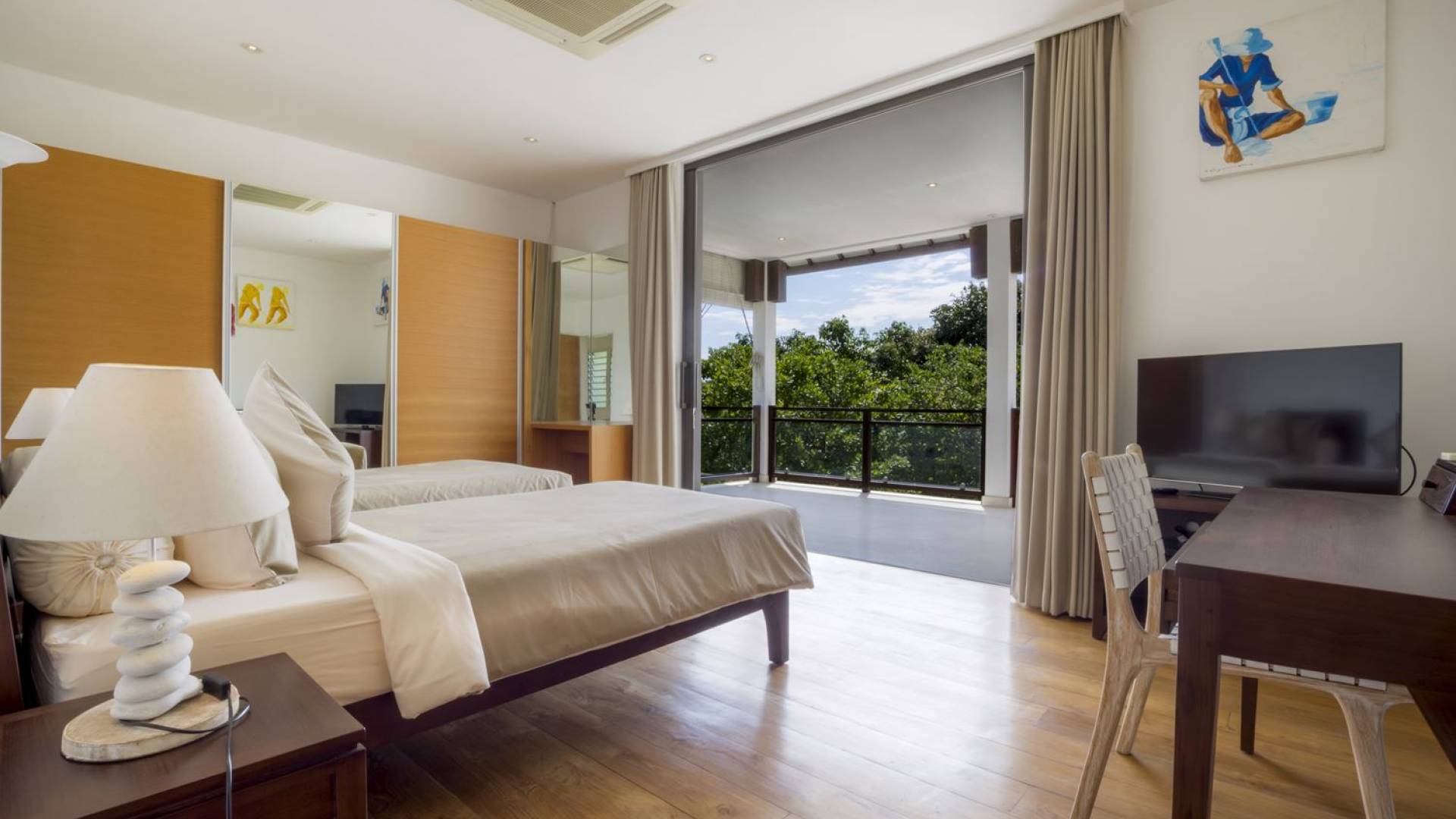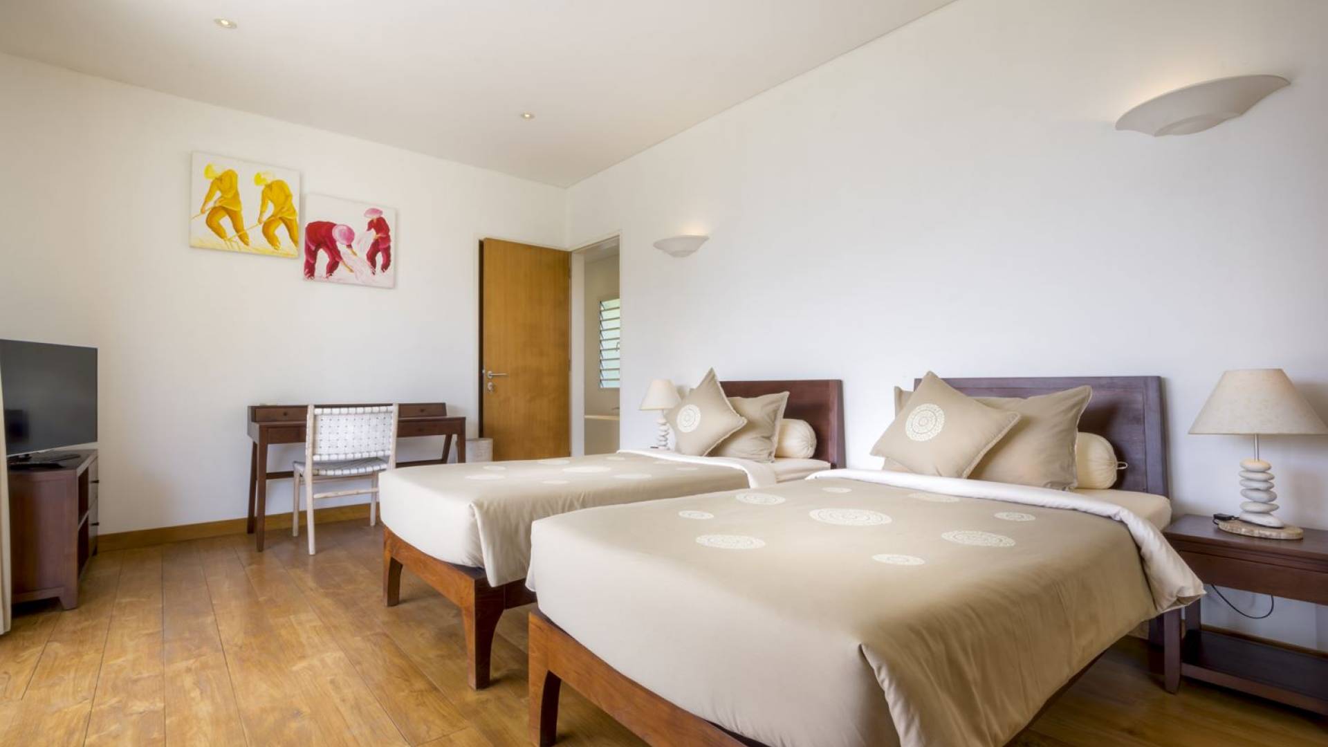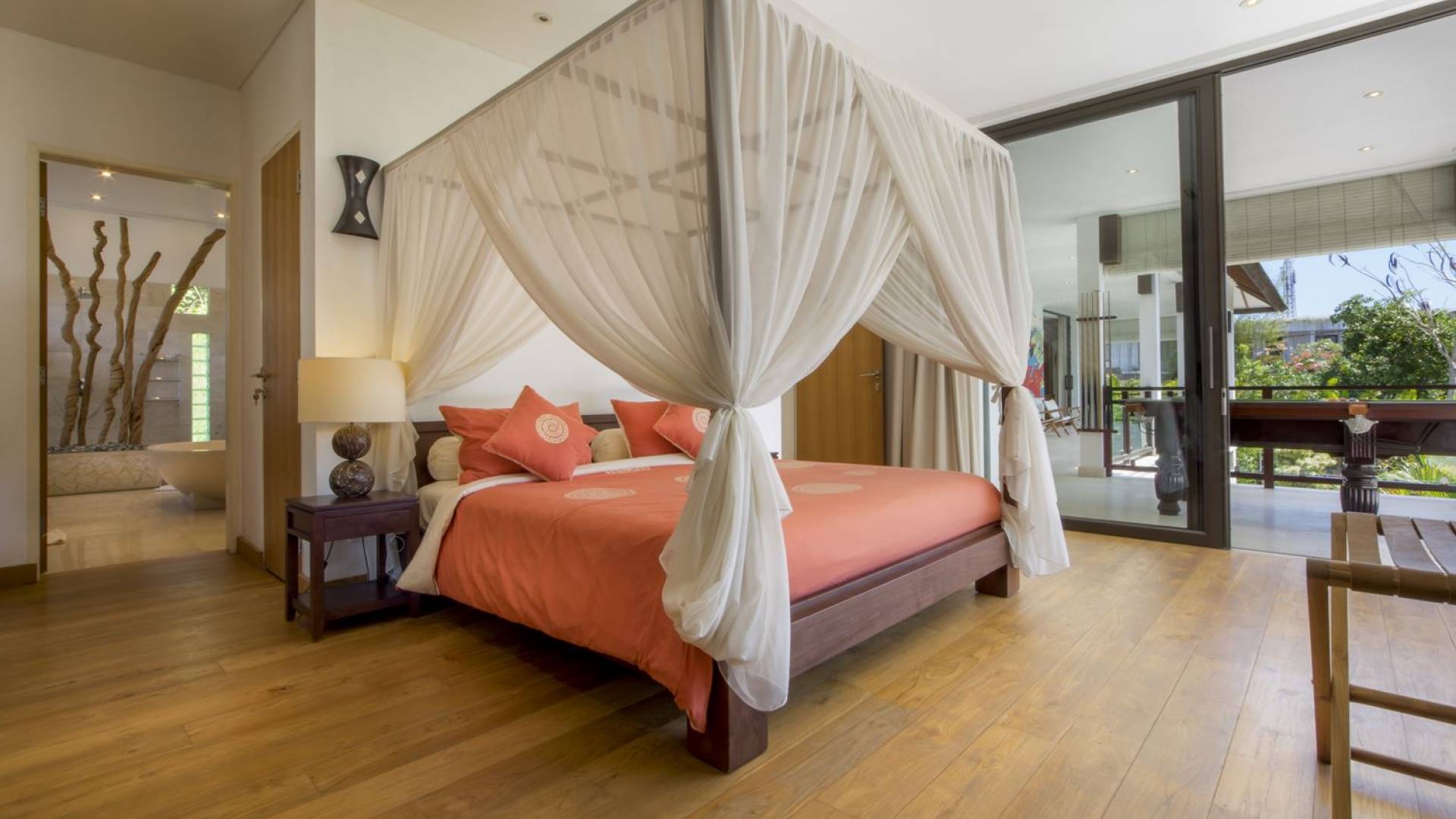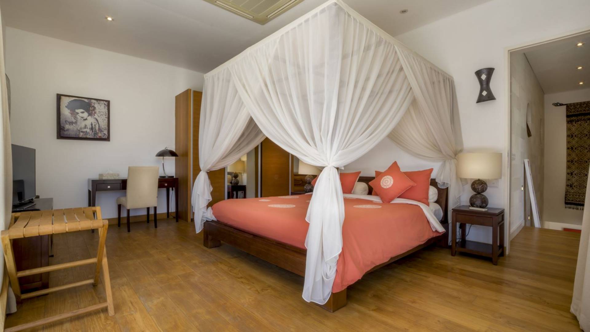 Villa Khajuraho ospita 4 suite di ville decadenti. La camera da letto principale e 2 delle camere degli ospiti si trovano al primo piano dell'edificio principale, con vista mozzafiato sul giardino. La terza camera degli ospiti è nascosta in un padiglione da giardino separato: una tradizionale casa giavanese in legno di teak con un tetto alto e svettante e interni rustici, ideale per coloro che desiderano avere un po' di privacy in più. Tutte e 4 le camere sono dotate di aria condizionata e ogni camera ha un bagno privato in camera per doccia e/o godere di un bagno caldo.