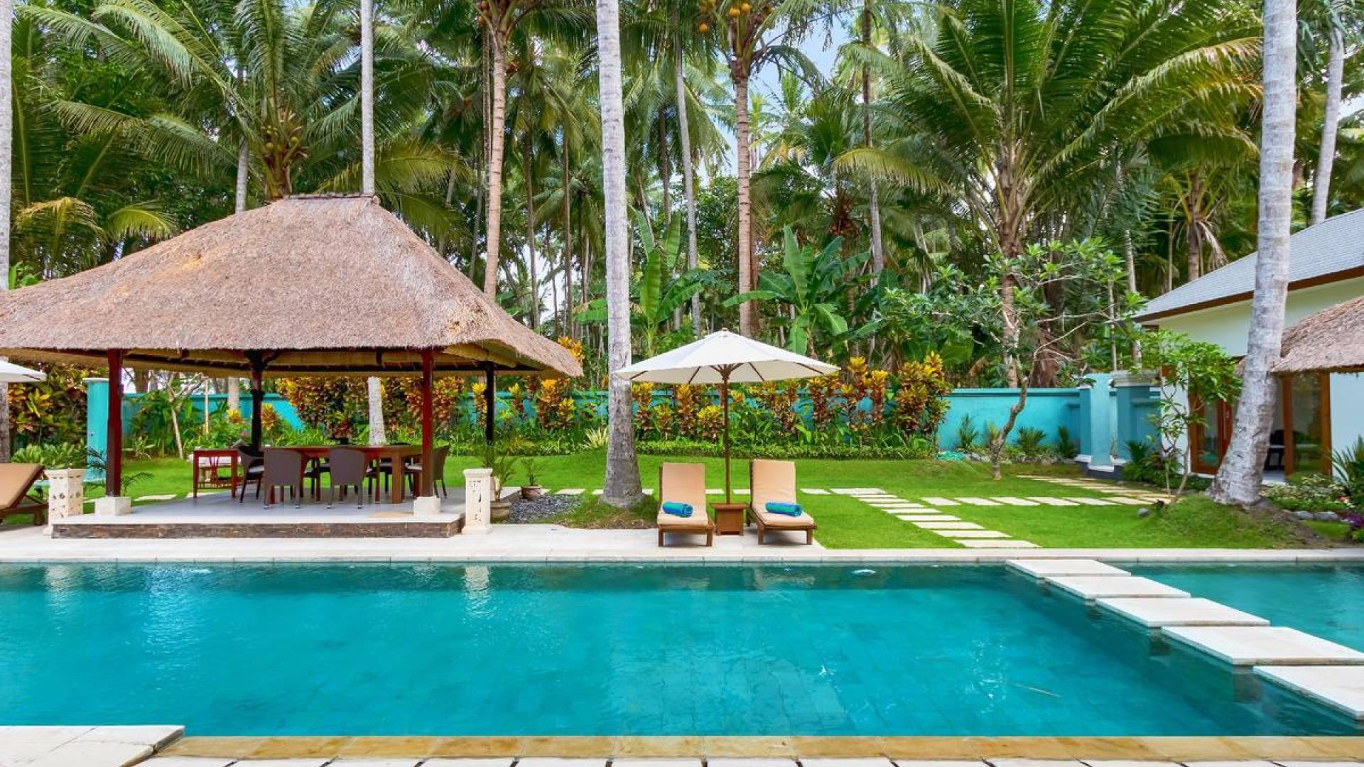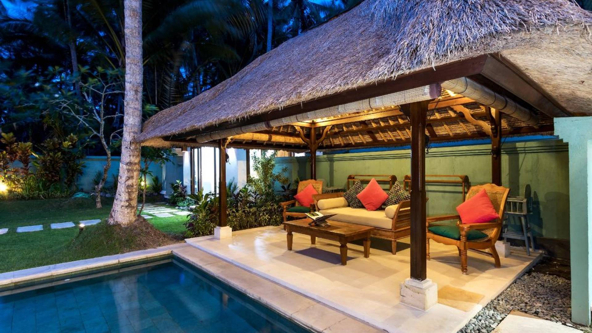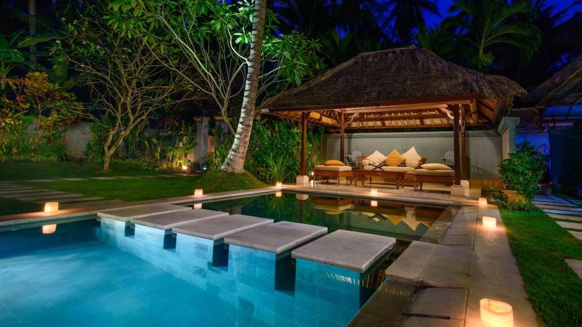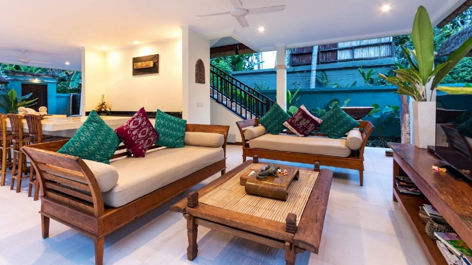 Il cocktail bar è il luogo ideale per sedersi e sorseggiare un drink insieme ai propri cari mentre i bambini corrono sul prato ben curato del giardino o nuotano in piscina. Comodi lettini e divani su ogni lato del cocktail bar offrono bei posti per rannicchiarsi con qualcosa da leggere o per riunirsi per un'accogliente serata al cinema, guardando un film di successo sulla TV a schermo piatto con lettore DVD. Gli amanti del dolce stile di vita dell'isola tropicale trascorreranno molto tempo in giardino, ceneranno all'aperto nella sala da pranzo a bordo piscina, leggeranno un libro nel gazebo ombreggiato nascosto con lettini da giorno o addirittura si concederanno un massaggio tradizionale balinese.
