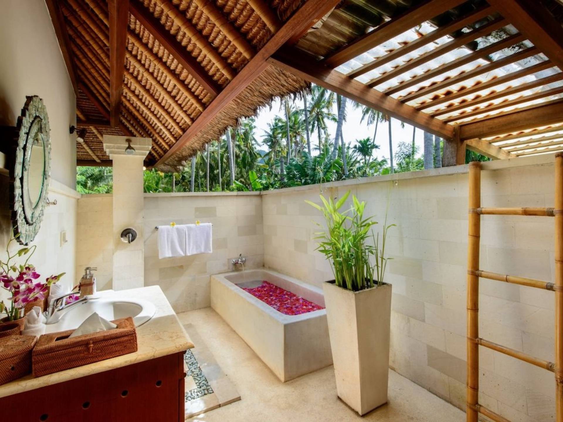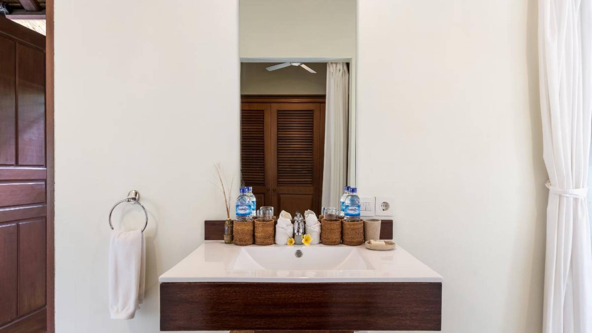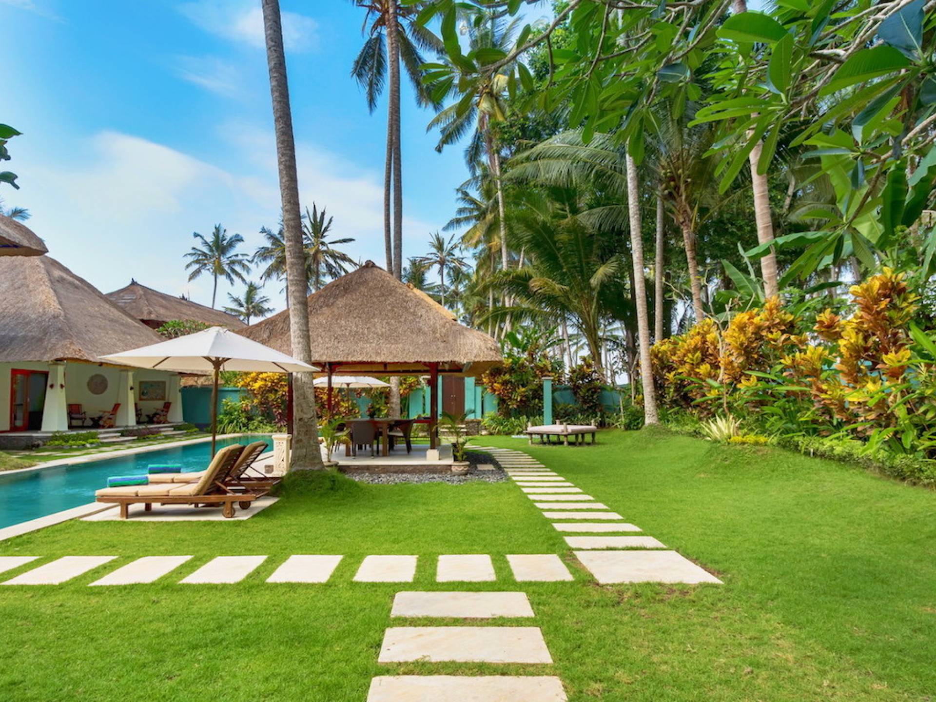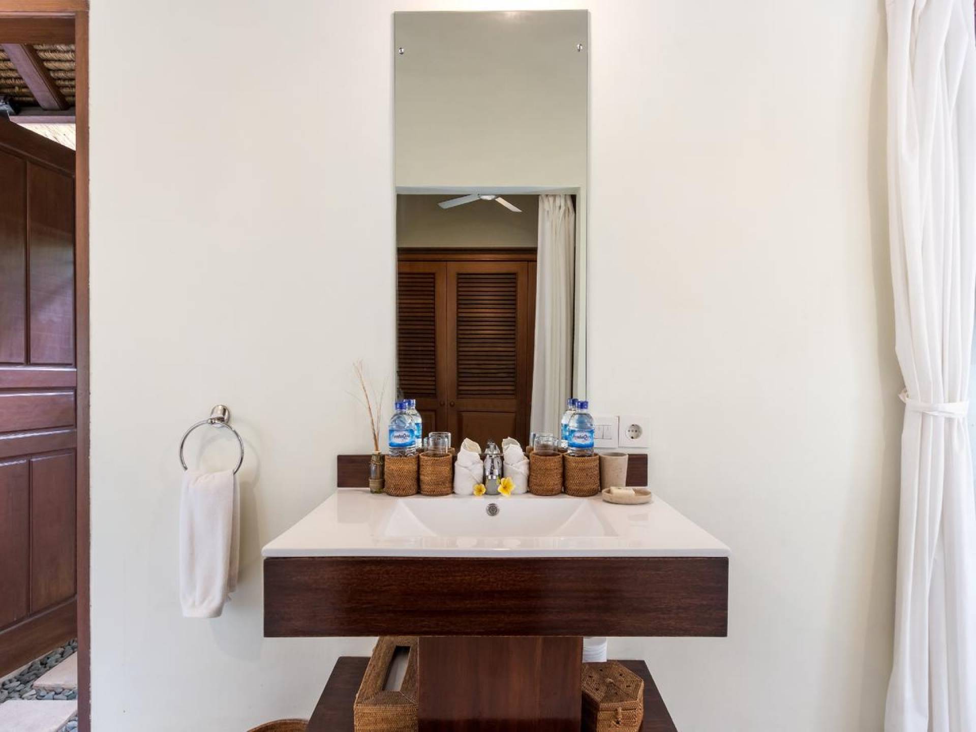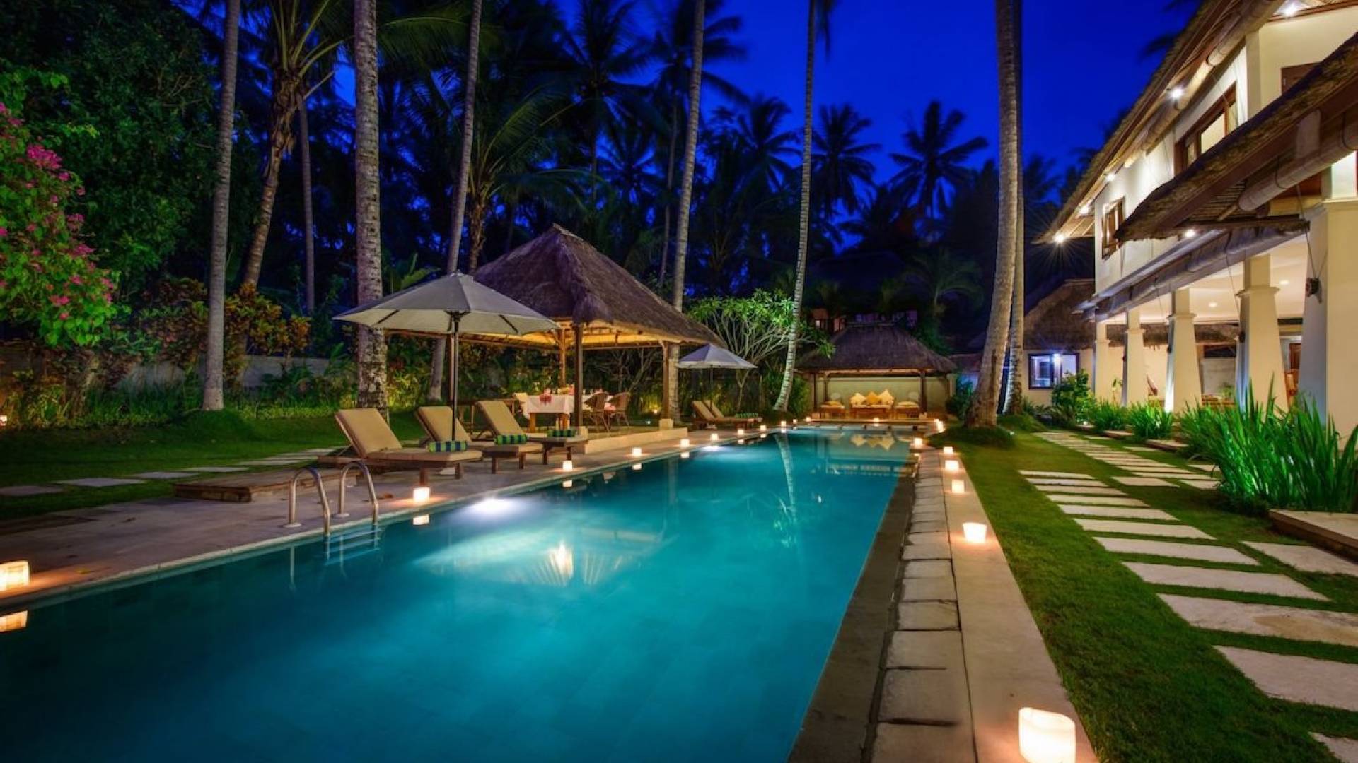 Il cocktail bar è il luogo ideale per sedersi e sorseggiare un drink insieme ai propri cari mentre i bambini corrono sul prato ben curato del giardino o nuotano in piscina. Comodi lettini e divani su ogni lato del cocktail bar offrono bei posti per rannicchiarsi con qualcosa da leggere o per riunirsi per un'accogliente serata al cinema, guardando un film di successo sulla TV a schermo piatto con lettore DVD. Gli amanti del dolce stile di vita dell'isola tropicale trascorreranno molto tempo in giardino, ceneranno all'aperto nella sala da pranzo a bordo piscina, leggeranno un libro nel gazebo ombreggiato nascosto con lettini da giorno o addirittura si concederanno un massaggio tradizionale balinese.