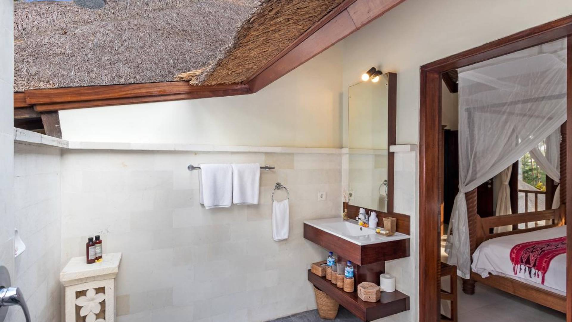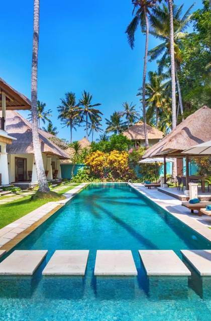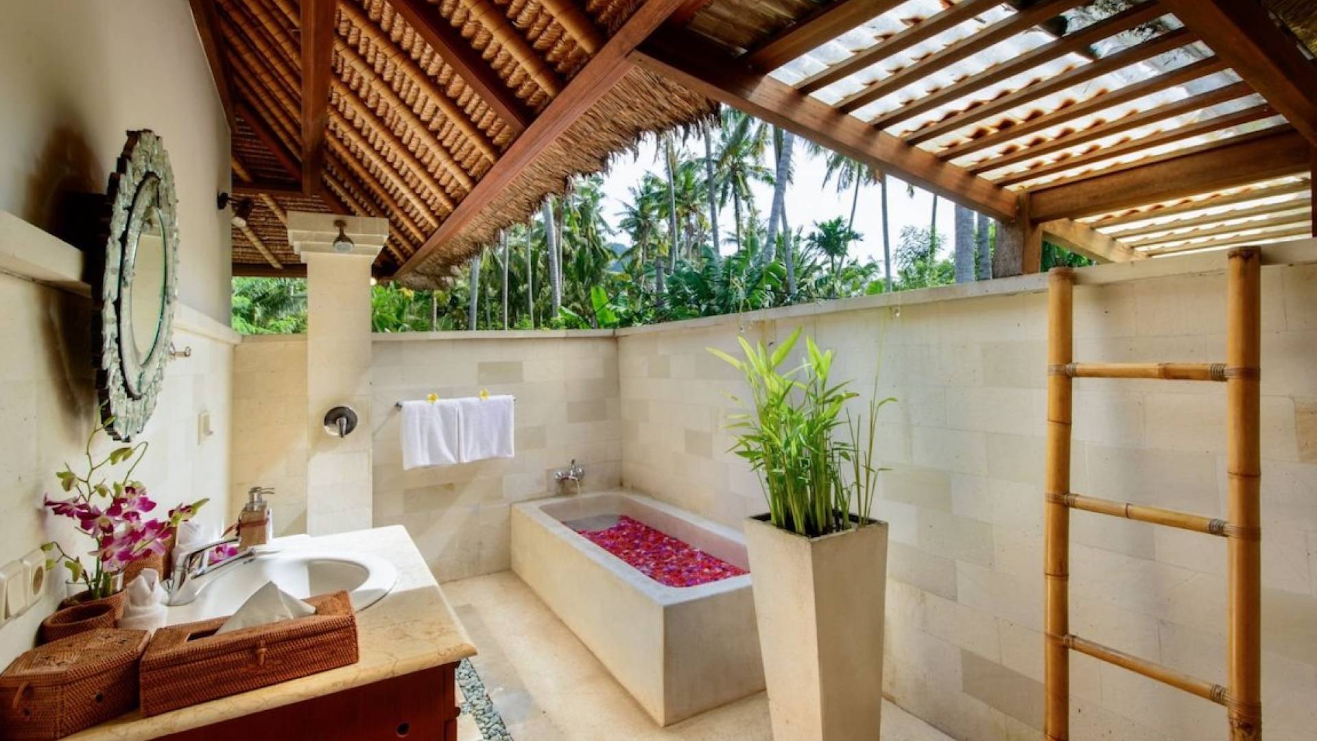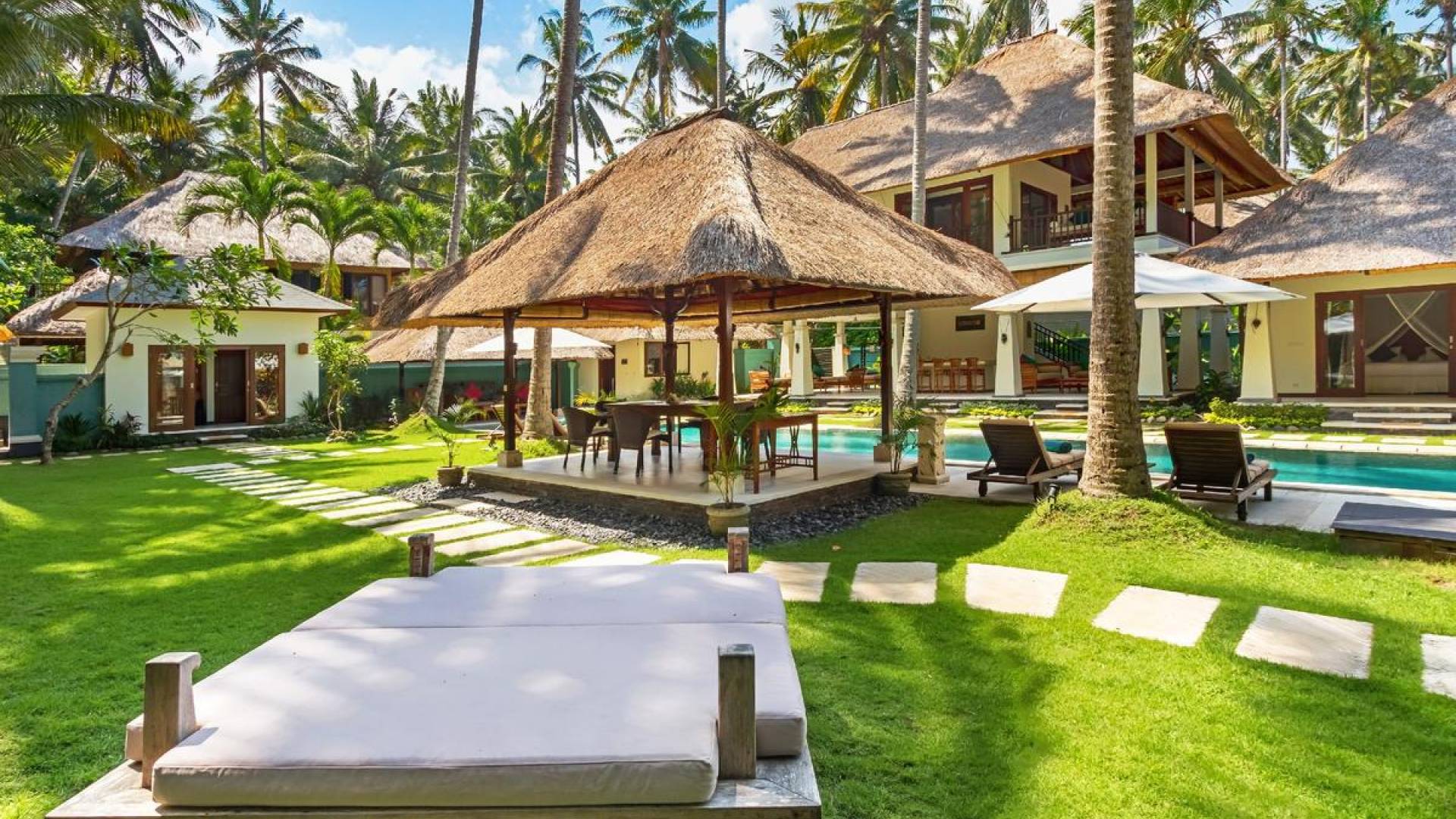 Villa Gils Candidasa è un meraviglioso rifugio per famiglie, nascosto nella tranquilla Candi Dasa, proprio sulla sabbia e sul mare della costa orientale di Bali. Tutto il necessario per rilassarsi completamente questa vacanza sull'Isola degli Dei! Villa Gils Candidasa fonde elementi moderni e tradizionali, consentendo agli ospiti di trascorrere le vacanze in modo tropicale senza dover rinunciare ai comfort moderni. Il padiglione vivente di Villa Gils è progettato a pianta aperta sul giardino, affacciato sull'acqua cristallina della piscina.