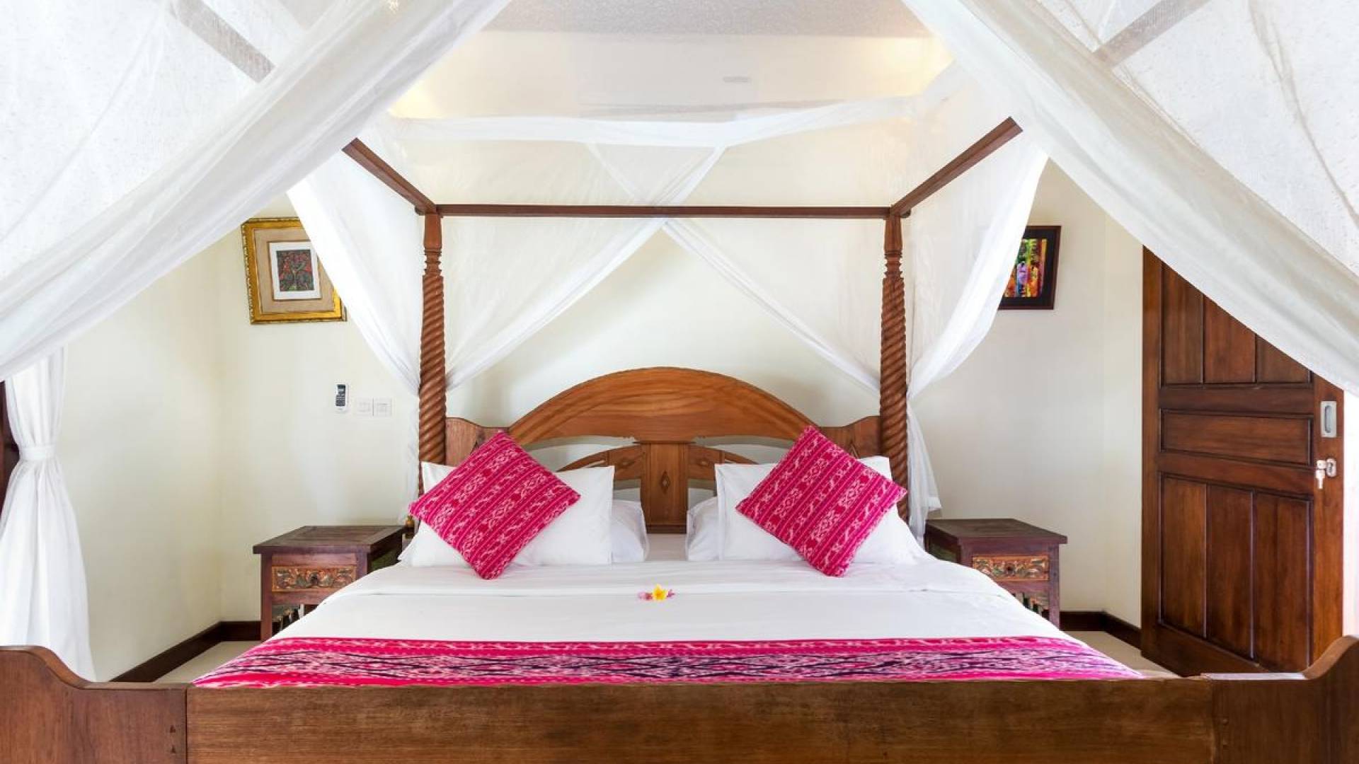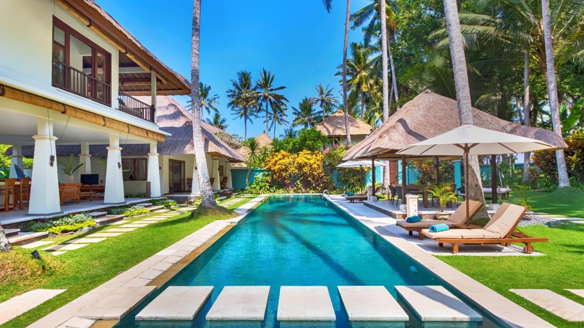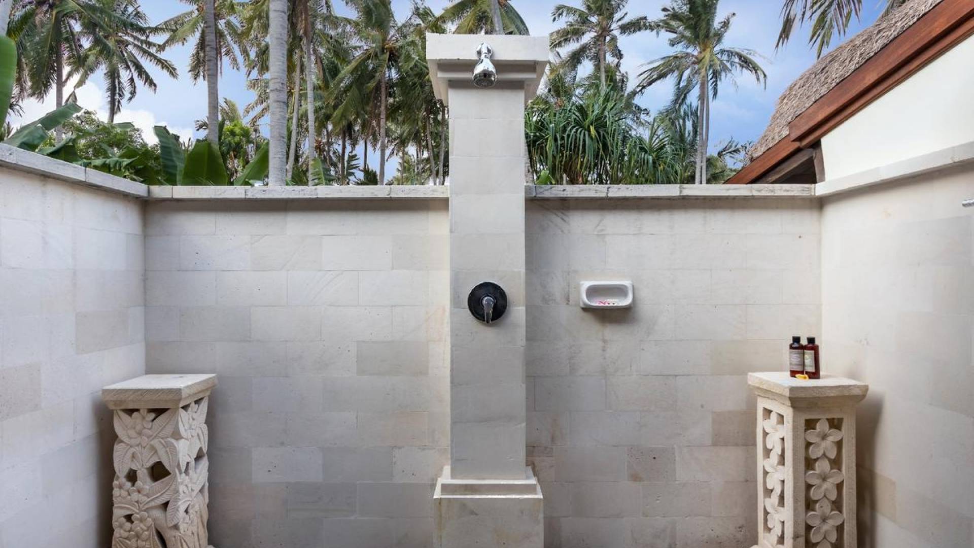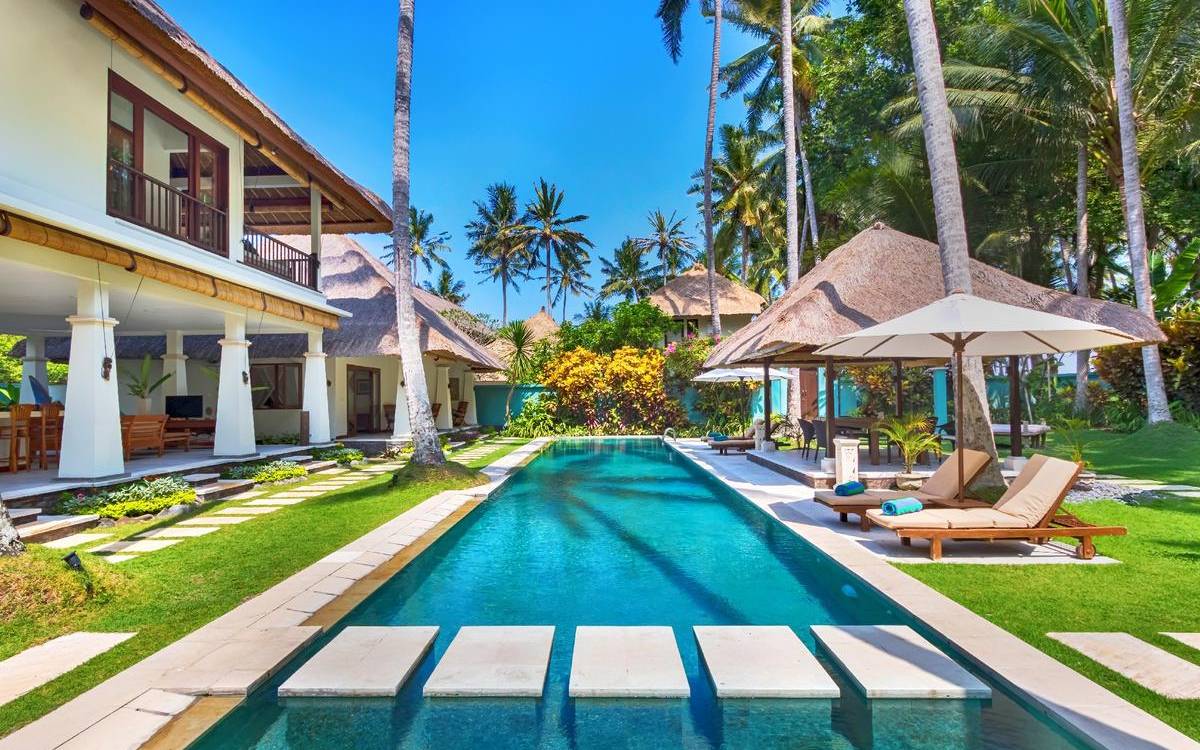 Villa Gils Candidasa è un meraviglioso rifugio per famiglie, nascosto nella tranquilla Candi Dasa, proprio sulla sabbia e sul mare della costa orientale di Bali. Tutto il necessario per rilassarsi completamente questa vacanza sull'Isola degli Dei! Villa Gils Candidasa fonde elementi moderni e tradizionali, consentendo agli ospiti di trascorrere le vacanze in modo tropicale senza dover rinunciare ai comfort moderni. Il padiglione vivente di Villa Gils è progettato a pianta aperta sul giardino, affacciato sull'acqua cristallina della piscina.