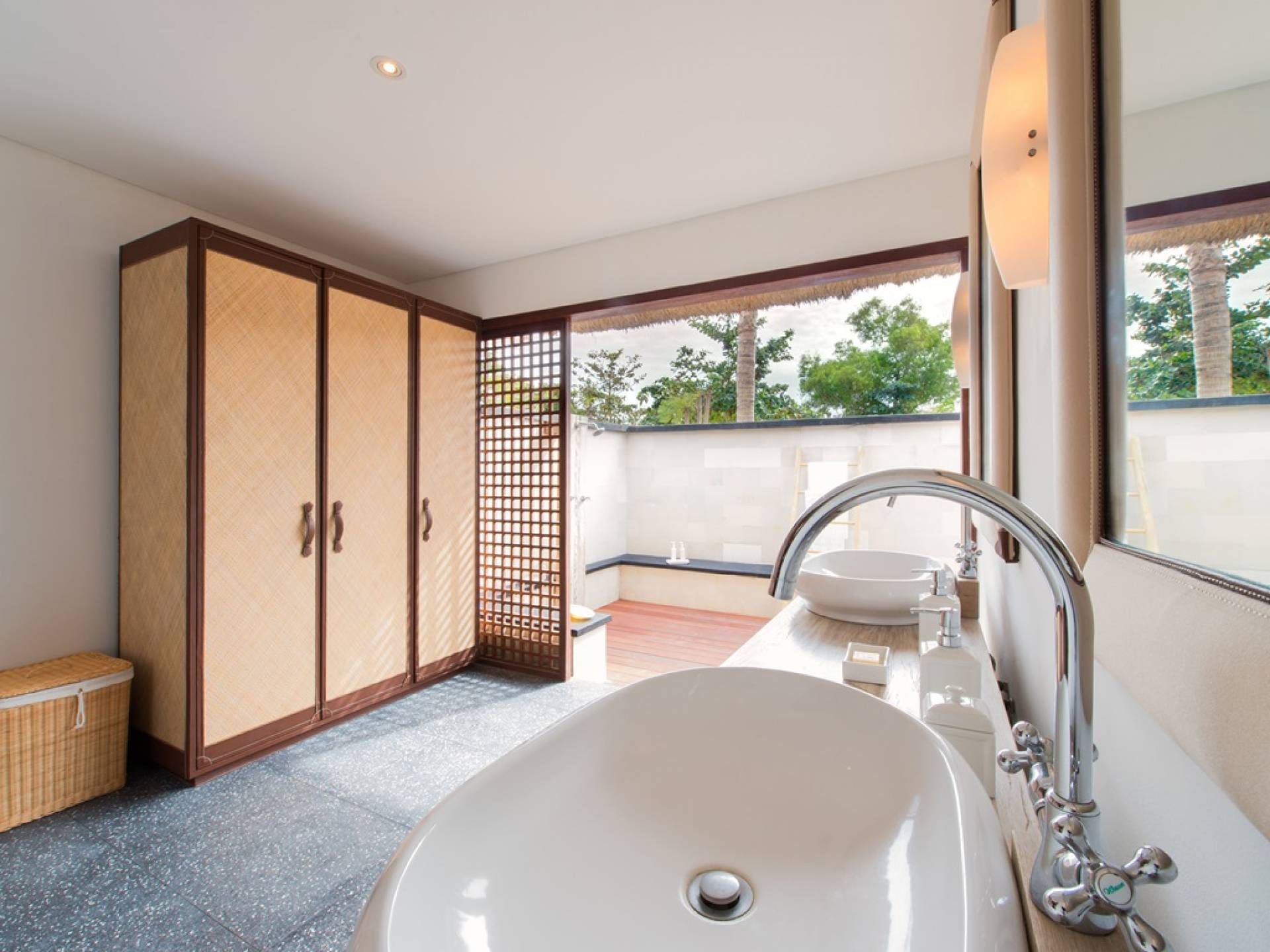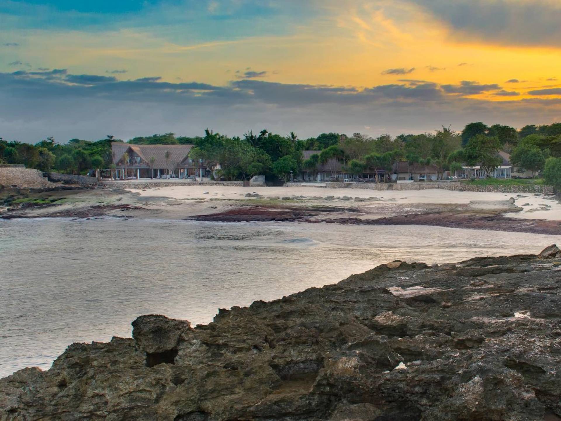 Villa Voyage Bali gode di una posizione privilegiata su una piccola insenatura sabbiosa nell'angolo sud-ovest di Nusa Lembongan; a parte Nusa Dua sulla terraferma di Bali, da dove di notte una serie di luci brilla sul mare, l'approdo più vicino è l'Australia! Voyage fa parte di una piccola ed esclusiva comunità composta da una manciata di ville private lungo la spiaggia e rialzate sulla scogliera. Accanto c'è il Beach Club a Sandy Bay con il suo affascinante e tranquillo ristorante sulla spiaggia e la nuovissima spa Glo. Dall'altra parte della baia si trova la spettacolare formazione rocciosa di Devil's Tear, una scena di onde che si infrangono e pennacchi di schiuma dalla punta bianca. Una piacevole passeggiata di dieci minuti lungo il sentiero in cima alla scogliera - popolato da piante pandane e occasionali mucche - è Dream Beach con il suo famoso caffè e la spiaggia balneabile; a quindici minuti a piedi nella direzione opposta ci sono i ristoranti e i bar di Mushroom Beach.