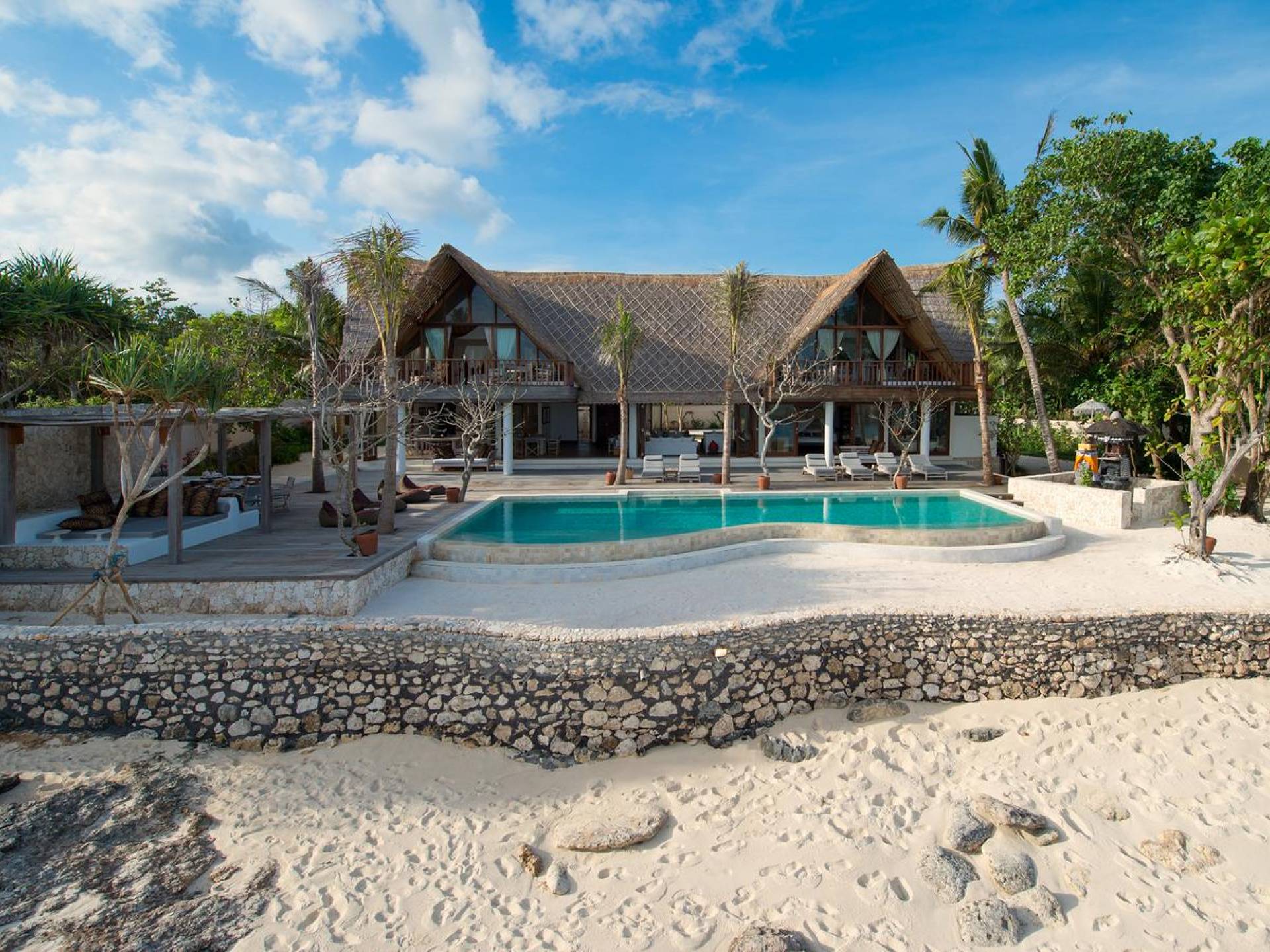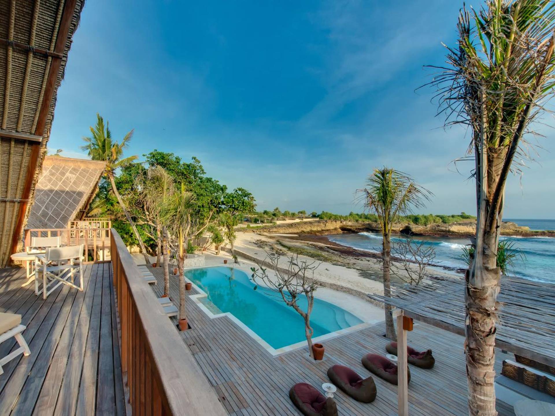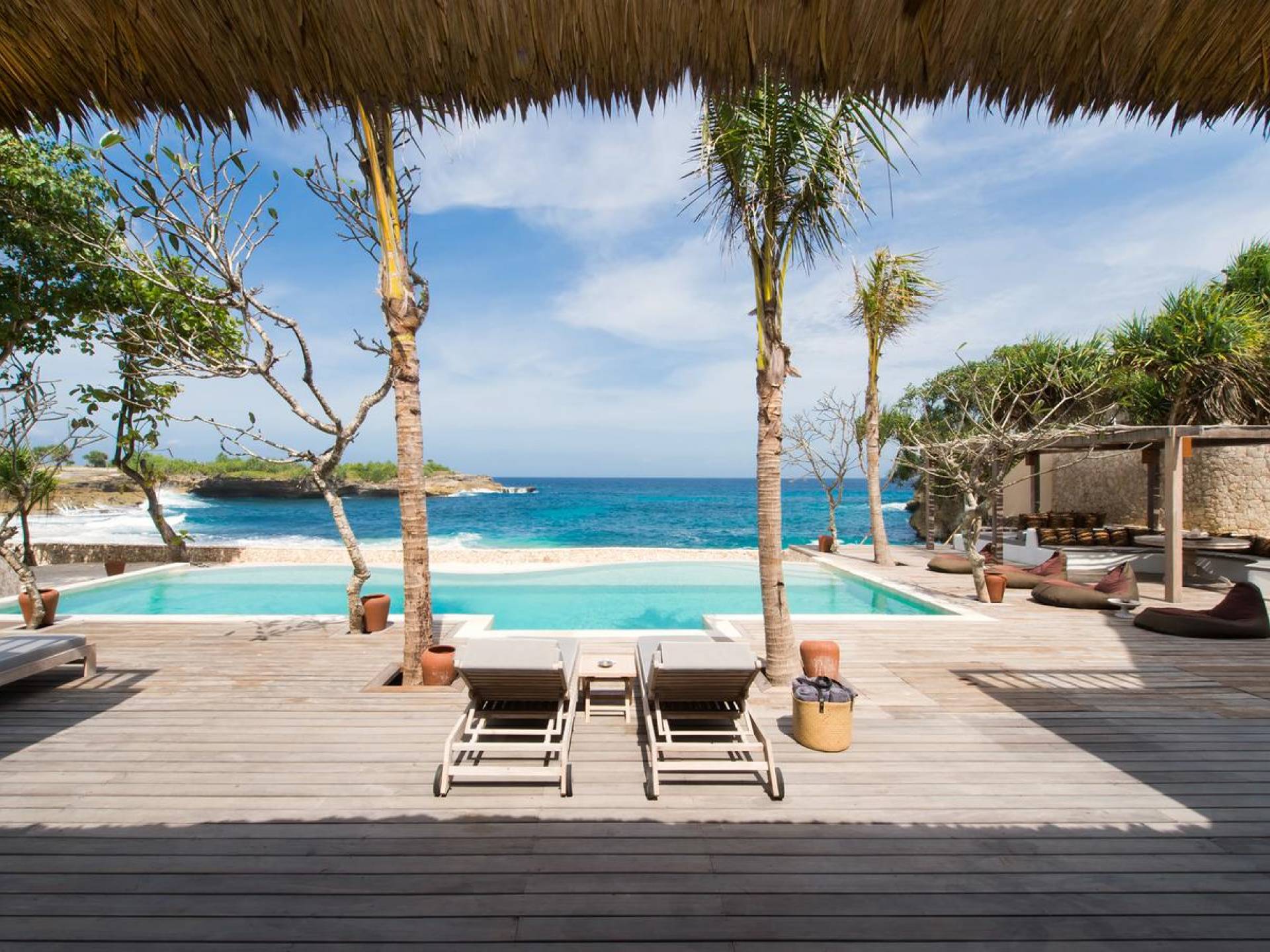 Villa Voyage Bali ha un nome appropriato. Questo rifugio privato con cinque camere da letto situato accanto a una spiaggia appartata di sabbia bianca, sull'idilliaca isola tropicale di Lembongan, a soli 30 minuti di barca privata dal porto di Benoa di Bali, trasporta gli ospiti in un altro tempo e luogo con la sua nostalgia rustica e il senso di avventura .