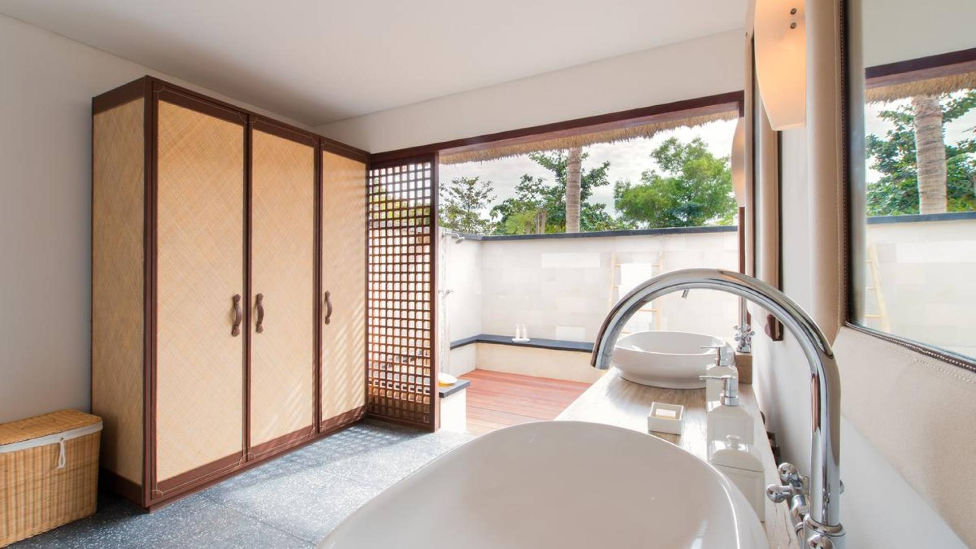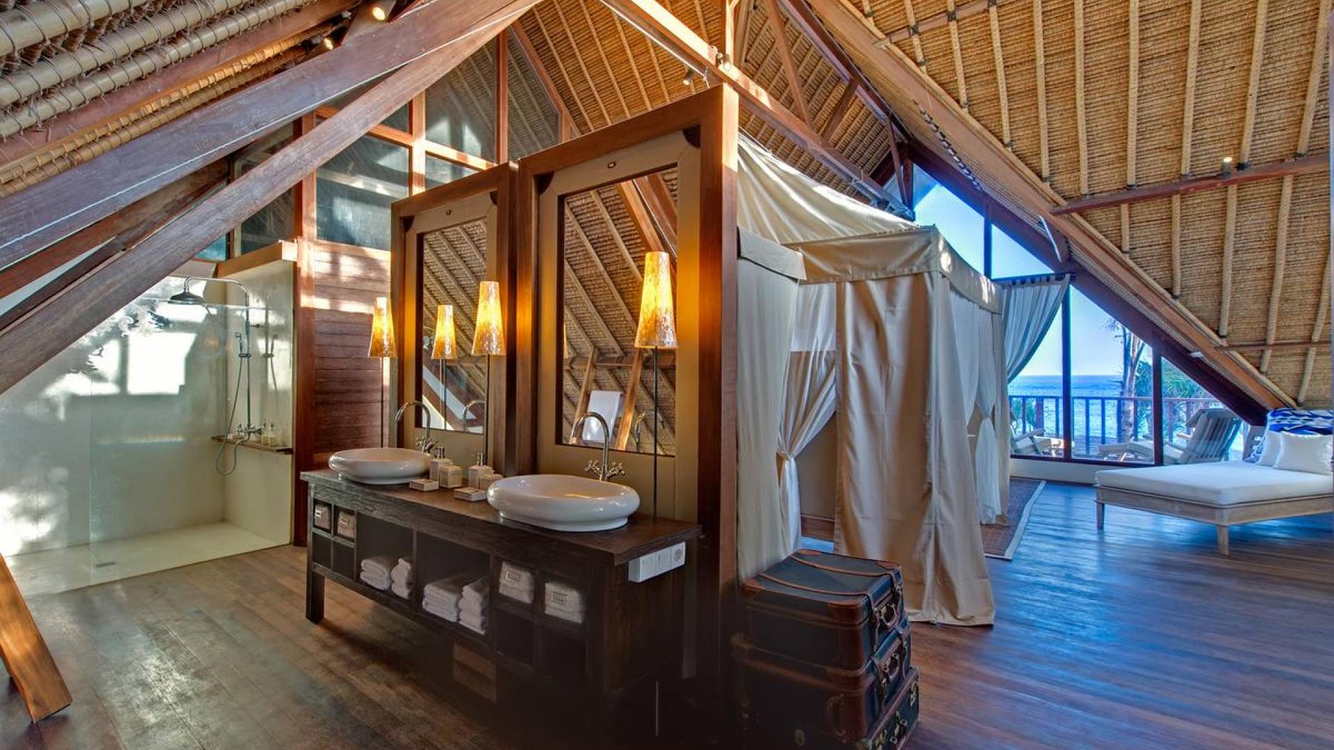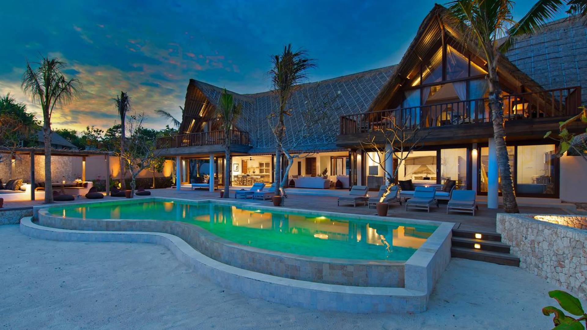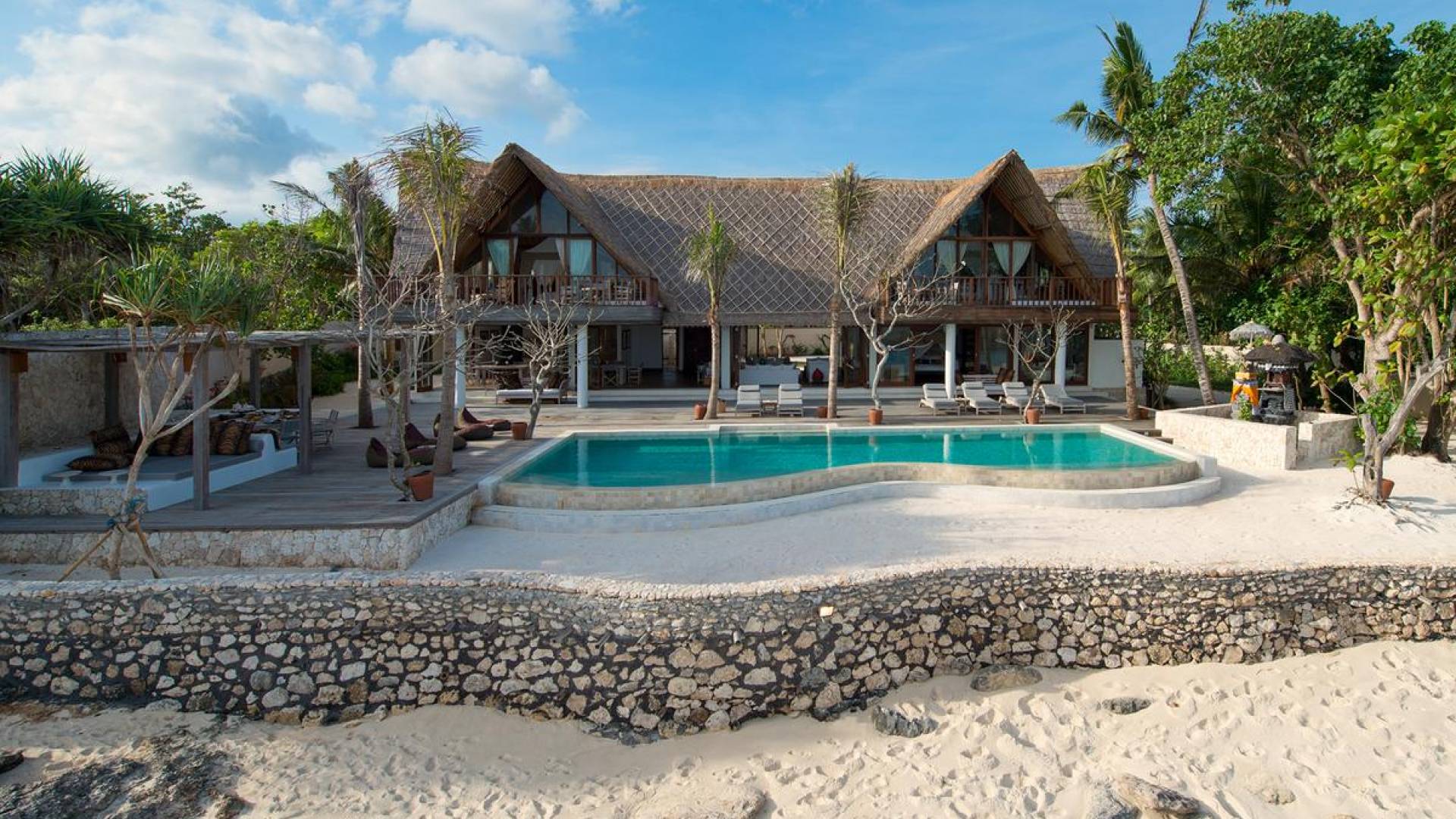 Villa Voyage Bali ha un nome appropriato. Questo rifugio privato con cinque camere da letto situato accanto a una spiaggia appartata di sabbia bianca, sull'idilliaca isola tropicale di Lembongan, a soli 30 minuti di barca privata dal porto di Benoa di Bali, trasporta gli ospiti in un altro tempo e luogo con la sua nostalgia rustica e il senso di avventura .