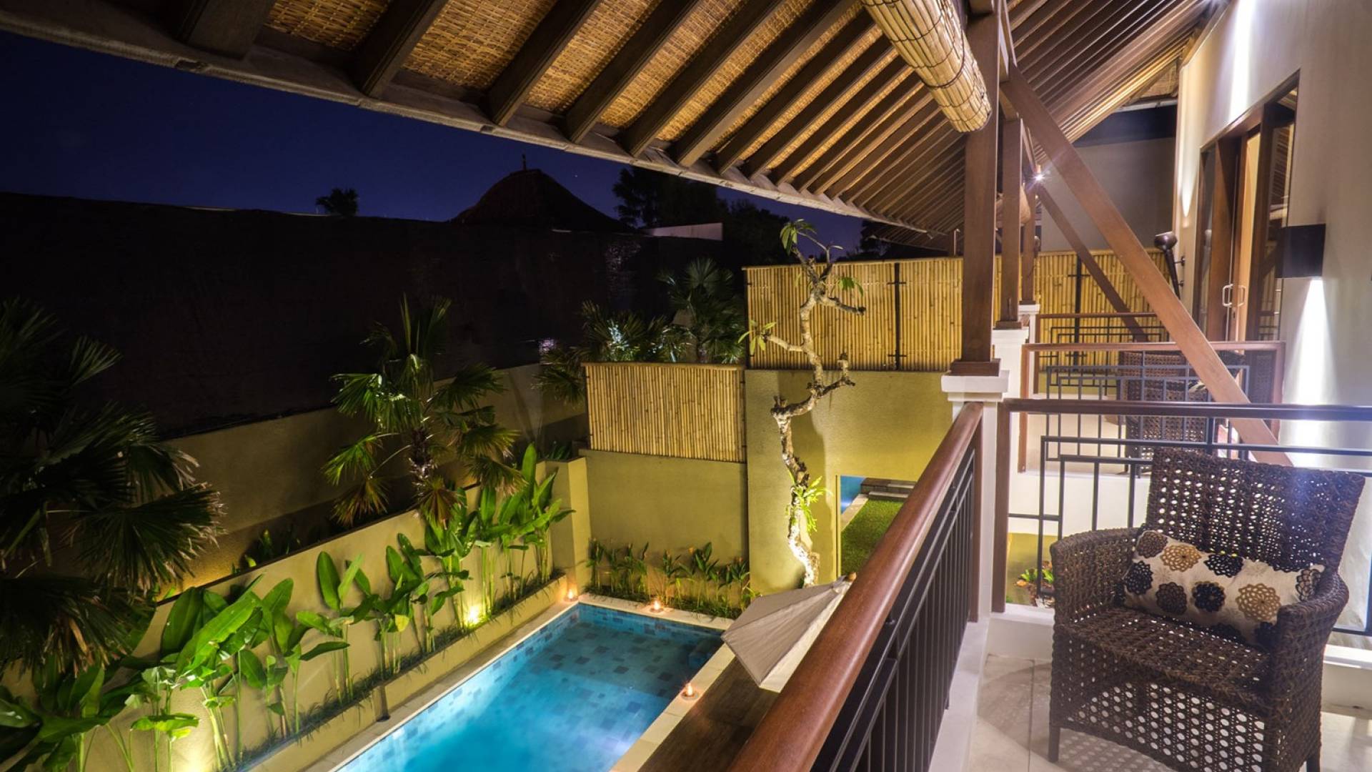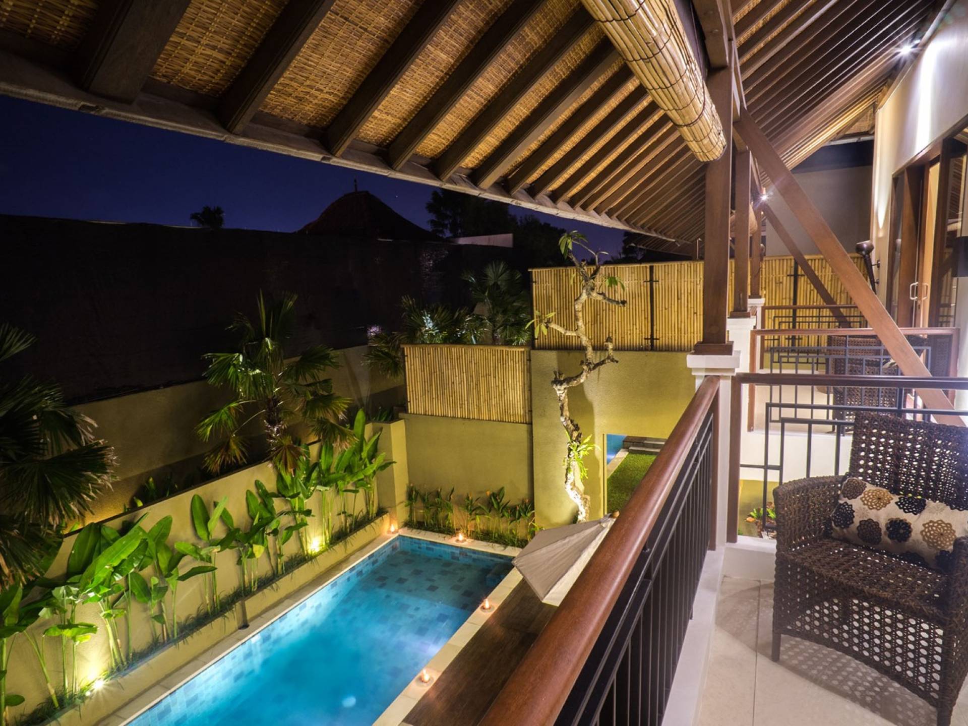 Entrambe le camere da letto si trovano all'ultimo piano e l'accessibilità al cancello delle scale può essere raggiunta su richiesta. C'è un balcone separato per ogni camera da letto, disponibile con un paio di comode sedie per fornire una vista facile e veloce della piscina e del giardino tropicale dal livello superiore.