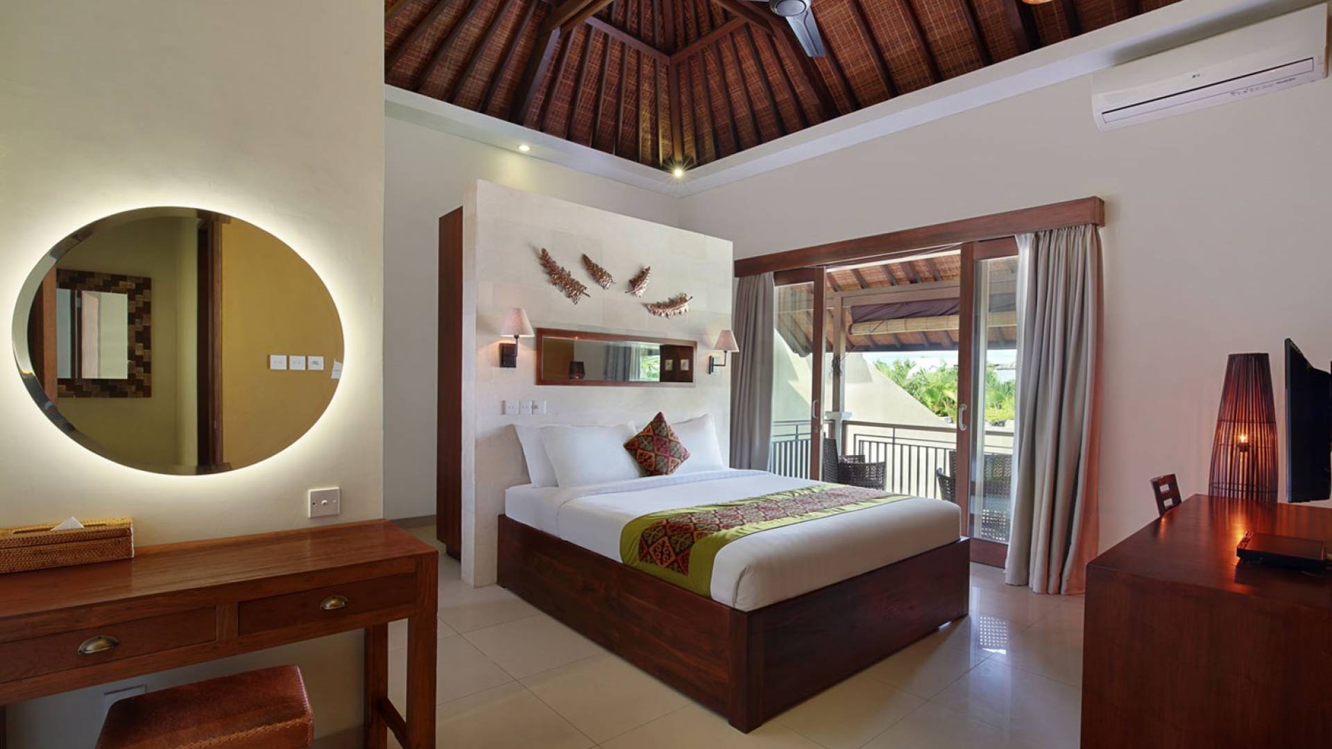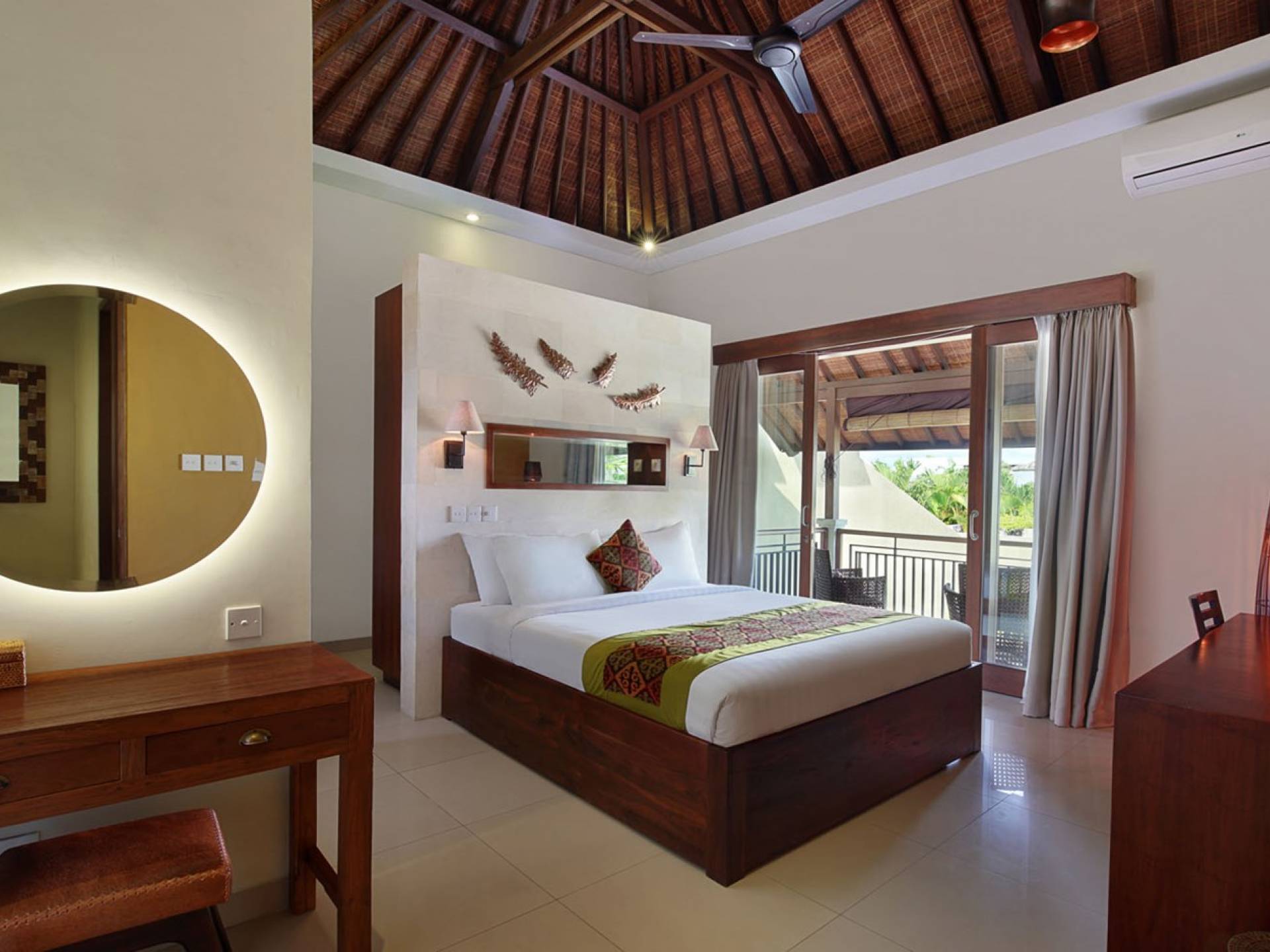 Le restanti 2 camere da letto sono dotate di balcone e porta a vetri e si trovano al secondo piano della villa a Seminyak. Su richiesta è possibile accedere al cancello delle scale. Dai lettori DVD e TV a schermo piatto al mini-frigorifero, armadio, toletta, bagno privato, vasche da bagno e scrivania con un paio di bellissime sedie in rattan disposte sul balcone, tutto è assicurato per aggiungere al tuo lusso e comfort mentre guardi la piscina o giardino dall'alto.