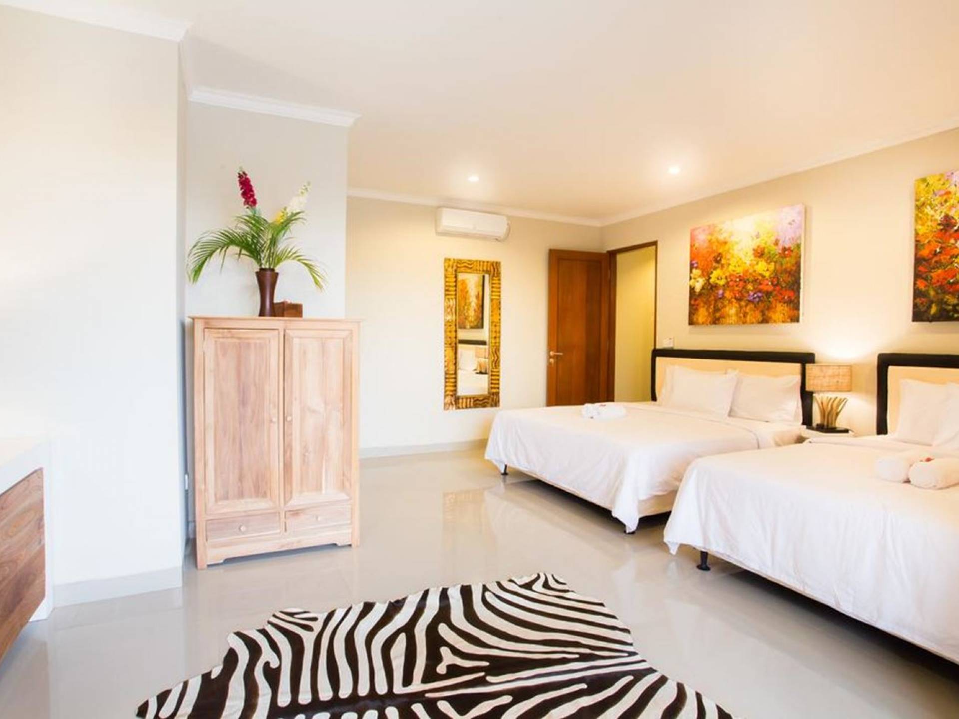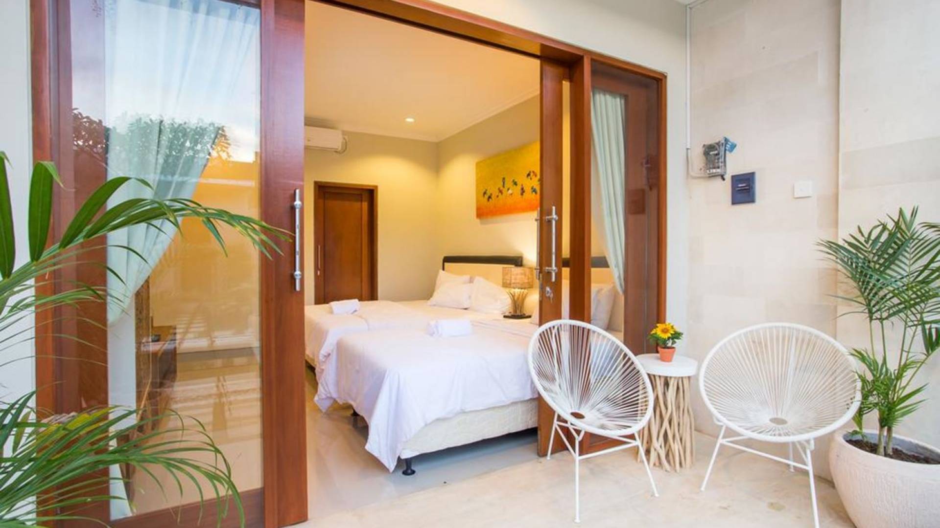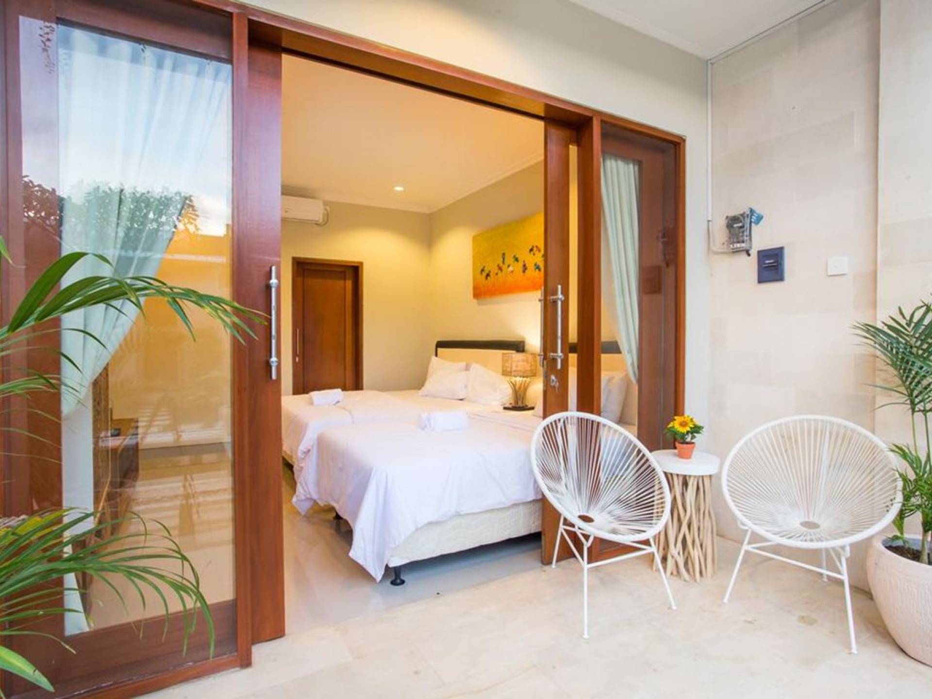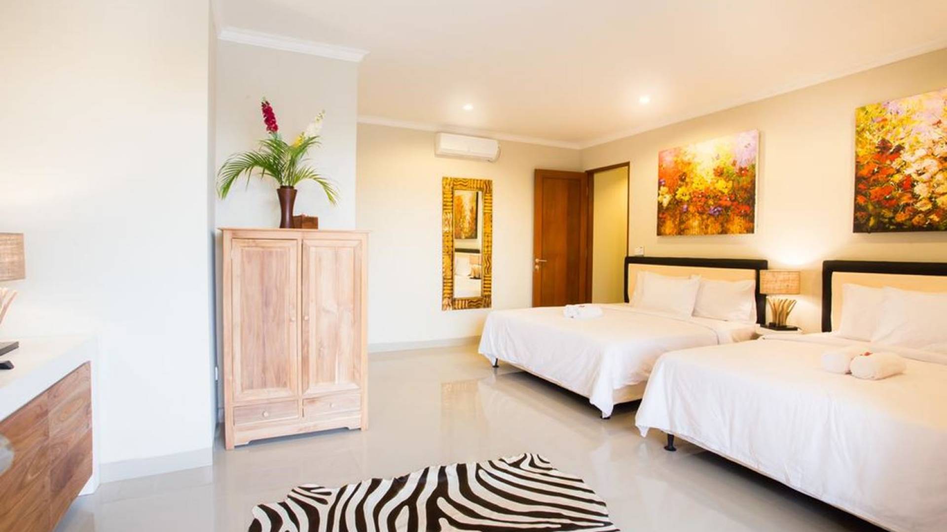 Casa Daha Seminyak ospita suite con 4 camere da letto: 2 al primo piano adiacenti al balcone superiore e 2 al piano terra accanto alla sala TV. Ciò che rende questa villa così speciale è la sua grande capacità. Sì, è una villa con 4 camere da letto, ma 2 camere sono arredate con 2 letti king-size ciascuna e le altre 2 camere dispongono di 1 letto king-size e 1 letto singolo. La capacità totale è di 14 persone. Sorprendente! Tutte le 4 camere sono dotate di letti di qualità, aria condizionata, TV e arte accuratamente selezionata. Le camere superiori sono dotate di balcone privato con tavoli e sedie e le camere al piano di sotto hanno verande ventilate con tavoli e sedie. Splendido!