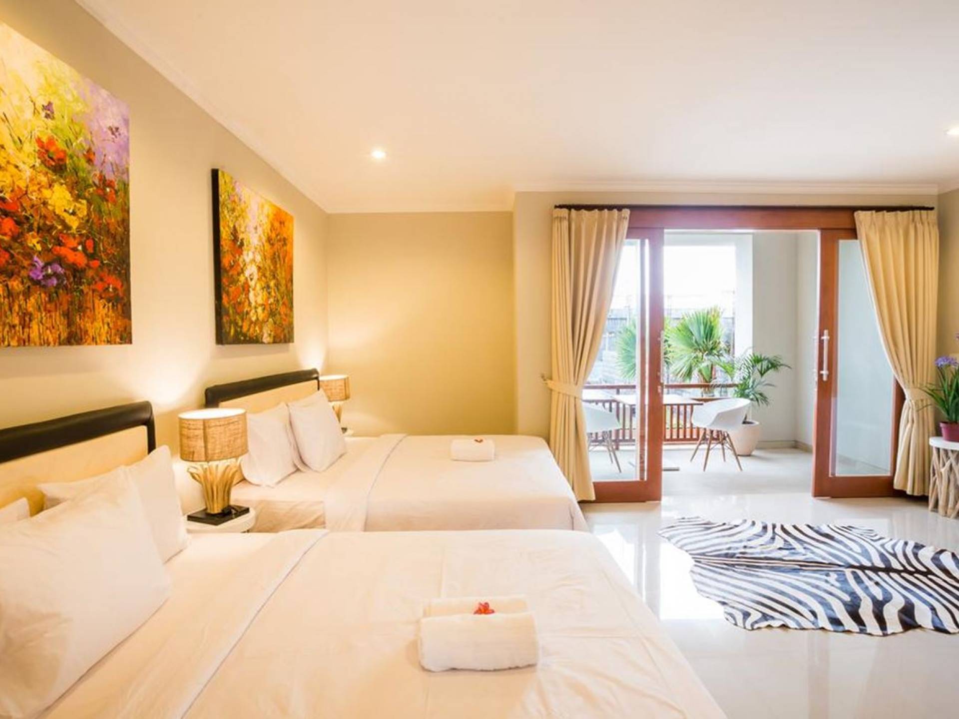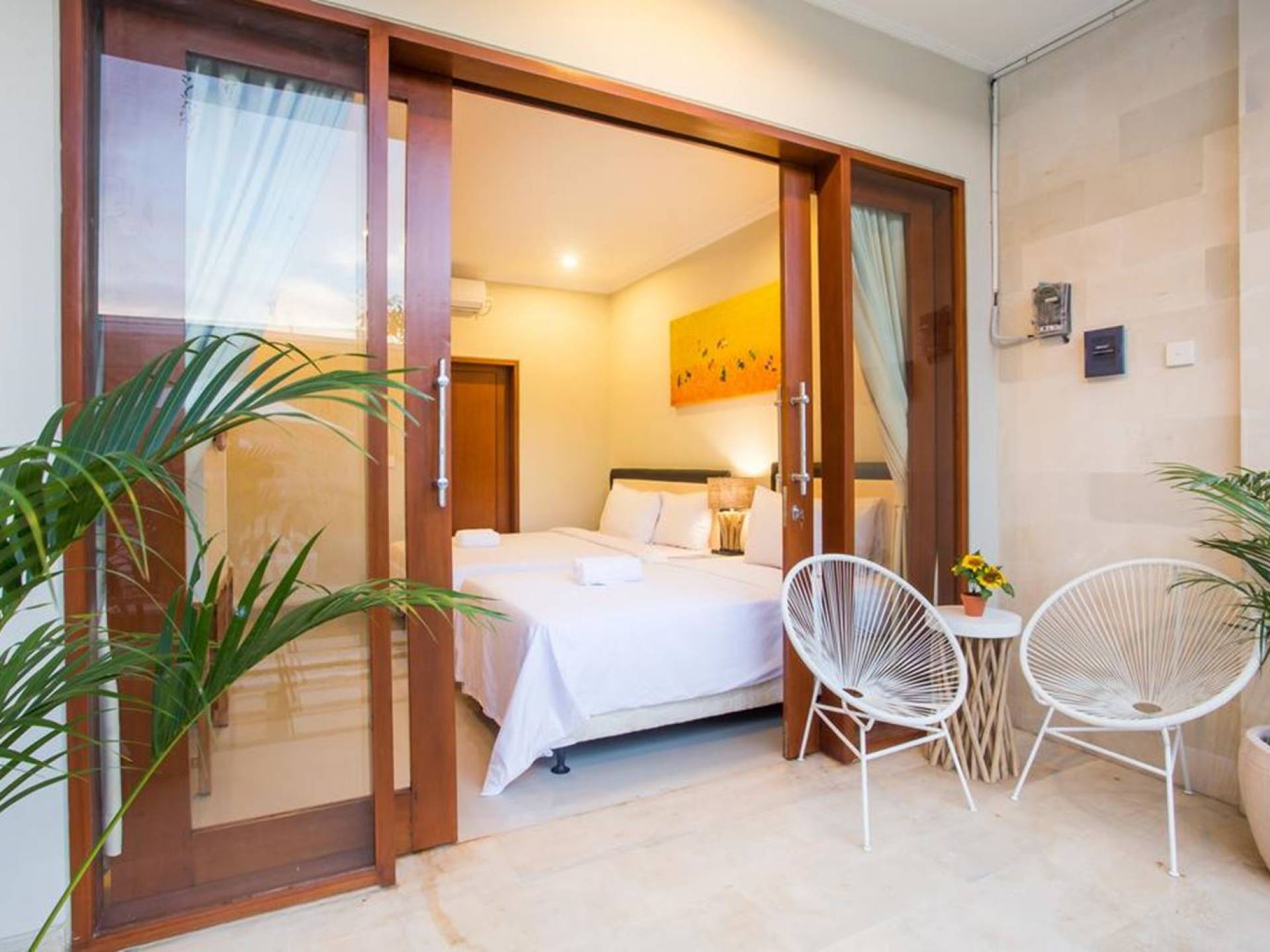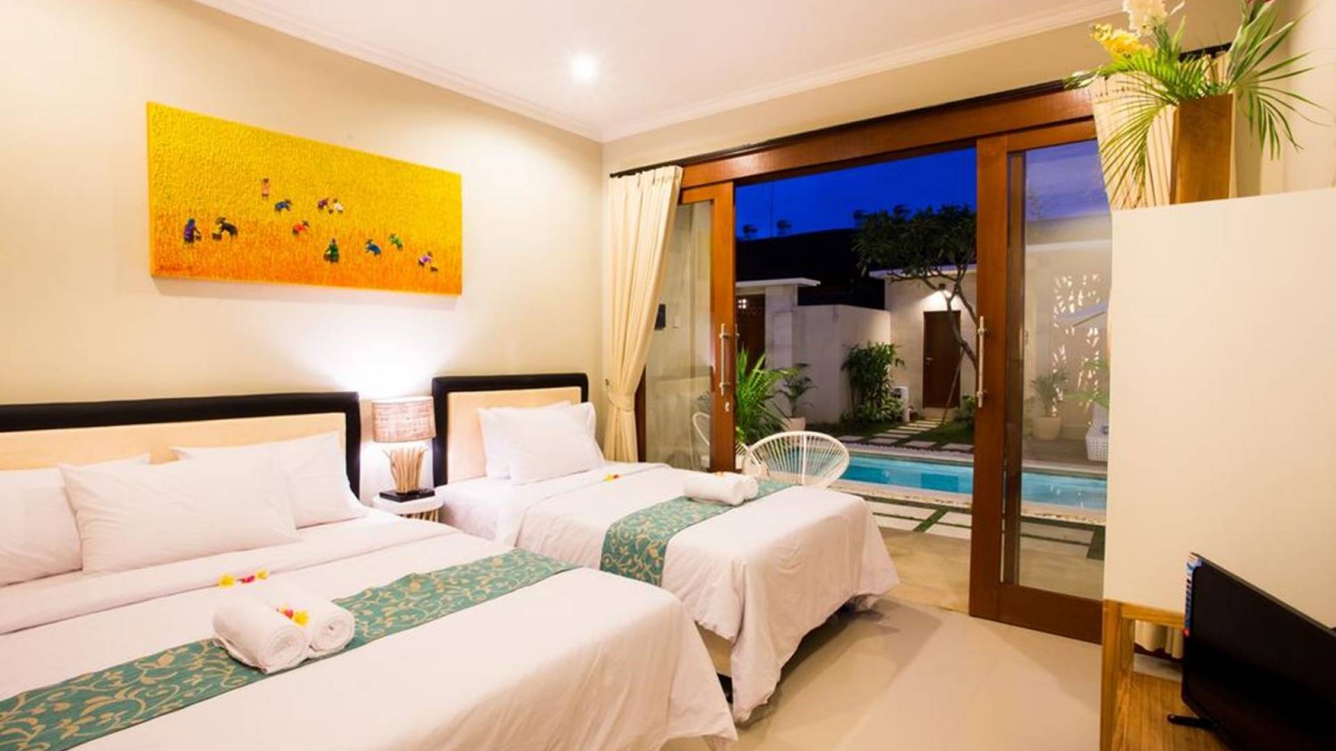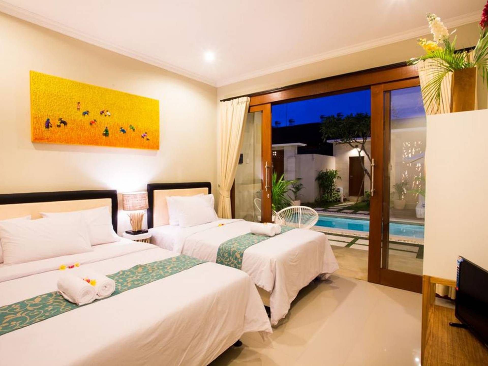 Casa Daha Seminyak ospita suite con 4 camere da letto: 2 al primo piano adiacenti al balcone superiore e 2 al piano terra accanto alla sala TV. Ciò che rende questa villa così speciale è la sua grande capacità. Sì, è una villa con 4 camere da letto, ma 2 camere sono arredate con 2 letti king-size ciascuna e le altre 2 camere dispongono di 1 letto king-size e 1 letto singolo. La capacità totale è di 14 persone. Sorprendente! Tutte le 4 camere sono dotate di letti di qualità, aria condizionata, TV e arte accuratamente selezionata. Le camere superiori sono dotate di balcone privato con tavoli e sedie e le camere al piano di sotto hanno verande ventilate con tavoli e sedie. Splendido!