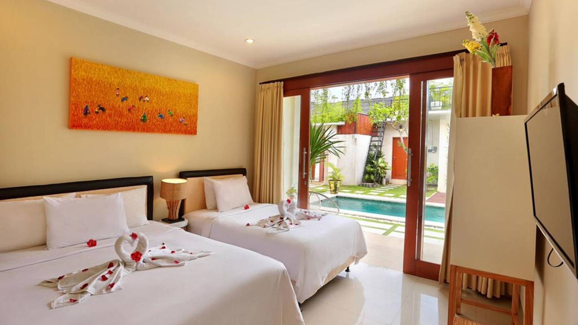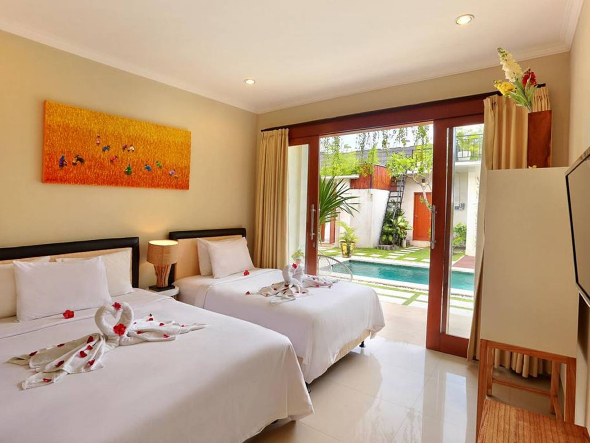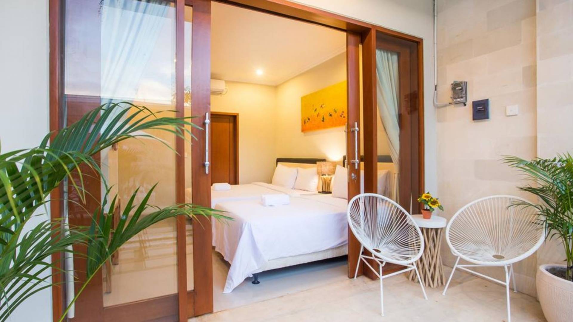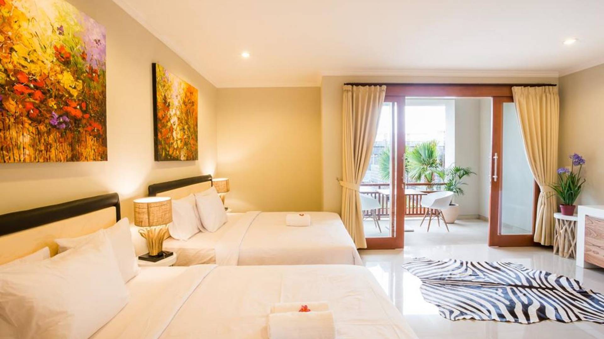 Casa Daha Seminyak ospita suite con 4 camere da letto: 2 al primo piano adiacenti al balcone superiore e 2 al piano terra accanto alla sala TV. Ciò che rende questa villa così speciale è la sua grande capacità. Sì, è una villa con 4 camere da letto, ma 2 camere sono arredate con 2 letti king-size ciascuna e le altre 2 camere dispongono di 1 letto king-size e 1 letto singolo. La capacità totale è di 14 persone. Sorprendente! Tutte le 4 camere sono dotate di letti di qualità, aria condizionata, TV e arte accuratamente selezionata. Le camere superiori sono dotate di balcone privato con tavoli e sedie e le camere al piano di sotto hanno verande ventilate con tavoli e sedie. Splendido!