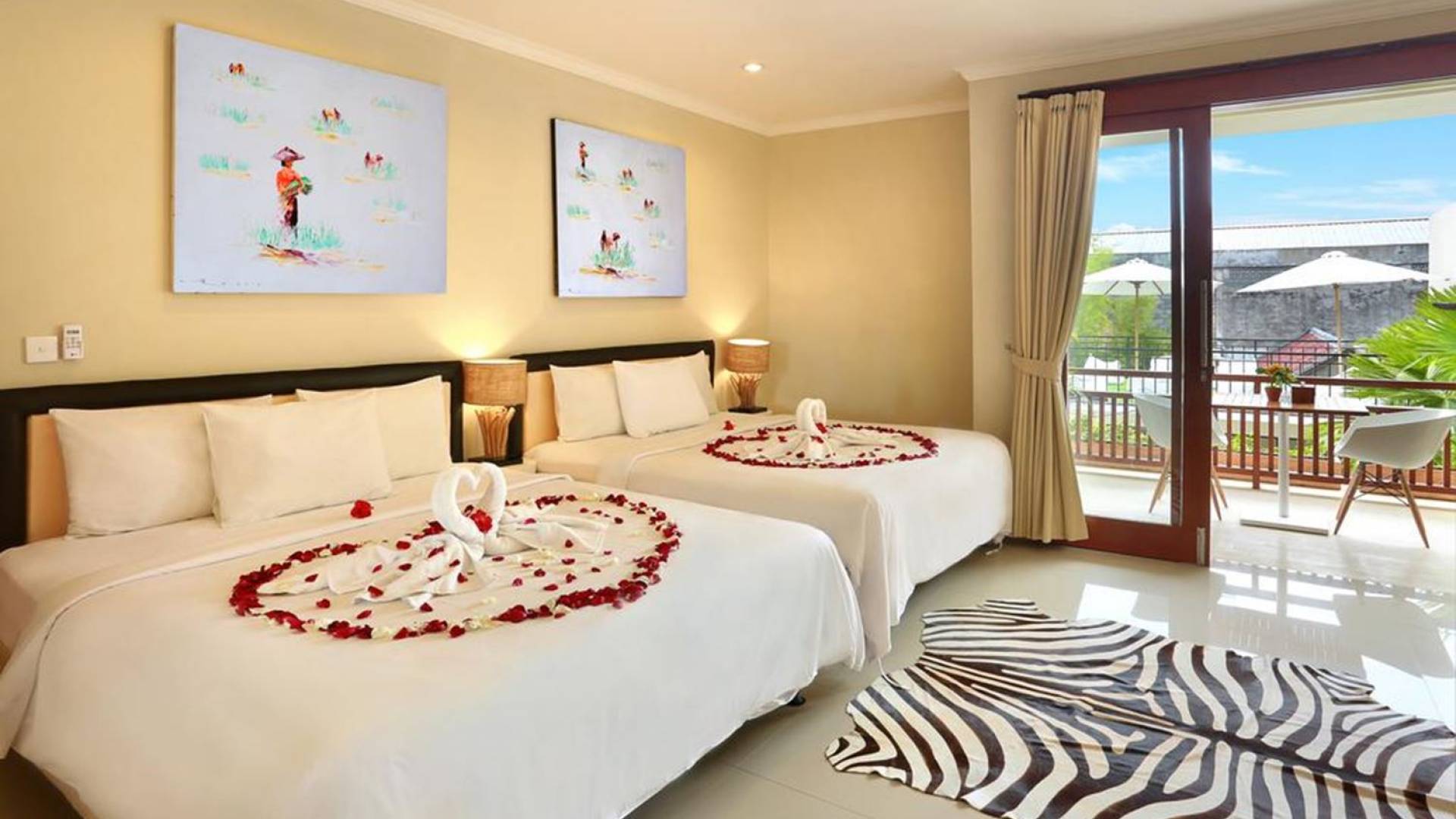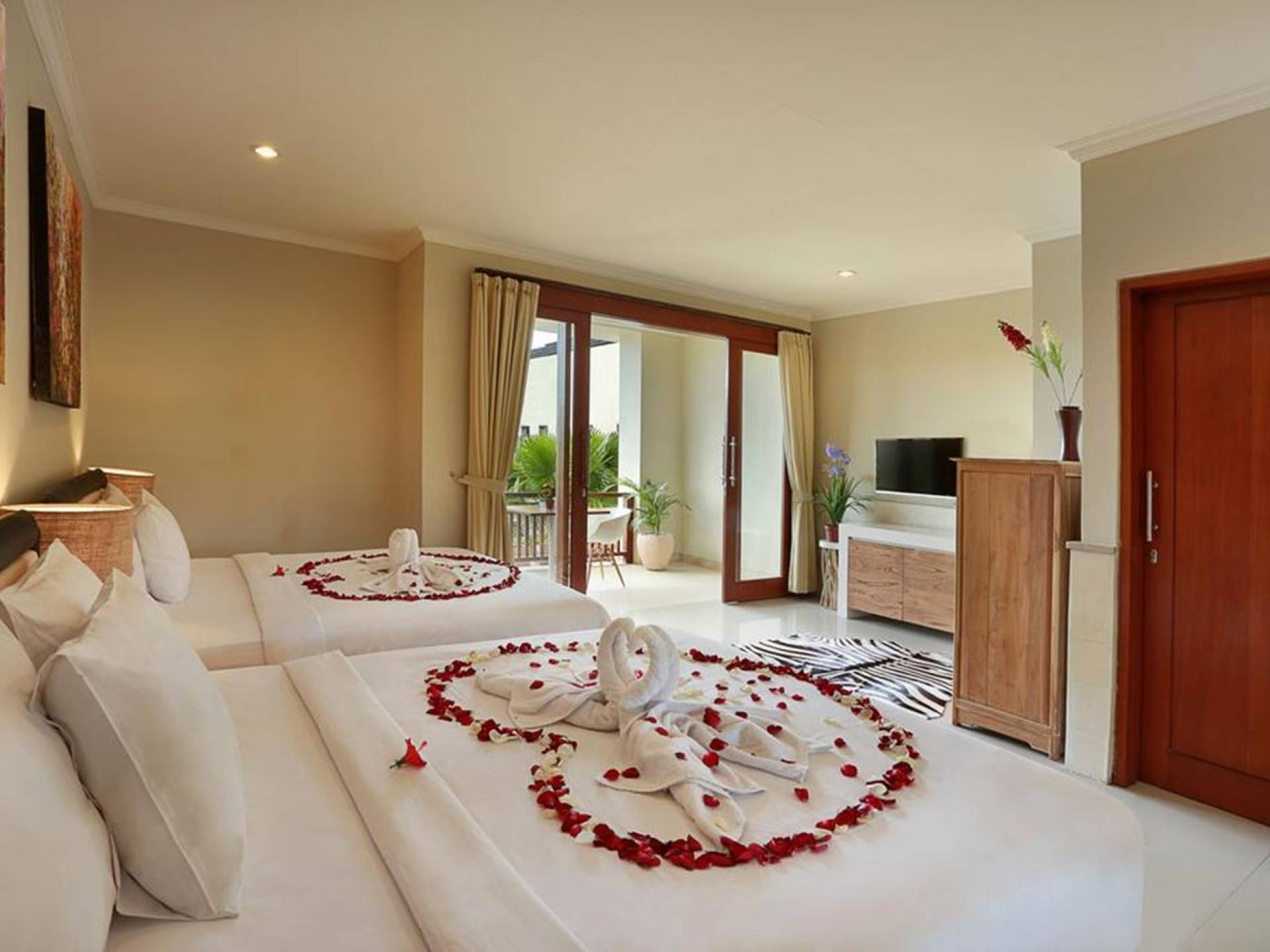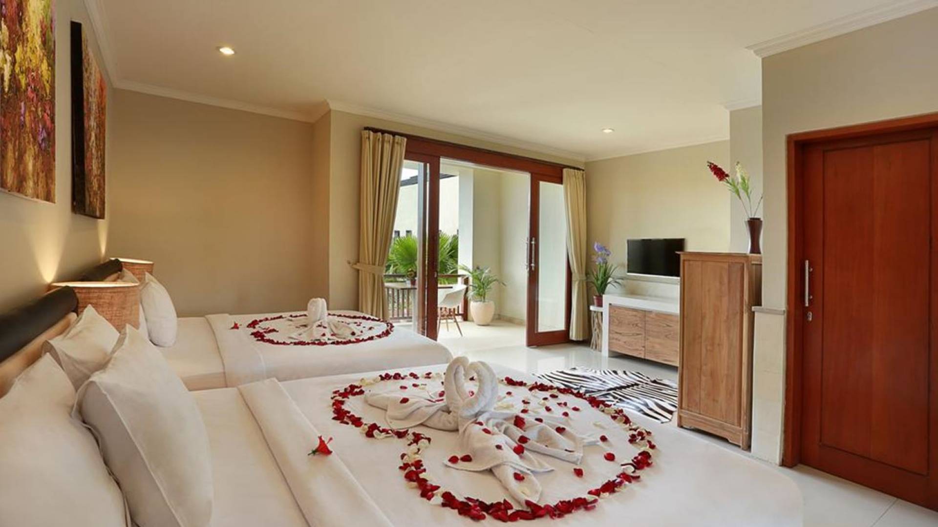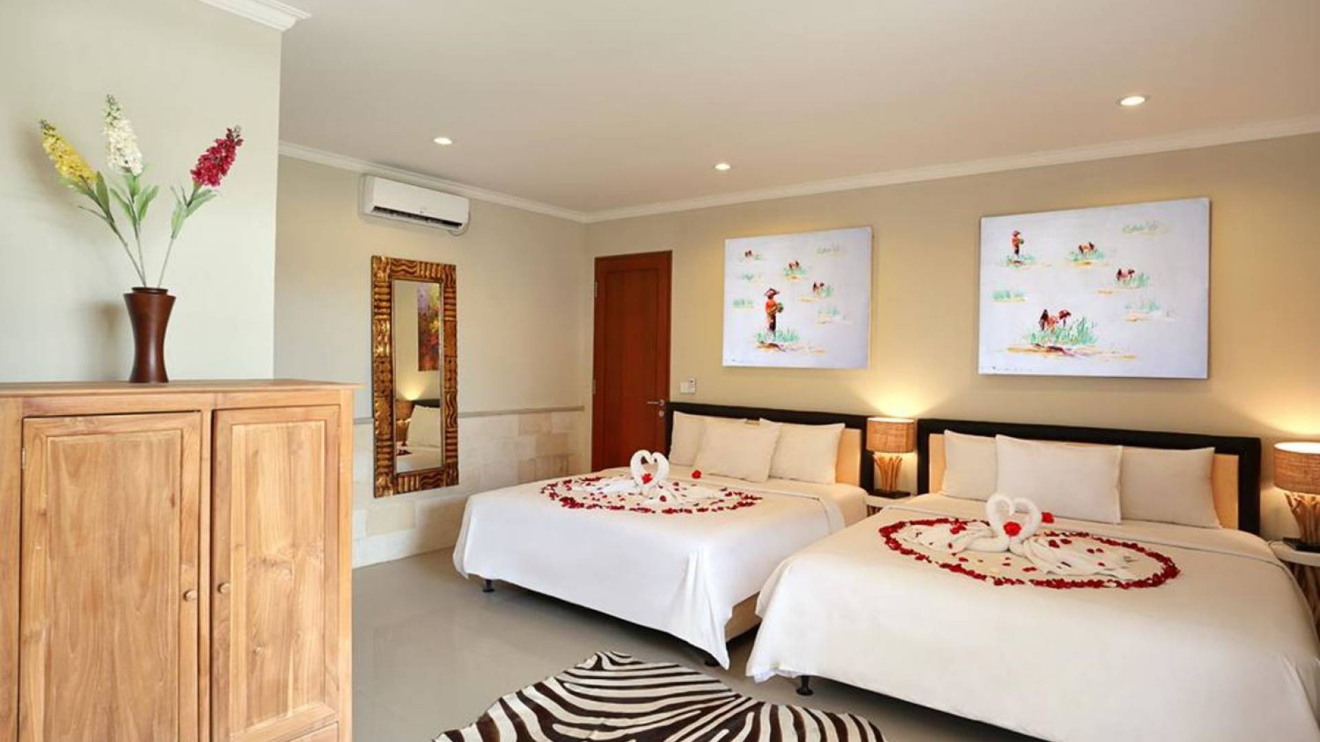 Casa Daha Seminyak ospita suite con 4 camere da letto: 2 al primo piano adiacenti al balcone superiore e 2 al piano terra accanto alla sala TV. Ciò che rende questa villa così speciale è la sua grande capacità. Sì, è una villa con 4 camere da letto, ma 2 camere sono arredate con 2 letti king-size ciascuna e le altre 2 camere dispongono di 1 letto king-size e 1 letto singolo. La capacità totale è di 14 persone. Sorprendente! Tutte le 4 camere sono dotate di letti di qualità, aria condizionata, TV e arte accuratamente selezionata. Le camere superiori sono dotate di balcone privato con tavoli e sedie e le camere al piano di sotto hanno verande ventilate con tavoli e sedie. Splendido!