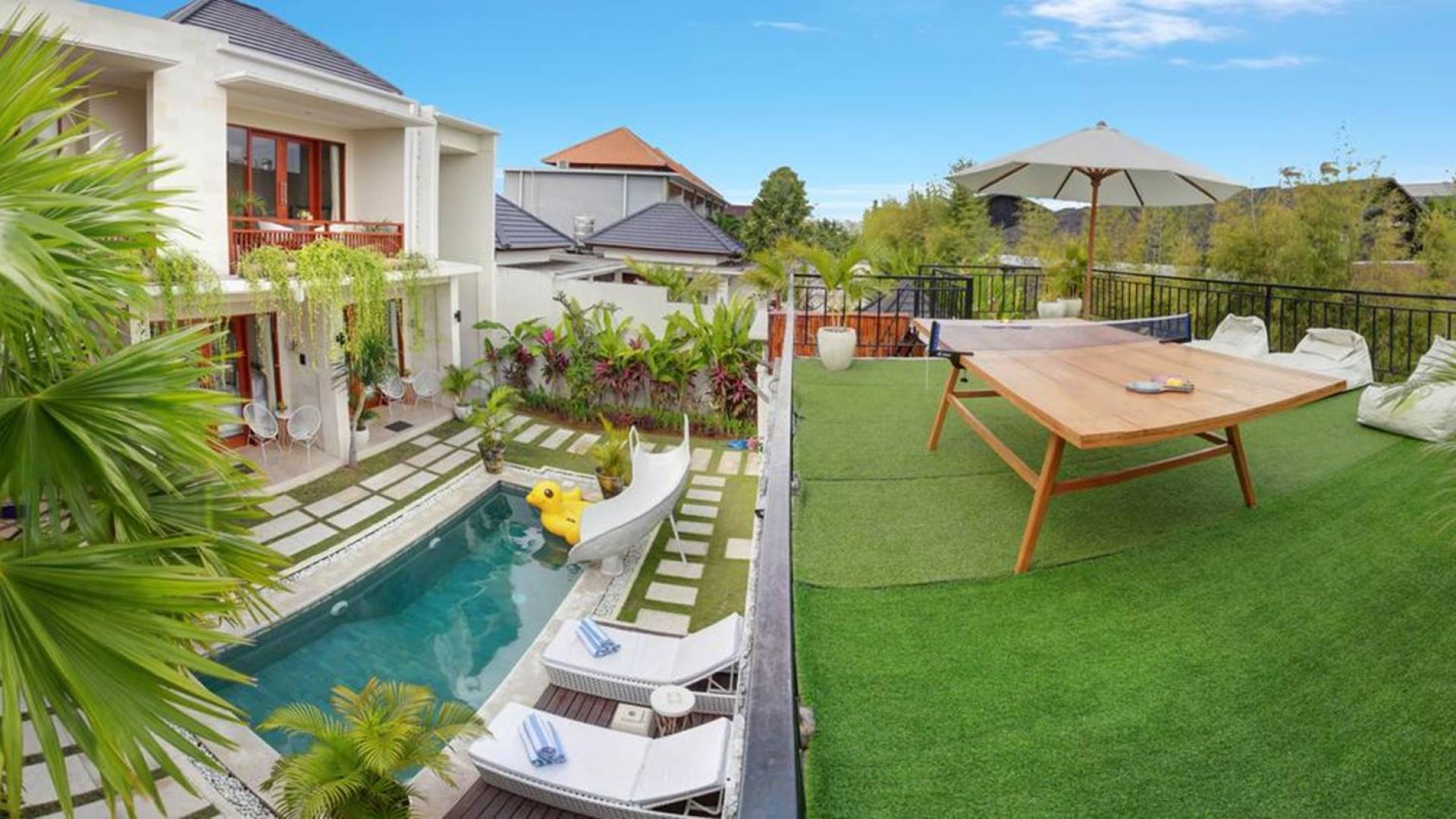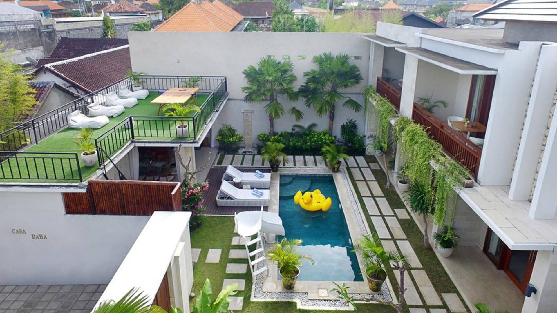 Questa casa vacanze contemporanea è nascosta in un luogo relativamente tranquillo e pacifico nella celebre Seminyak di Bali. Caratterizzato da un design moderno ed elegante combinato con elementi tropicali e una posizione superba, Casa Daha è un paradiso di vacanza perfetto per famiglie e gruppi di amici. Caratterizzata da un lussureggiante giardino tropicale privato con piscina e una terrazza panoramica con sacchi di fagioli, questa villa è davvero qualcosa! Il giardino presenta pareti bianche rustiche con tradizionali sculture in legno balinesi e tutti i tipi di tentacolare vegetazione tropicale. Tutto intorno alla piscina ci sono palme e frangipani e piante tropicali in vaso, che si aggiungono all'atmosfera tropicale e tranquilla.