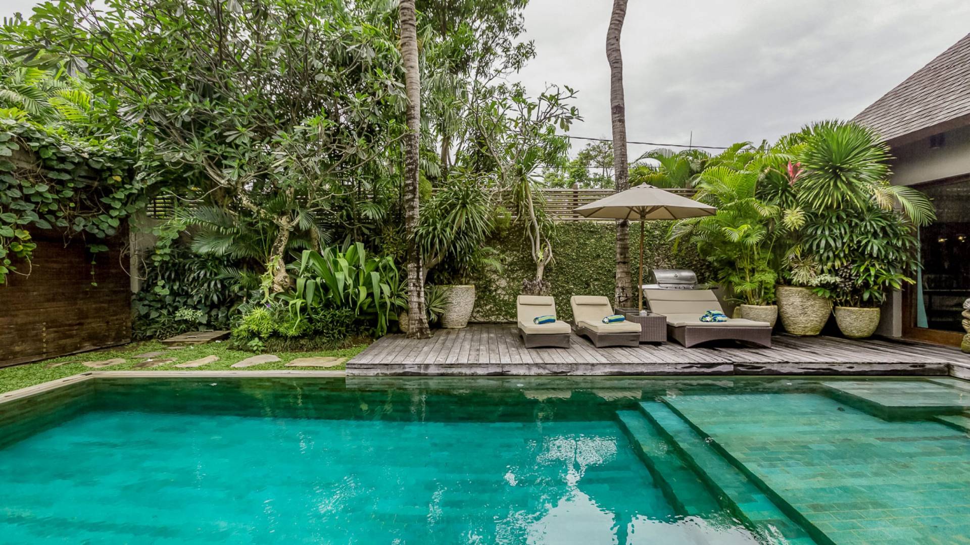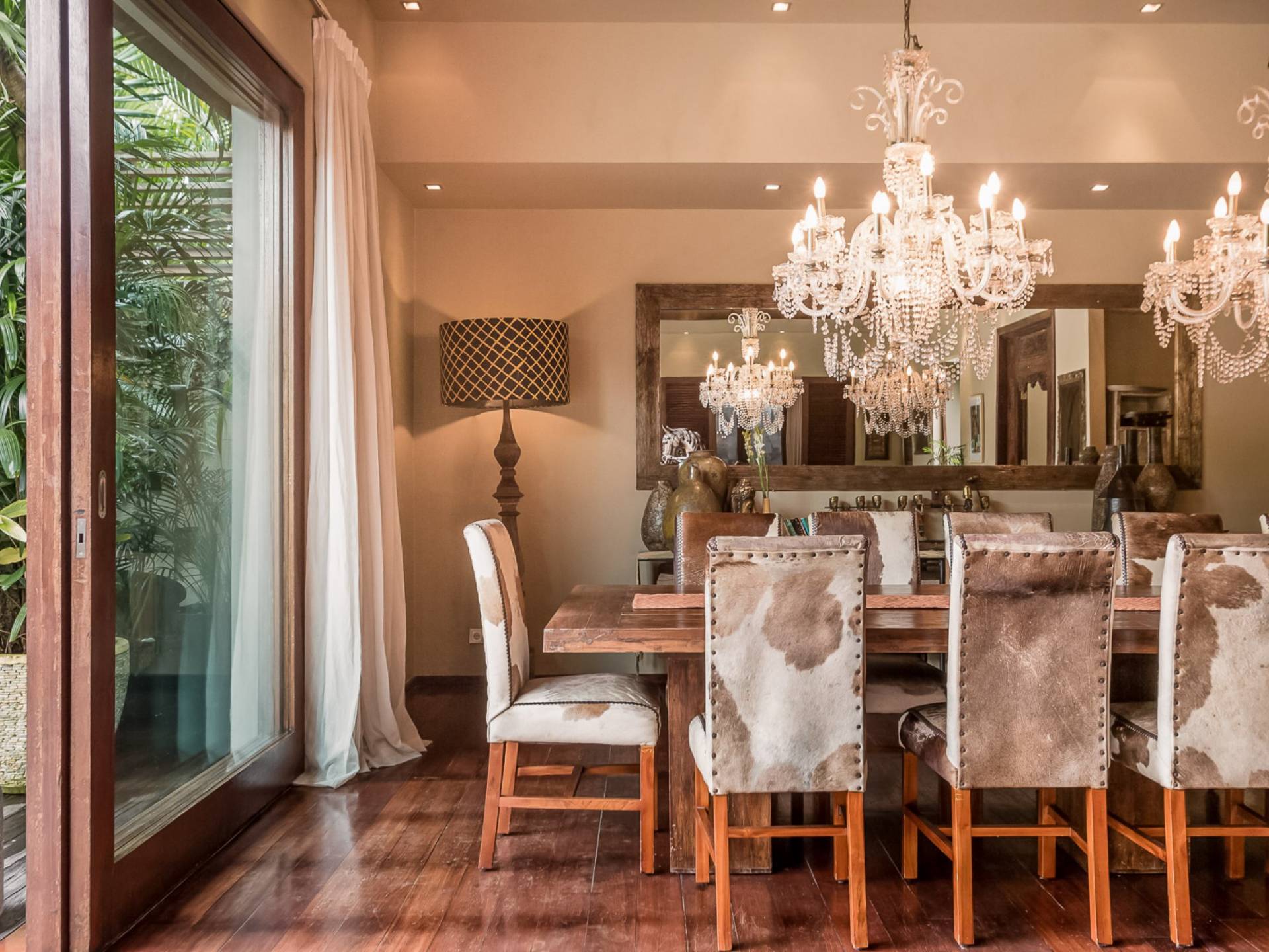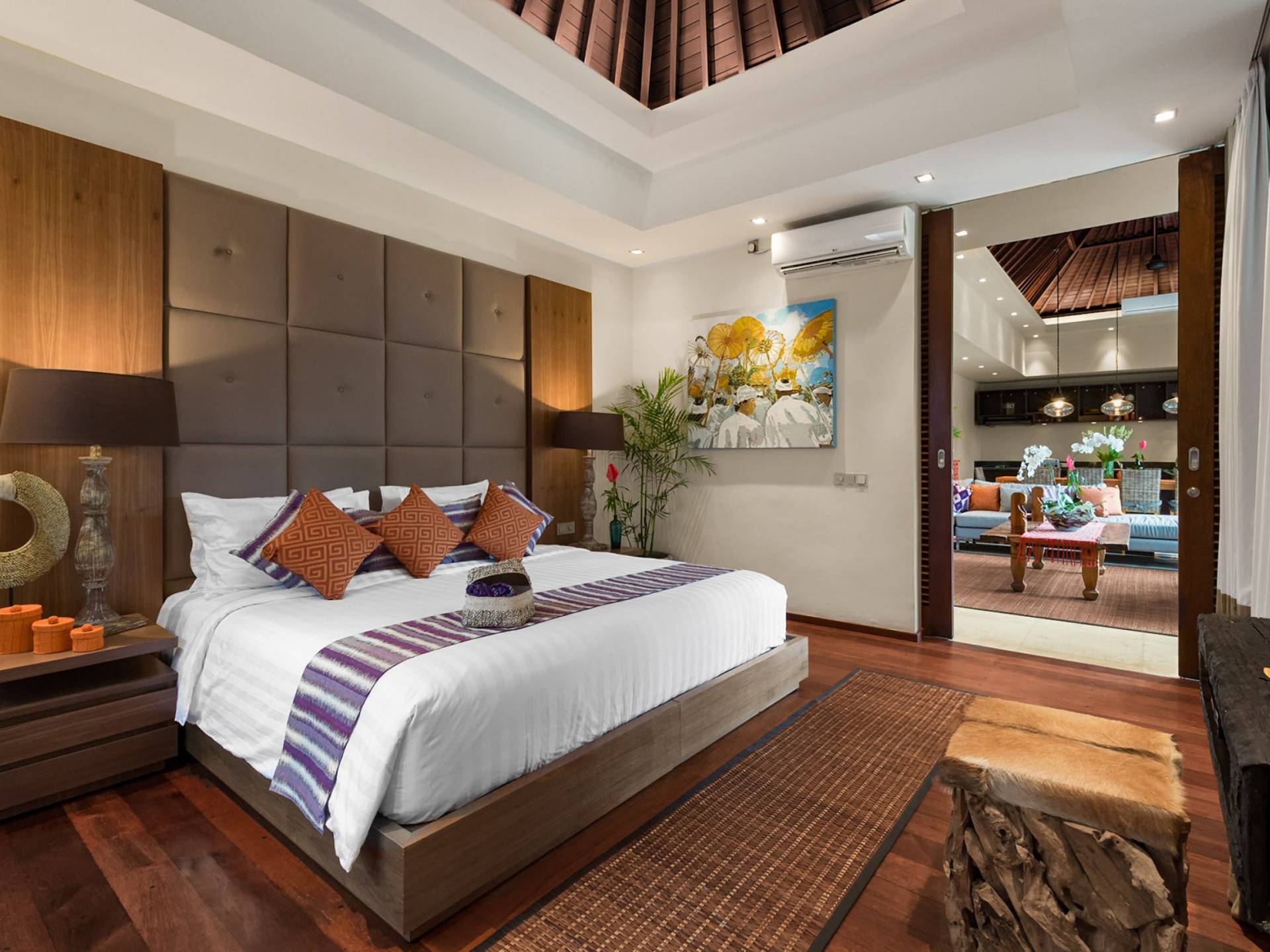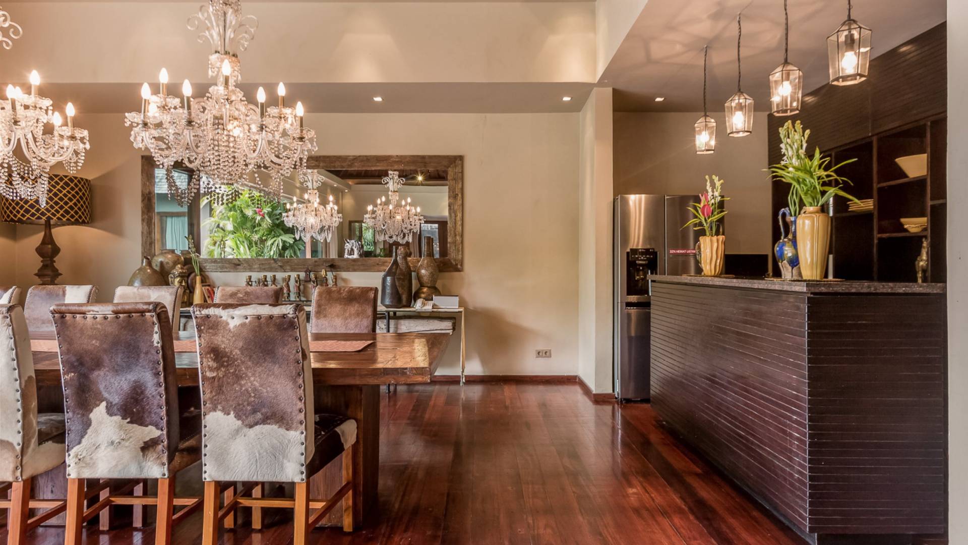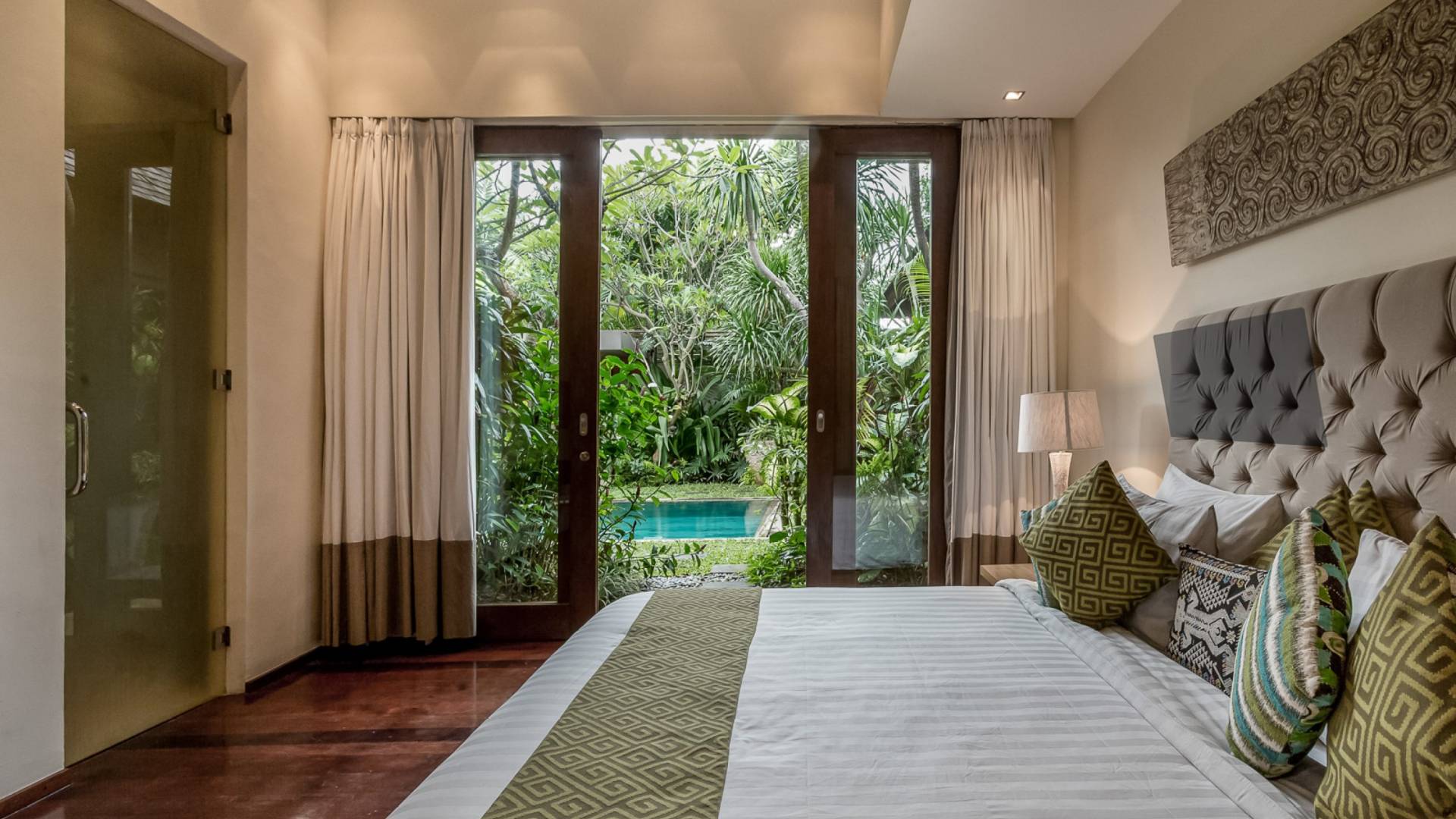 Eshara Estate Seminyak è un grande complesso di tre ville completamente attrezzato, situato in una strada tranquilla e silenziosa a soli 300 metri dalla spiaggia, dai negozi e dai ristoranti del centro di Seminyak. Questa versatile proprietà tre in uno offre la scelta di un'opzione di affitto di 8, 5, 3 o 2 camere da letto grazie a un intelligente sistema di porte scorrevoli e ingressi separati. Ogni villa ha un soggiorno e una sala da pranzo glamour e una cucina integrata, mentre ogni camera da letto con bagno privato ha un letto king-size, uno spogliatoio e un lettore TV/DVD. Ci sono anche tre piscine immerse in giardini tropicali completi di alberi di frangipani, palme da cocco, lettini prendisole e ponti in legno.