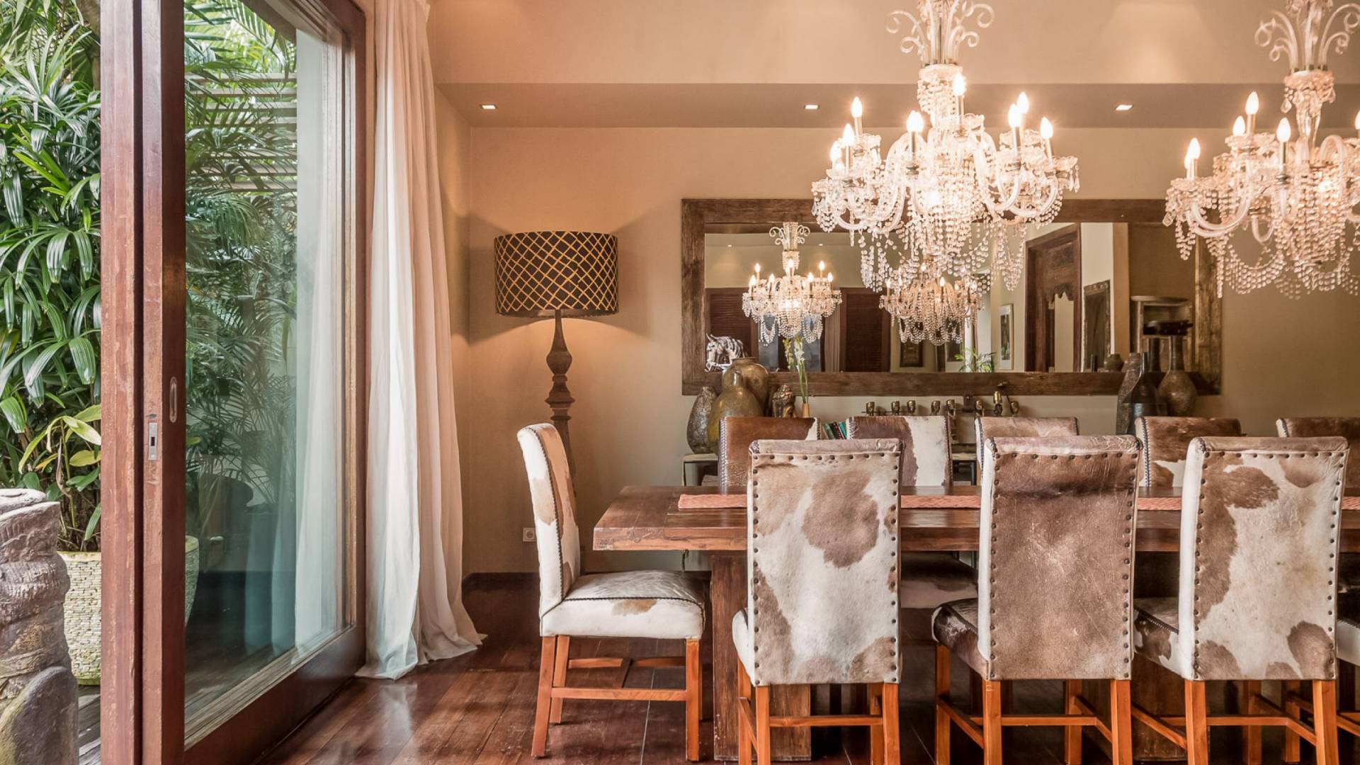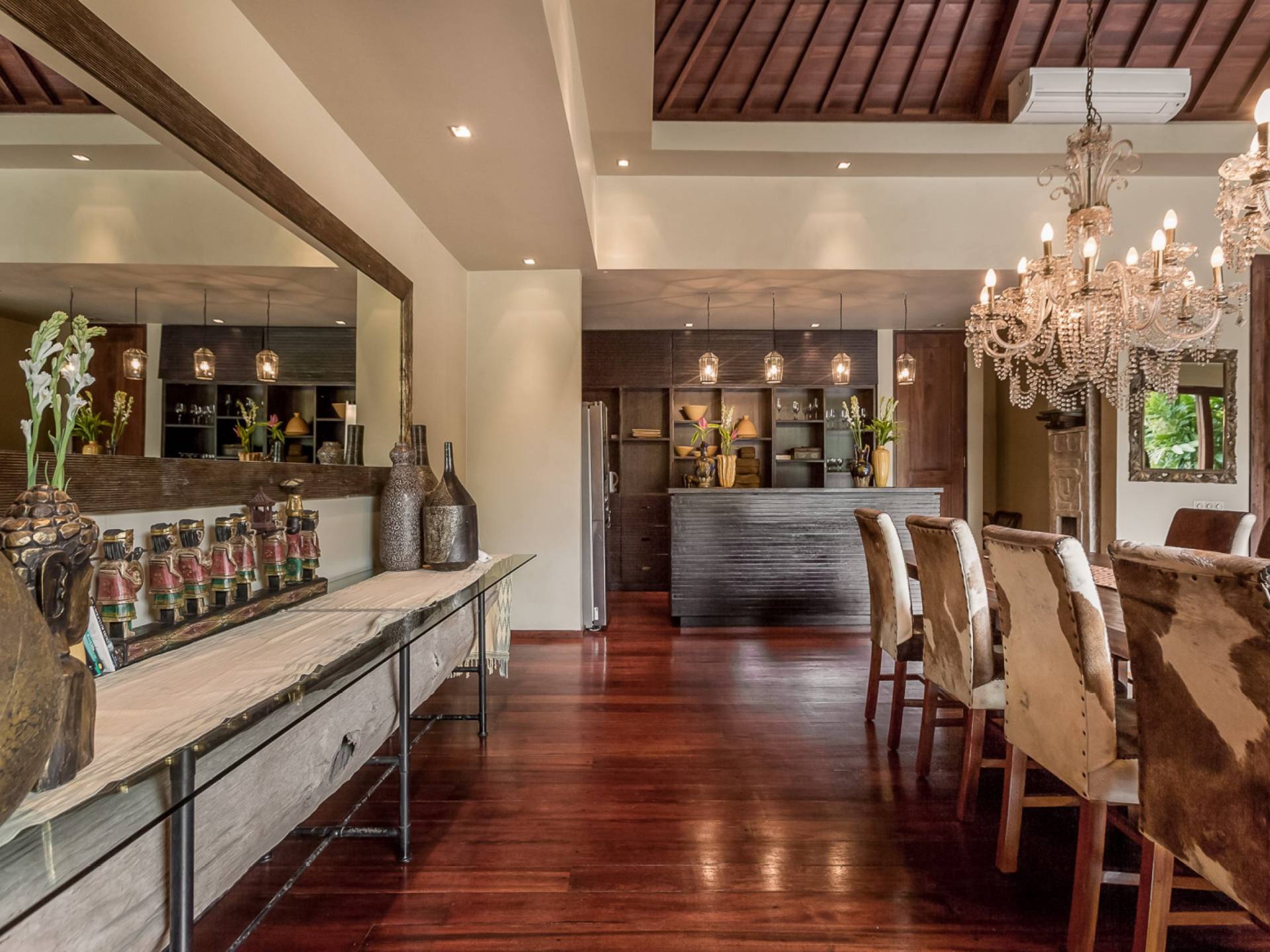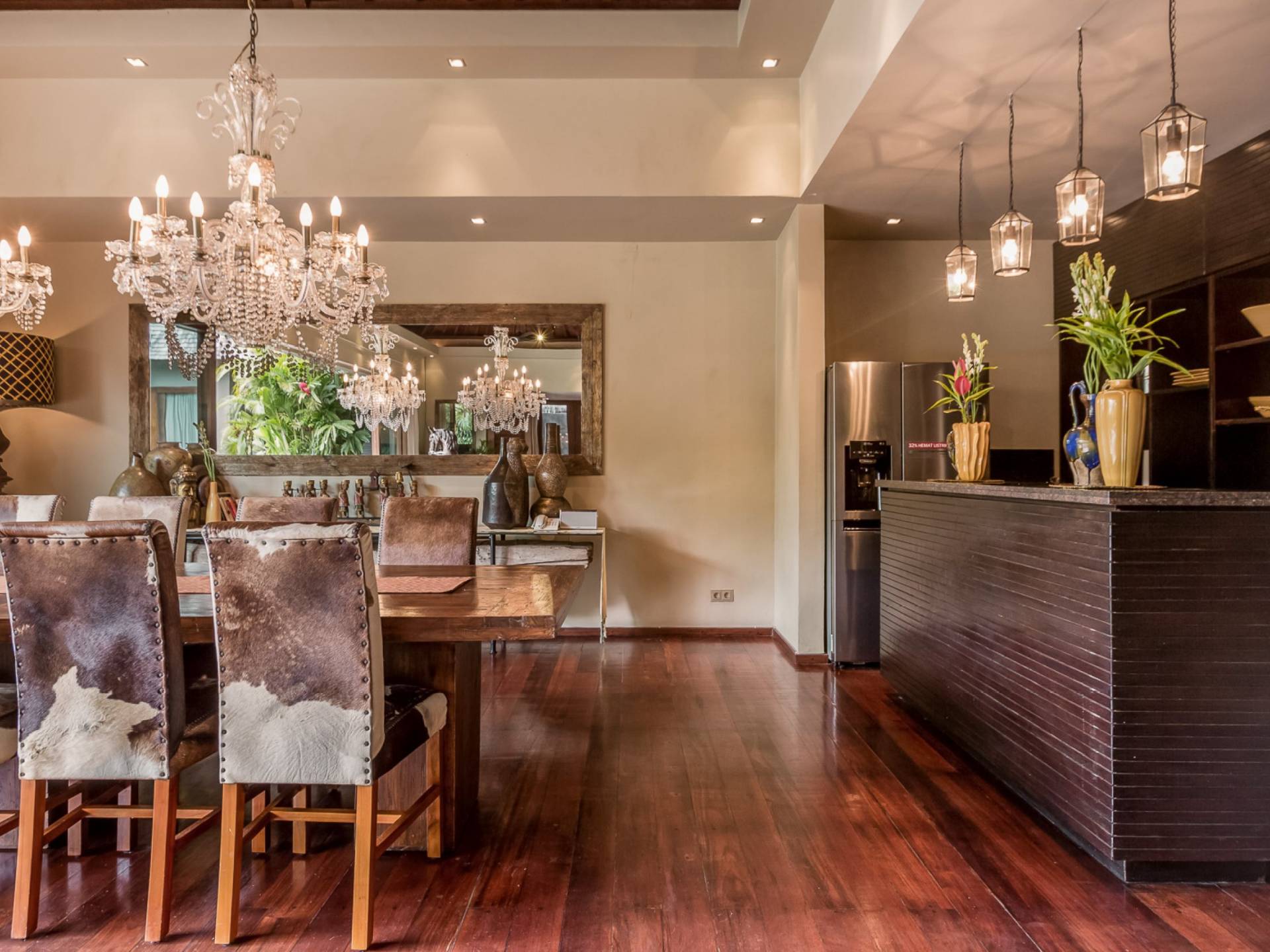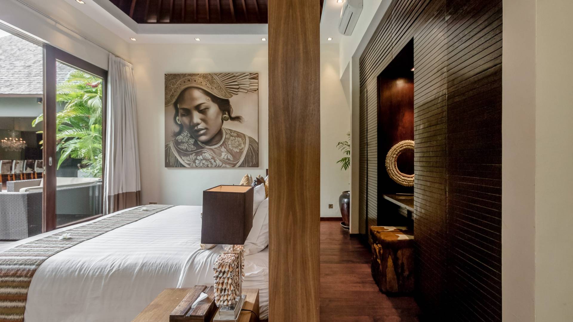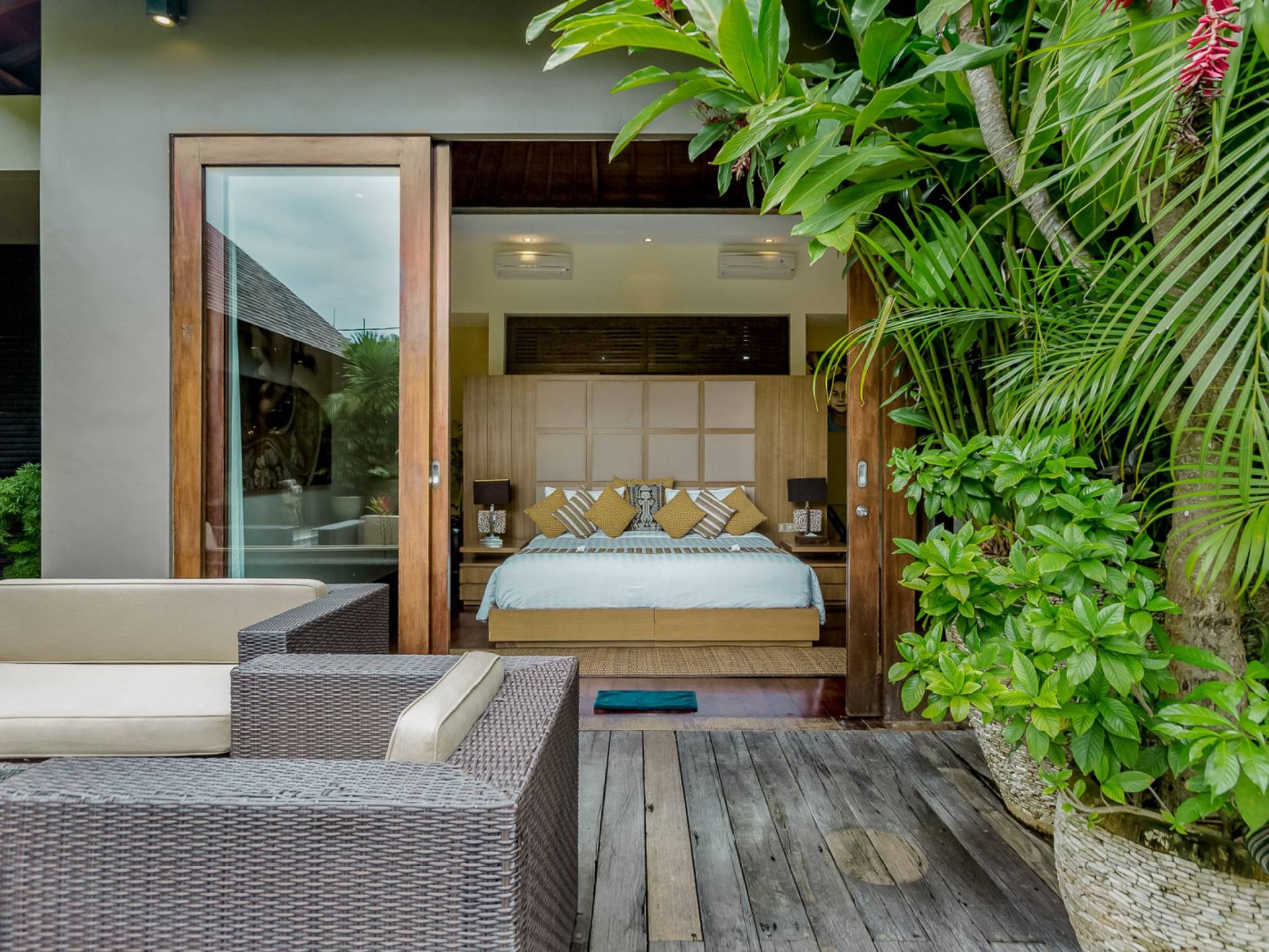 Eshara Estate Seminyak è un grande complesso di tre ville completamente attrezzato, situato in una strada tranquilla e silenziosa a soli 300 metri dalla spiaggia, dai negozi e dai ristoranti del centro di Seminyak. Questa versatile proprietà tre in uno offre la scelta di un'opzione di affitto di 8, 5, 3 o 2 camere da letto grazie a un intelligente sistema di porte scorrevoli e ingressi separati. Ogni villa ha un soggiorno e una sala da pranzo glamour e una cucina integrata, mentre ogni camera da letto con bagno privato ha un letto king-size, uno spogliatoio e un lettore TV/DVD. Ci sono anche tre piscine immerse in giardini tropicali completi di alberi di frangipani, palme da cocco, lettini prendisole e ponti in legno.