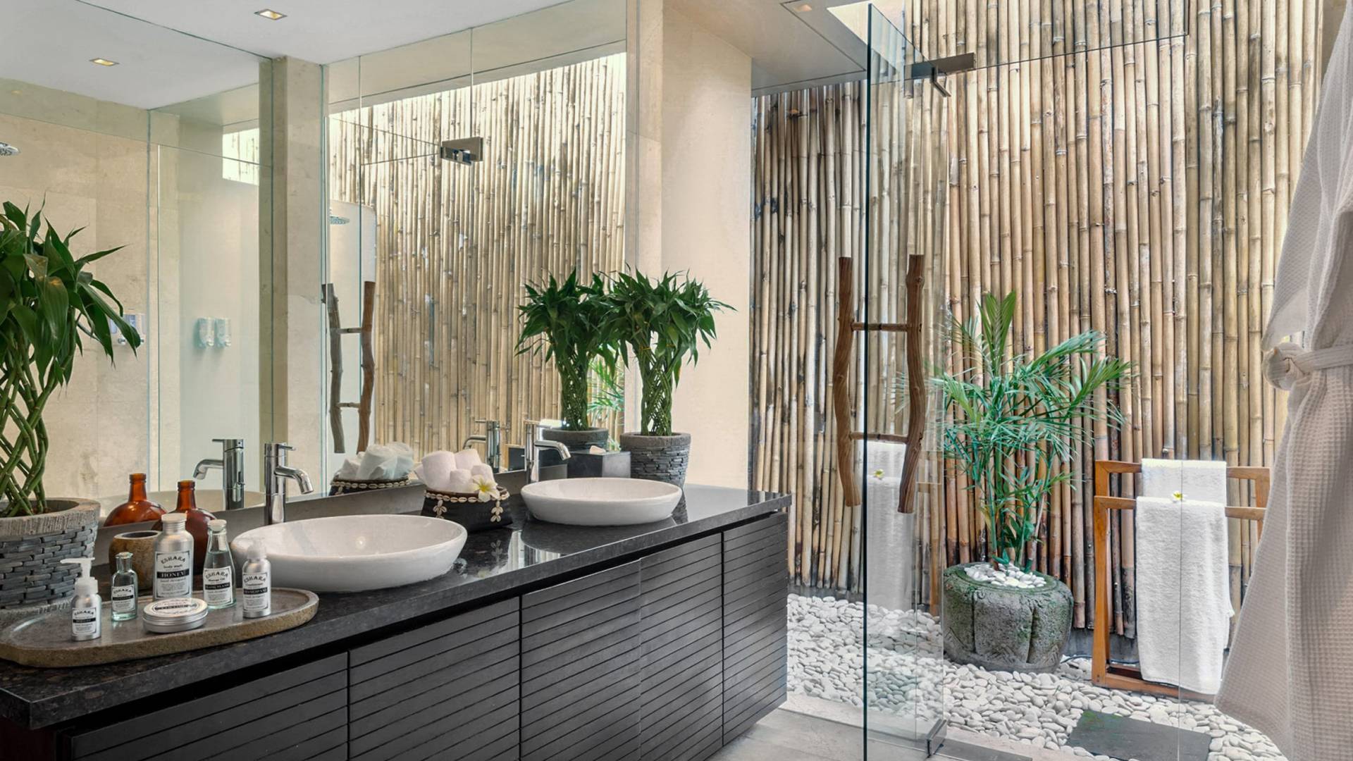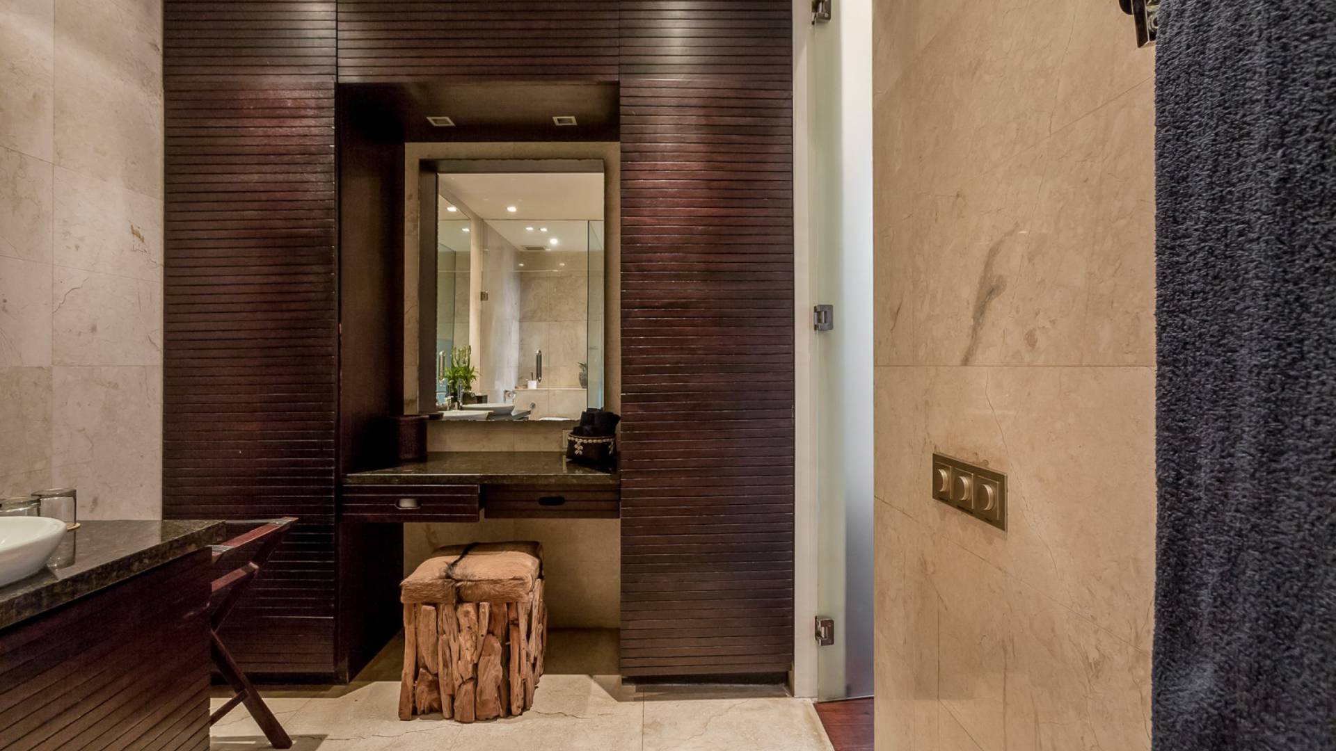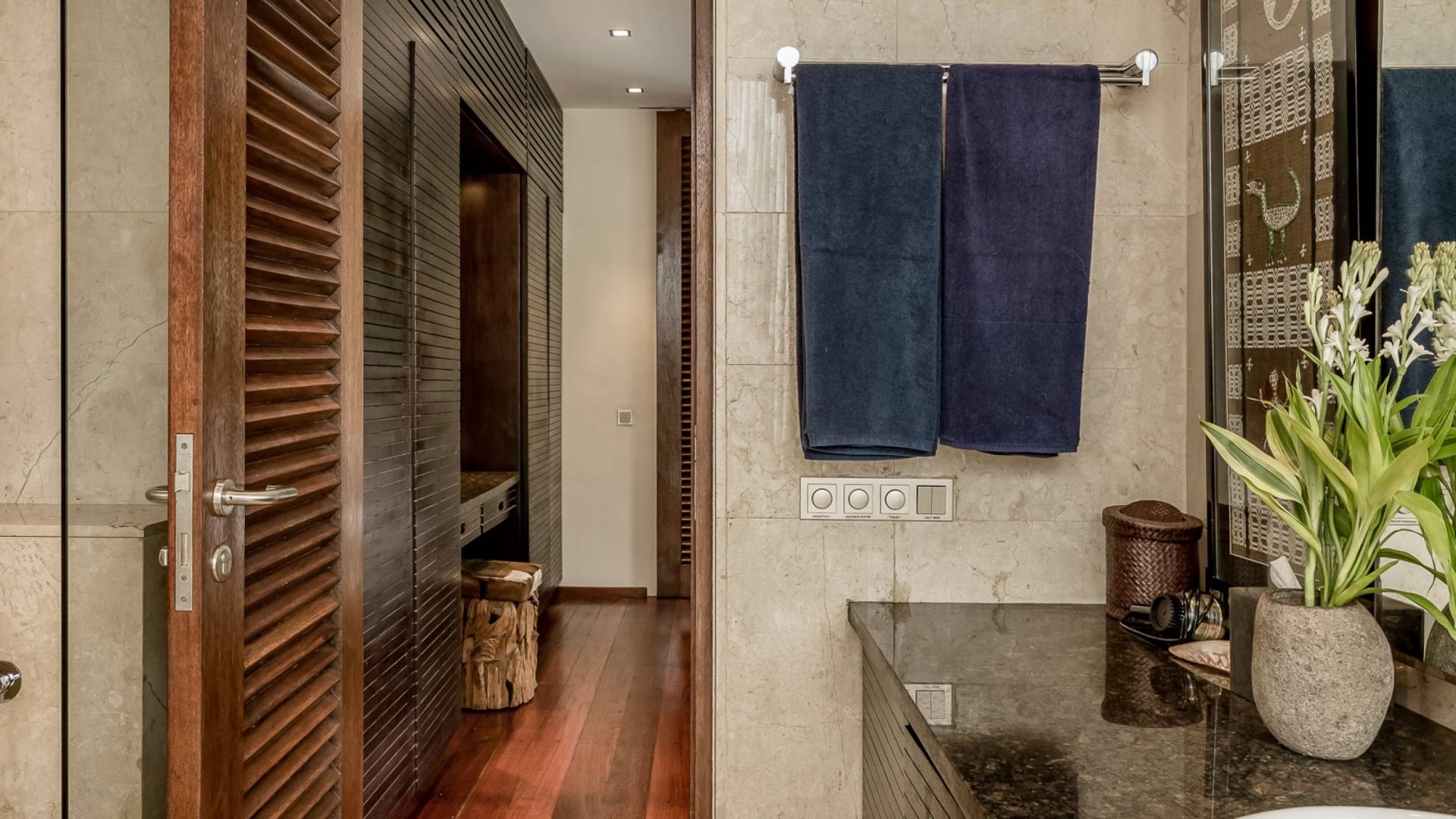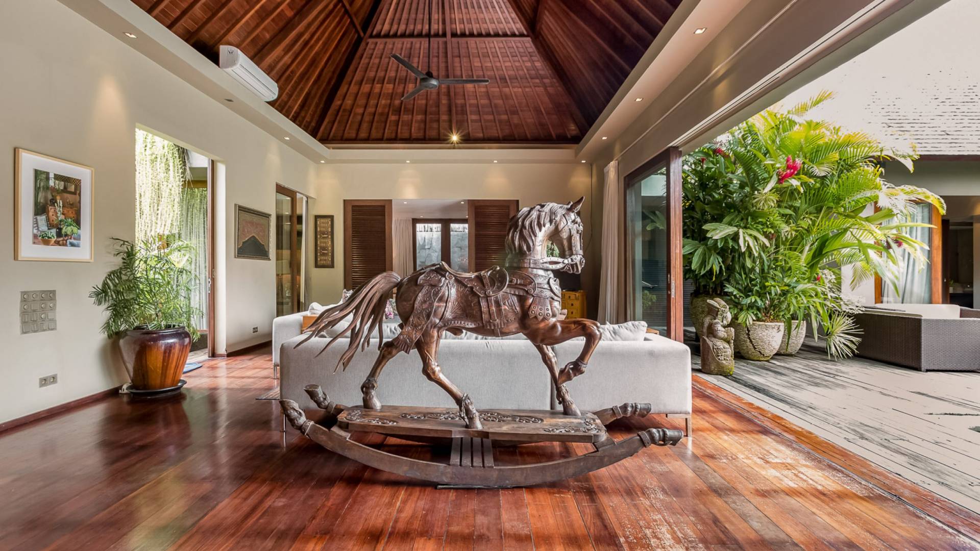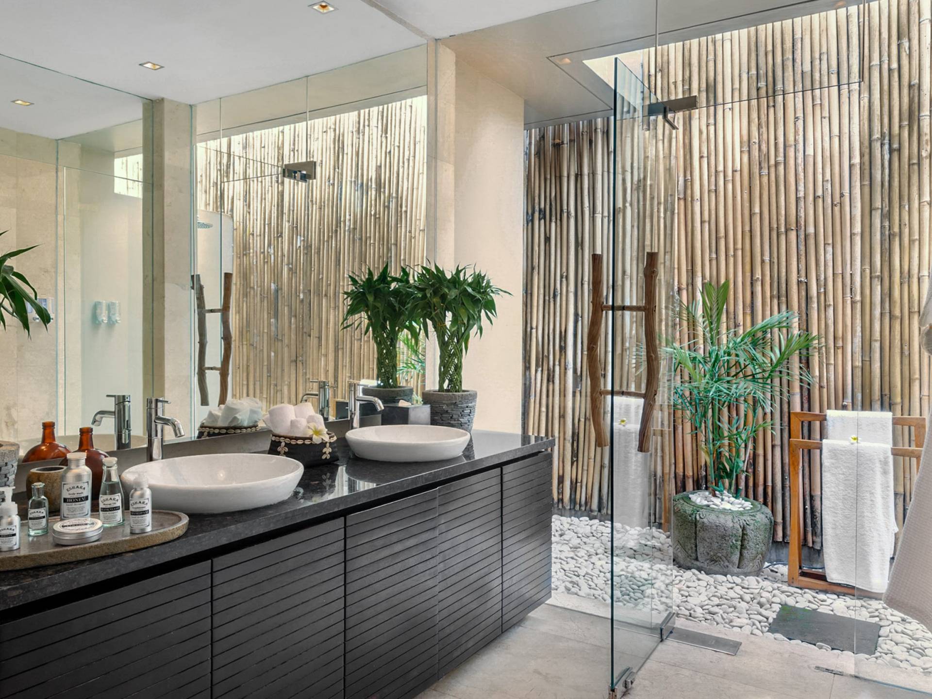 Eshara Estate Seminyak è un grande complesso di tre ville completamente attrezzato, situato in una strada tranquilla e silenziosa a soli 300 metri dalla spiaggia, dai negozi e dai ristoranti del centro di Seminyak. Questa versatile proprietà tre in uno offre la scelta di un'opzione di affitto di 8, 5, 3 o 2 camere da letto grazie a un intelligente sistema di porte scorrevoli e ingressi separati. Ogni villa ha un soggiorno e una sala da pranzo glamour e una cucina integrata, mentre ogni camera da letto con bagno privato ha un letto king-size, uno spogliatoio e un lettore TV/DVD. Ci sono anche tre piscine immerse in giardini tropicali completi di alberi di frangipani, palme da cocco, lettini prendisole e ponti in legno.
