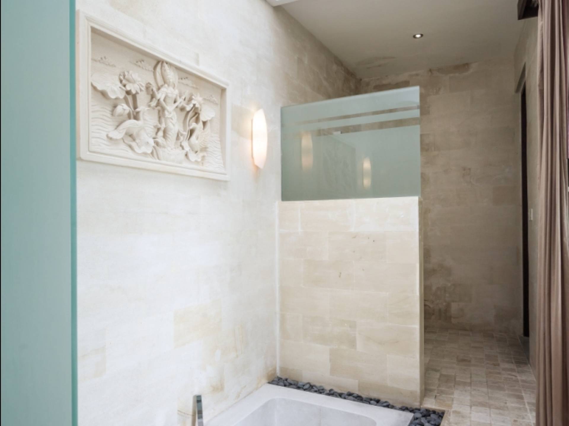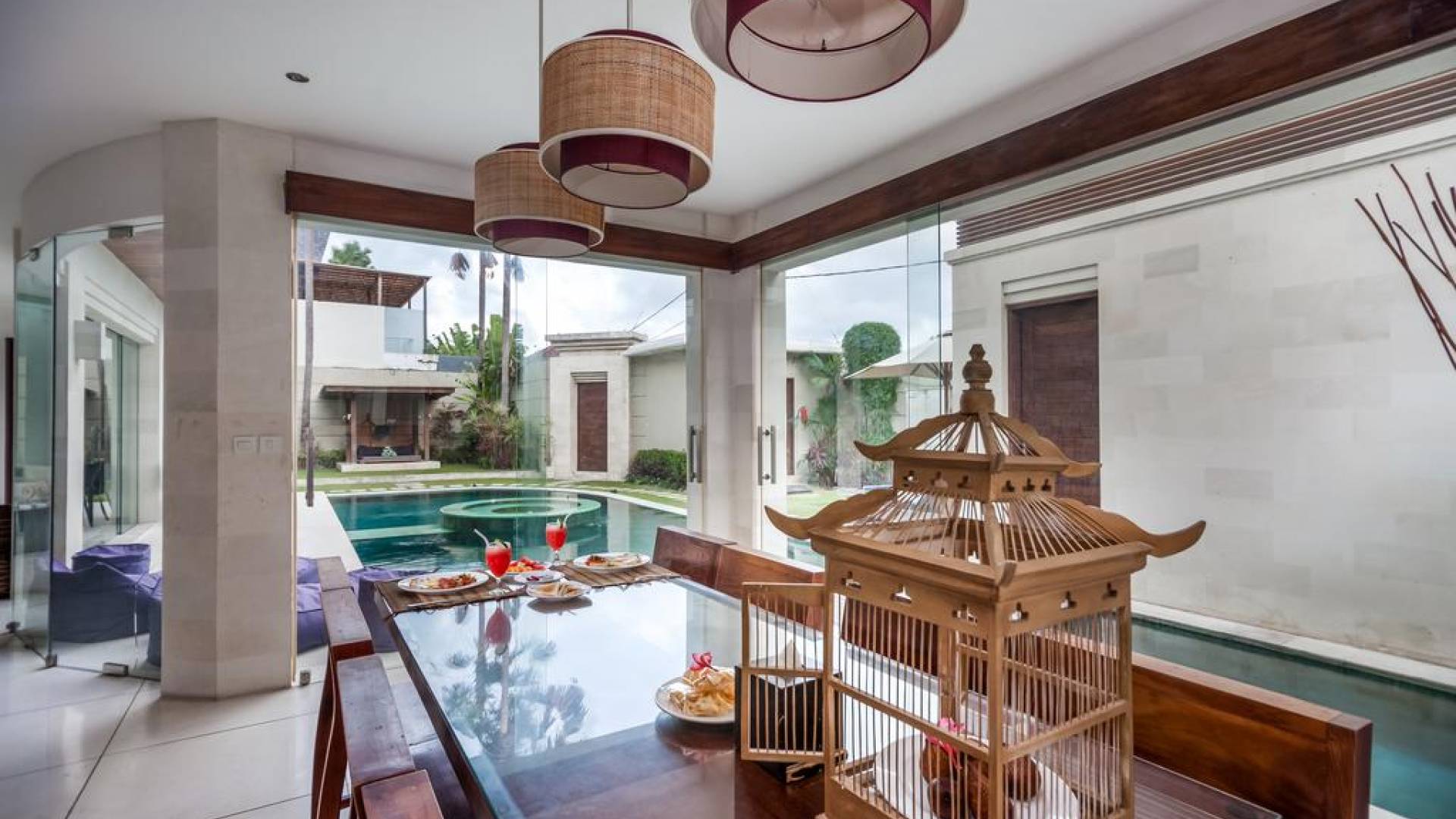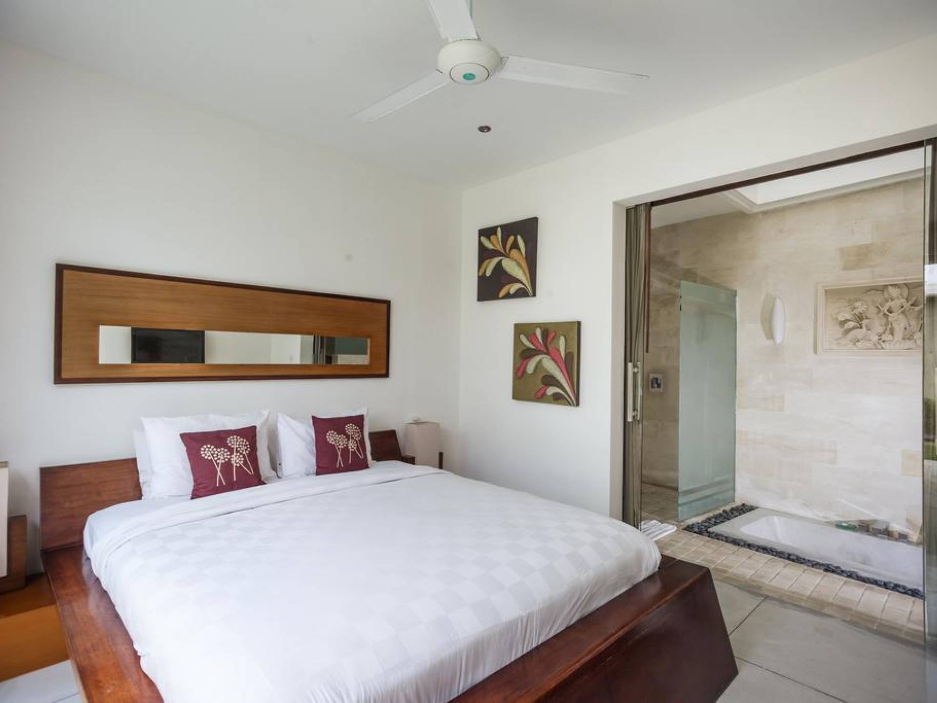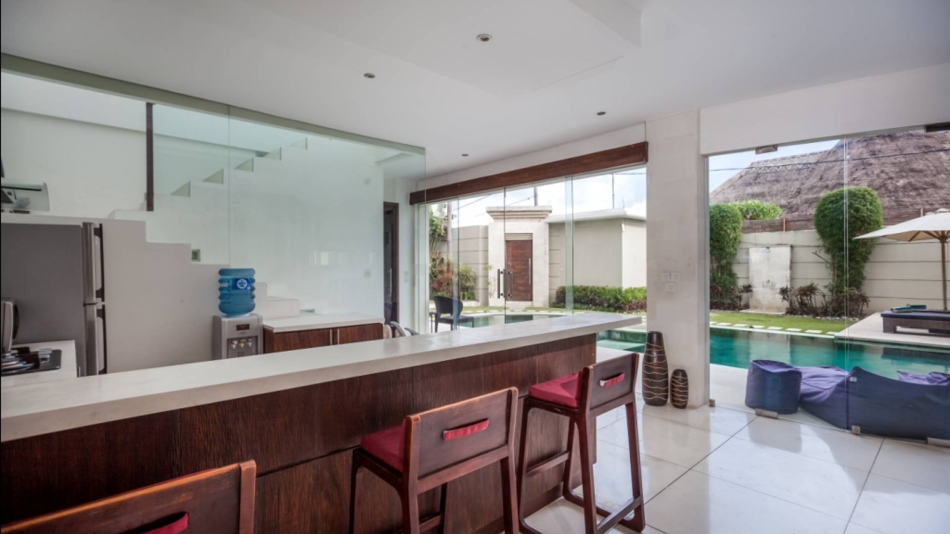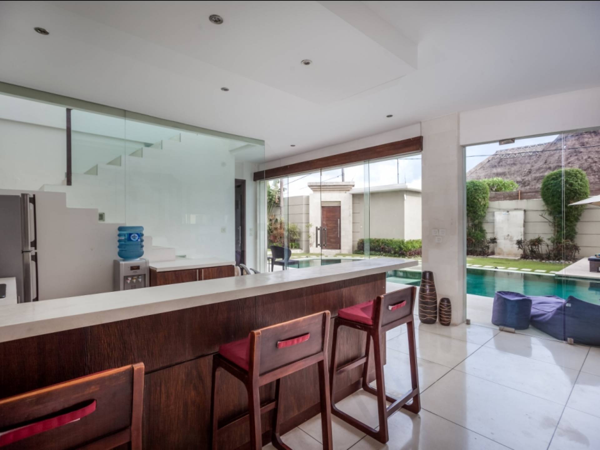 K Villas offre una meravigliosa sensazione di spaziosità e offre le ultime novità in fatto di servizi moderni, tra cui una TV LED a schermo piatto, stazioni per iPod, Internet WiFi e riscaldamento dell'acqua a energia solare. I materiali di qualità ampiamente utilizzati in tutto includono terrazzo e pietra Kalimantan, marmo e legni naturali, mentre le finestre dal pavimento al soffitto e le porte scorrevoli in vetro consentono la luce solare naturale e le brezze rinfrescanti.