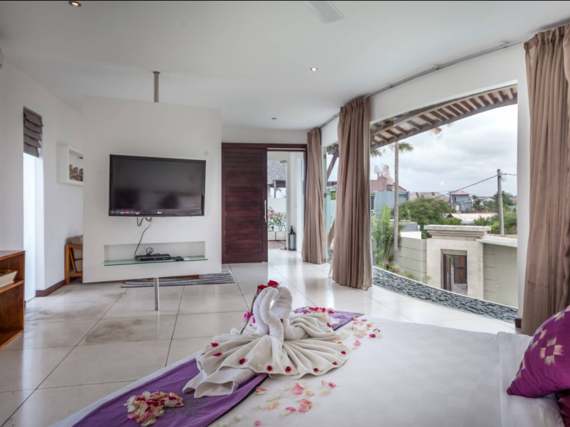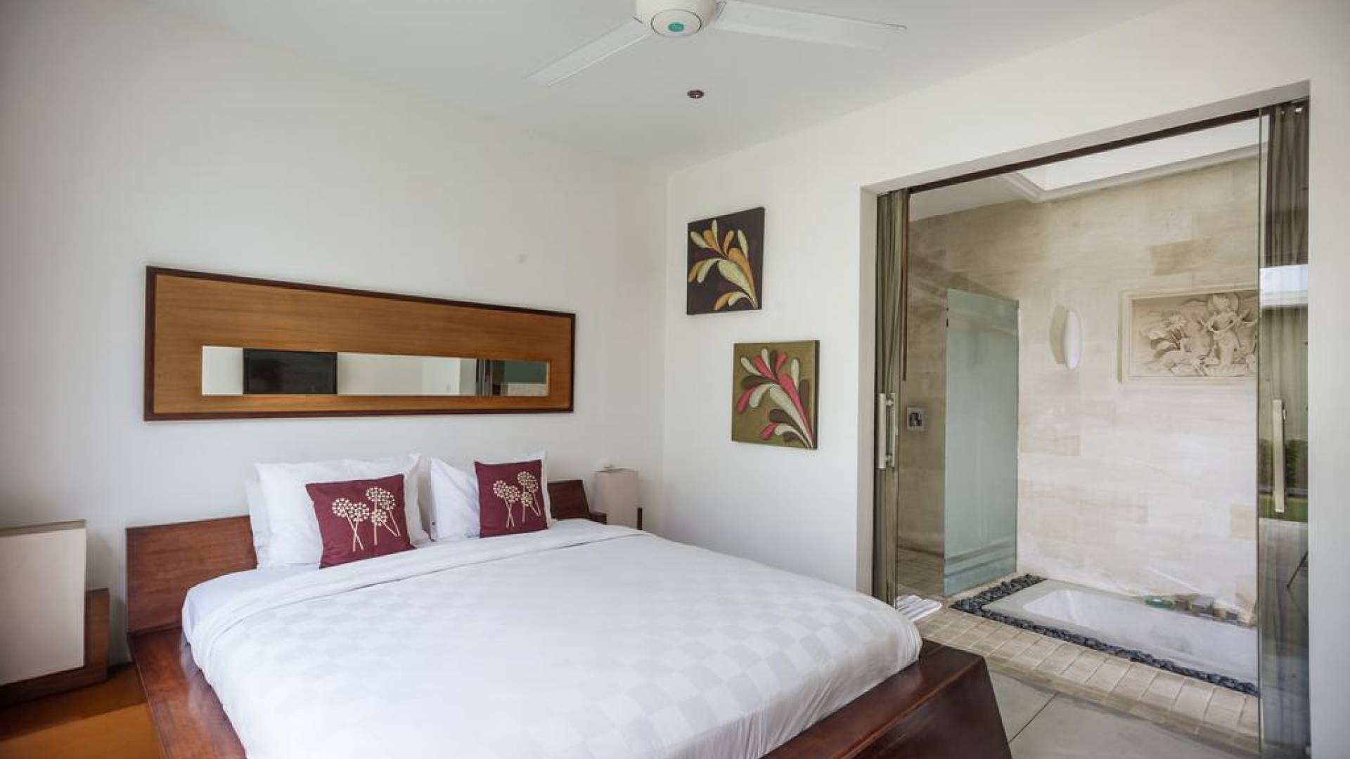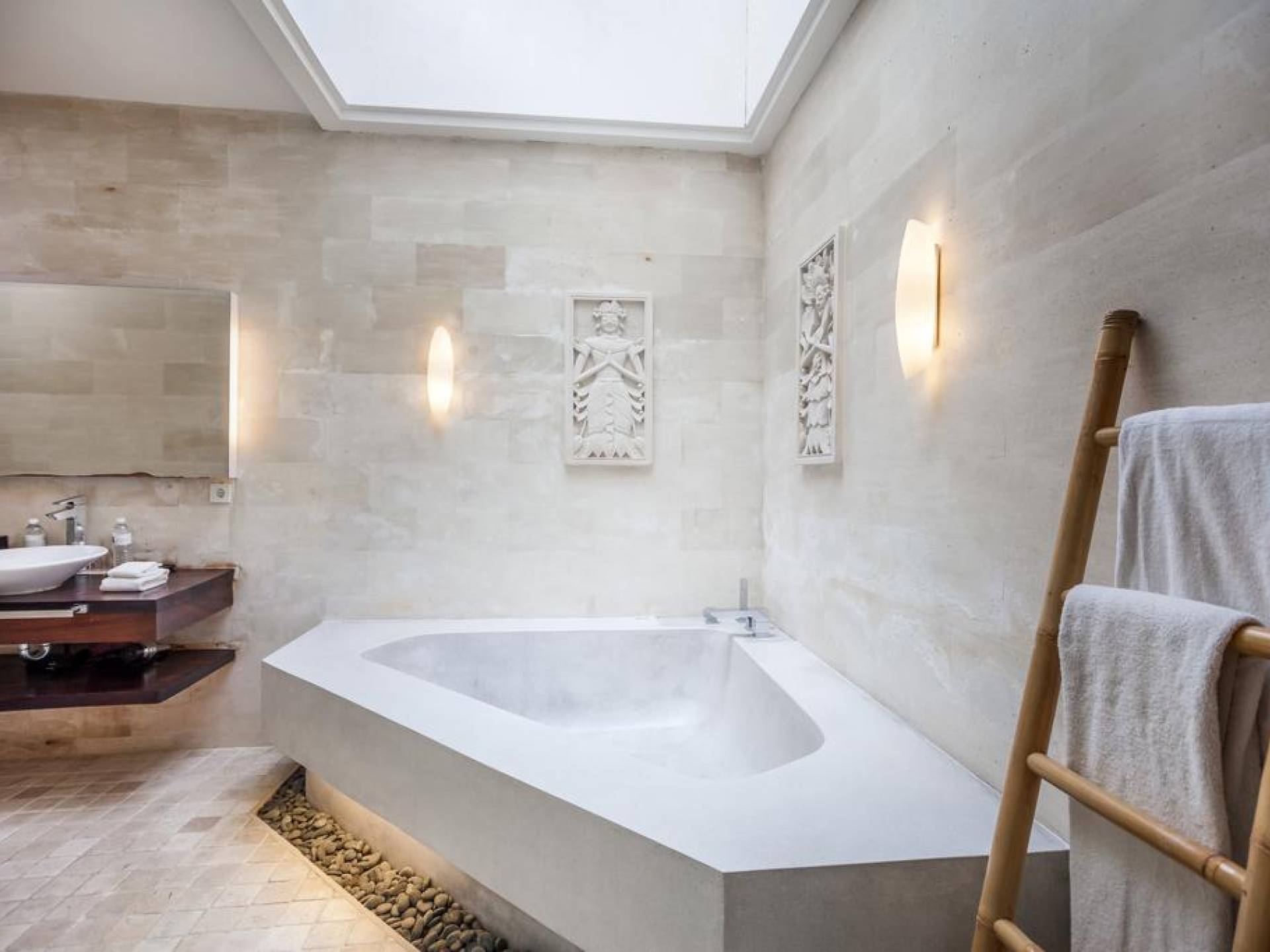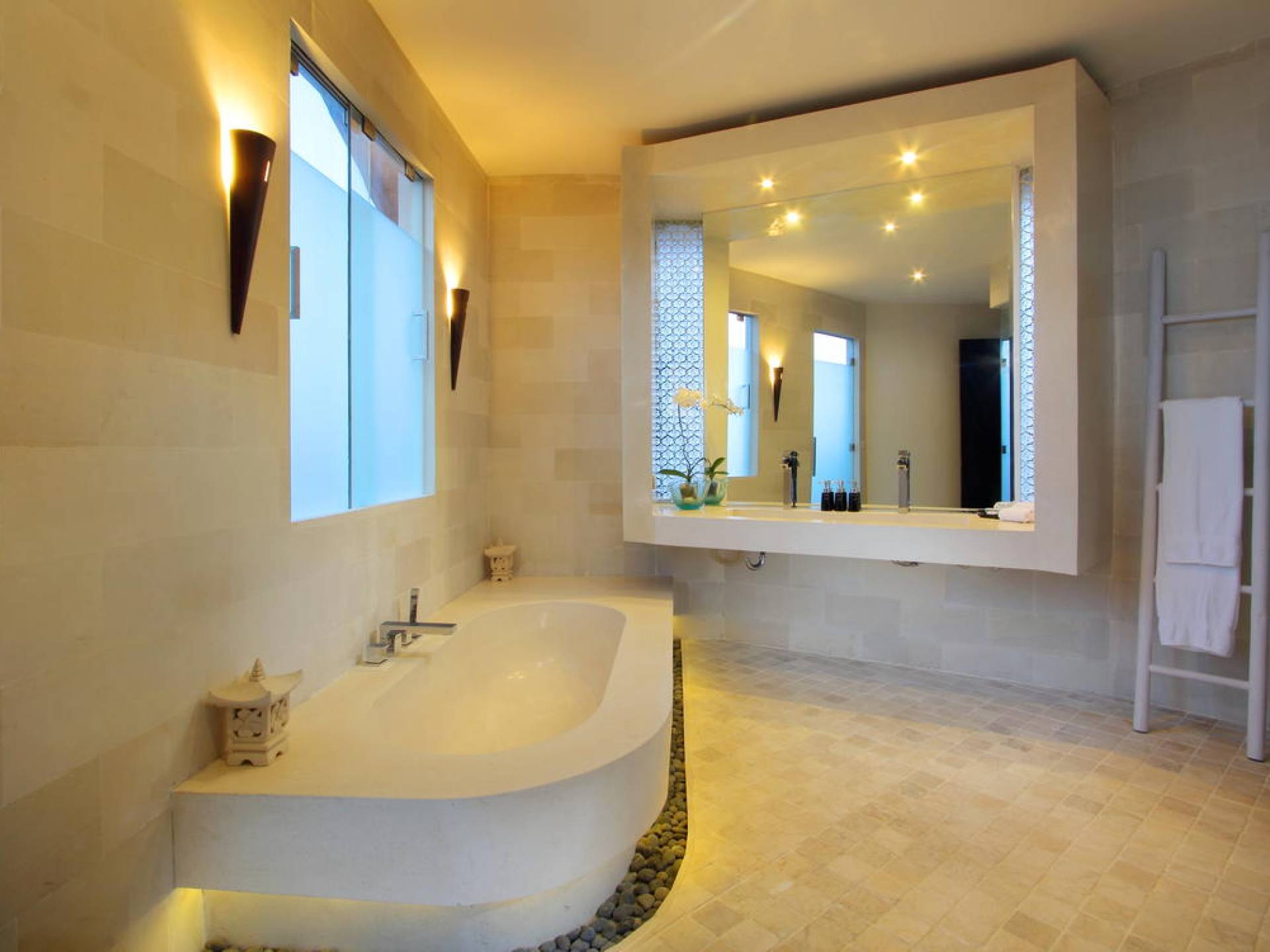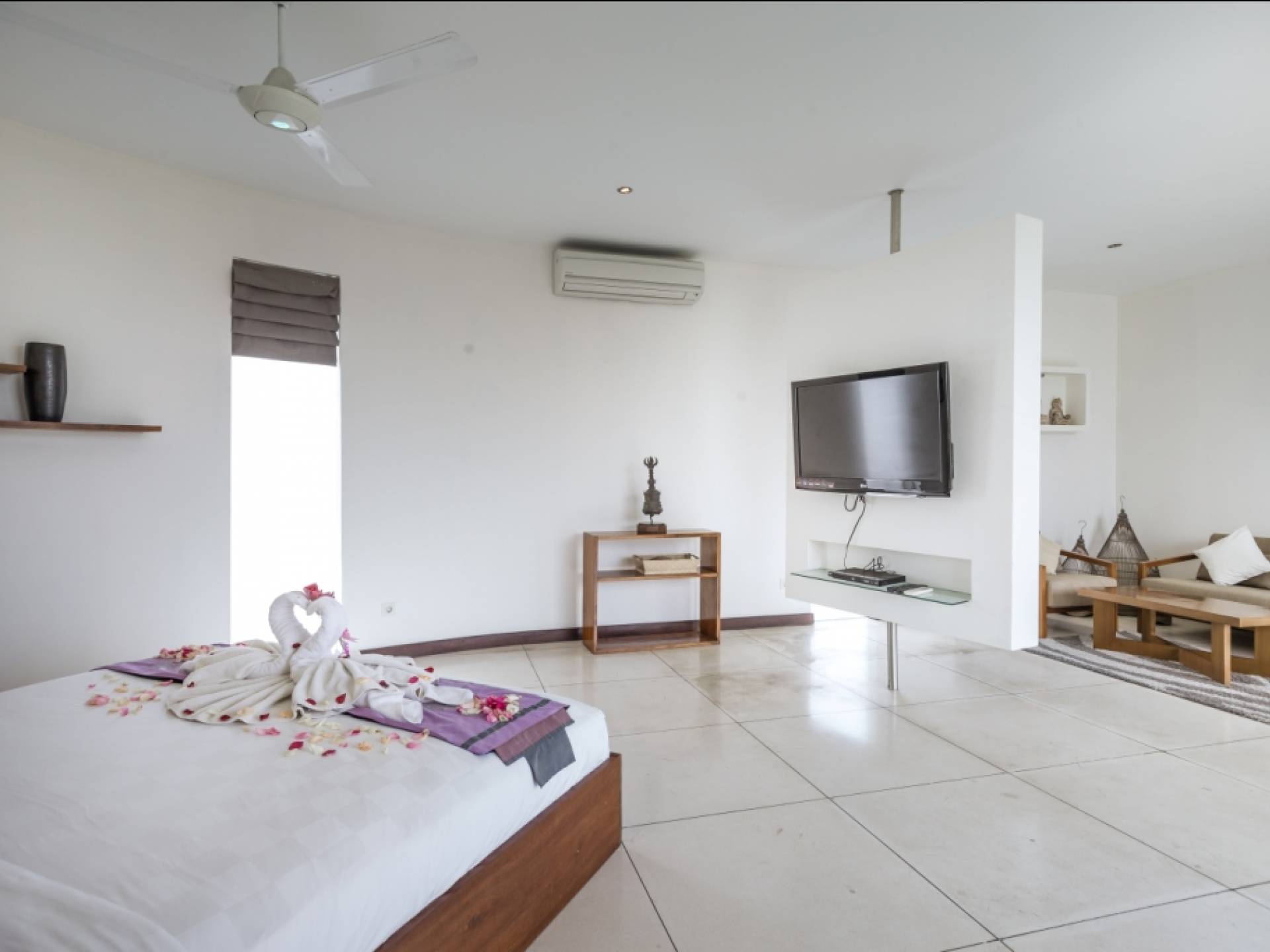 K Villas offre una meravigliosa sensazione di spaziosità e offre le ultime novità in fatto di servizi moderni, tra cui una TV LED a schermo piatto, stazioni per iPod, Internet WiFi e riscaldamento dell'acqua a energia solare. I materiali di qualità ampiamente utilizzati in tutto includono terrazzo e pietra Kalimantan, marmo e legni naturali, mentre le finestre dal pavimento al soffitto e le porte scorrevoli in vetro consentono la luce solare naturale e le brezze rinfrescanti.