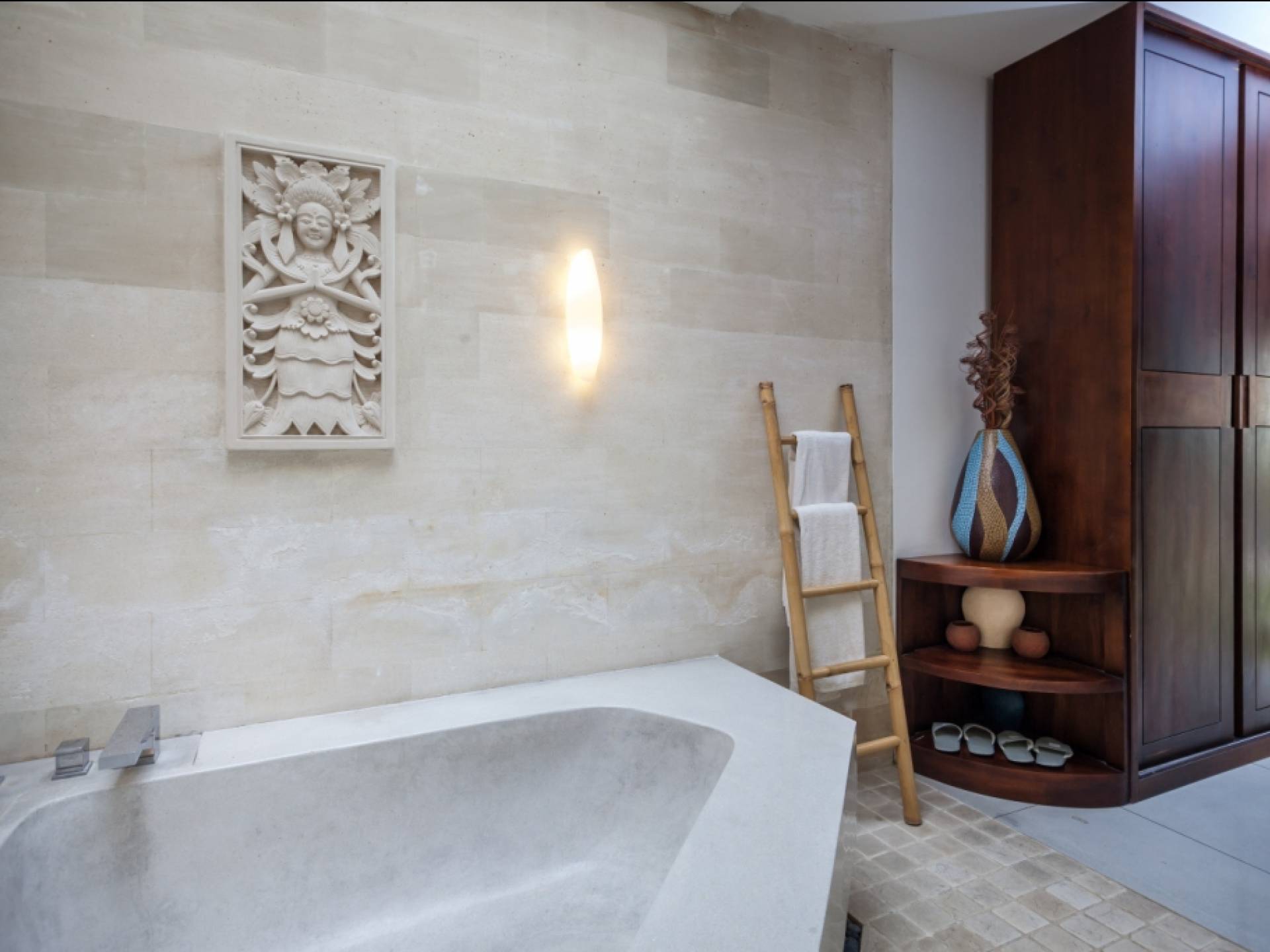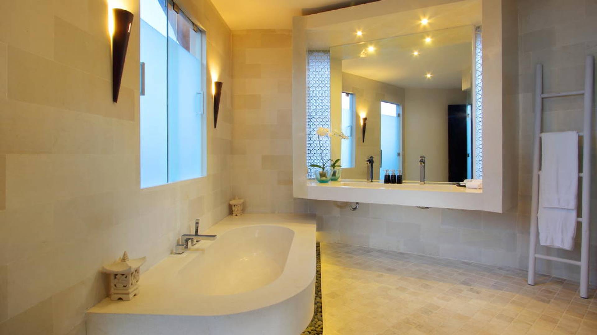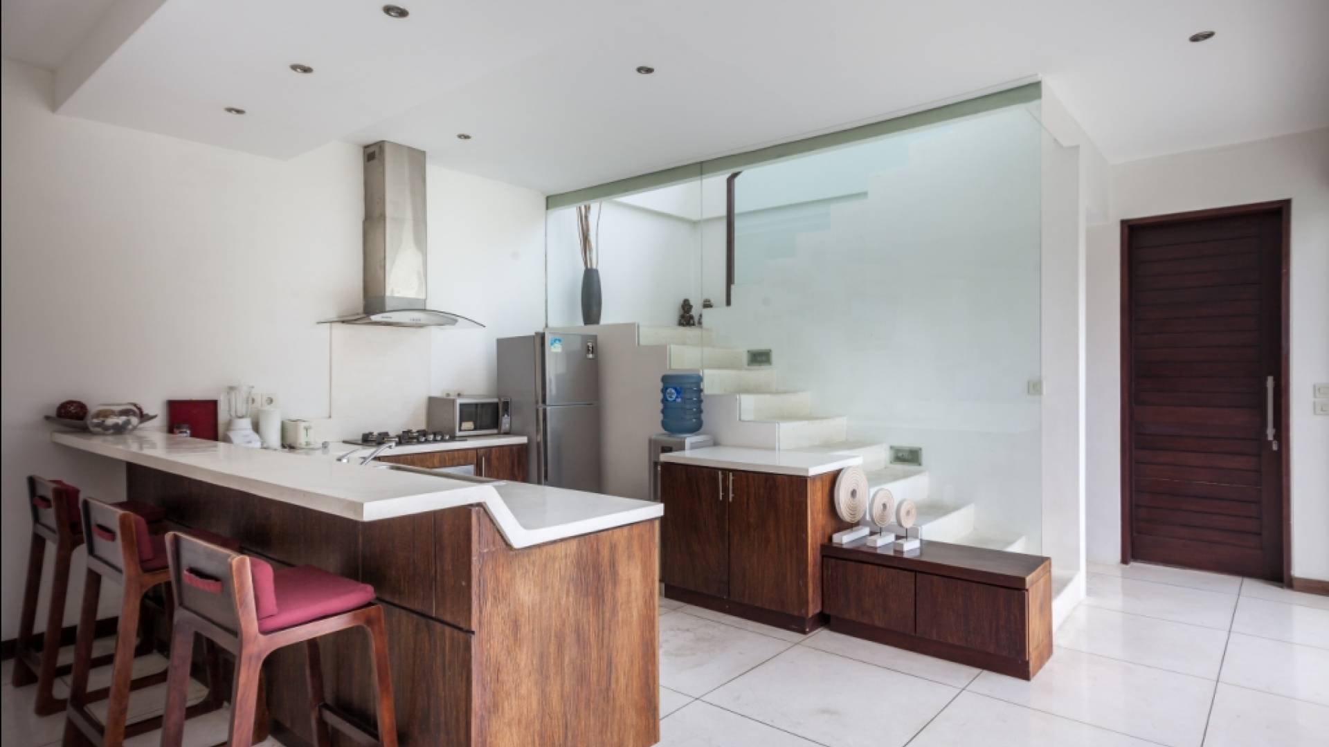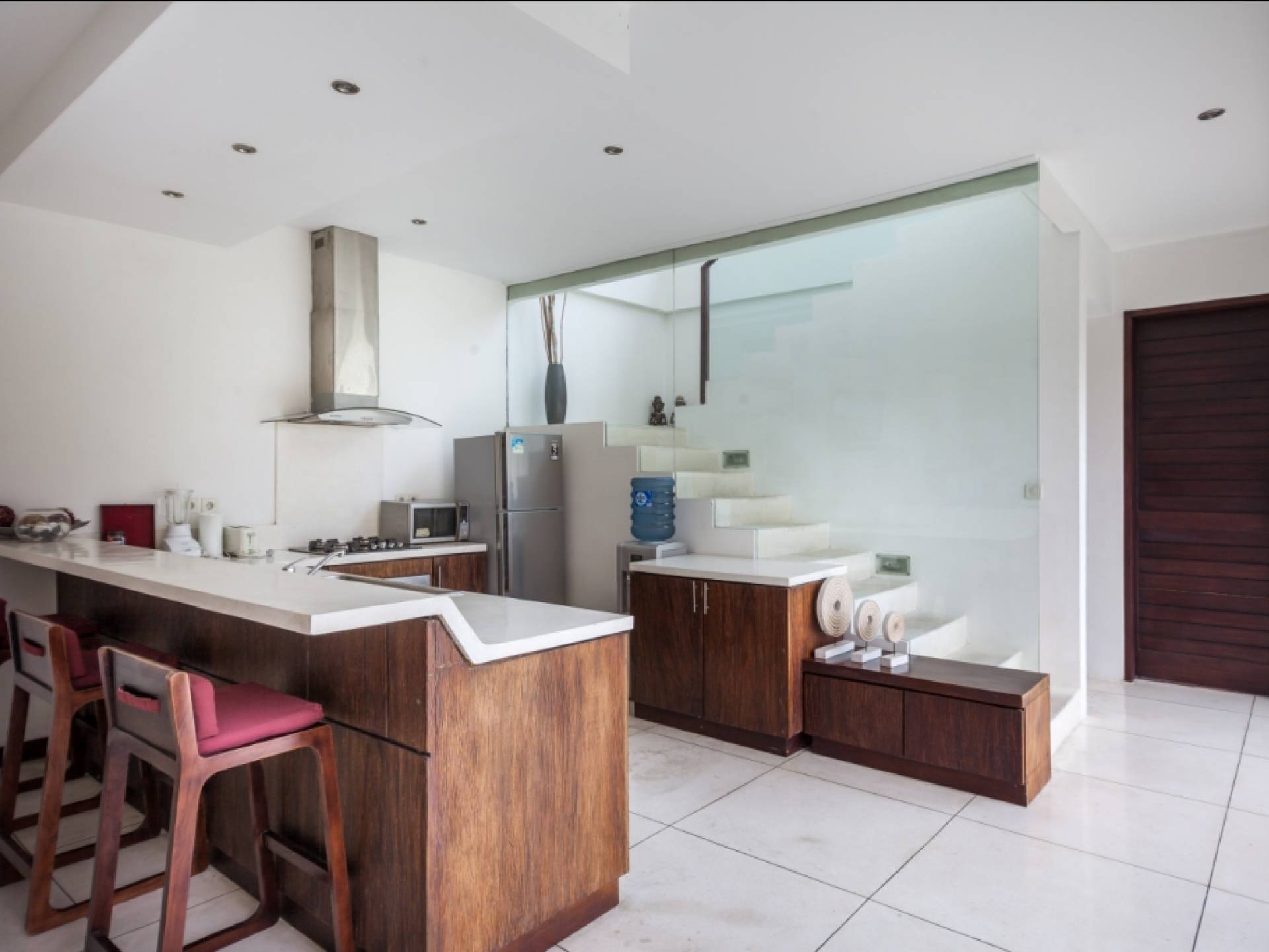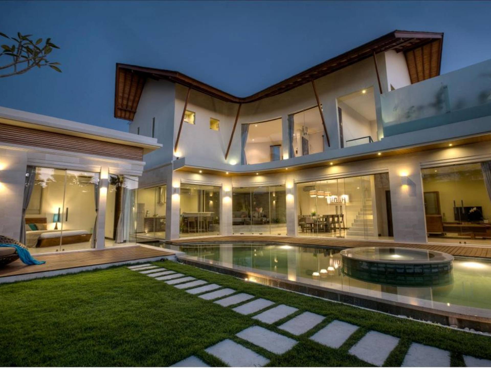 K Villas offre una meravigliosa sensazione di spaziosità e offre le ultime novità in fatto di servizi moderni, tra cui una TV LED a schermo piatto, stazioni per iPod, Internet WiFi e riscaldamento dell'acqua a energia solare. I materiali di qualità ampiamente utilizzati in tutto includono terrazzo e pietra Kalimantan, marmo e legni naturali, mentre le finestre dal pavimento al soffitto e le porte scorrevoli in vetro consentono la luce solare naturale e le brezze rinfrescanti.