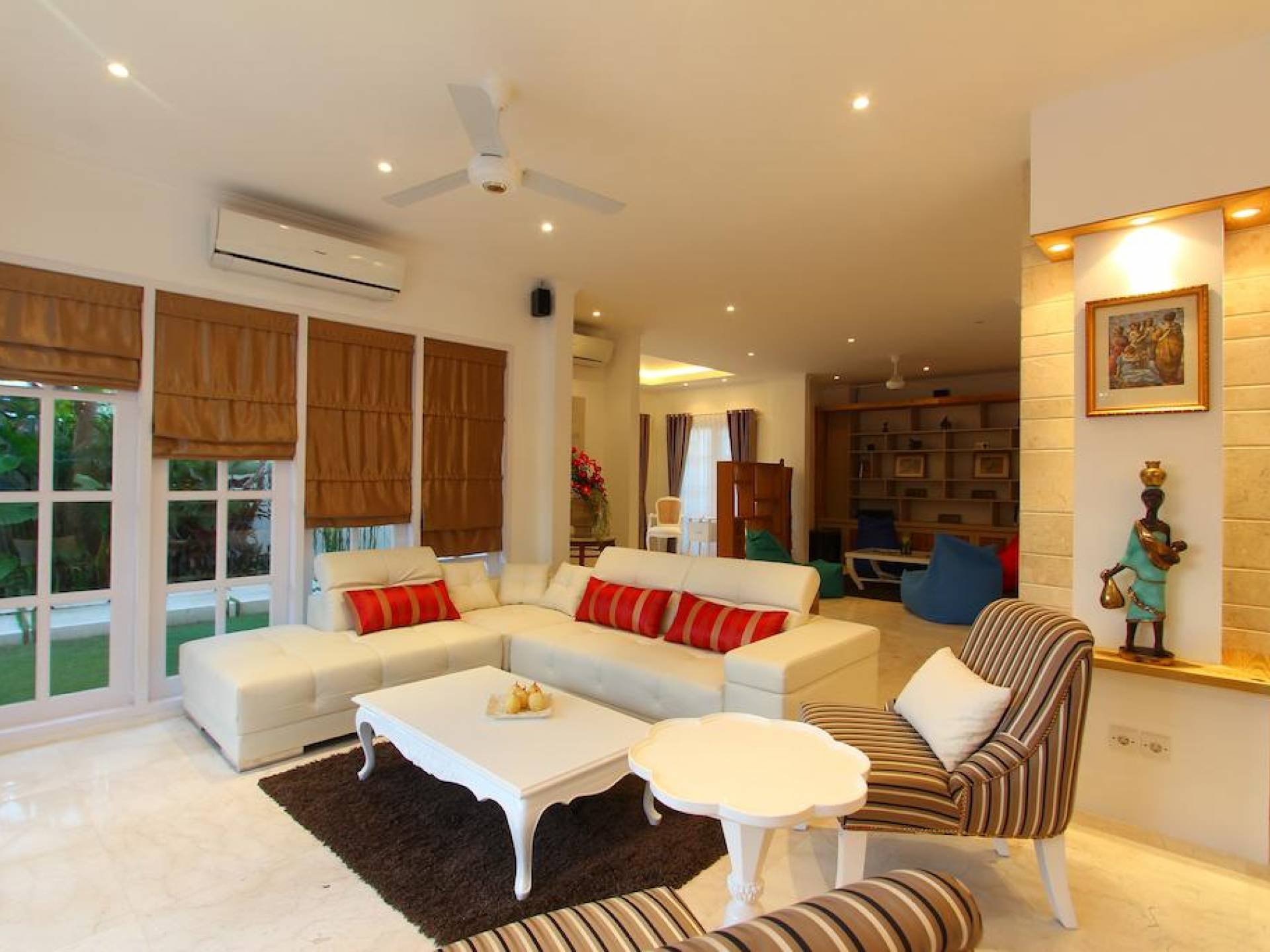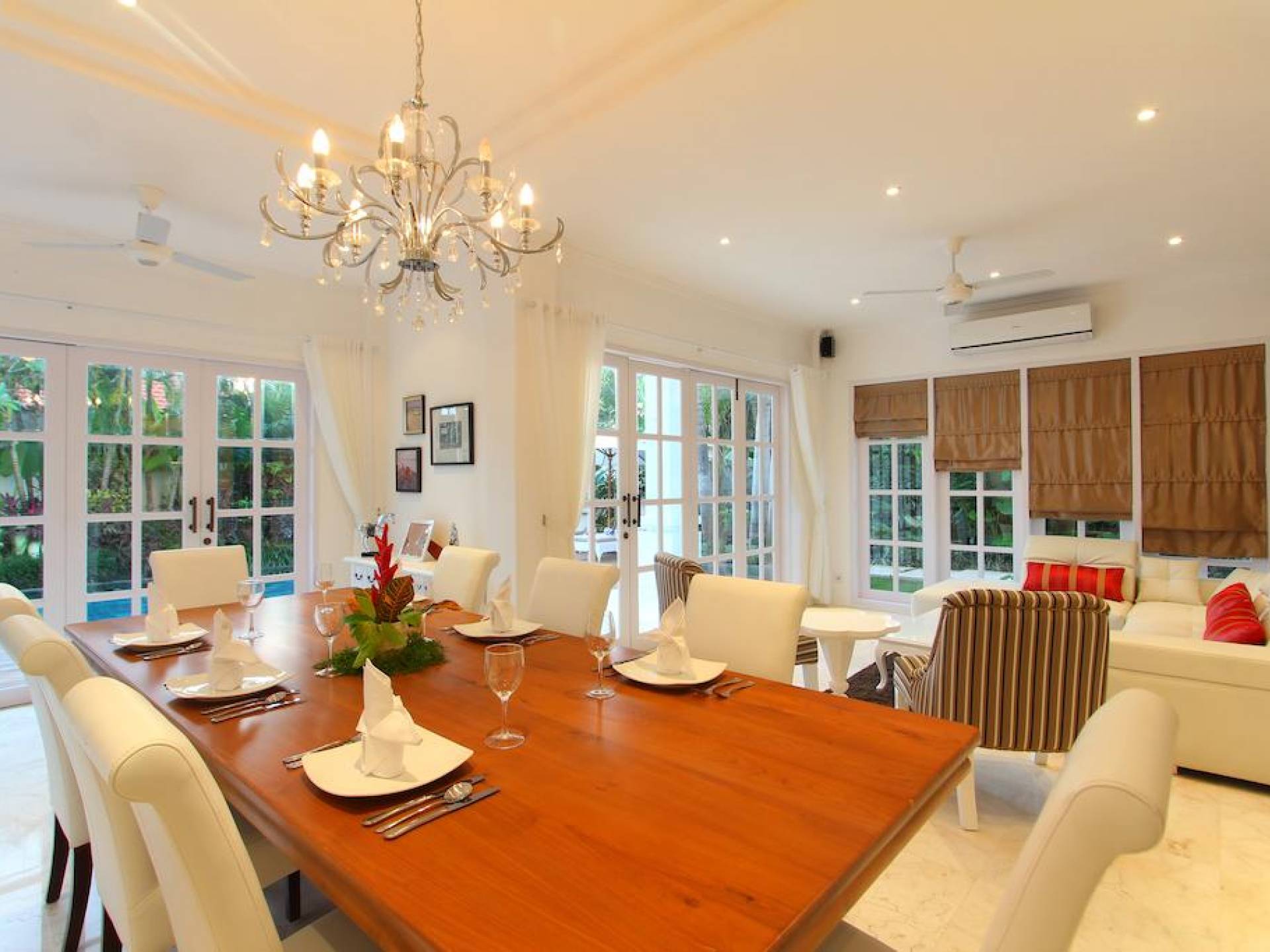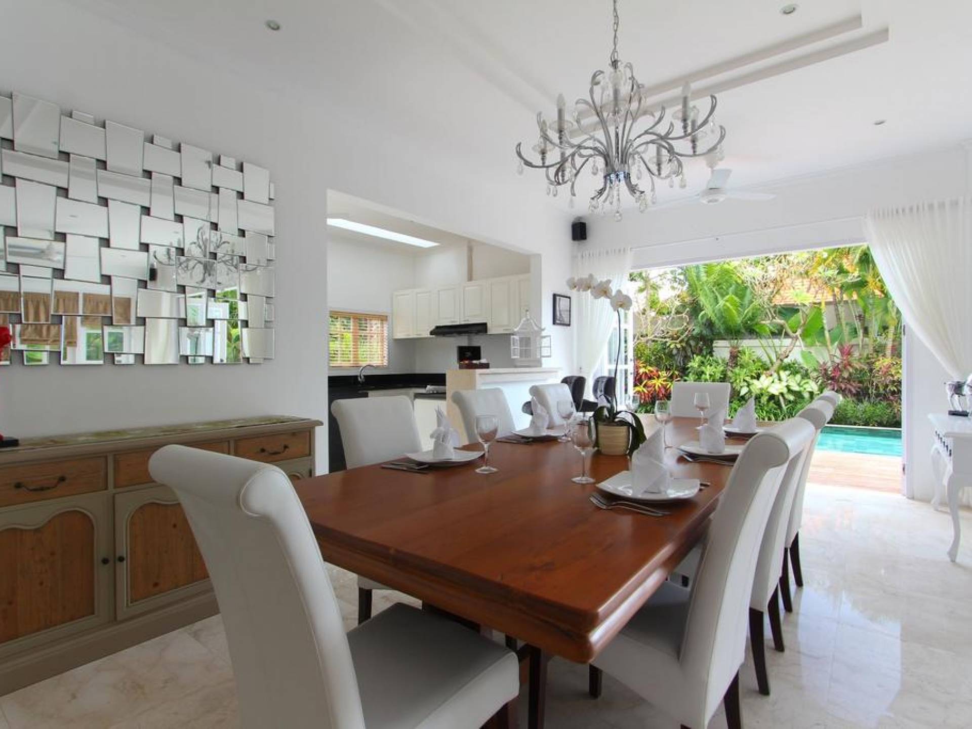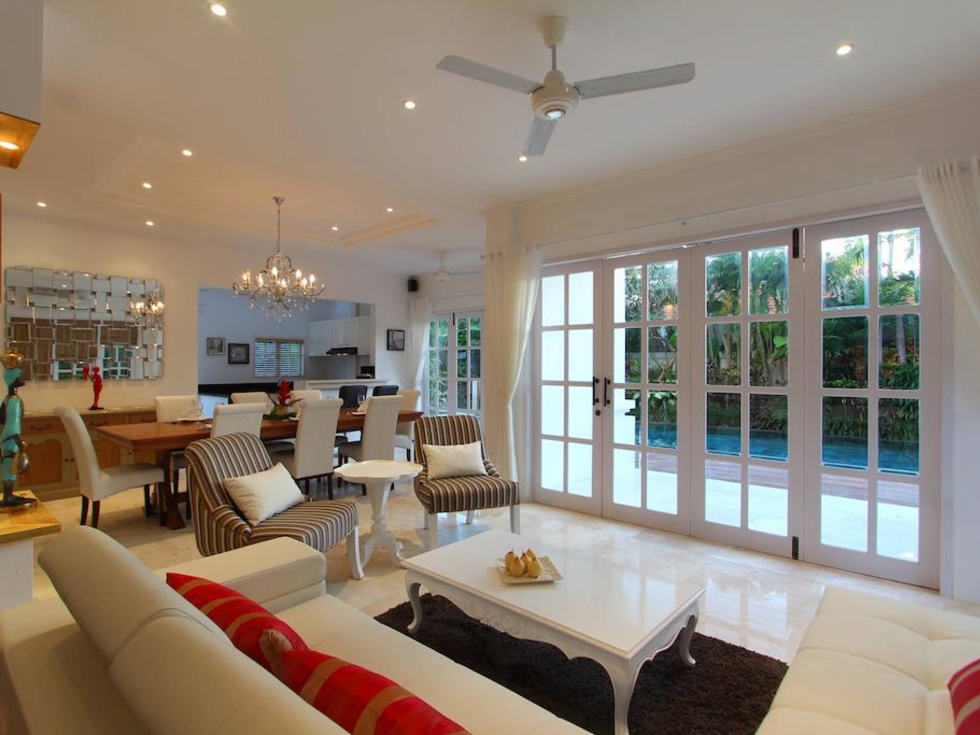 Kencana Villa è dotata di due e tre camere da letto, ognuna delle quali ha la propria TV LCD, cassetta di sicurezza e un bagno privato. La zona giorno si trova al primo piano e dotata di impianto audio Hi-Fi Stereo. Adiacente alla zona giorno, una zona pranzo con vista sulla piscina migliorerà il tuo umore durante la colazione al mattino.
