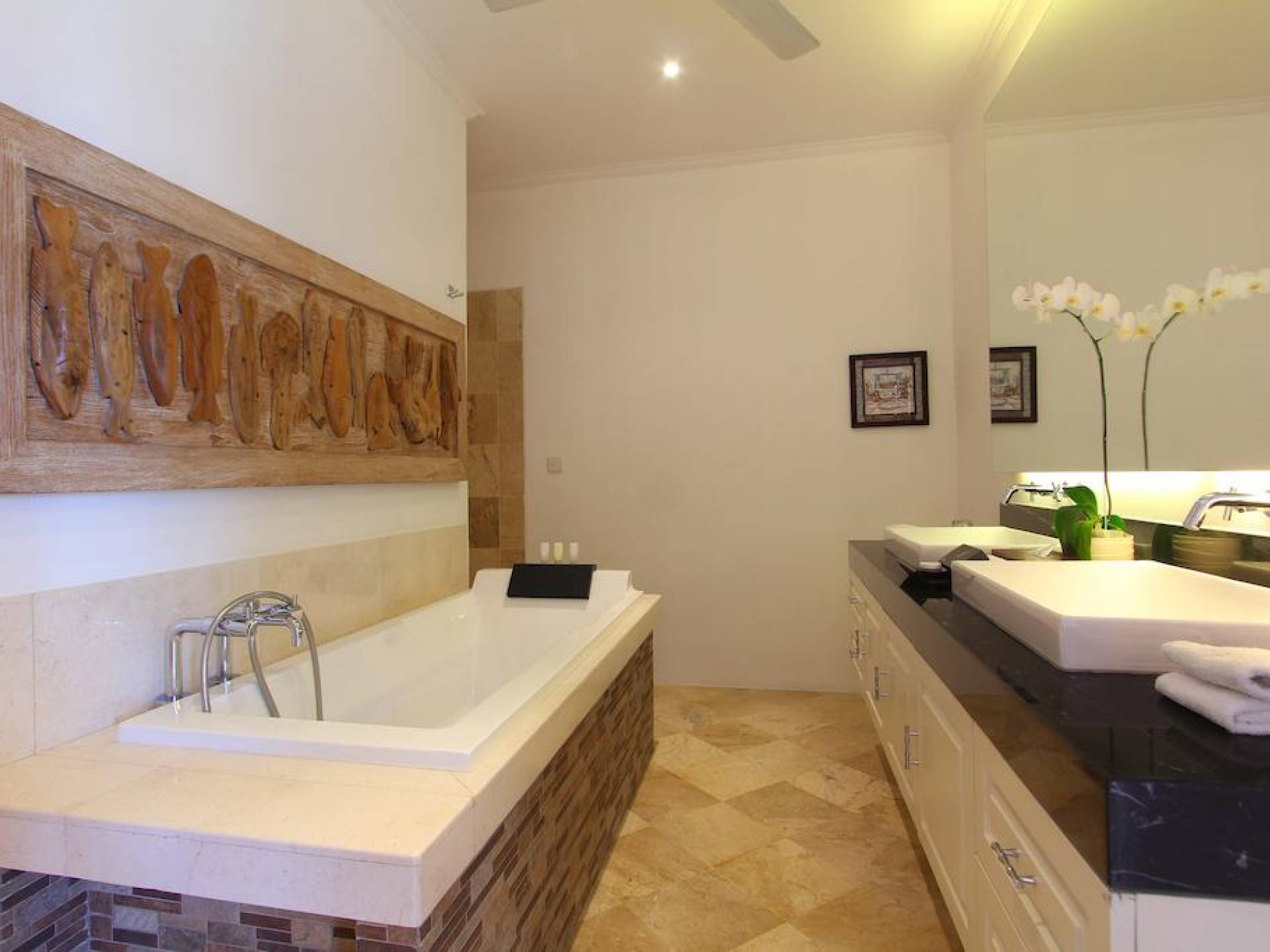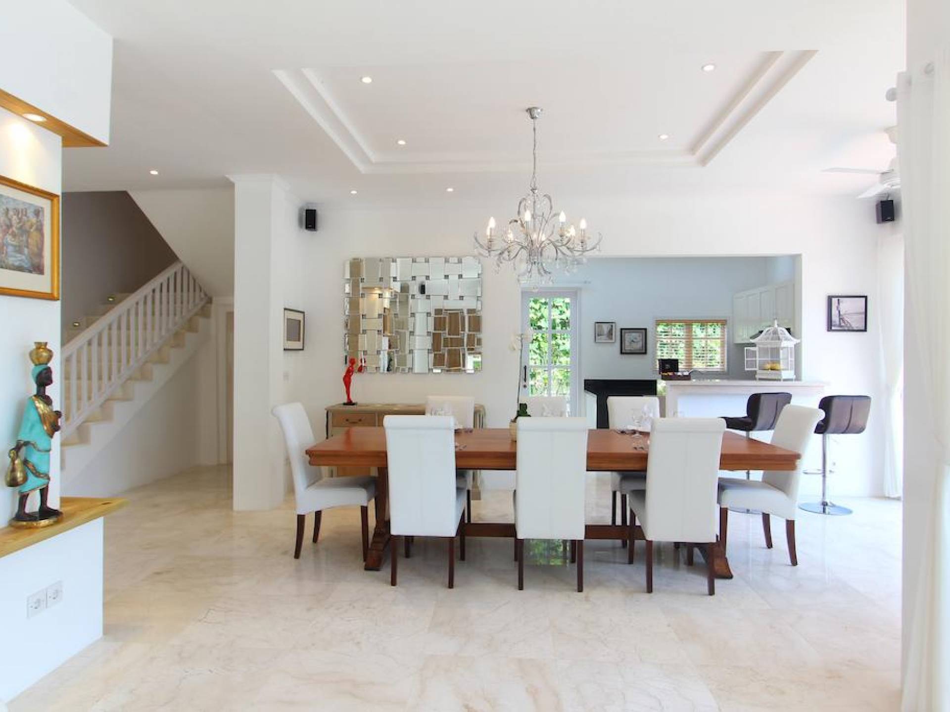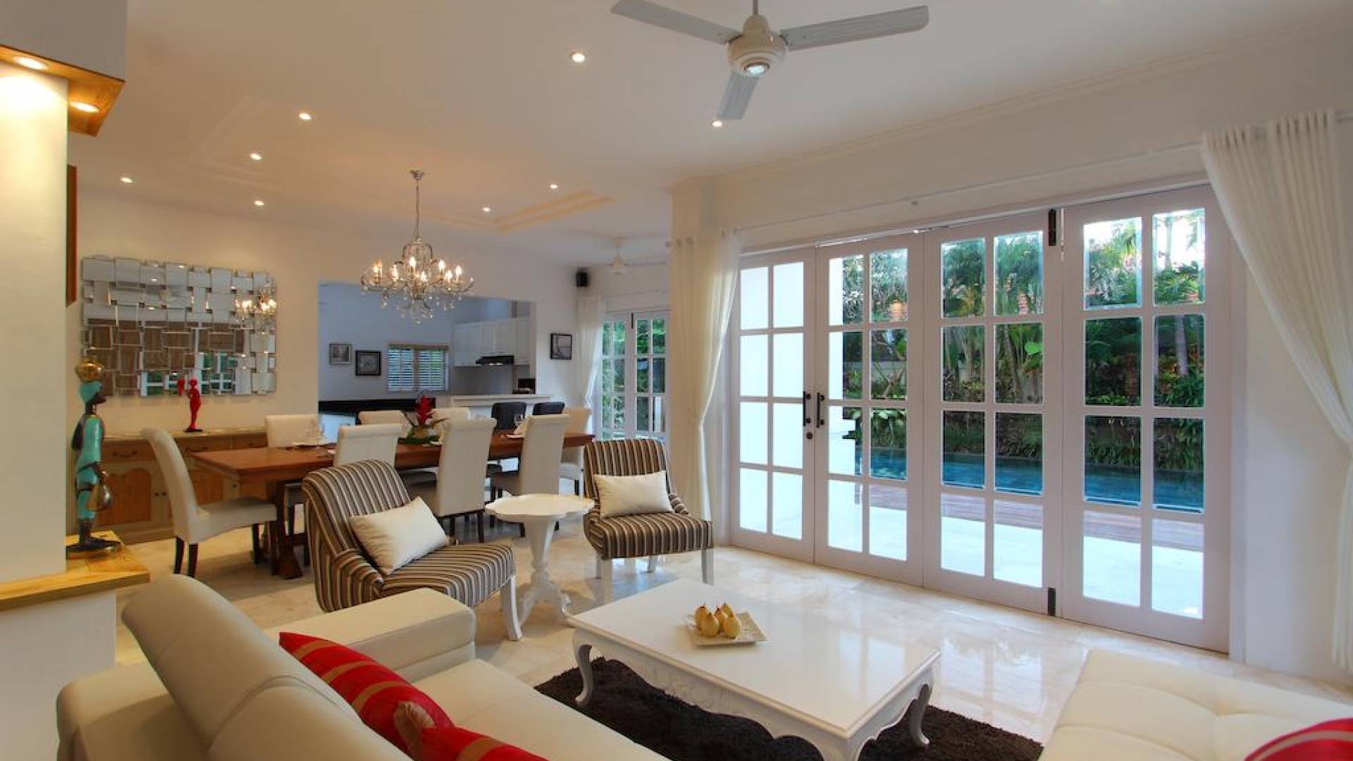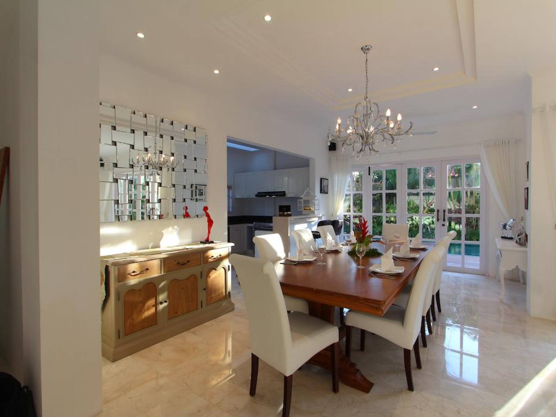 Kencana Villa è dotata di due e tre camere da letto, ognuna delle quali ha la propria TV LCD, cassetta di sicurezza e un bagno privato. La zona giorno si trova al primo piano e dotata di impianto audio Hi-Fi Stereo. Adiacente alla zona giorno, una zona pranzo con vista sulla piscina migliorerà il tuo umore durante la colazione al mattino.