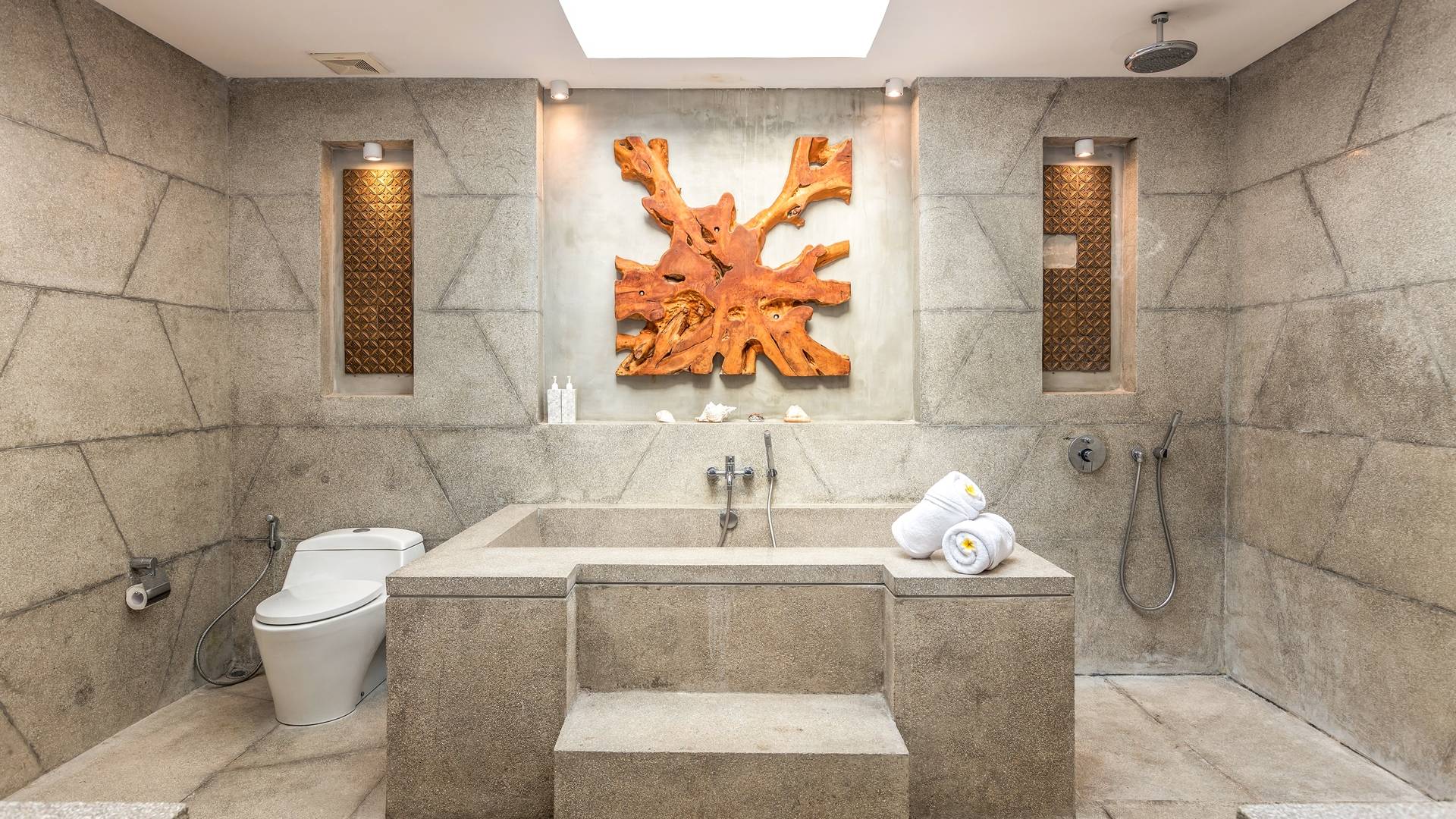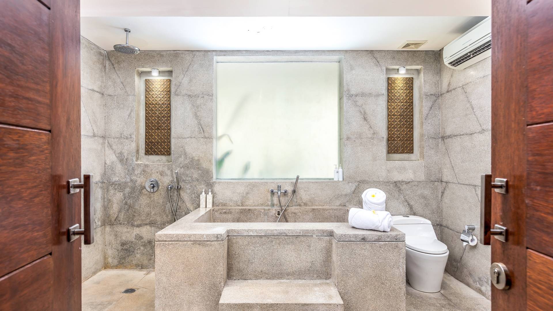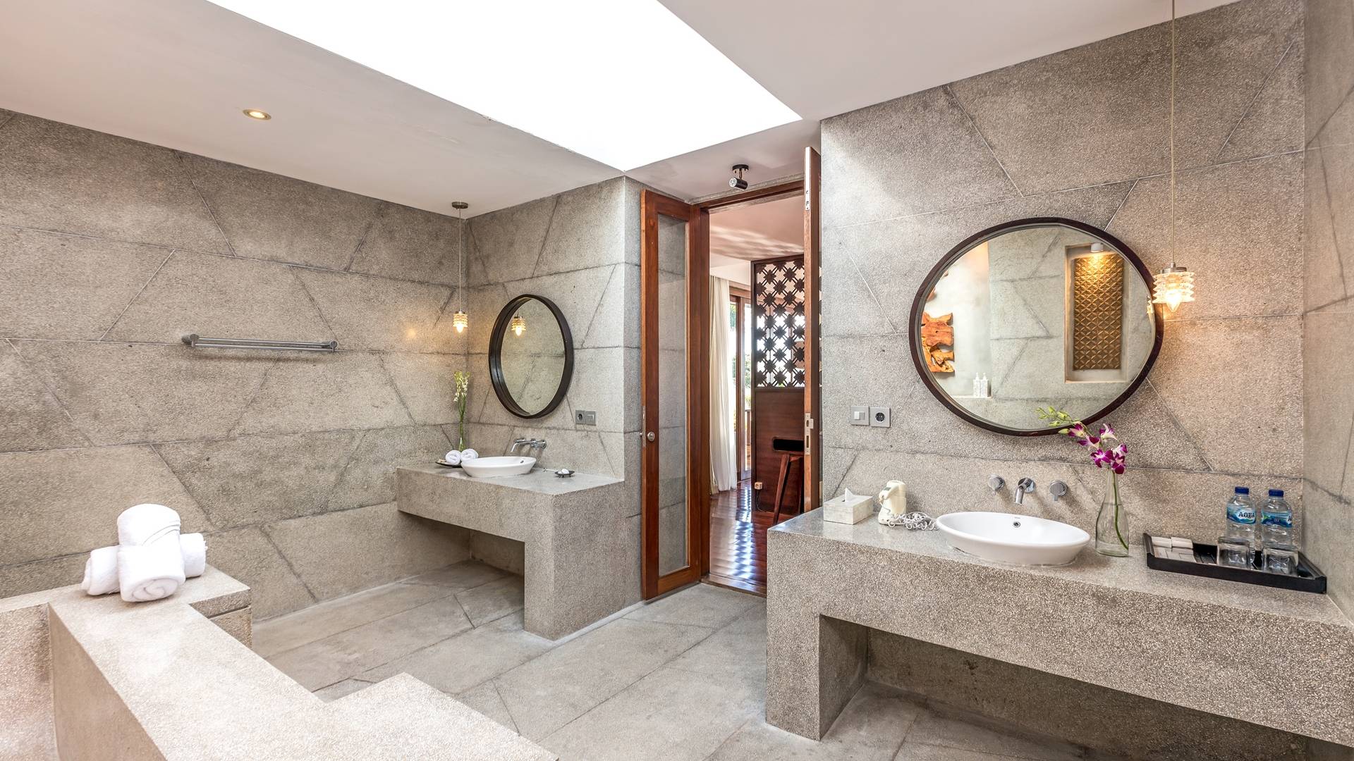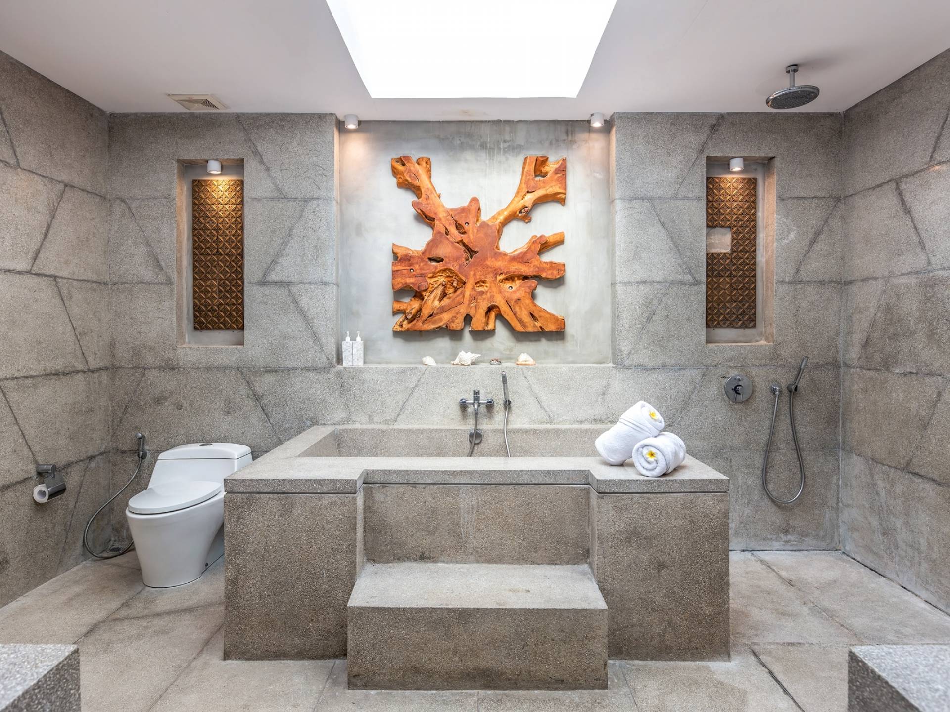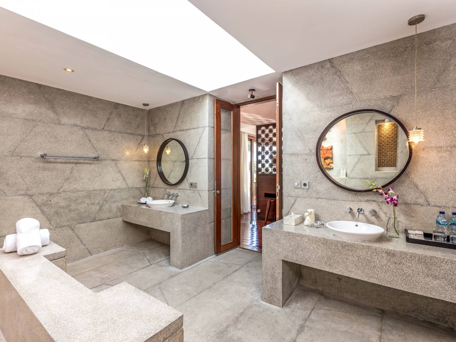 Ognuno fornendo una fresca tregua dal caldo di Bali, gli ospiti si sentiranno a proprio agio e rilassati nei loro ritiri privati. I bagni privati sono tutti dotati di grandi vasche da bagno in pietra, perfette per rilassarsi dopo una lunga giornata calda. Puoi persino organizzare un bagno di fiori con lo staff della villa per sorprendere la persona amata.