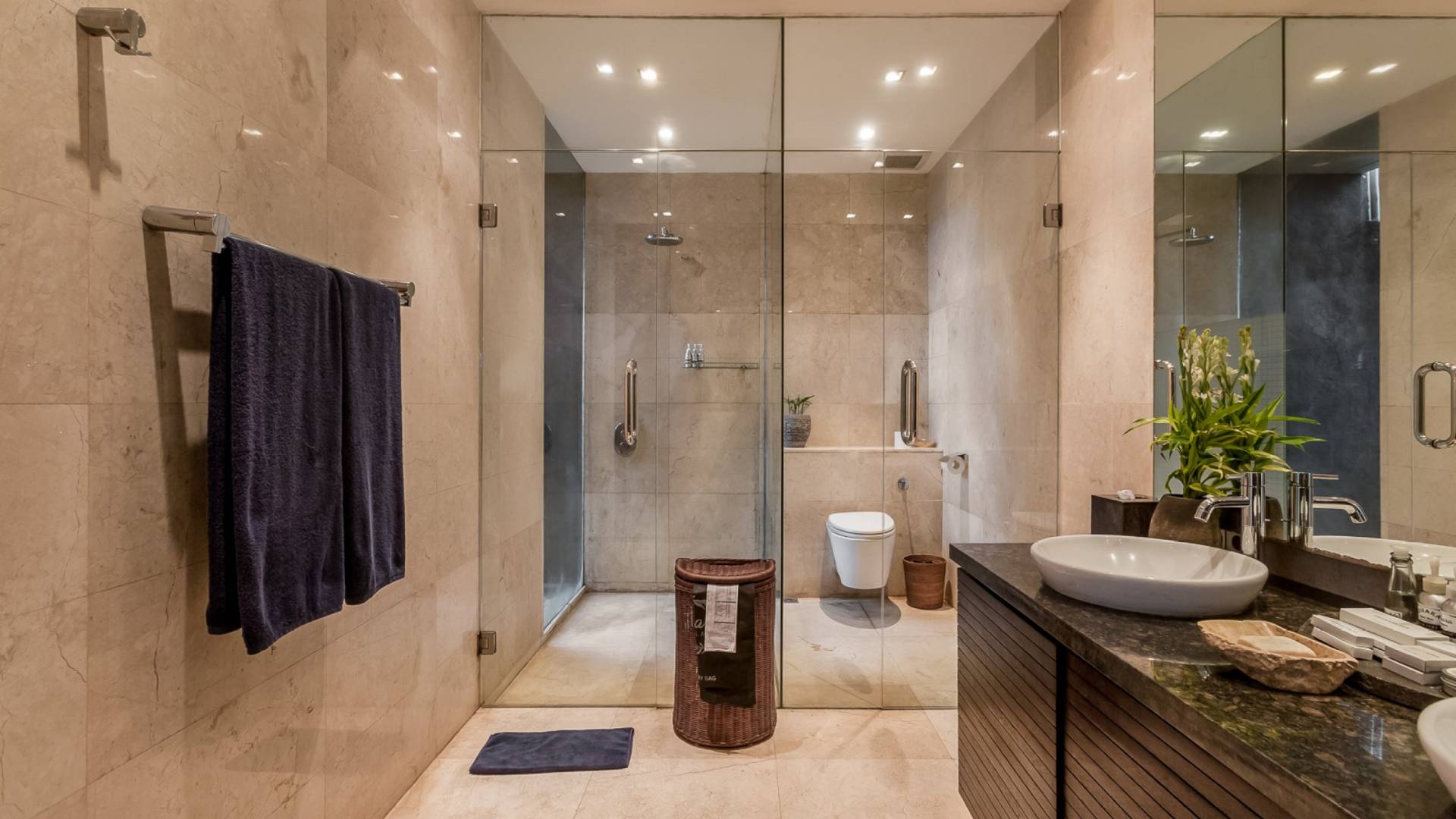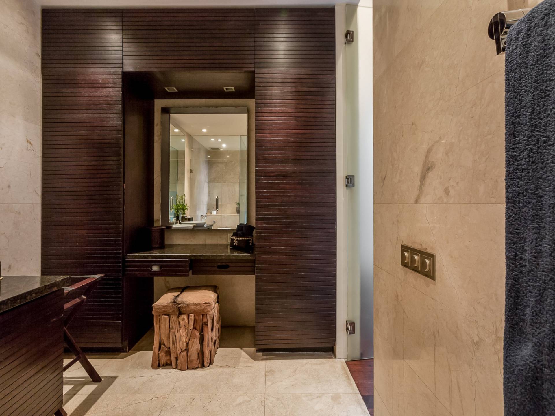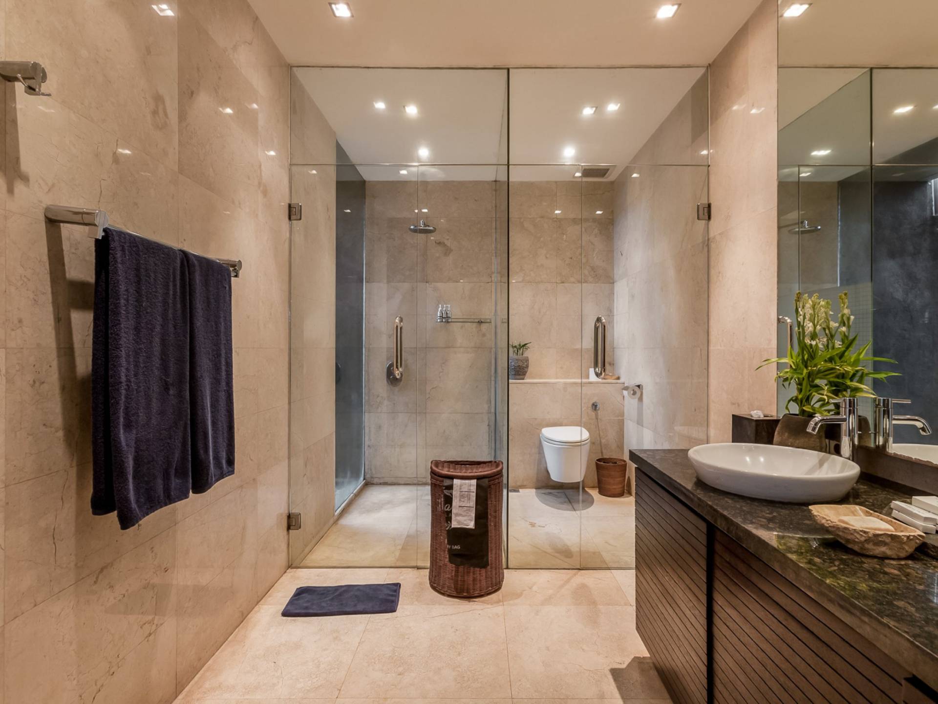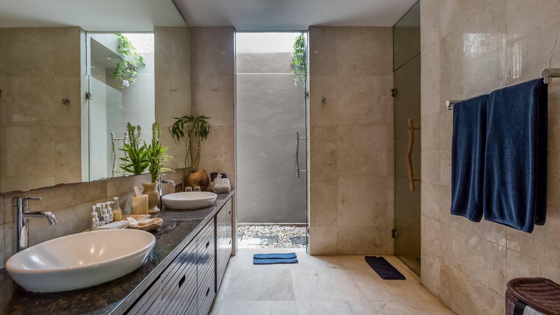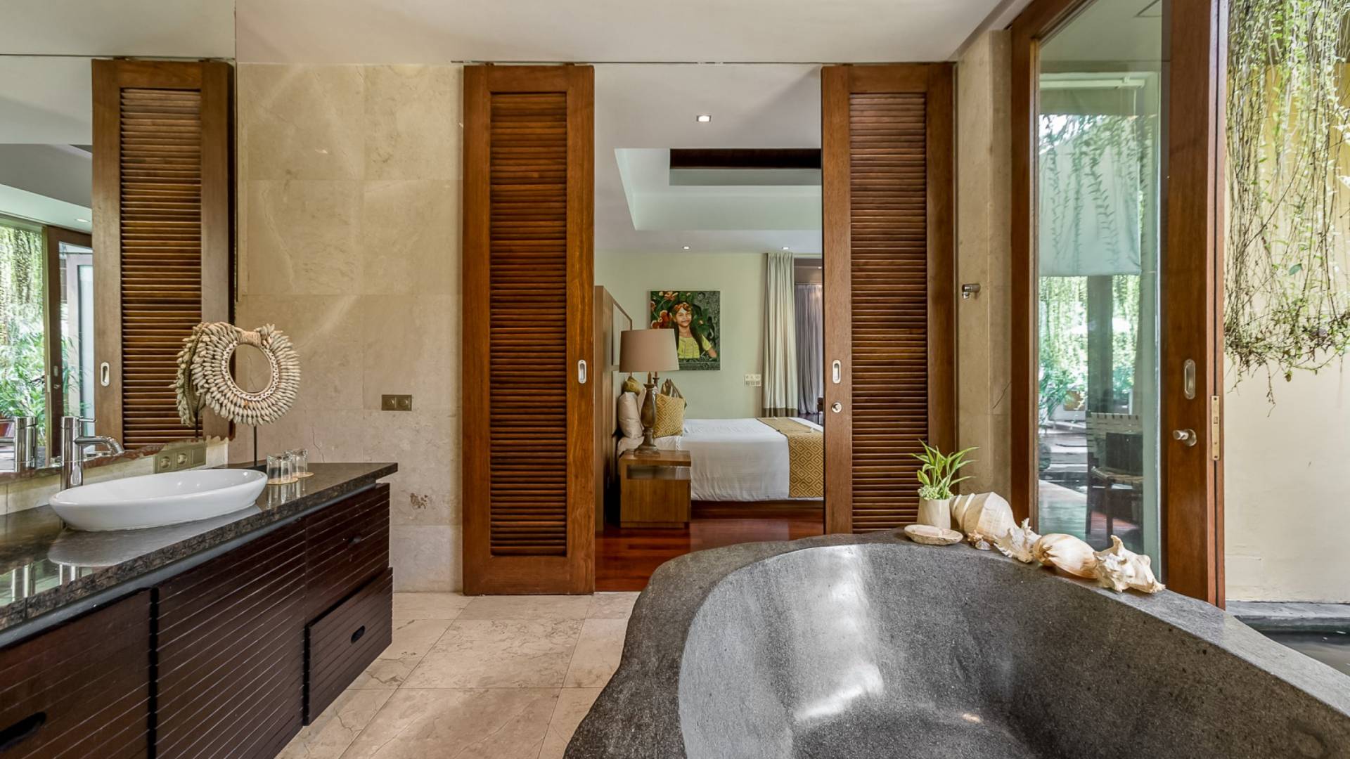 Villa Eshara è una grande villa completamente attrezzata, situata in una strada tranquilla e silenziosa a soli 300 metri dalla spiaggia, dai negozi e dai ristoranti del centro di Seminyak. Questa versatile struttura tre in uno offre la scelta di un'opzione di affitto di 8, 5, 3 o 2 camere da letto grazie a un sistema intelligente di porte scorrevoli e ingressi separati. Ogni villa ha un soggiorno e una sala da pranzo glamour e una cucina integrata, mentre ogni camera da letto con bagno privato ha un letto king-size, una zona spogliatoio e un lettore TV / DVD. Ci sono anche tre piscine immerse in giardini tropicali complete di alberi di frangipani, palme da cocco, lettini e ponti in legno.