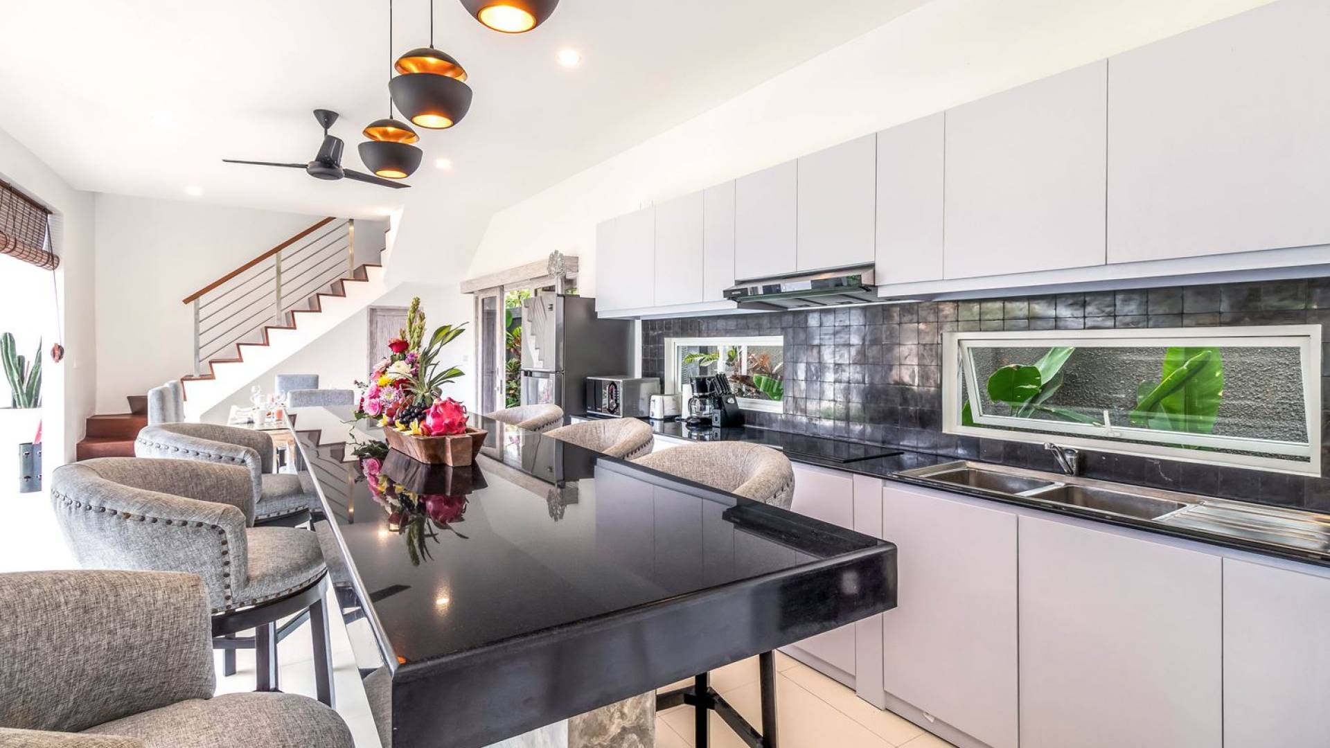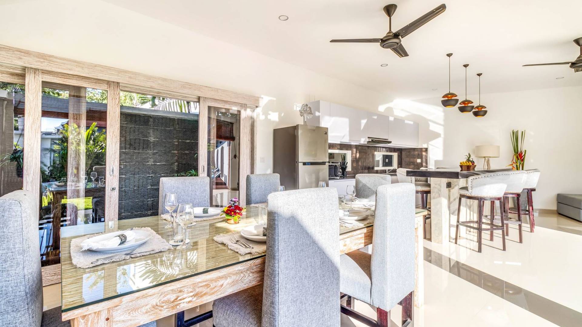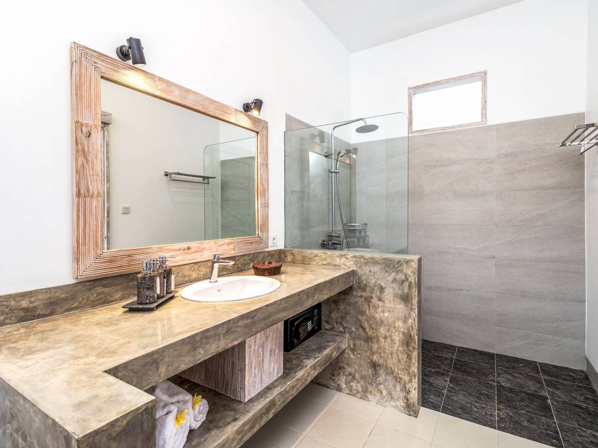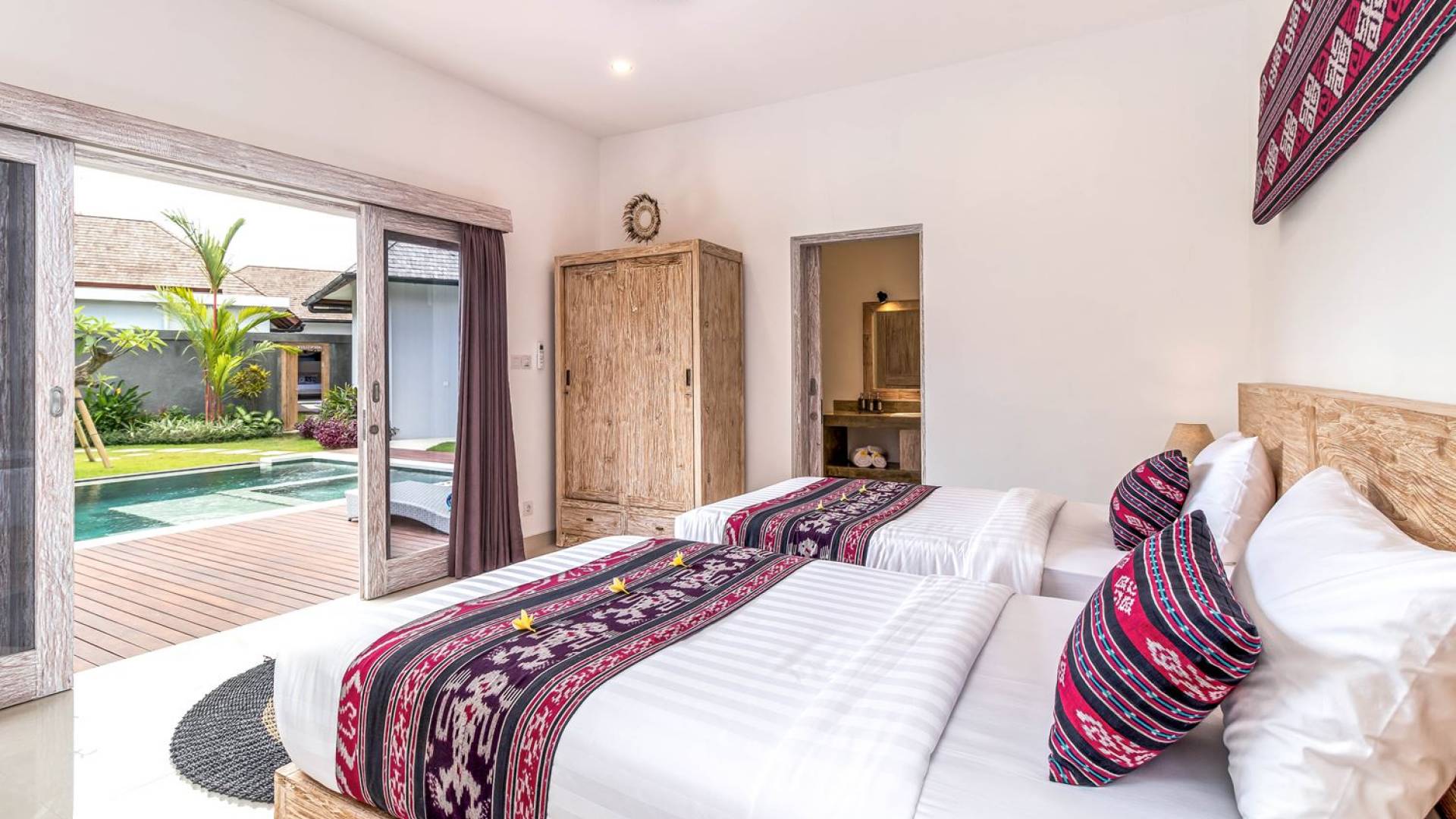 Questa splendida tenuta per le vacanze dispone di 4 spaziose camere da letto con aria condizionata. La camera da letto principale è come la suite di un re, enormemente grande, imbevuta di luce solare naturale e governata da un design d'interni tropicale chic. Questa camera da letto decadente è stata progettata con porte in vetro che si aprono su un ampio balcone con 2 sedie. Un ottimo posto per sedersi e prendere il sole del mattino con una tazza di caffè. Nel pomeriggio, porta una bottiglia di vino e goditi la vista del giardino sullo sfondo o di un cielo abbronzato. Le altre 3 camere da letto si trovano al piano di sotto, attorno al giardino e all'area della piscina. Delle 4 camere da letto, 3 hanno letti matrimoniali e 1 ha due letti singoli. Ogni camera dispone di bagno privato in camera con set di cortesia, doccia con getto a pioggia e cassette di sicurezza.