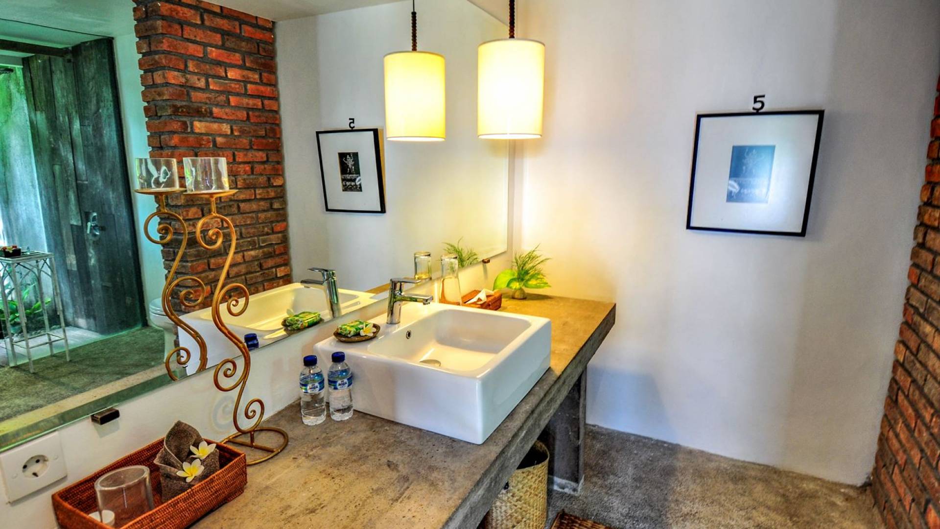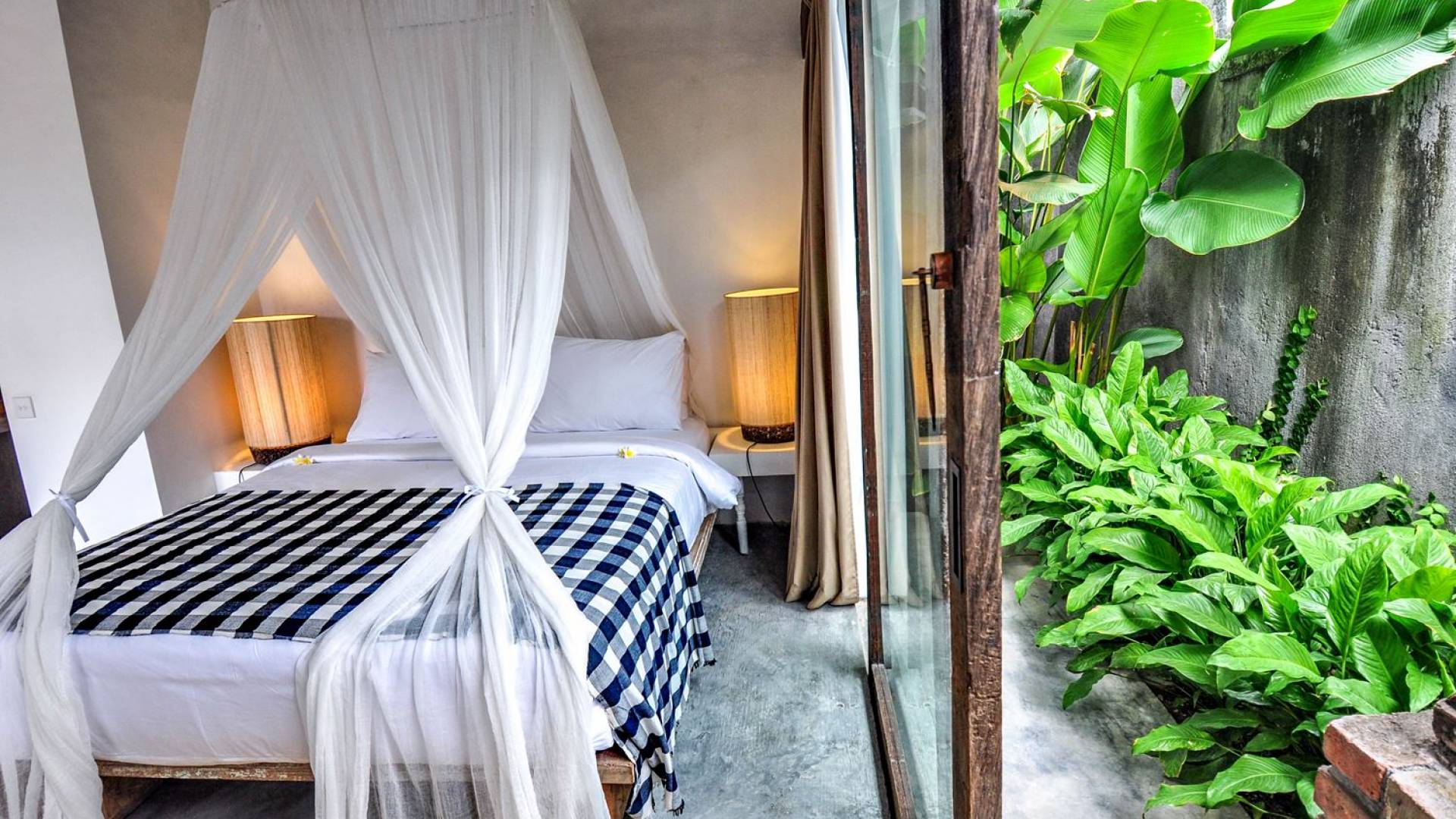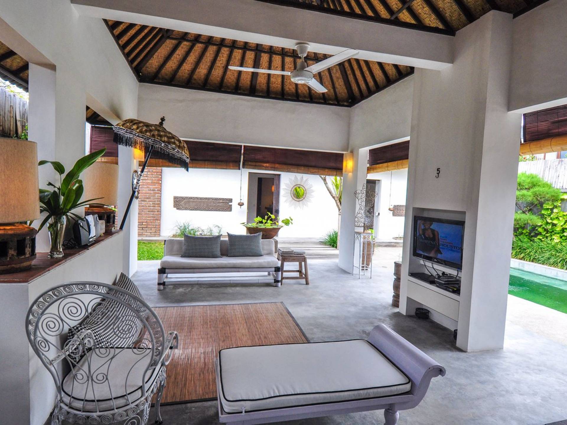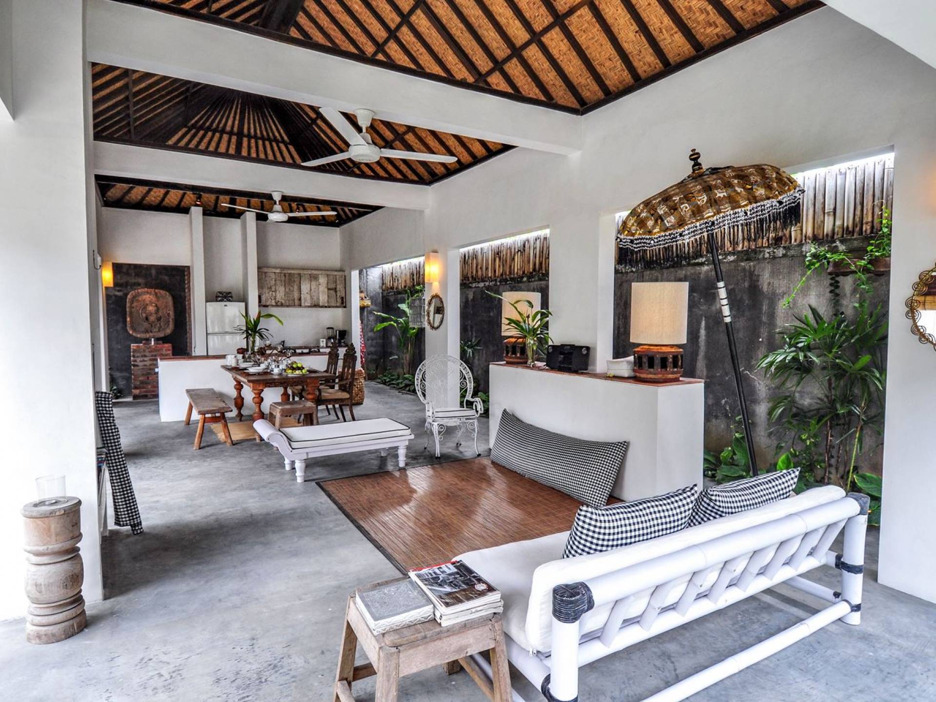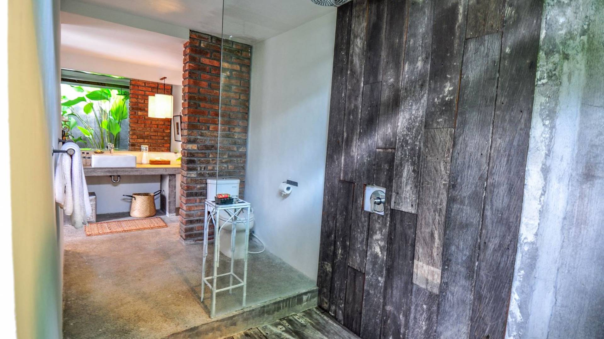 Questa spaziosa villa con 2 camere da letto vanta una piscina privata (6 x 3 m) con una profondità confortevole di 1-2 m, su un lettino prendisole di grandi dimensioni per prendere il sole o leggere. O semplicemente goditi l'Arte di non fare nulla. Le 2 camere da letto climatizzate sono inoltre dotate di ventilatori a soffitto. Accogliente letto queen-size con raffinata zanzariera, che aggiunge un senso di fuga e un'aria di romanticismo. Ogni camera ha un bagno privato e una doccia a pioggia all'aperto circondata da una vegetazione lussureggiante: l'idea qui è quella di portare l'esterno all'interno creando un'aria di assoluta calma in ogni momento.
