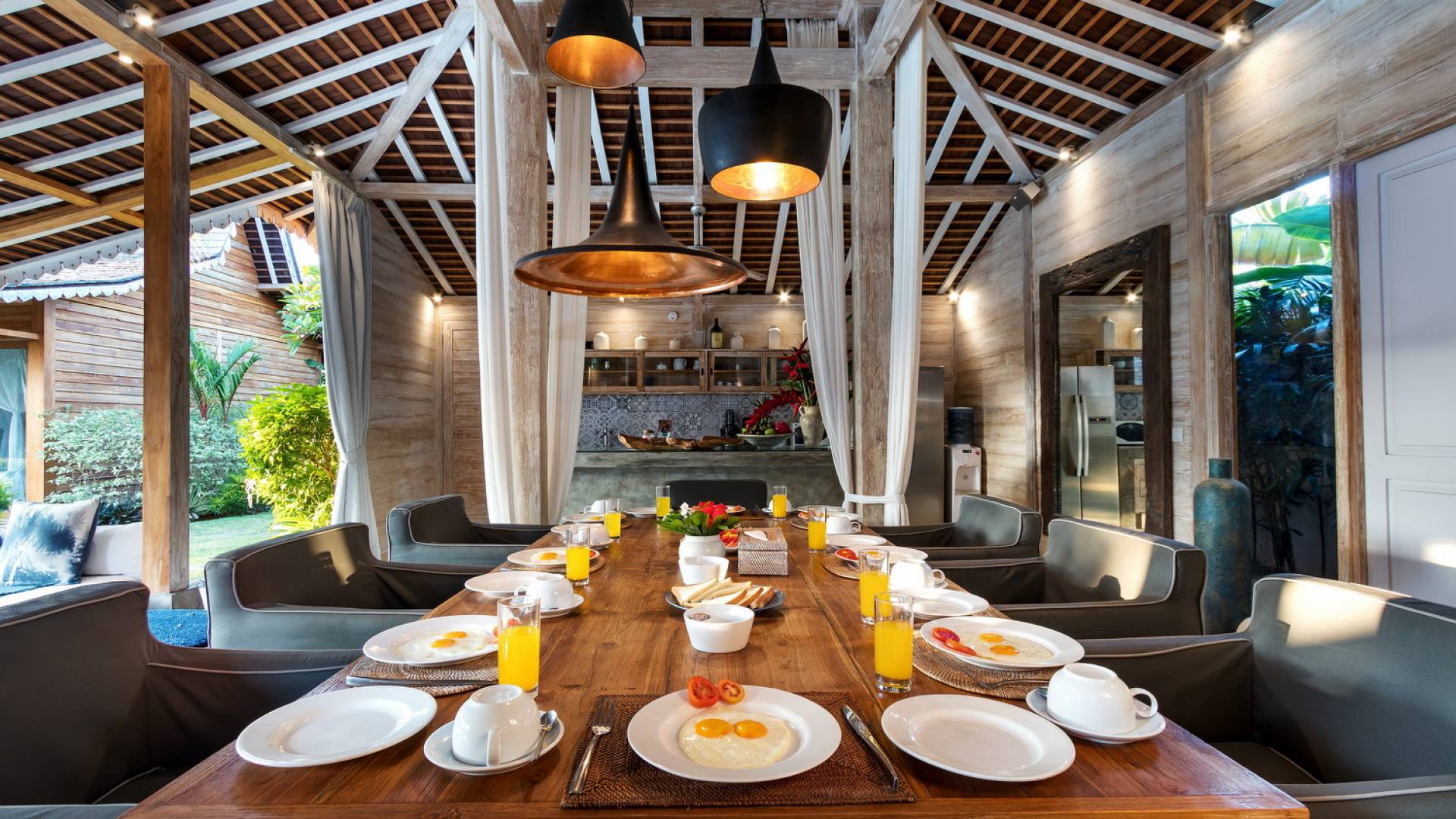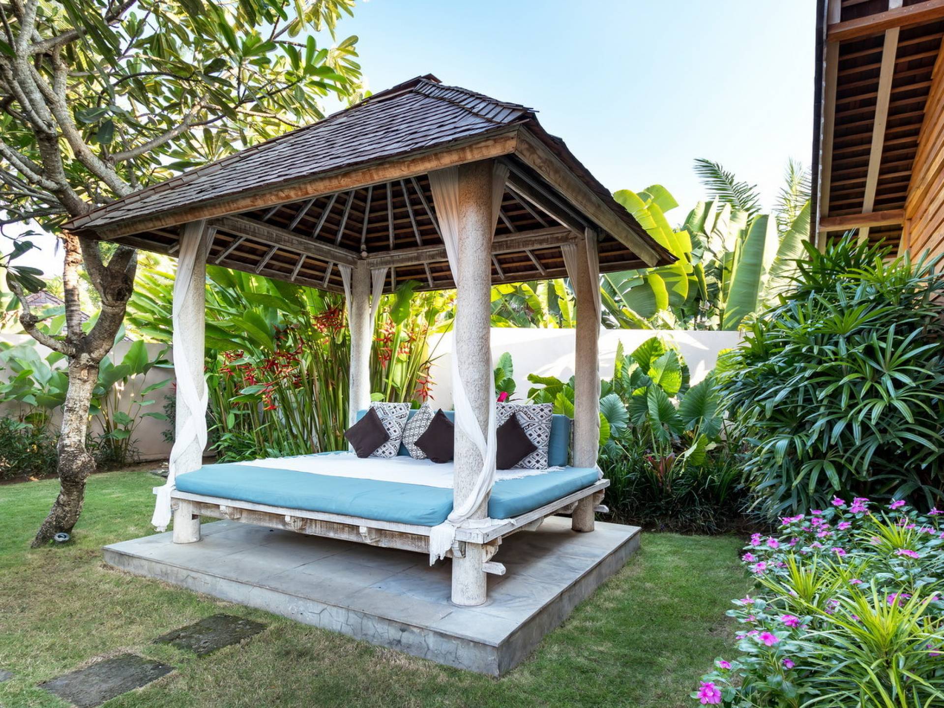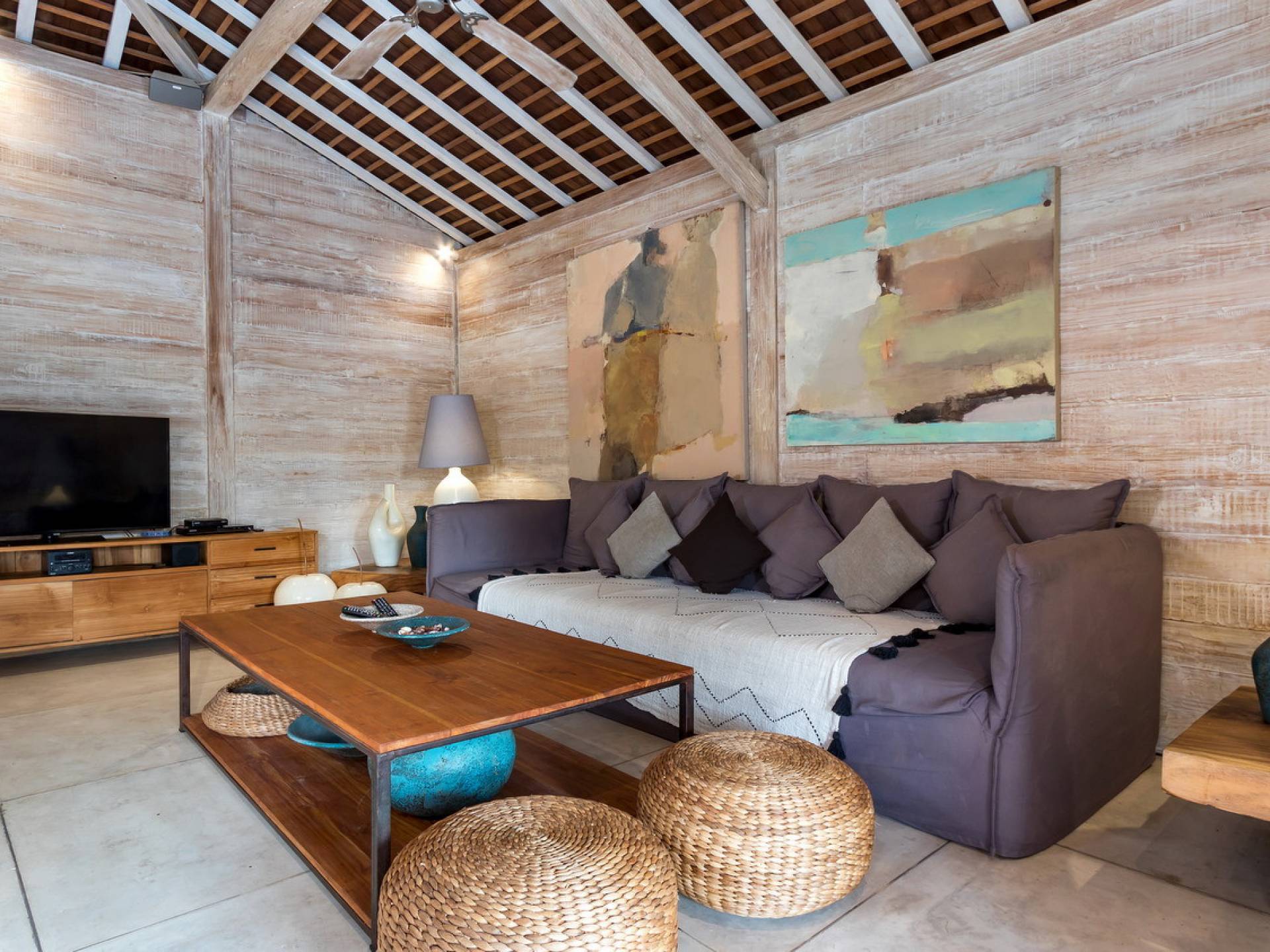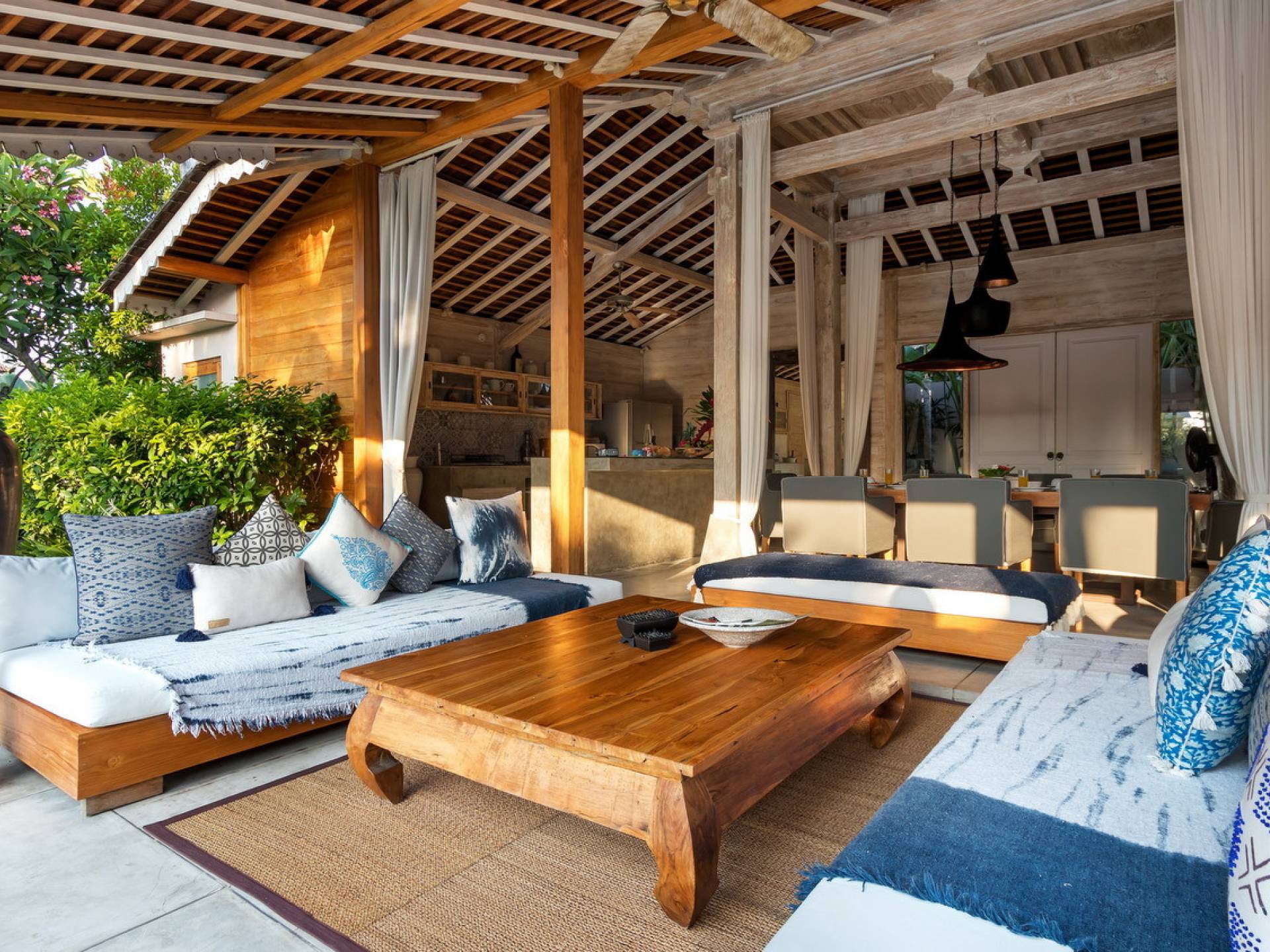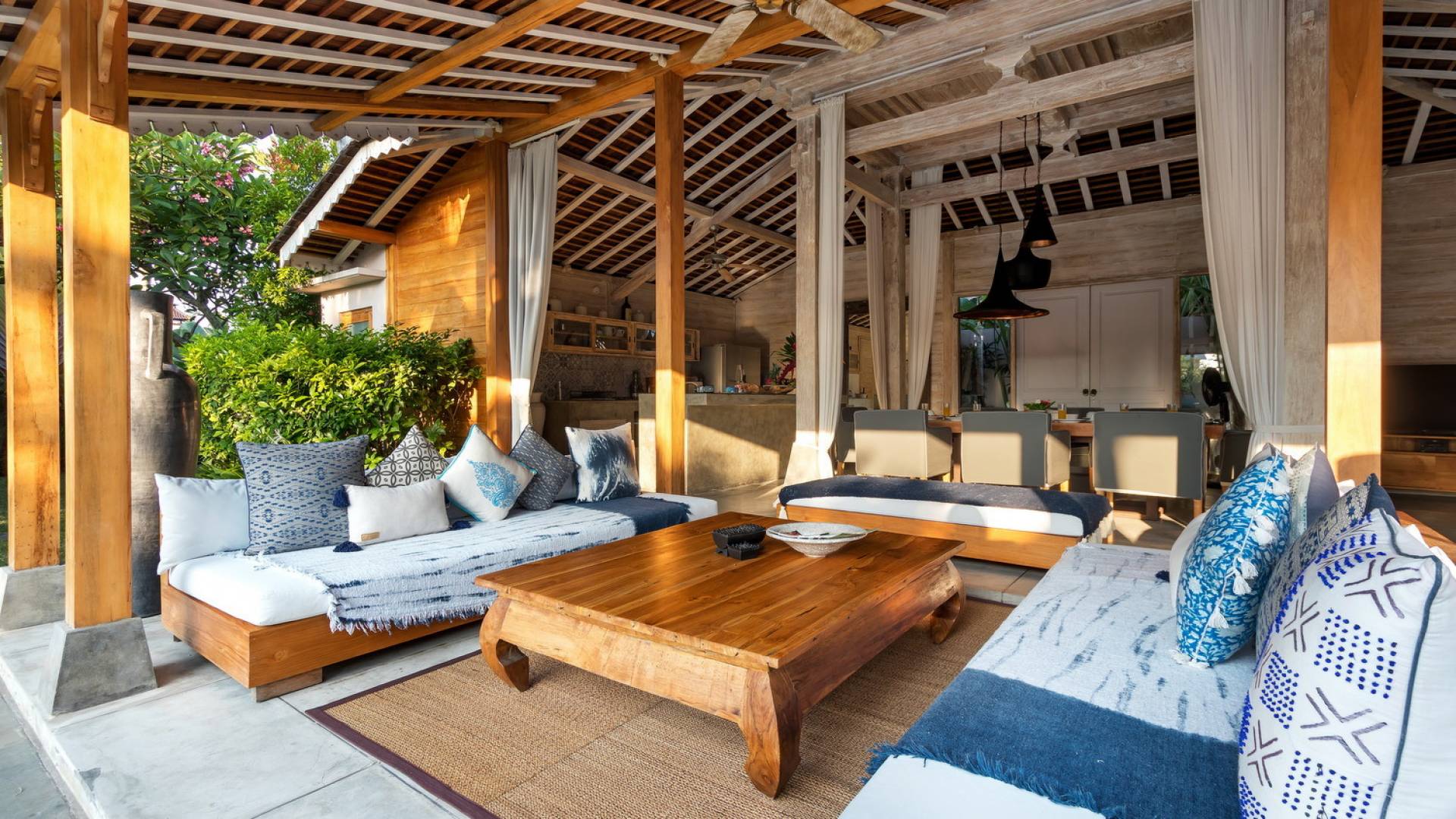 Villa Taramille Bali è composta da 3 splendidi padiglioni in stile joglo tradizionale giavanese che circondano un giardino tropicale con un prato verde e una piscina al centro. Questa villa con 4 camere da letto cattura molta luce, conferendole un'atmosfera molto luminosa e calda. Questo è un ottimo posto per famiglie o gruppi di amici che amano avere un tranquillo rifugio privato ma godono comunque della comodità di essere vicino al vivace centro dove c'è tutta l'azione. La zona giorno di villa Taramille è situata nel padiglione principale ed è aperta sul giardino e sul bordo piscina.