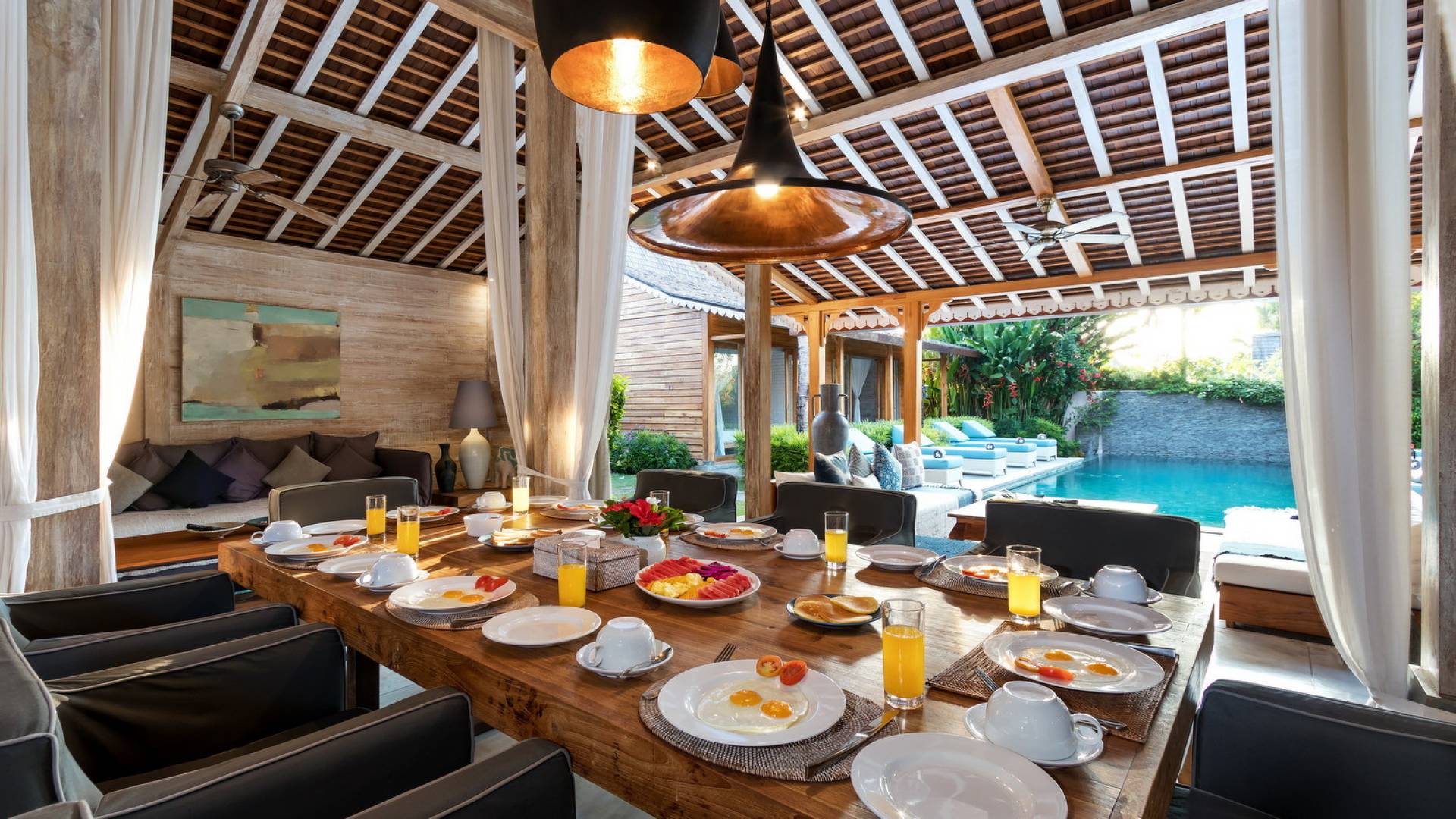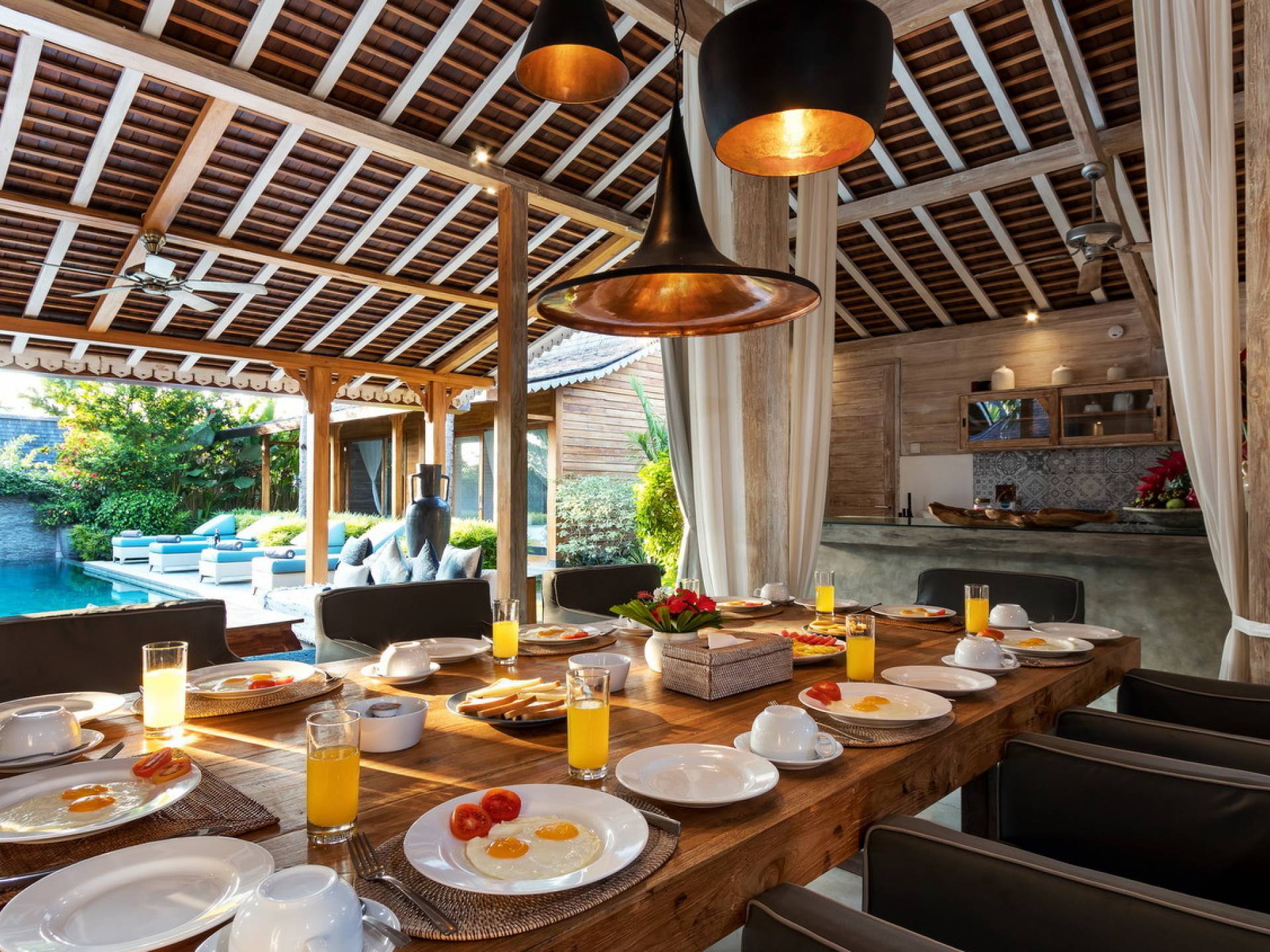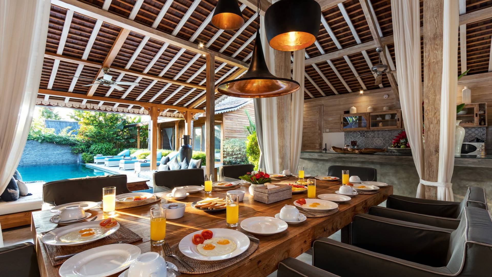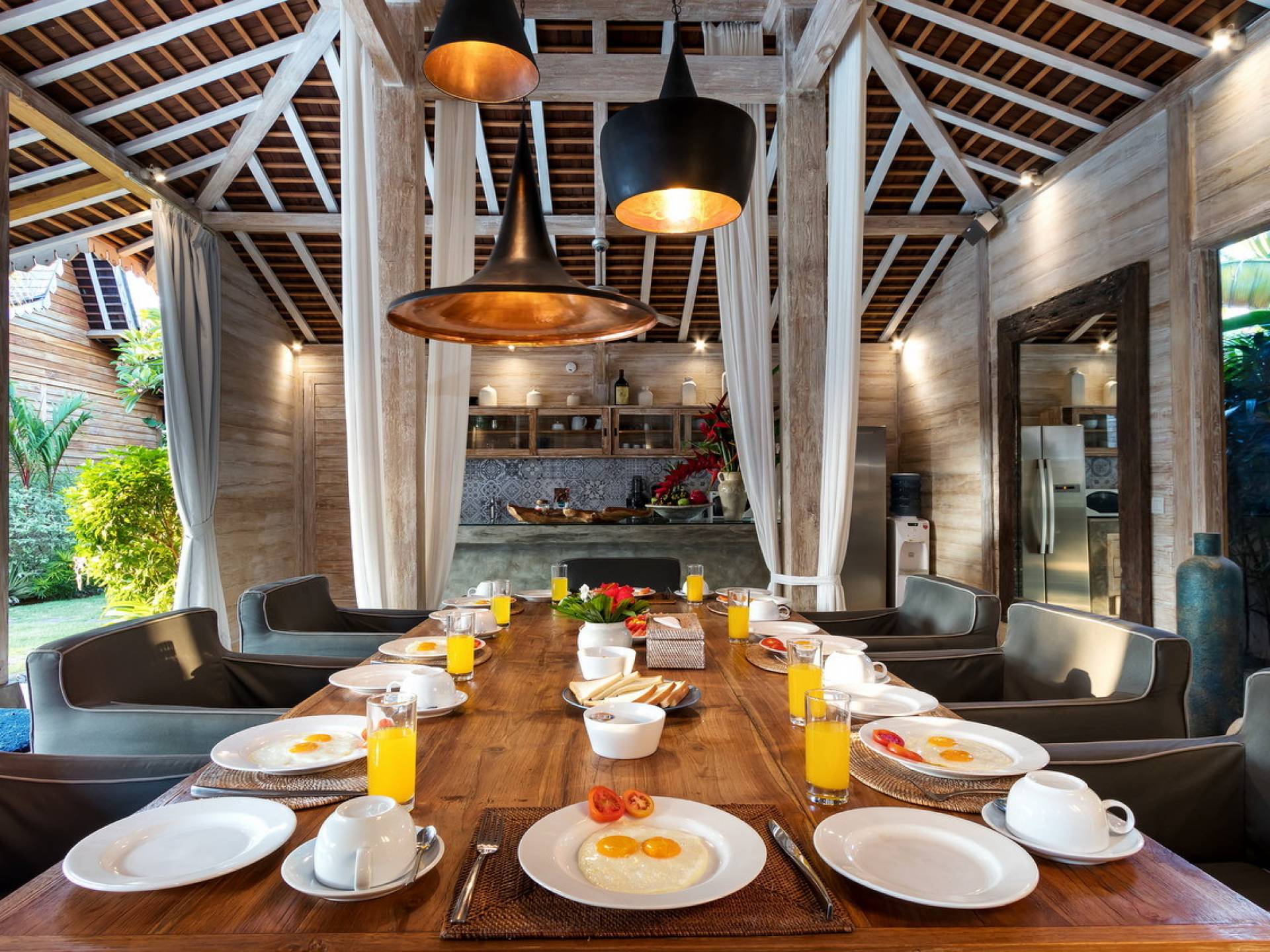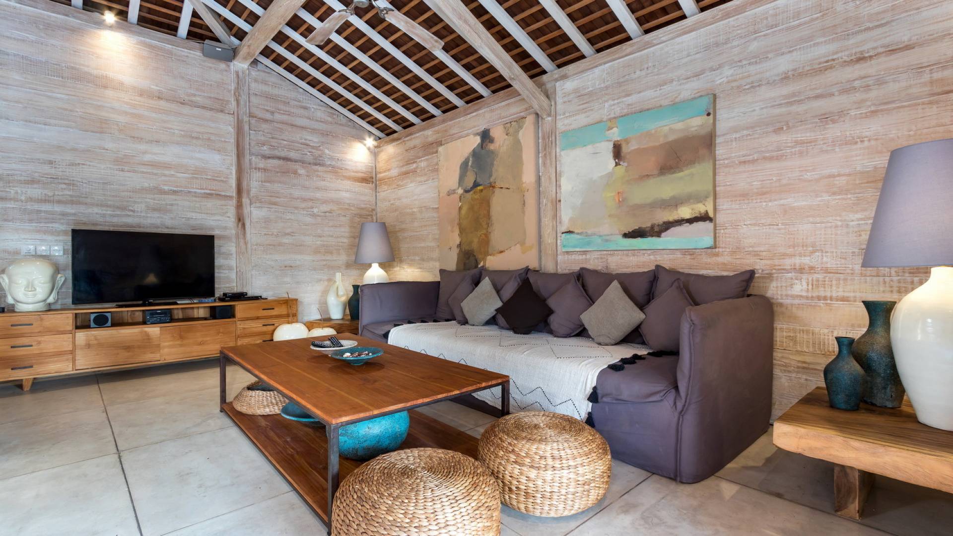 Villa Taramille Bali è composta da 3 splendidi padiglioni in stile joglo tradizionale giavanese che circondano un giardino tropicale con un prato verde e una piscina al centro. Questa villa con 4 camere da letto cattura molta luce, conferendole un'atmosfera molto luminosa e calda. Questo è un ottimo posto per famiglie o gruppi di amici che amano avere un tranquillo rifugio privato ma godono comunque della comodità di essere vicino al vivace centro dove c'è tutta l'azione. La zona giorno di villa Taramille è situata nel padiglione principale ed è aperta sul giardino e sul bordo piscina.