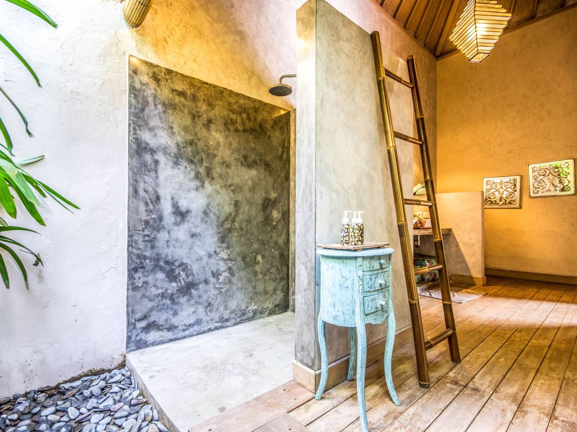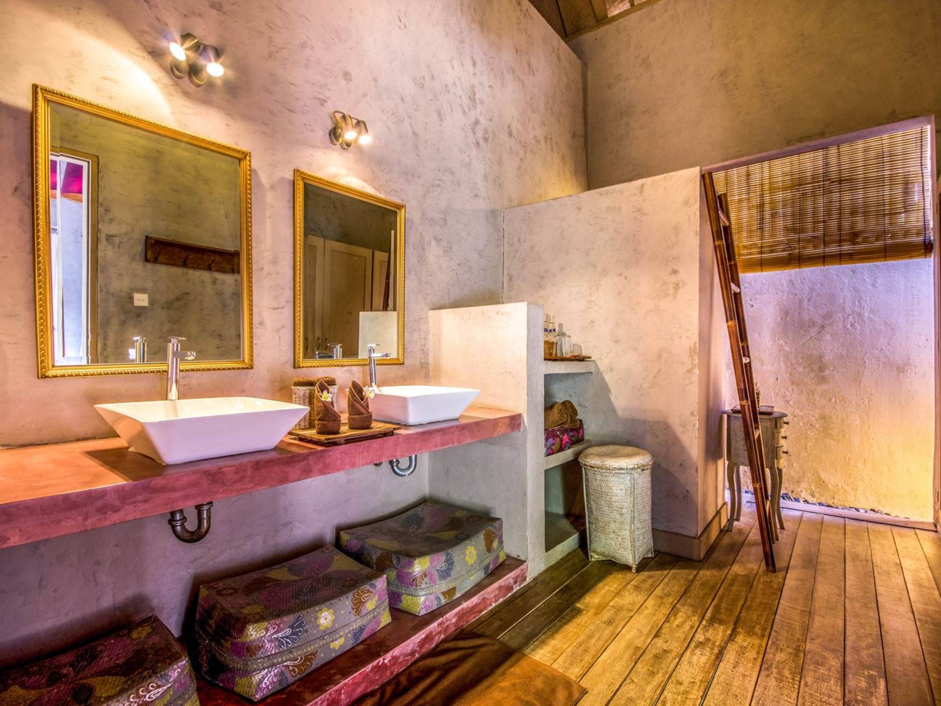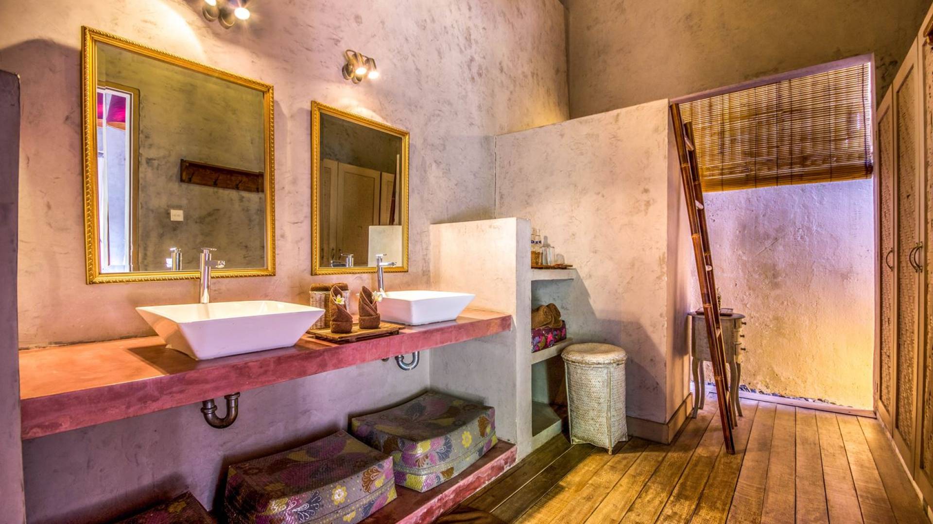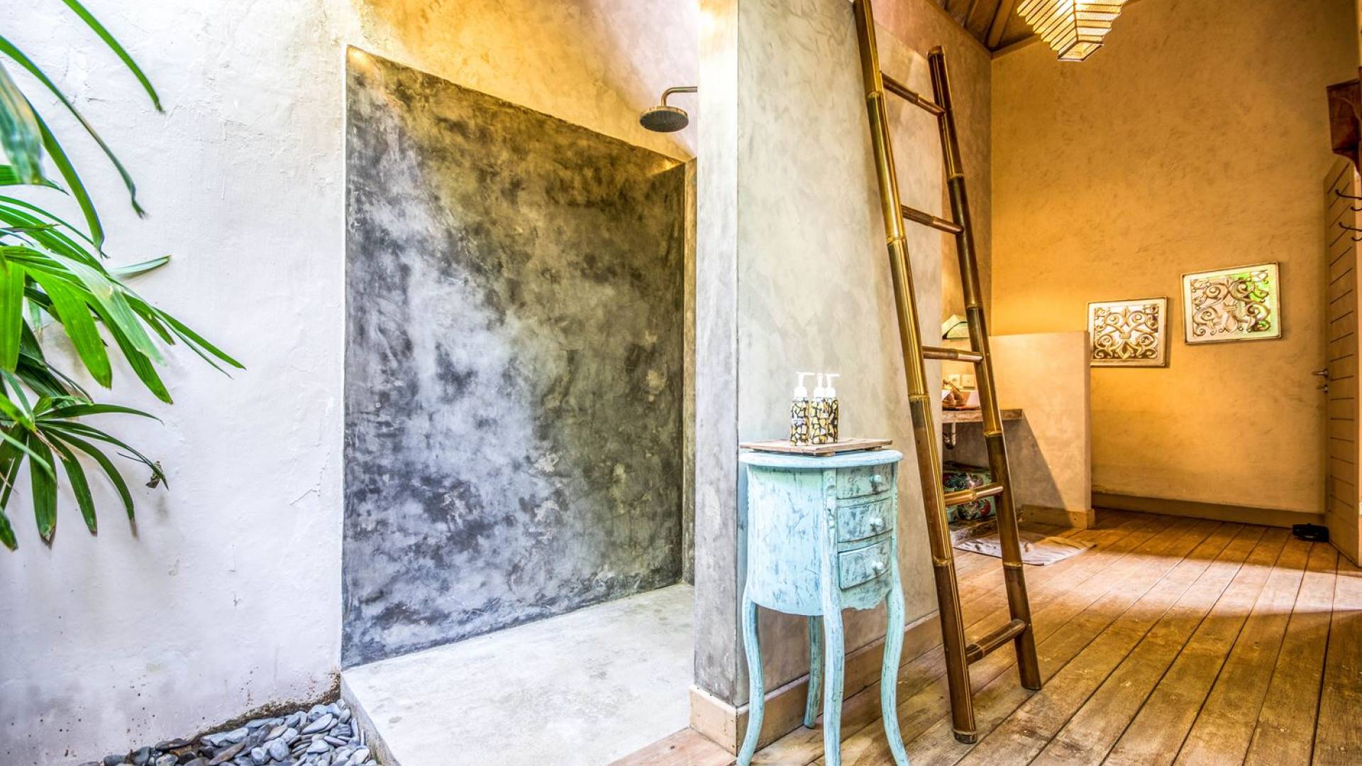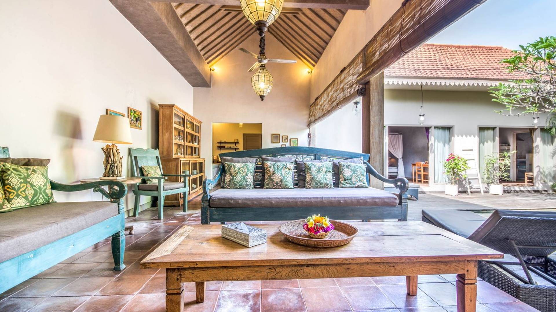 Le camere da letto sono nascoste in una struttura separata, che si apre sul giardino e sulla piscina. Le camere sono caratterizzate da temi cromatici individuali ma presentano gli stessi comfort e servizi moderni come aria condizionata e un letto king size a baldacchino di qualità. La camera da letto principale vanta anche una TV satellitare per guardare film in un ambiente più intimo. Ci sono armadi guardaroba in legno dipinto d'epoca e i bagni interni tropicali sono dotati di doppio lavabo e doccia a pioggia calda/fredda. Sono previsti servizi da bagno completi.