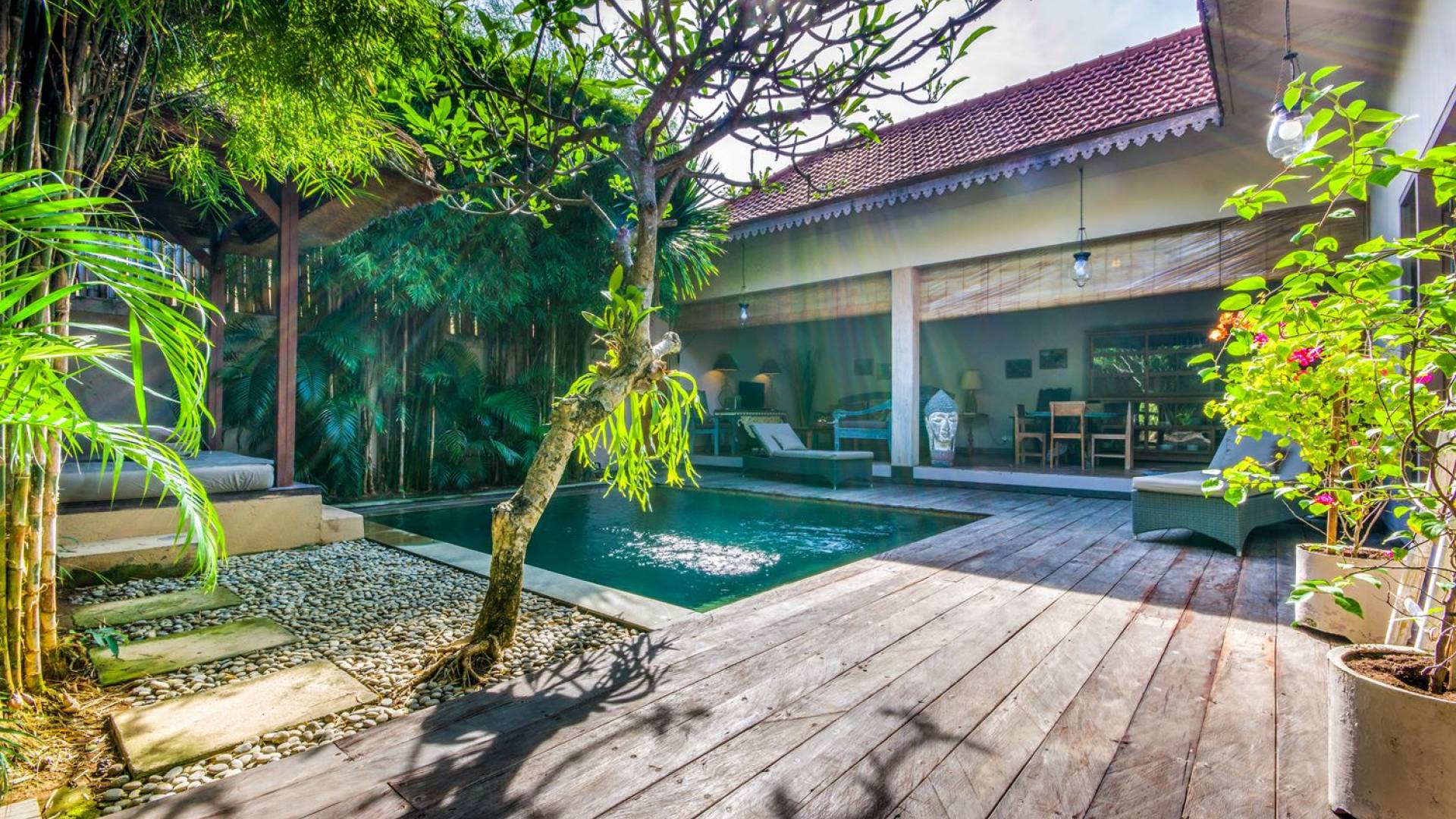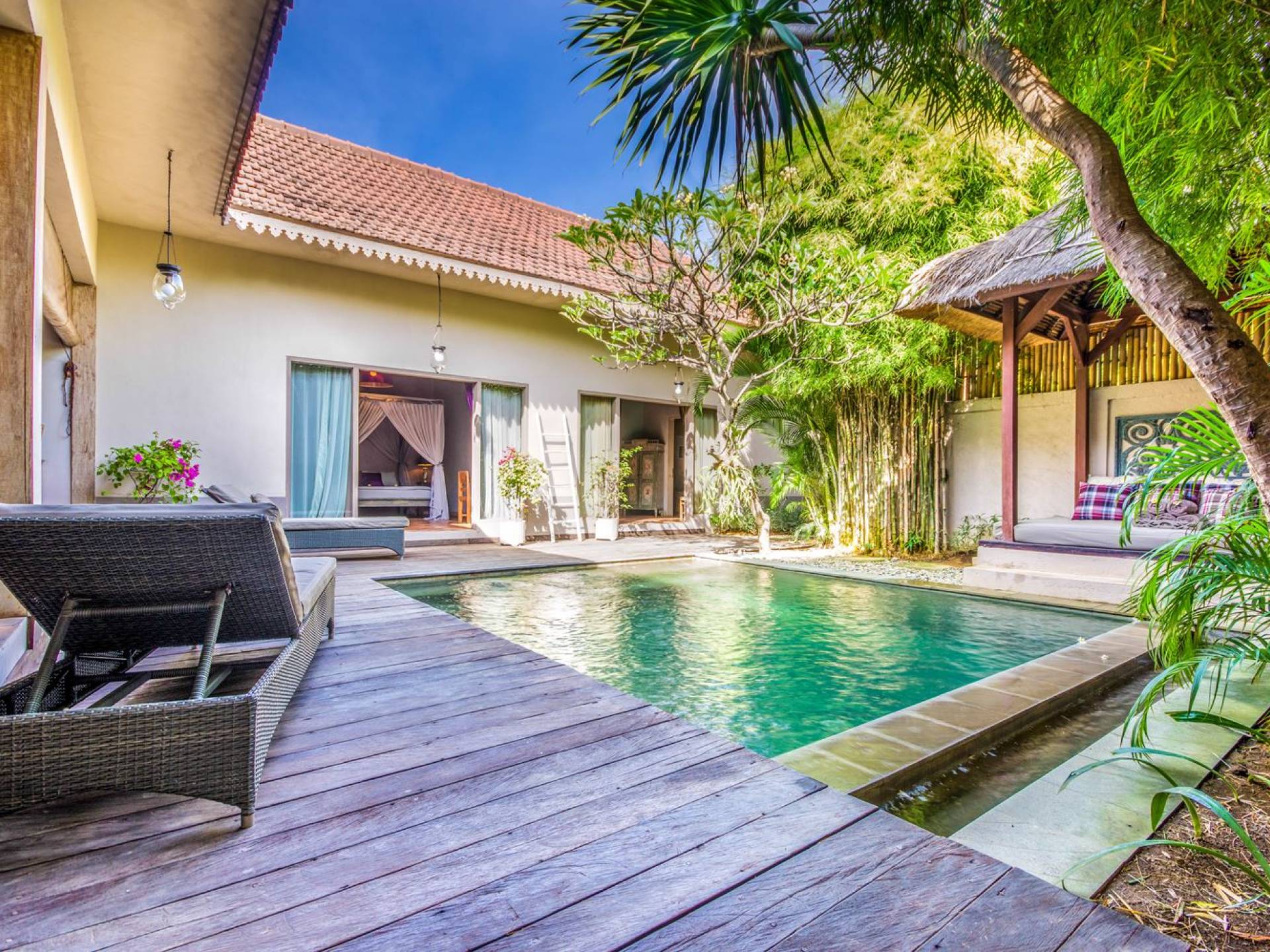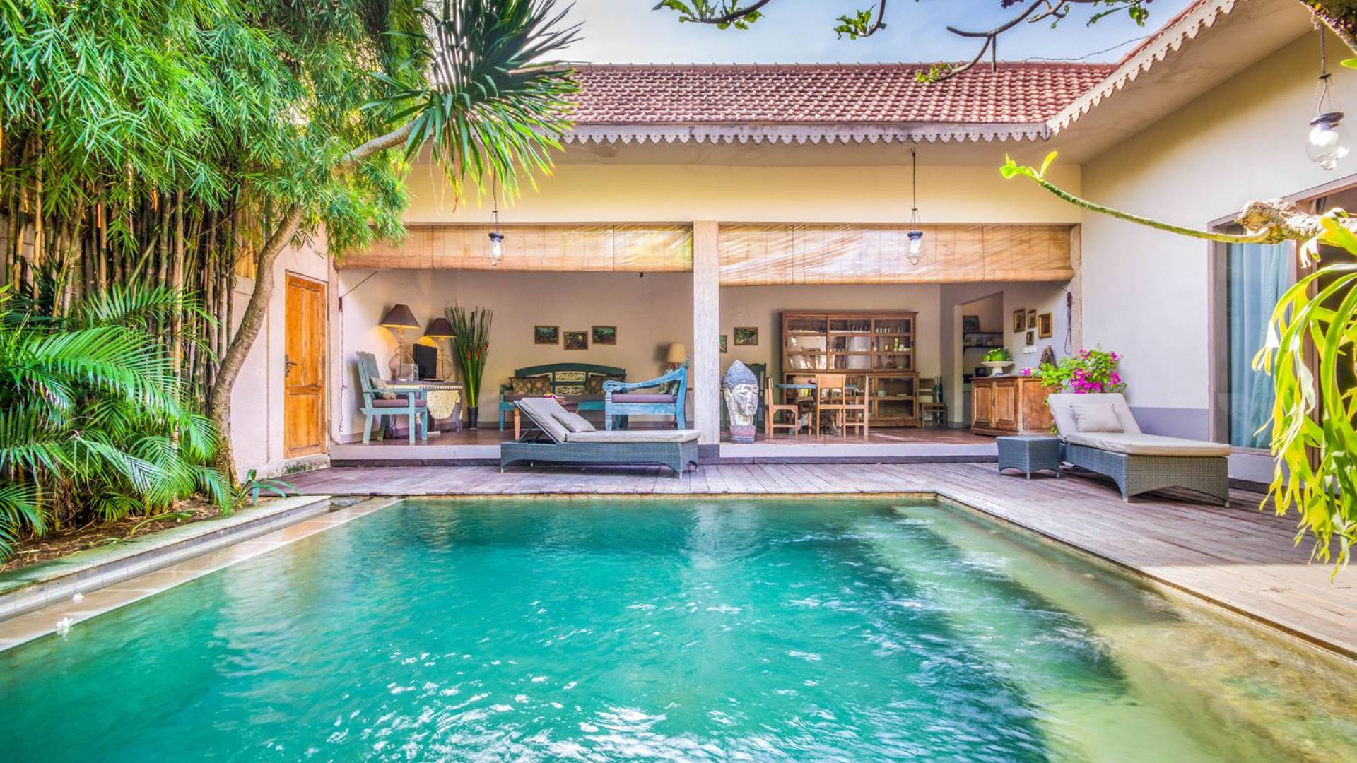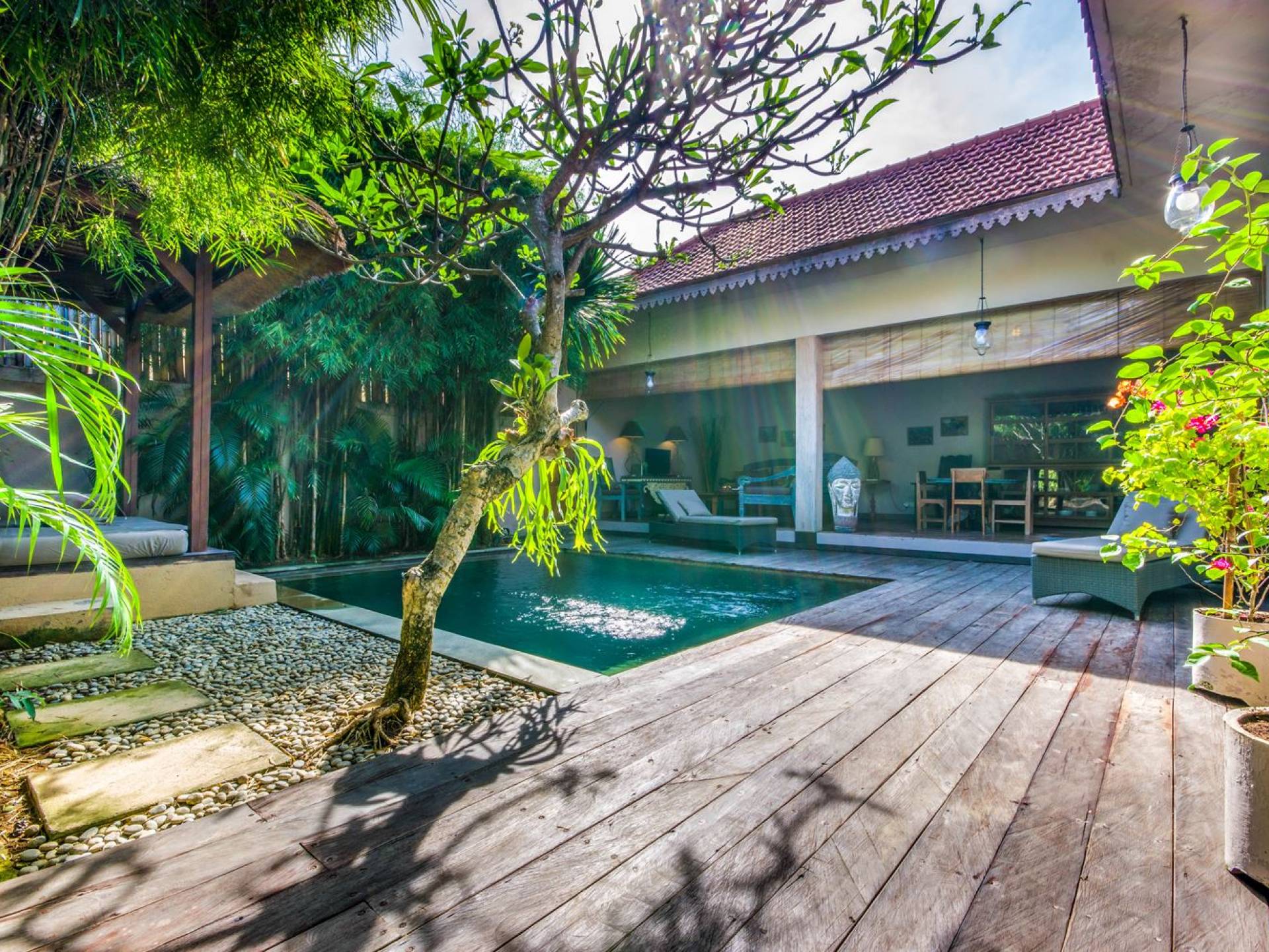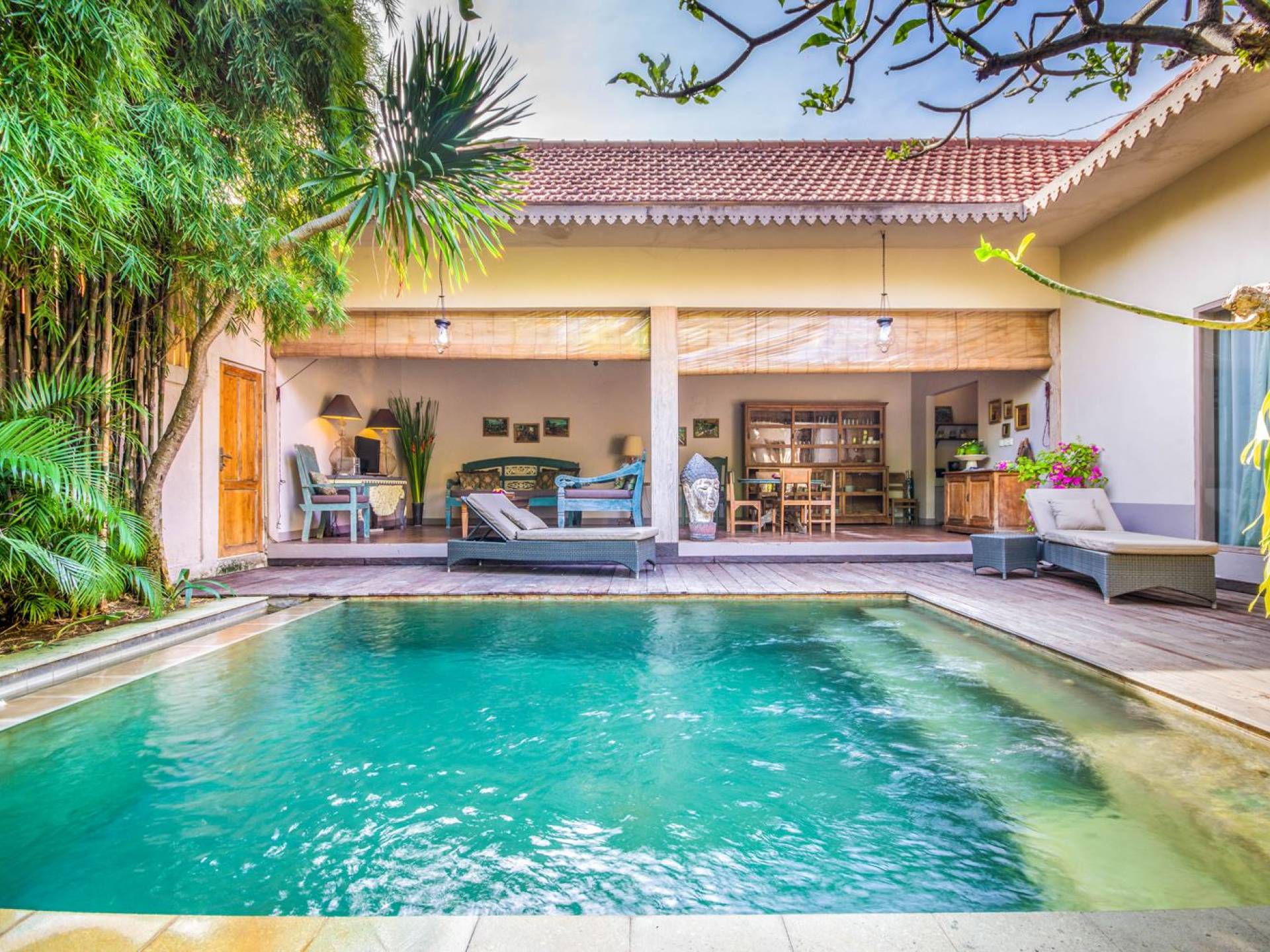 Situata nel centro di Seminyak, nel sud di Bali, attende la Villa Zenitude con 2 camere da letto. A pochi passi dalla villa, troverai Double Six Beach, famosa per i suoi affascinanti bar sulla spiaggia e tramonti mozzafiato. Il mare è perfetto per nuotare, fare surf o imparare a fare surf, quindi provalo! A Seminyak troverai un'abbondanza di caffè alla moda, spa rilassanti, ristoranti raffinati e bar, che ti faranno divertire per giorni e giorni a venire. Il ritorno a casa a Villa Zenitude, dopo un'intera giornata trascorsa a vagare per le strade di Seminyak, è di nuovo meraviglioso ogni giorno! Questa vacanza conveniente e tranquilla con 2 camere da letto a Seminyak ti dà il benvenuto nel suo grazioso giardino tropicale verdeggiante. Immediatamente un senso di pace viene su di te! L'invitante piscina scintillante è fiancheggiata da vegetazione tropicale e profumati alberi di frangipani, come un'oasi di tranquillità davvero! In un angolo del giardino si trova un gazebo dove puoi goderti un po' di ombra, leggere un libro o semplicemente sdraiarti a bordo piscina prima di tuffarti di nuovo in acqua.