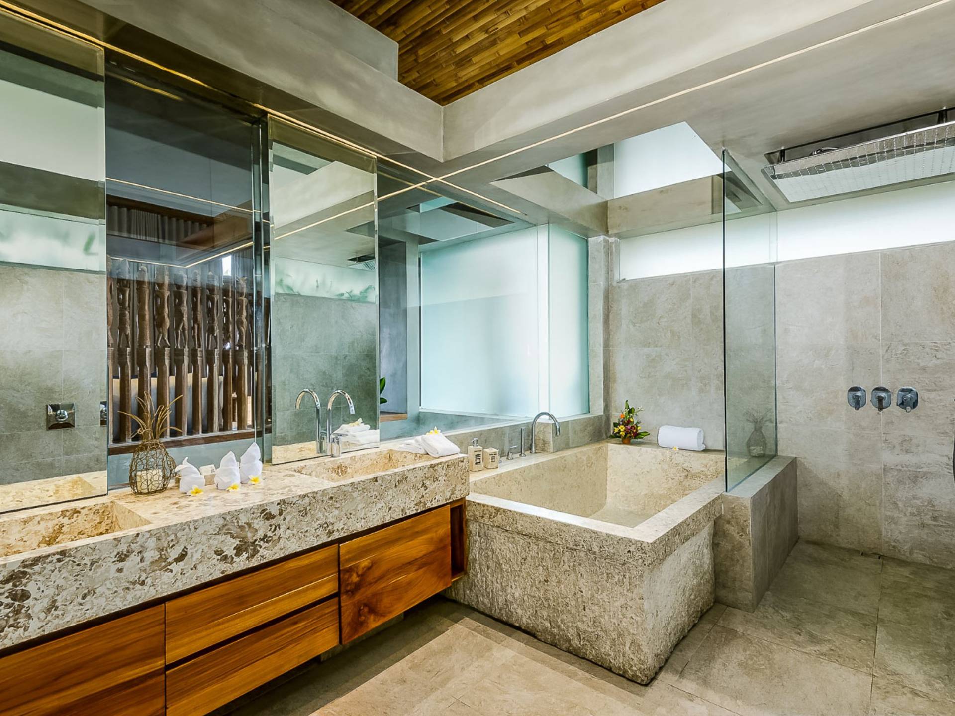 Ogni elemento di Villa Vedas Bali, dalle scale galleggianti alle opere d'arte, è stato progettato meticolosamente. Dotata di 8 camere doppie, tutte con vasche in pietra massiccia scolpite da un solido pezzo di marmo ed enormi docce a pioggia, un bar privato, una sala multimediale e 3 piscine, Villa Vedas Bali può ospitare comodamente 16 ospiti, con altre 4 camere da letto nello staff quarti. Per gli ospiti con un gusto per le ultime tecnologie, illuminazione, musica e aria condizionata possono essere controllati tramite il tuo smartphone.