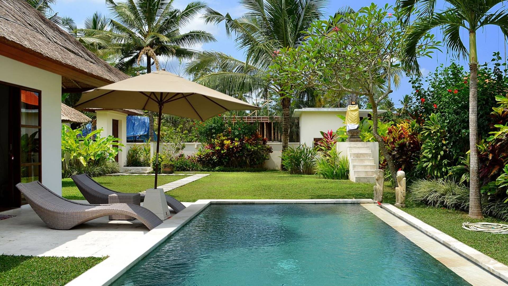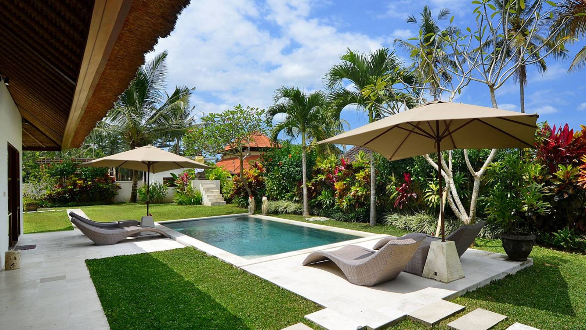 La piscina non potrebbe sembrare più invitante mentre brilla sotto il caldo sole tropicale, circondata da piante e alberi tropicali. Dopo aver nuotato in piscina, rilassati sulle sedie reclinabili in rattan, sorseggia un succo appena fatto e lavora su quella splendida abbronzatura tropicale dell'isola. I bambini adoreranno anche sguazzare nell'acqua della piscina o giocare sul curatissimo prato verde. Il giardino è abbastanza grande da permettere loro di inseguire una palla nel pomeriggio prima che un'altra meravigliosa cena in famiglia sia pronta per essere gustata nel comfort della tua casa per le vacanze sull'isola di Bali.