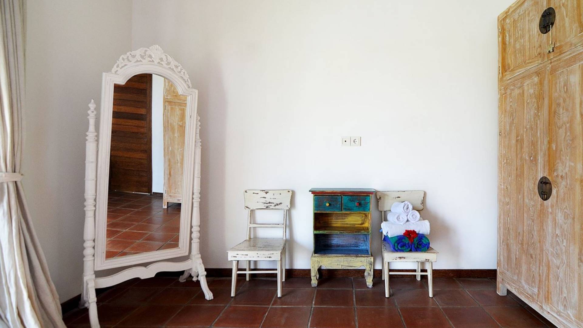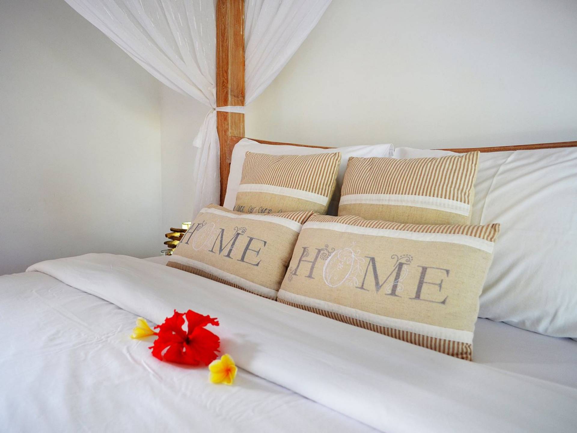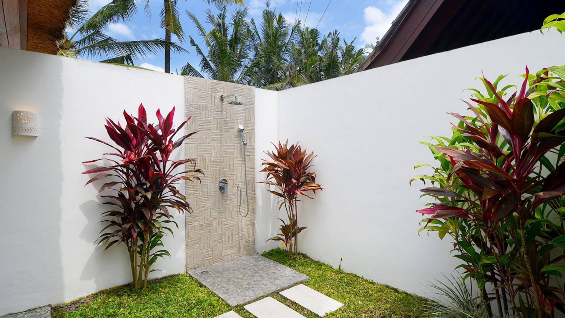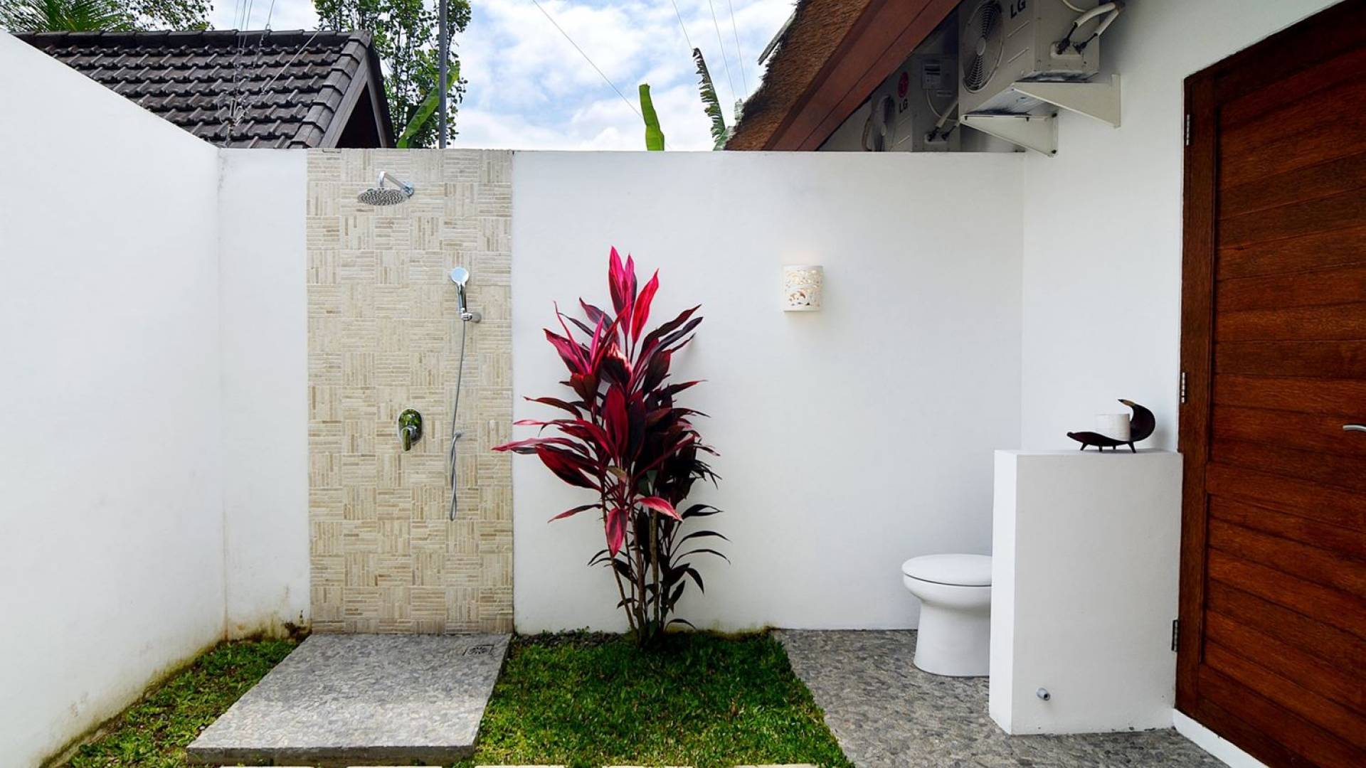 Tutte le tre camere da letto di Villa Candi Kecil Tiga sono dotate di porte in vetro dal pavimento al soffitto che si aprono sul giardino, offrendo agli ospiti una vista meravigliosa per svegliarsi ogni mattina durante il loro soggiorno. All'interno, le camere sono arredate con aria condizionata e letti a baldacchino a baldacchino drappeggiati da zanzariere bianche. I bagni privati presentano un design tropicale all'aperto per fare la doccia sotto le stelle. I prodotti da bagno sono forniti.