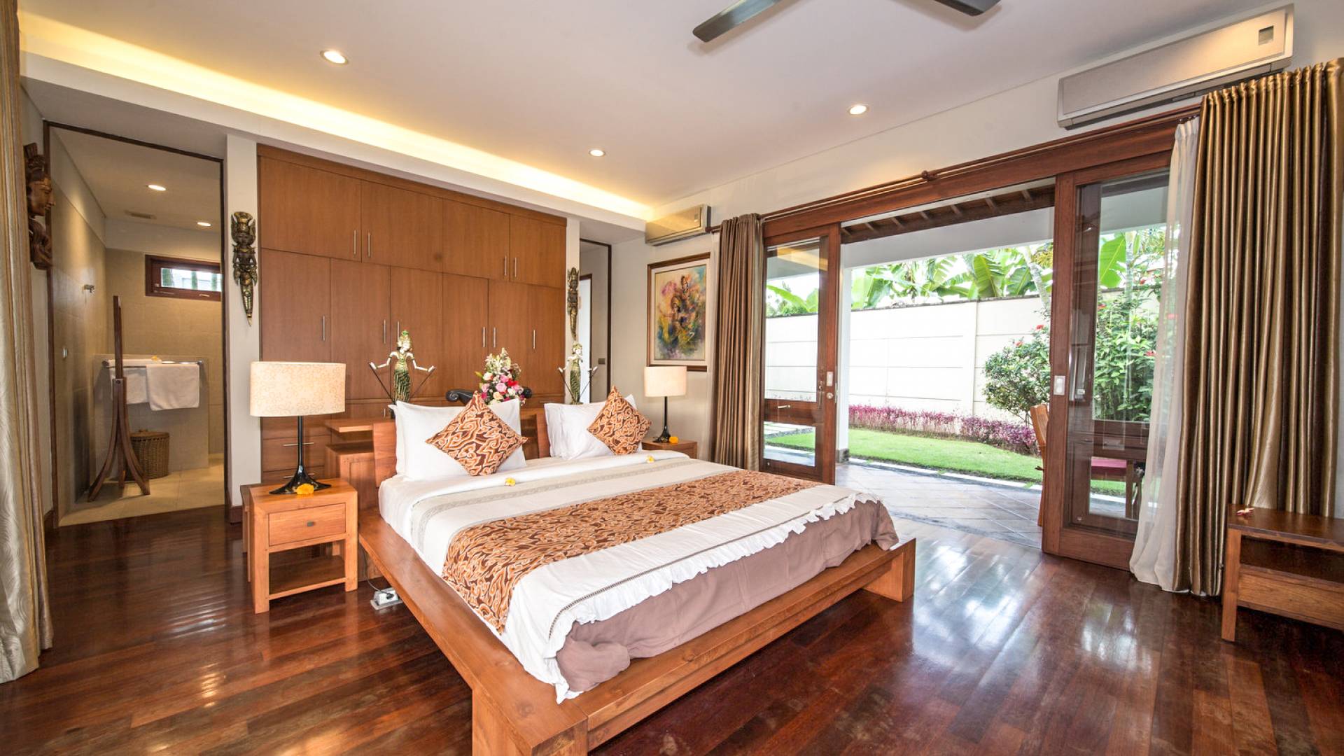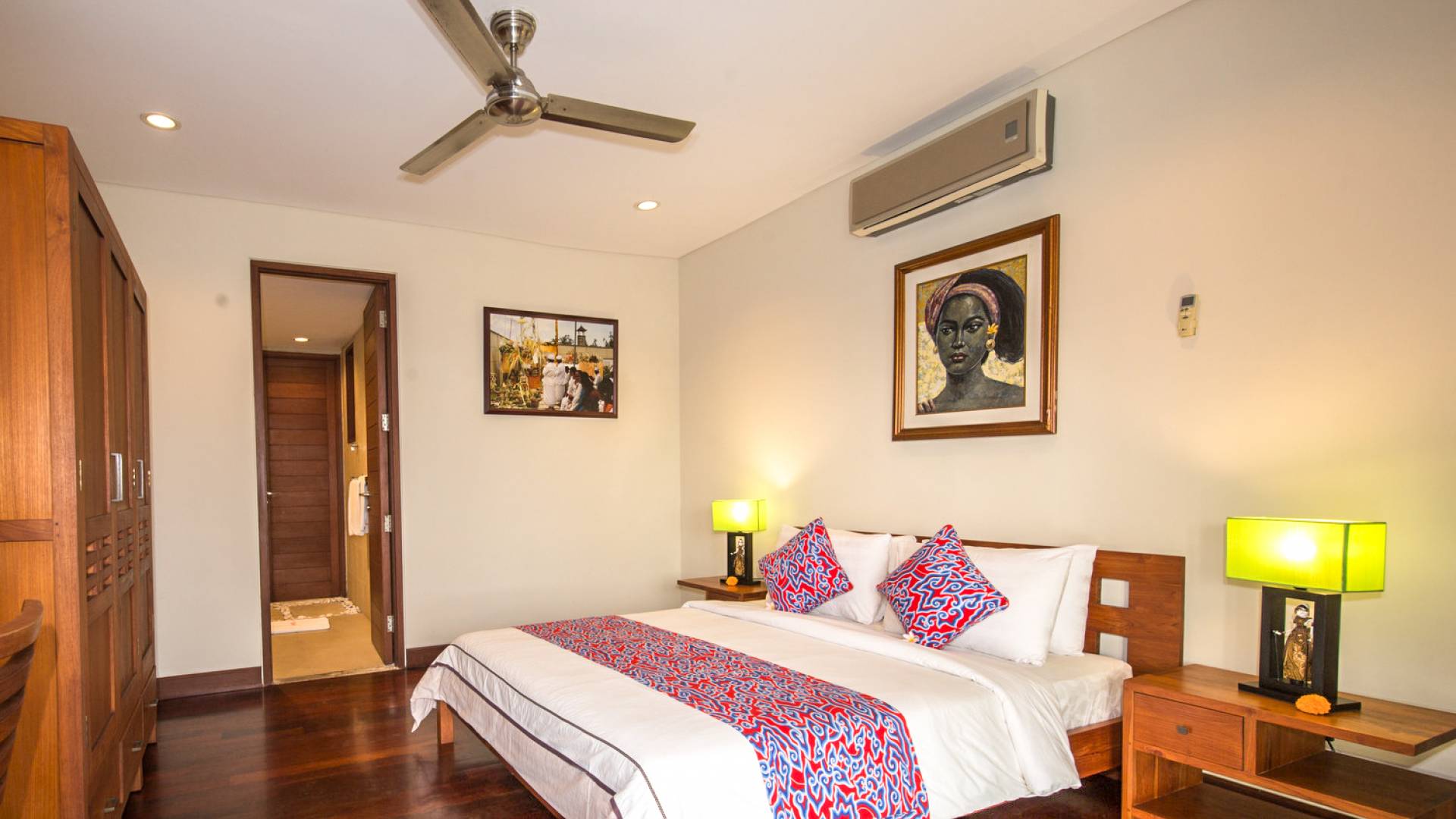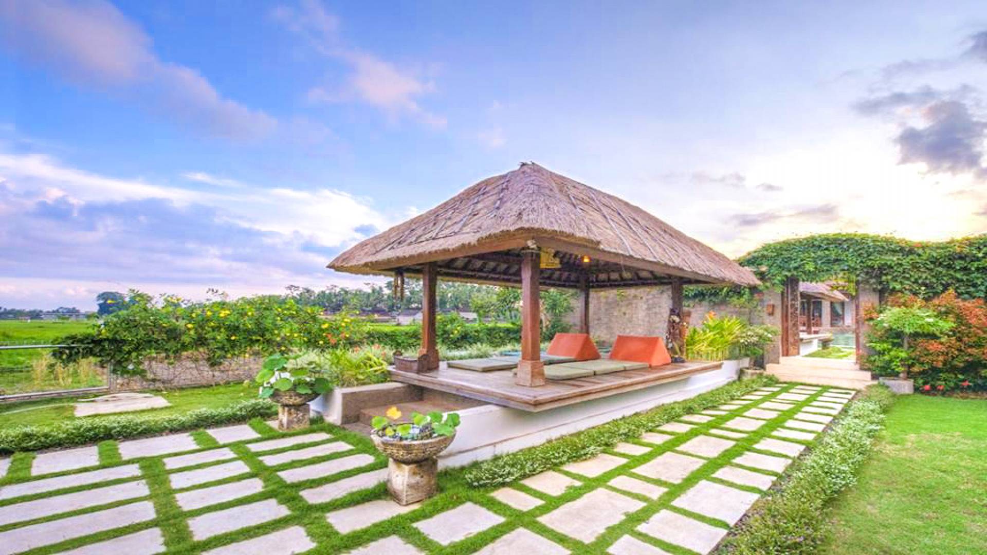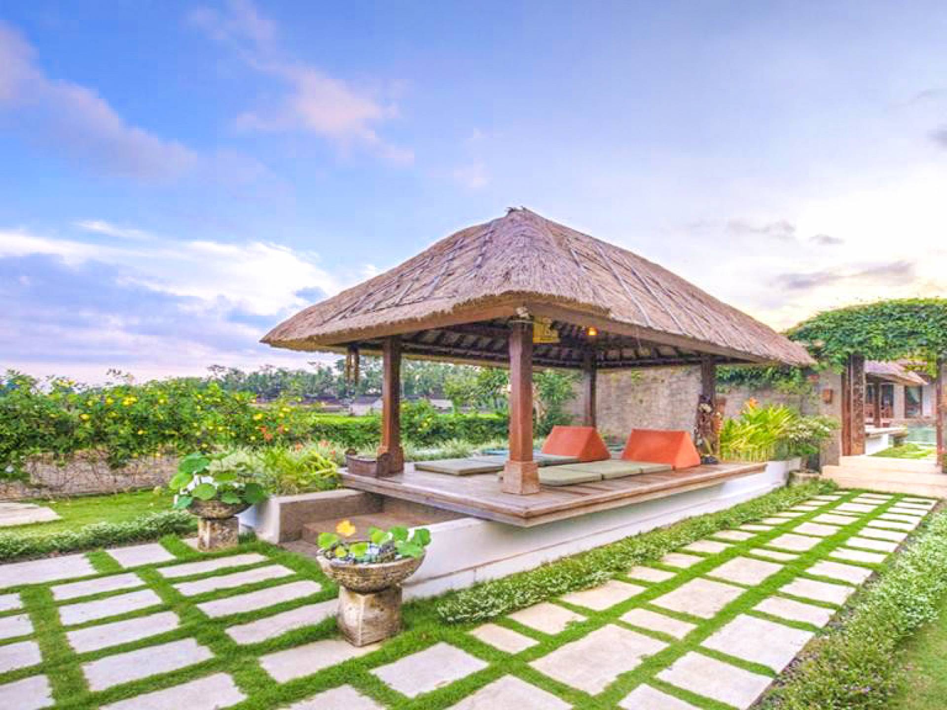 Le porte in vetro nelle zone giorno e pranzo conducono alla vista delle risaie e degli incantevoli giardini verdi. Tuttavia, se vuoi rinfrescarti, chiudi le porte e goditi un ambiente confortevole e climatizzato in tutta la villa. Con magnifiche opere d'arte tradizionali, un tavolo da pranzo in legno per dieci persone e un comodo divano in pelle di fronte a una parete di intrattenimento con un'enorme TV a schermo piatto, lettore DVD e libri, il design degli interni è una deliziosa combinazione di caratteristiche moderne e tradizionali. È inoltre disponibile una sala multimediale per una confortevole serata cinematografica interna.