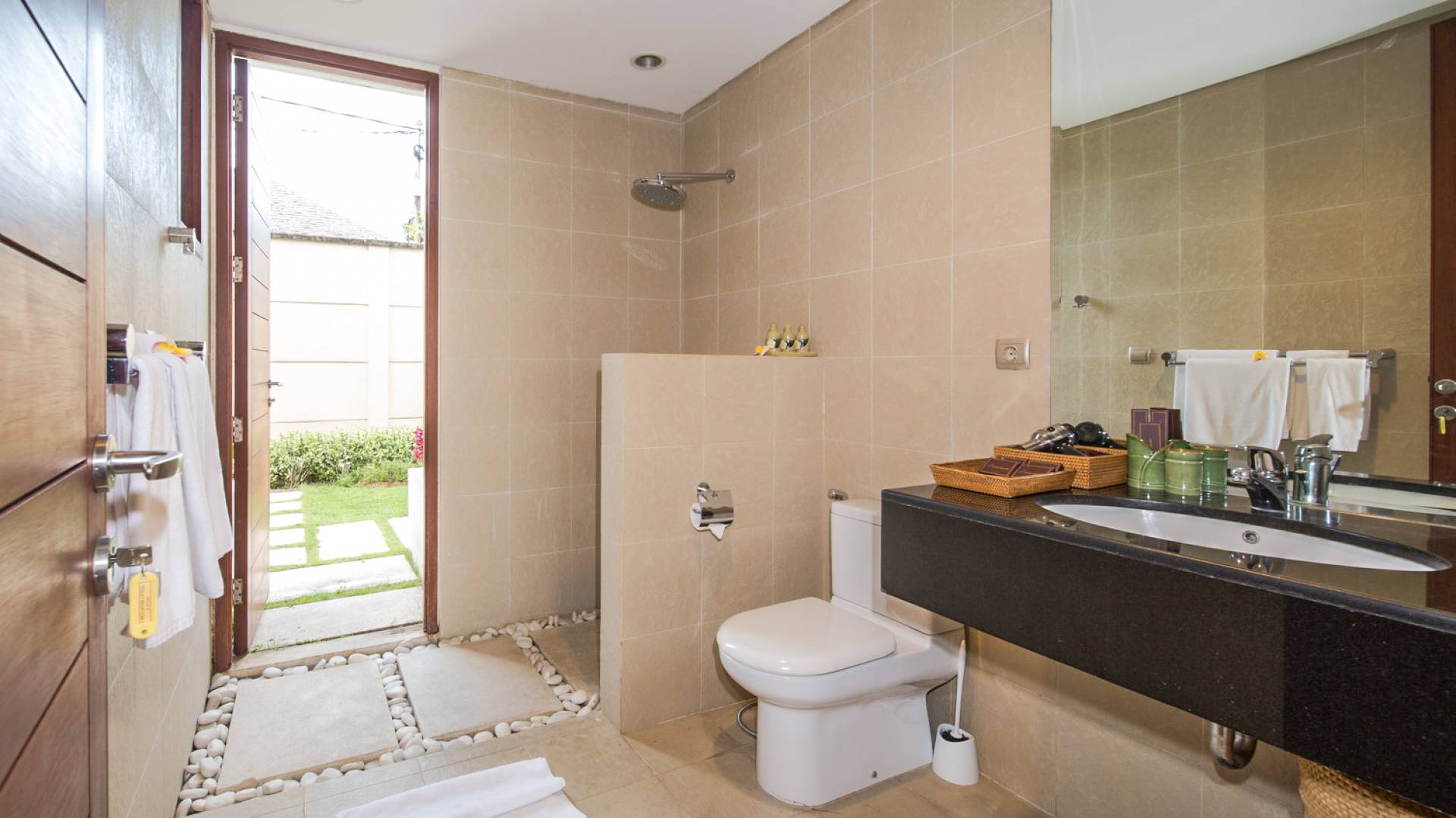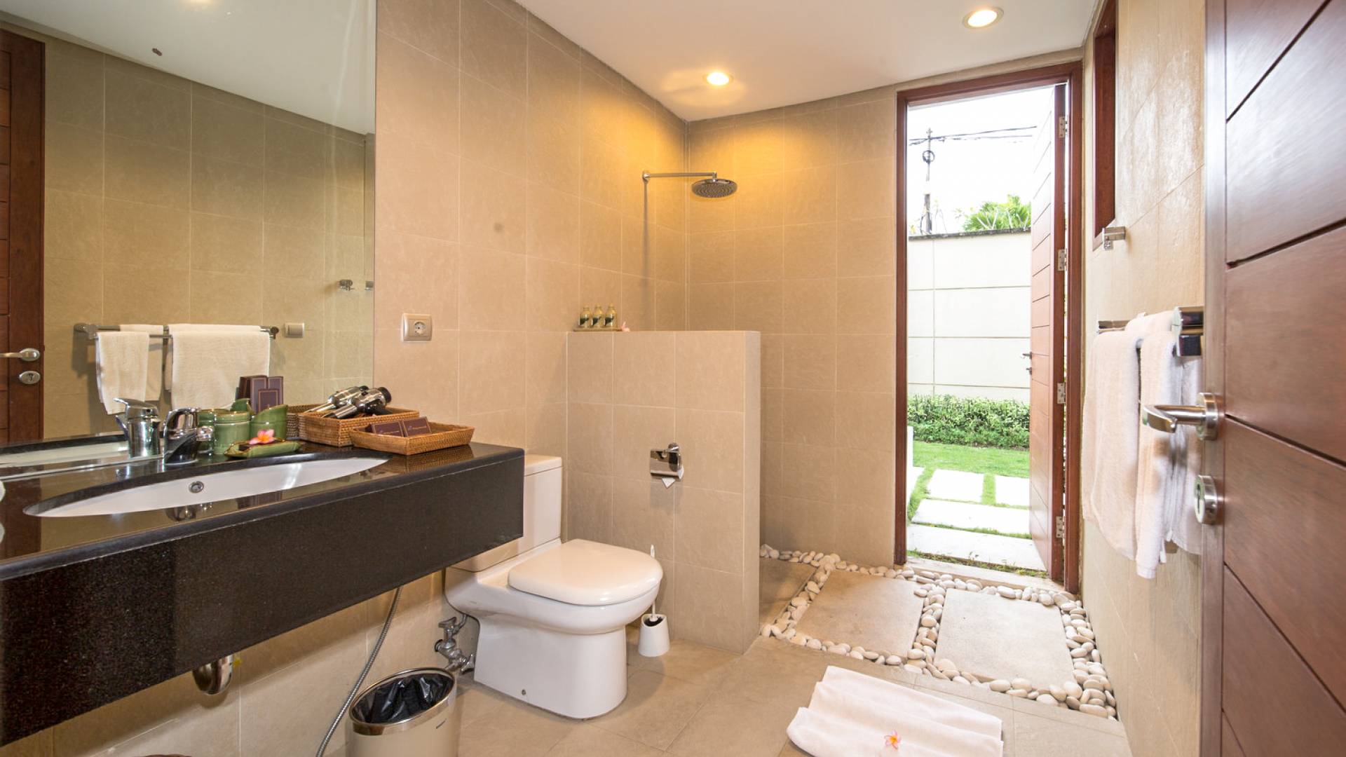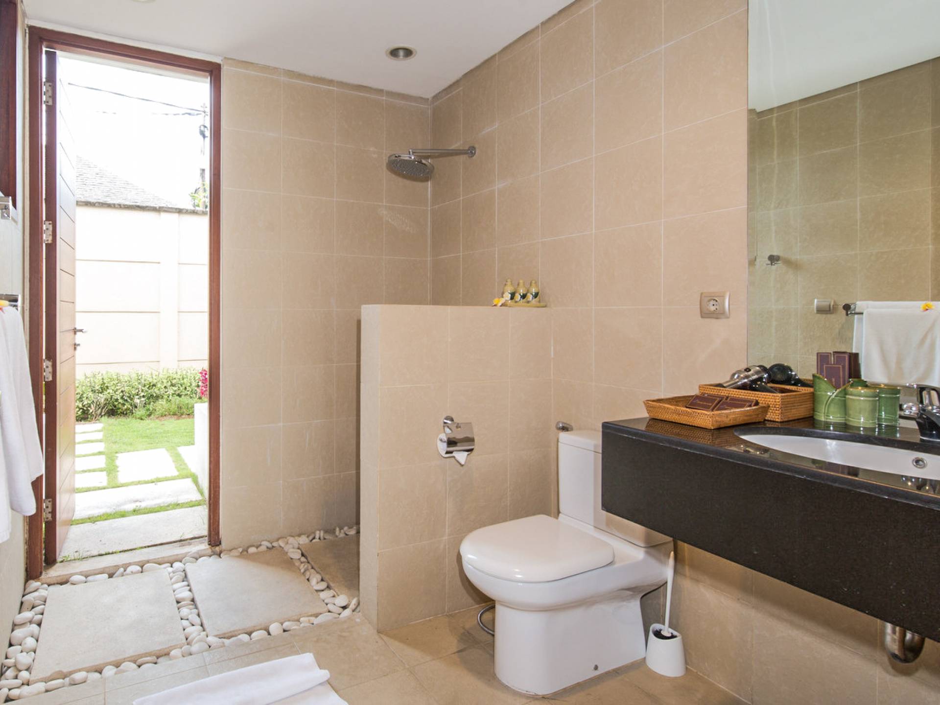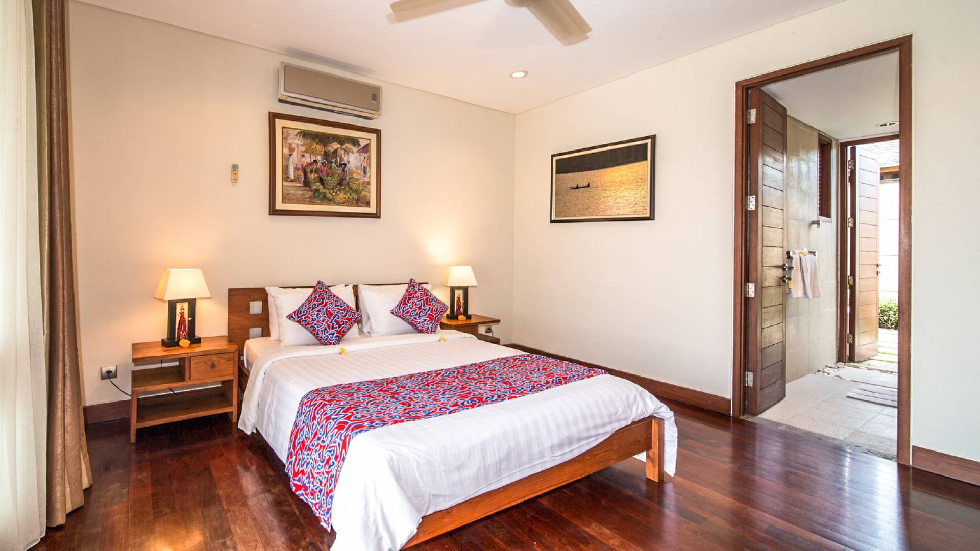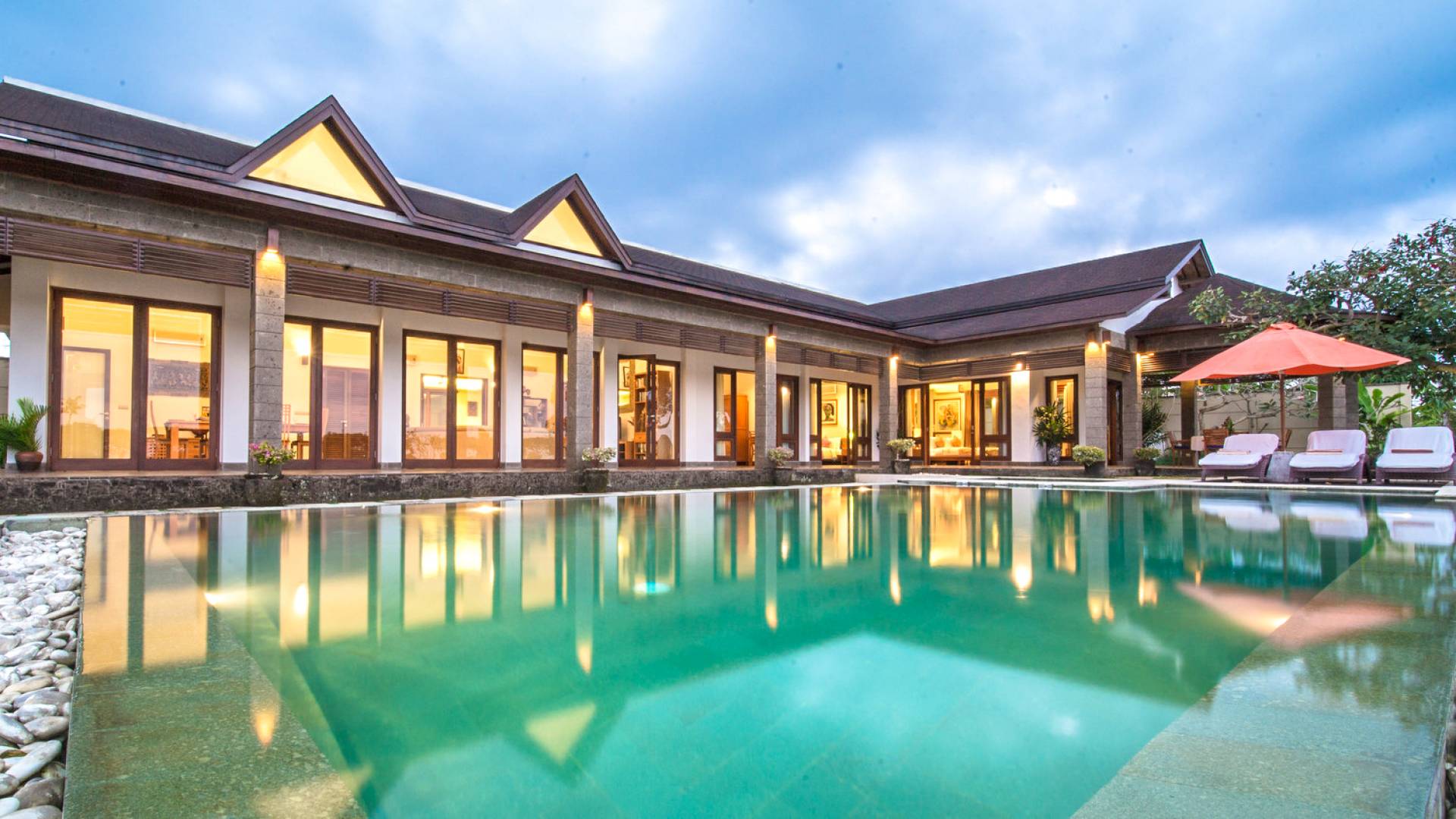 Le porte in vetro nelle zone giorno e pranzo conducono alla vista delle risaie e degli incantevoli giardini verdi. Tuttavia, se vuoi rinfrescarti, chiudi le porte e goditi un ambiente confortevole e climatizzato in tutta la villa. Con magnifiche opere d'arte tradizionali, un tavolo da pranzo in legno per dieci persone e un comodo divano in pelle di fronte a una parete di intrattenimento con un'enorme TV a schermo piatto, lettore DVD e libri, il design degli interni è una deliziosa combinazione di caratteristiche moderne e tradizionali. È inoltre disponibile una sala multimediale per una confortevole serata cinematografica interna.