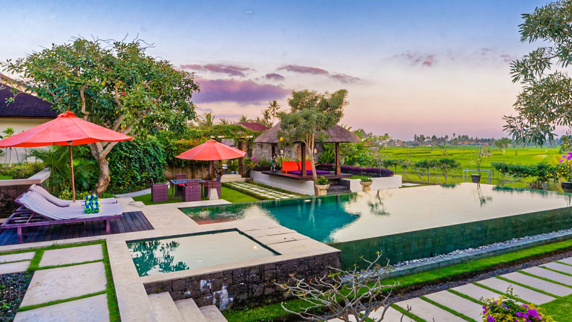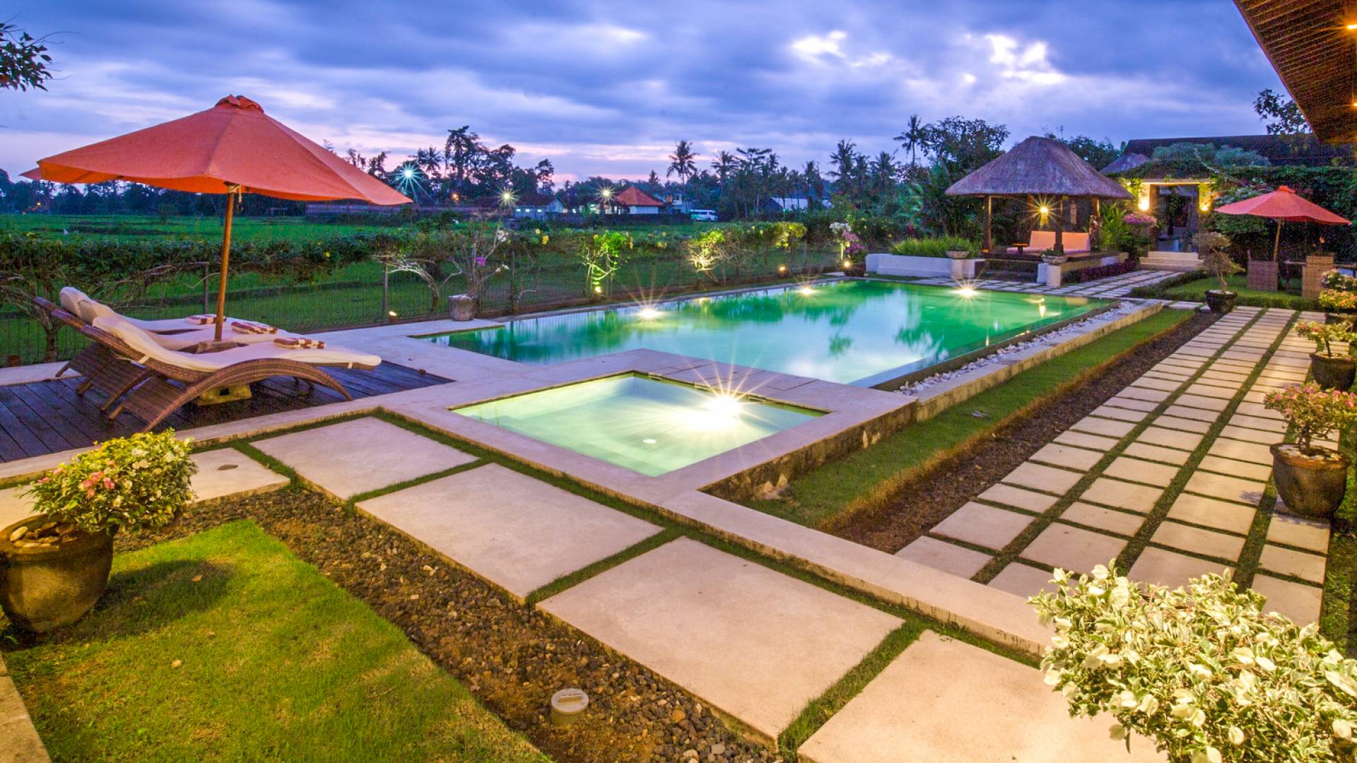 Con una piscina a sfioro e una vasca immersione ad acqua fredda separata per i bambini, lo spazio esterno di Villa Griya Aditi è attraente come sembra, fondendosi con le infinite terrazze di riso. Ci sono lettini a bordo piscina per prendere il sole o leggere un libro all'ombra dell'ombrellone, e il tradizionale tetto di alang alang Bale è il posto migliore per godersi lo spettacolare tramonto di Bali (padiglione).