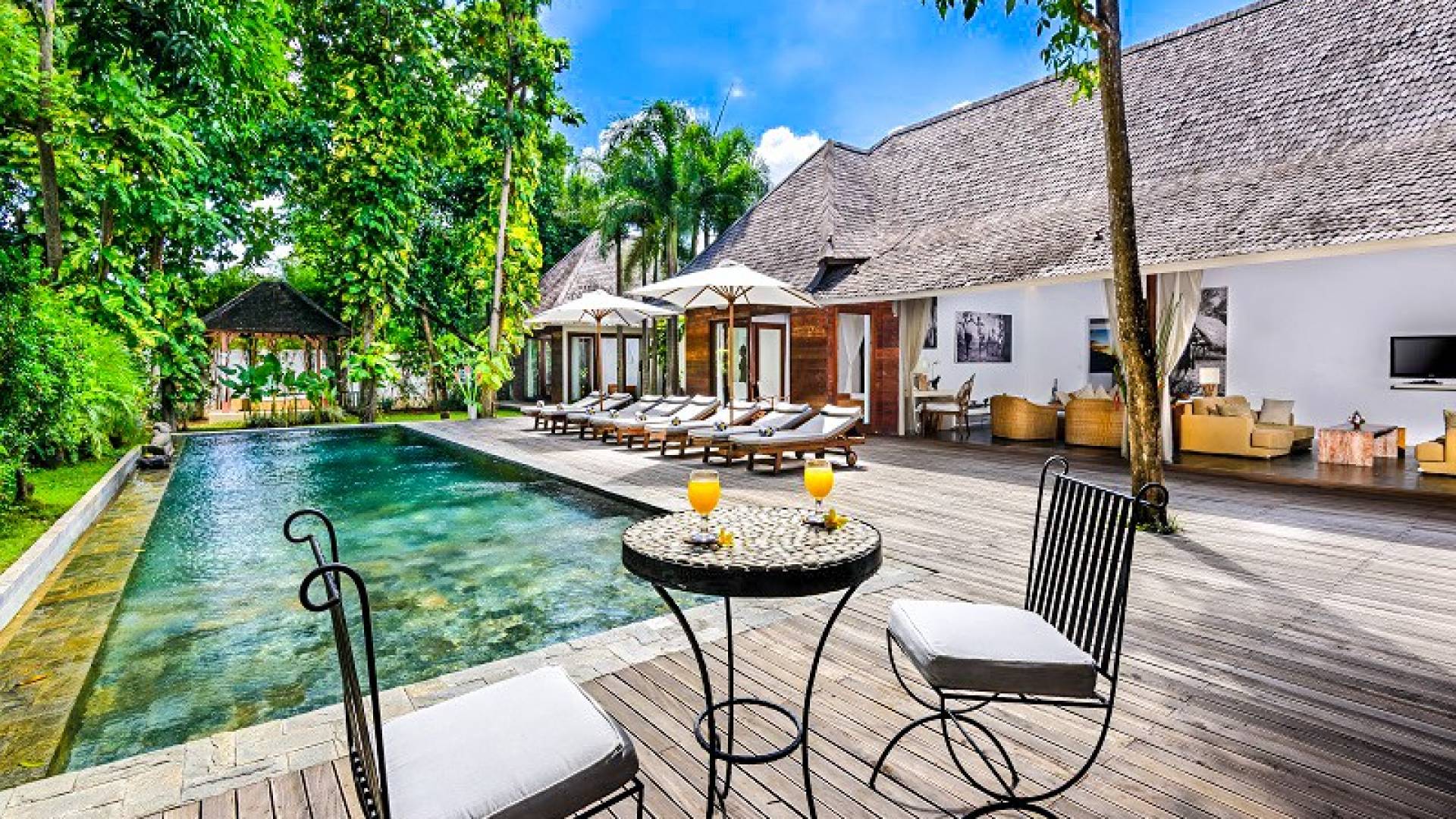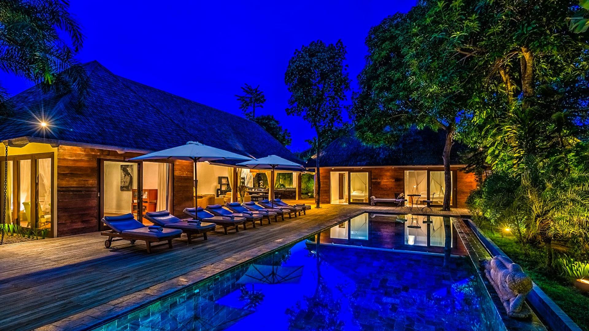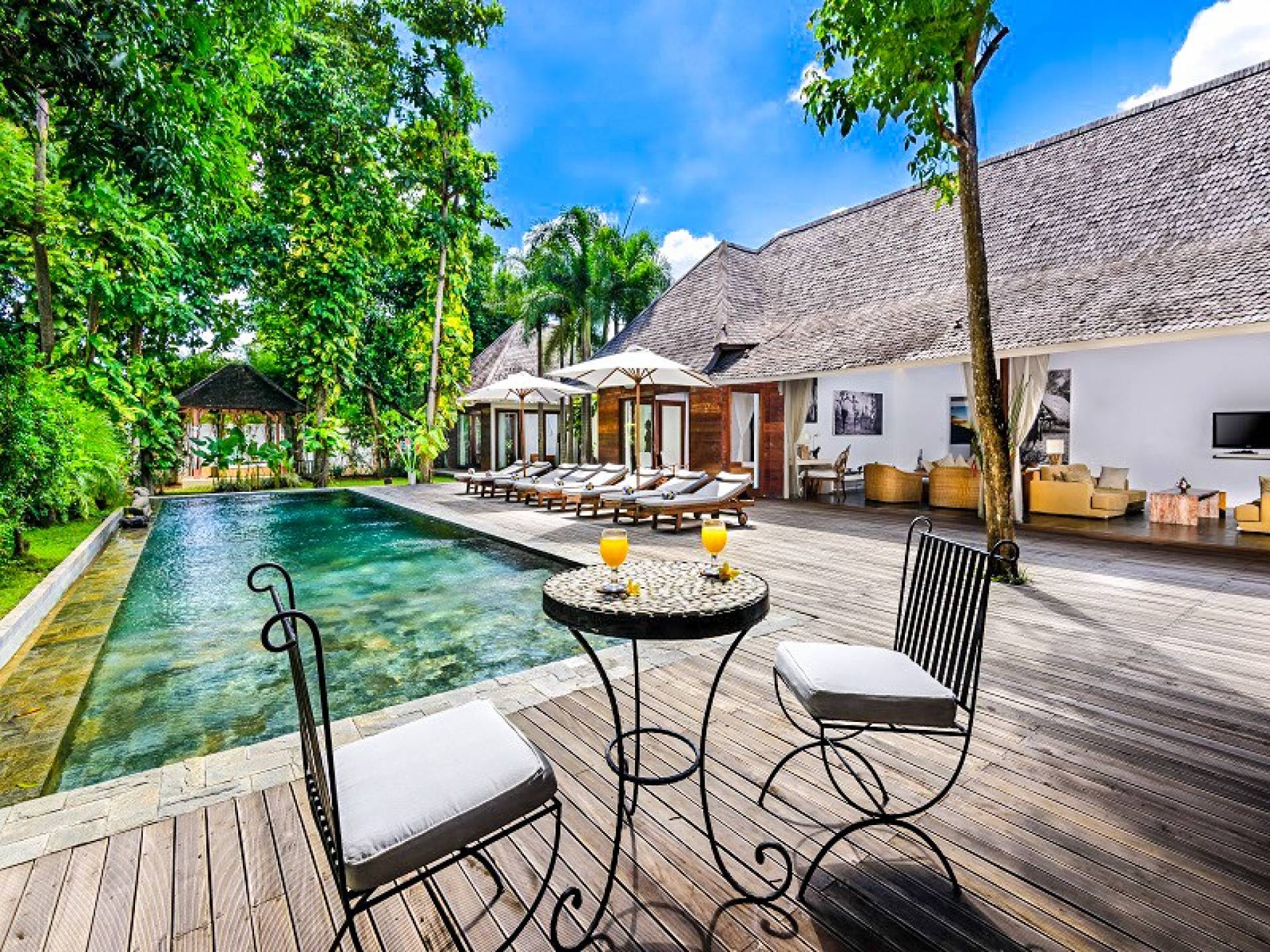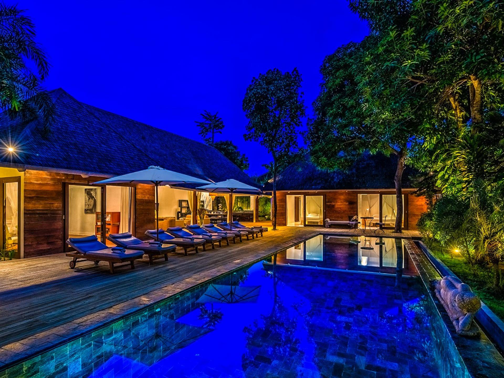 Le quattro camere da letto possono ospitare fino a 8 adulti e bambini ed è comunque abbastanza grande da offrire privacy a tutti. Il fulcro di Villa Liola è una piscina olimpionica di 15 m circondata da un generoso ponte in legno con lettini e ombrelloni per oziare durante la giornata. In fondo al giardino troverai un incantevole Bale Bengong, il luogo perfetto per ritirarsi, rilassarsi, fare un massaggio, scrivere un libro o solo una lettera, o semplicemente meditare sulla pace e la felicità.