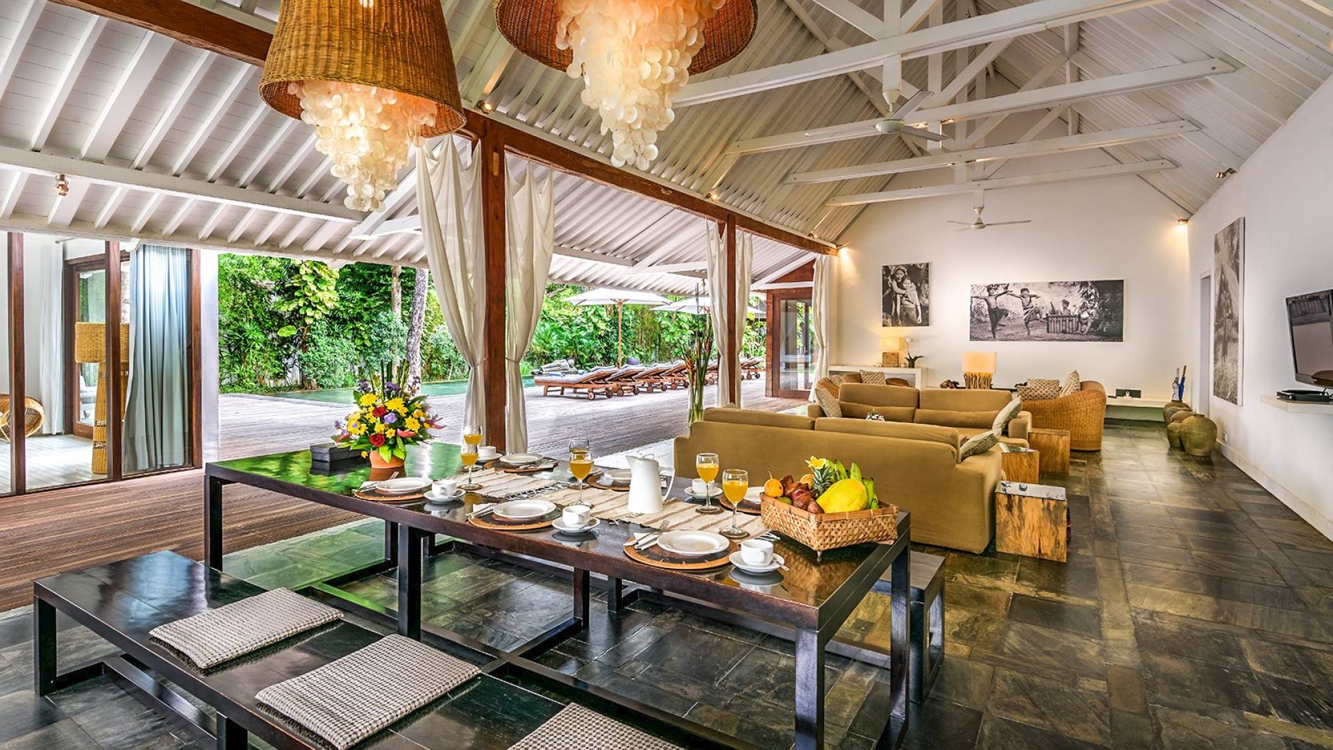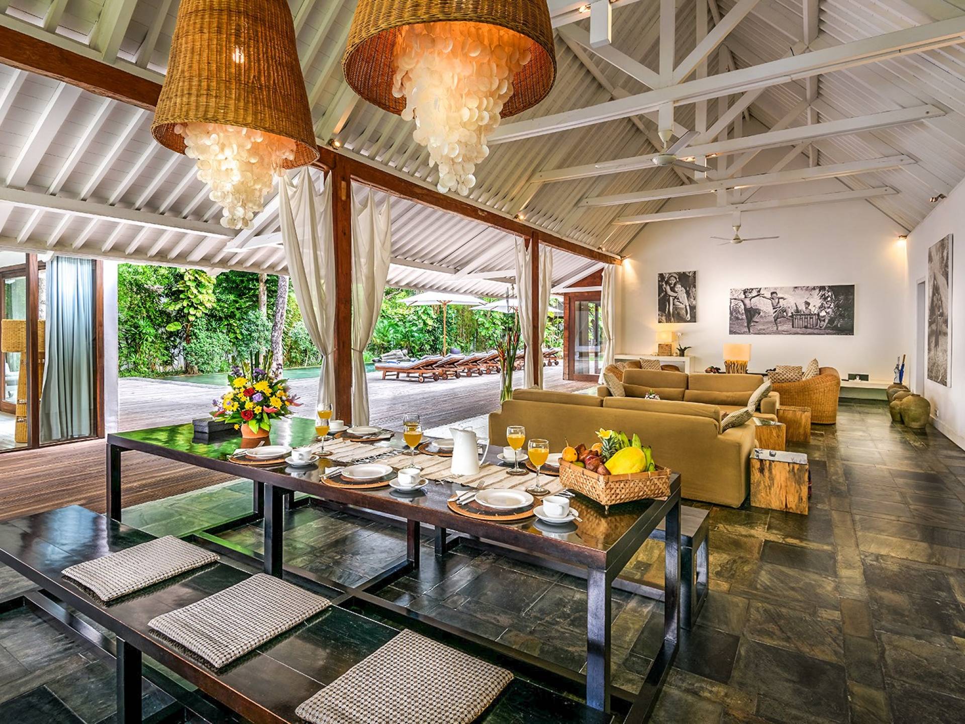 La cucina con zona pranzo e salotto si apre sulla piscina e sul giardino e può ospitare comodamente fino a 12 adulti. La moderna cucina open-space è dotata di tutti gli elettrodomestici moderni. C'è una TV a schermo piatto con canali satellitari e un sistema musicale portatile. Comodi divani oversize ti invitano a guardare un film o ad ascoltare la tua musica preferita. La Villa Liola è completamente attrezzata con due maggiordomi e un cuoco su richiesta se decidi di rimanere a casa e goderti un pranzo o una cena privata o festeggiare un evento speciale con amici e familiari. Una guardia di sicurezza è disponibile dalla sera alla mattina. Se hai bisogno di babysitter o altri servizi, saremo lieti di organizzarlo per te. La Villa Liola è dotata di un proprio generatore di corrente.