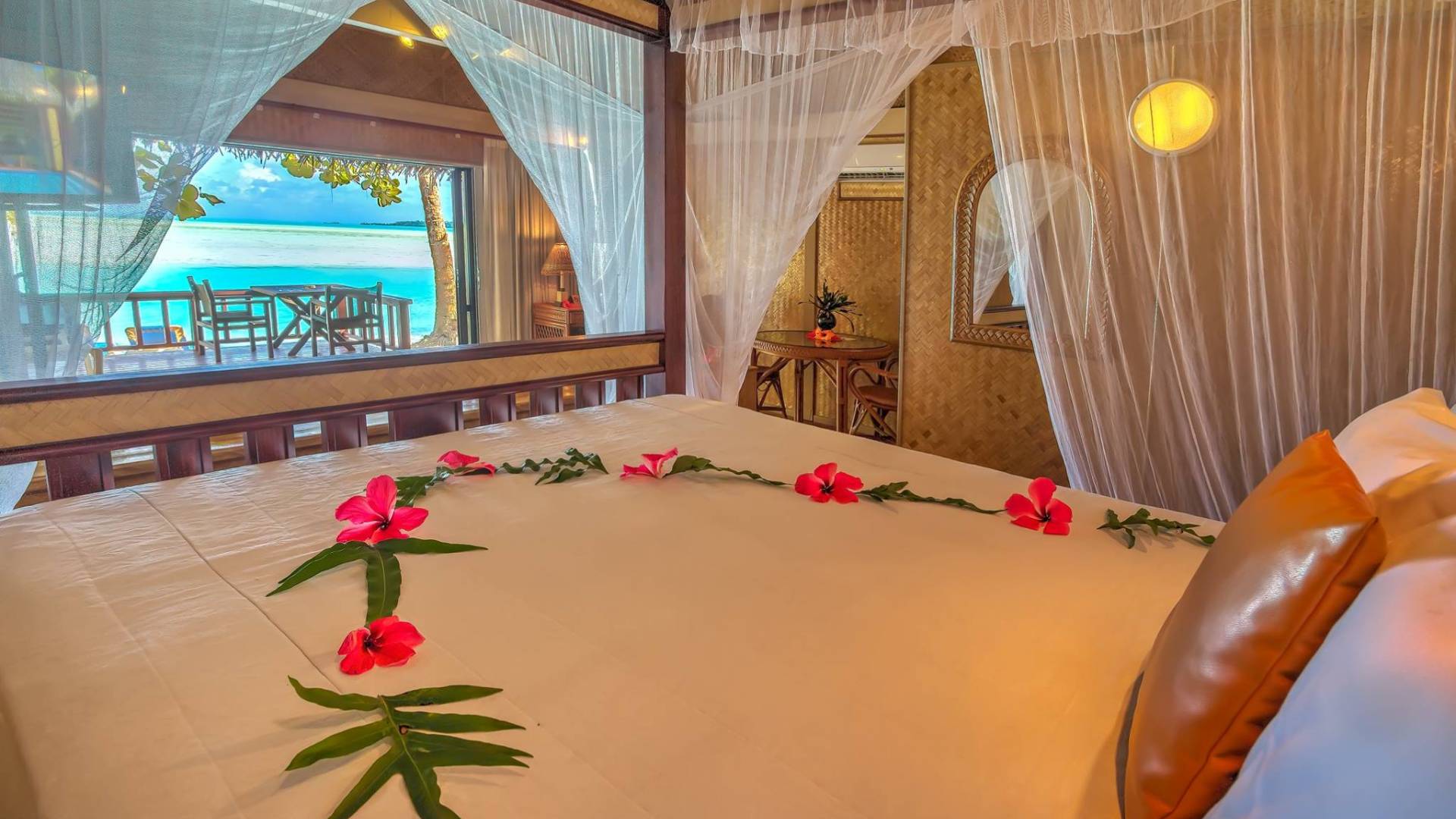 Bungalow deluxe sulla spiaggia all'Aitutaki Lagoon Private Island Resort: