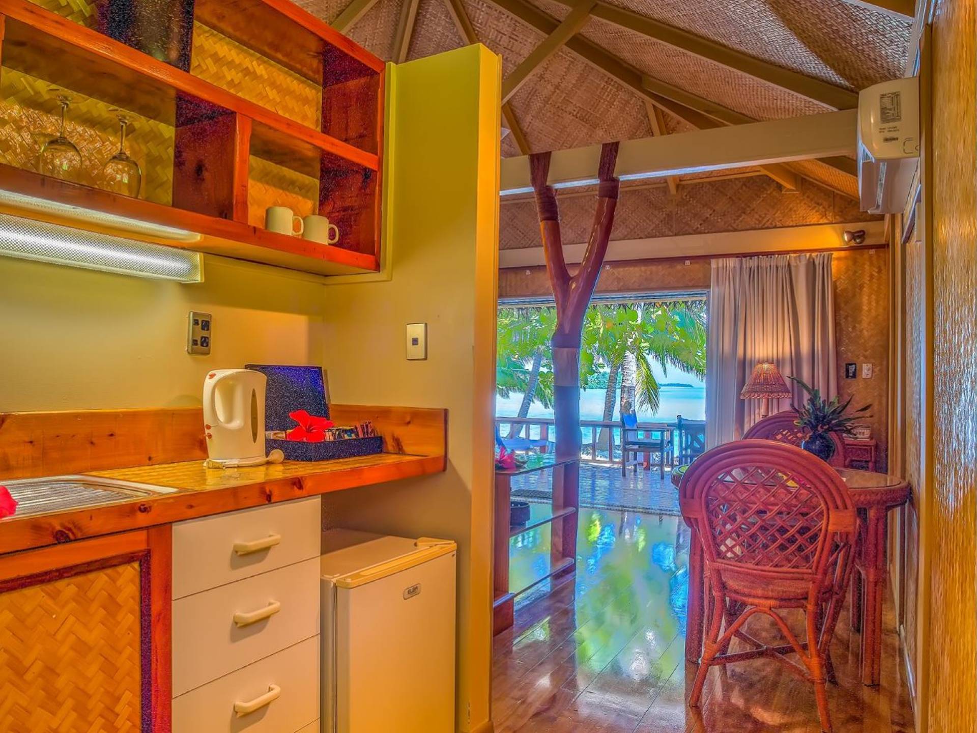 Gli spaziosi Deluxe Beachfront Bungalows sono situati di fronte alla spiaggia assoluta sulle incontaminate spiagge di sabbia bianca di Sunset Beach sull'isola privata di Motu Akitua con una vista spettacolare e ininterrotta sul vasto blu della magnifica laguna di Aitutaki. Queste sono davvero tra le migliori viste su Aitutaki... e sull'intero Sud Pacifico... e sul mondo. Sotto la fresca ombra verde delle palme da cocco, i Deluxe Beachfront Bungalows dispongono di un letto super king-size seduto su una piattaforma rialzata, che offre una vista direttamente dalla camera da letto attraverso l'area salotto e verso la spettacolare vista della famosa laguna di Aitutaki. Altre caratteristiche includono Wi-Fi, aria condizionata, TV satellitare, radiosveglia, telefono IDD, cassaforte in camera, frigorifero, occorrente per caffè/tè, freschi accappatoi in cotone waffle, asciugacapelli e veranda privata con lettini prendisole. A pochi passi dal tuo Deluxe Beachfront Bungalow puoi rilassarti su un'amaca tesa tra due palme da cocco, proprio sulle rive della splendida Laguna di Aitutaki, il massimo assoluto del tranquillo relax. I bungalow vengono puliti tutti i giorni insieme al servizio di couverture serale ogni sera, e il servizio in camera del ristorante è disponibile anche per offrirti il tempo e lo spazio per rilassarti profondamente l'uno nelle braccia dell'altro, in paradiso.